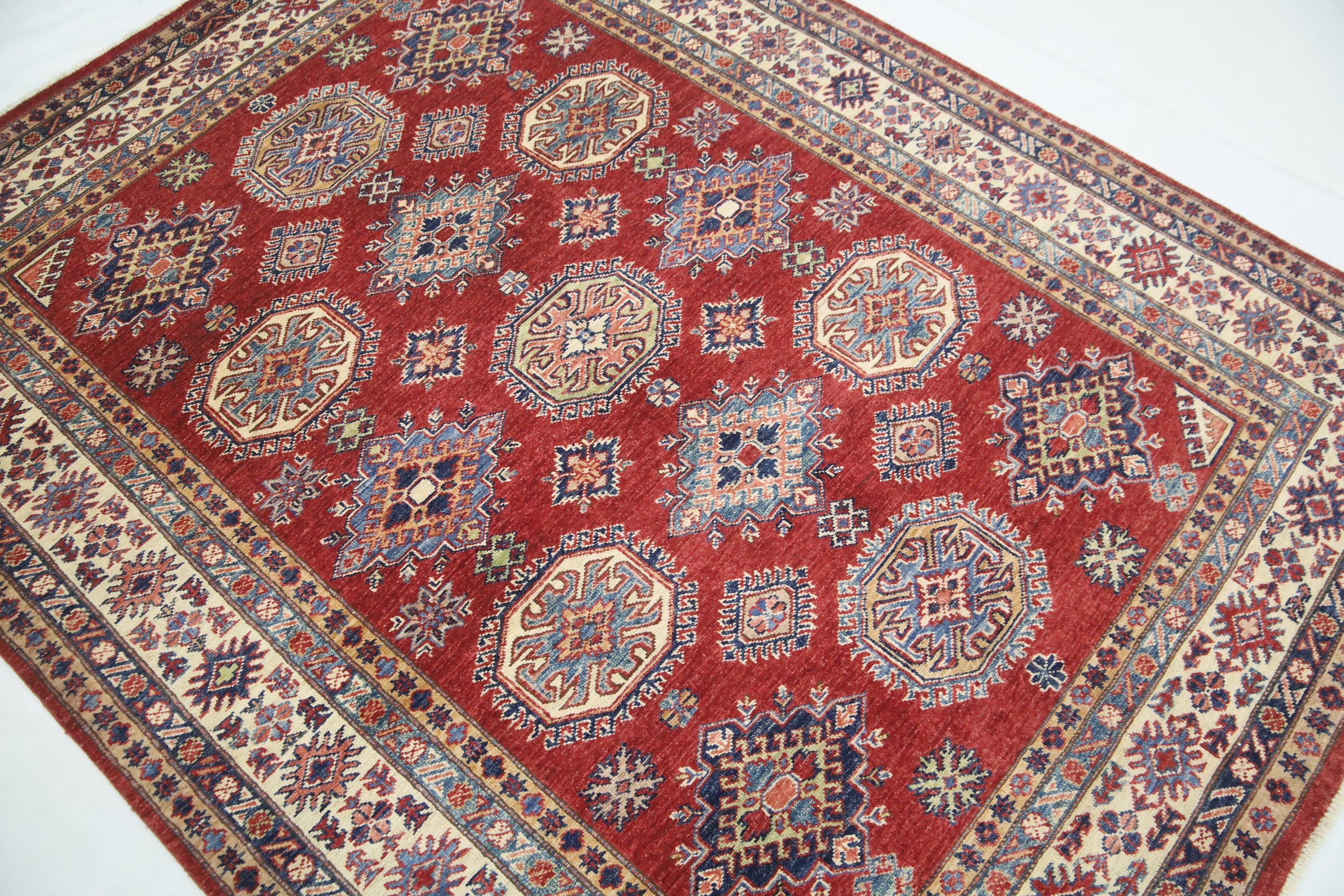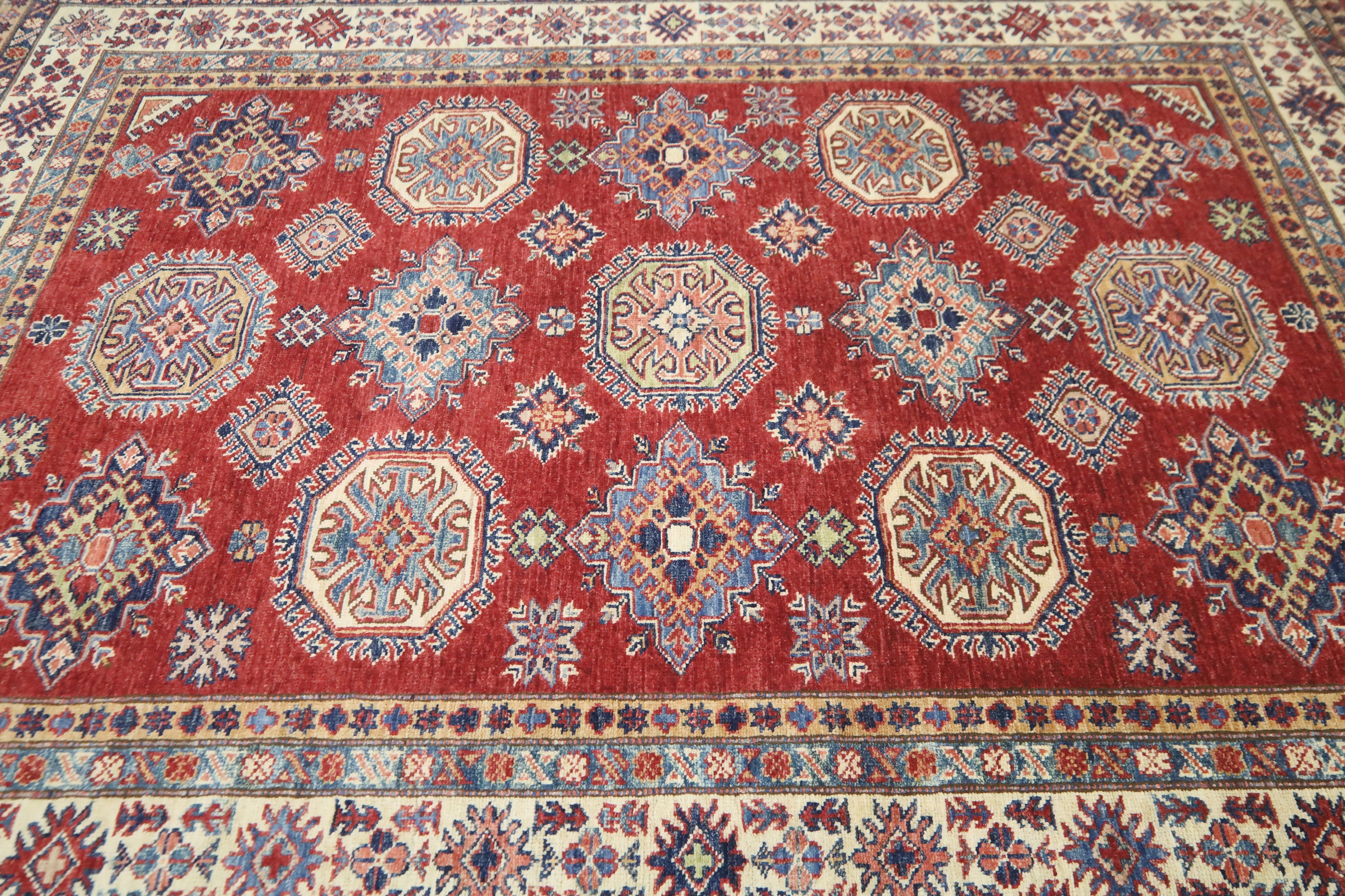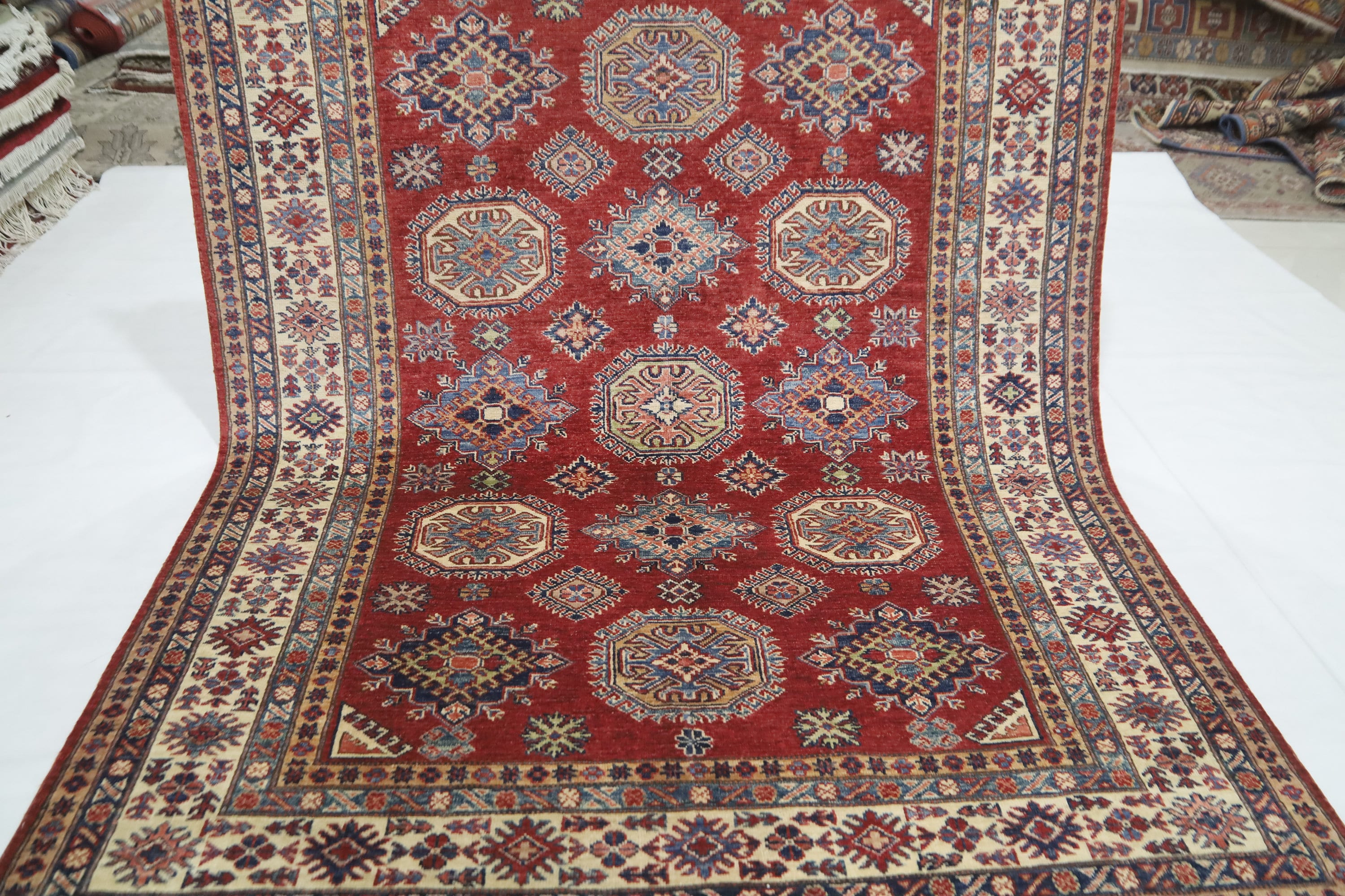 5x7 Geometric Kazak Area Rug - Afghan Hand Made Oriental Fine Quality Wool Rug - Entryway Rug - Hallway Rug - Kitchen Rug - Living Room Rug