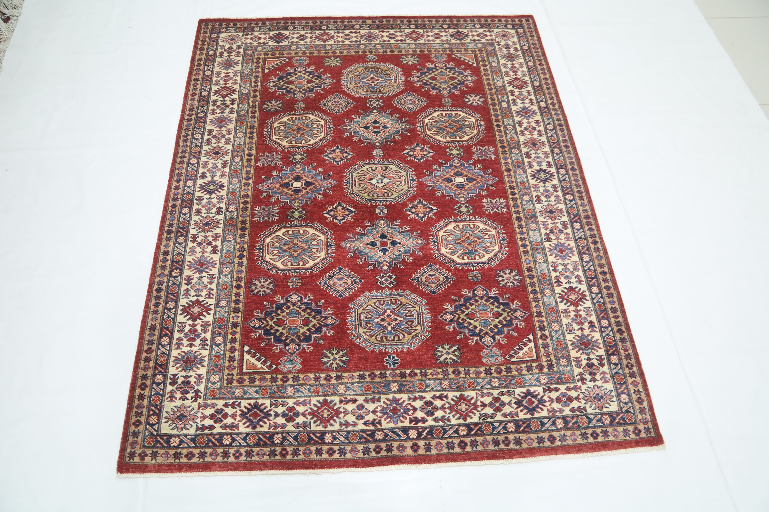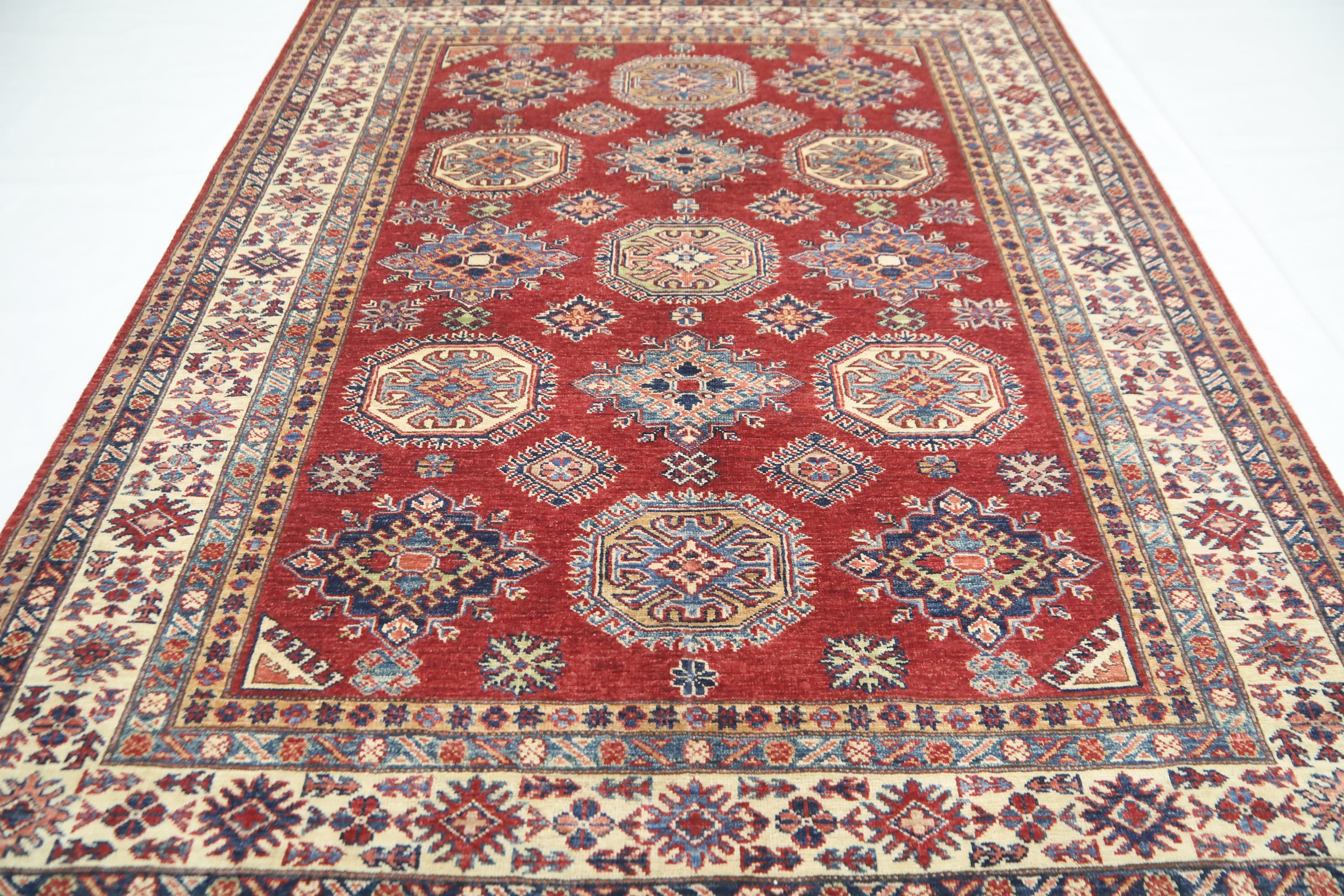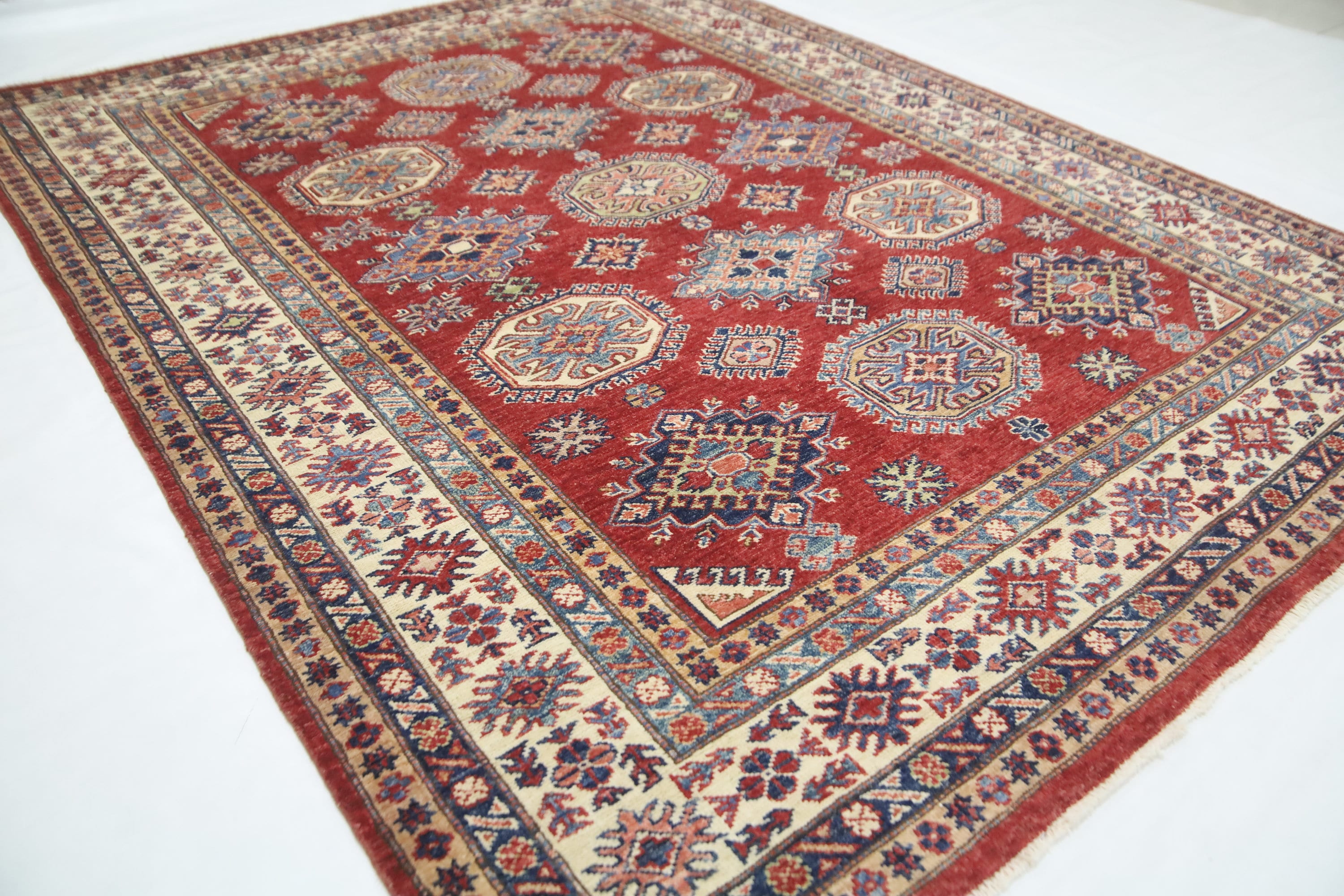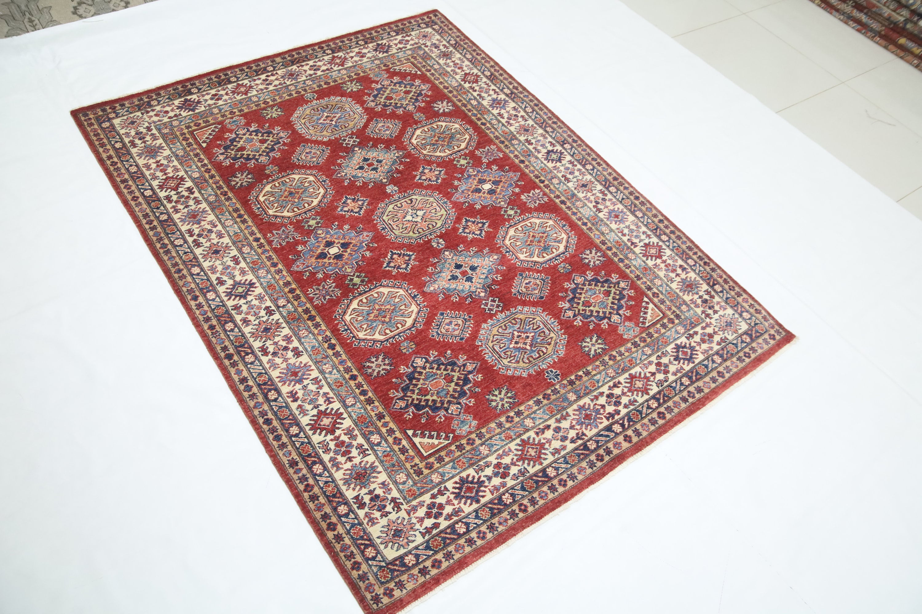 5x7 Geometric Kazak Area Rug - Afghan Hand Made Oriental Fine Quality Wool Rug - Entryway Rug - Hallway Rug - Kitchen Rug - Living Room Rug
