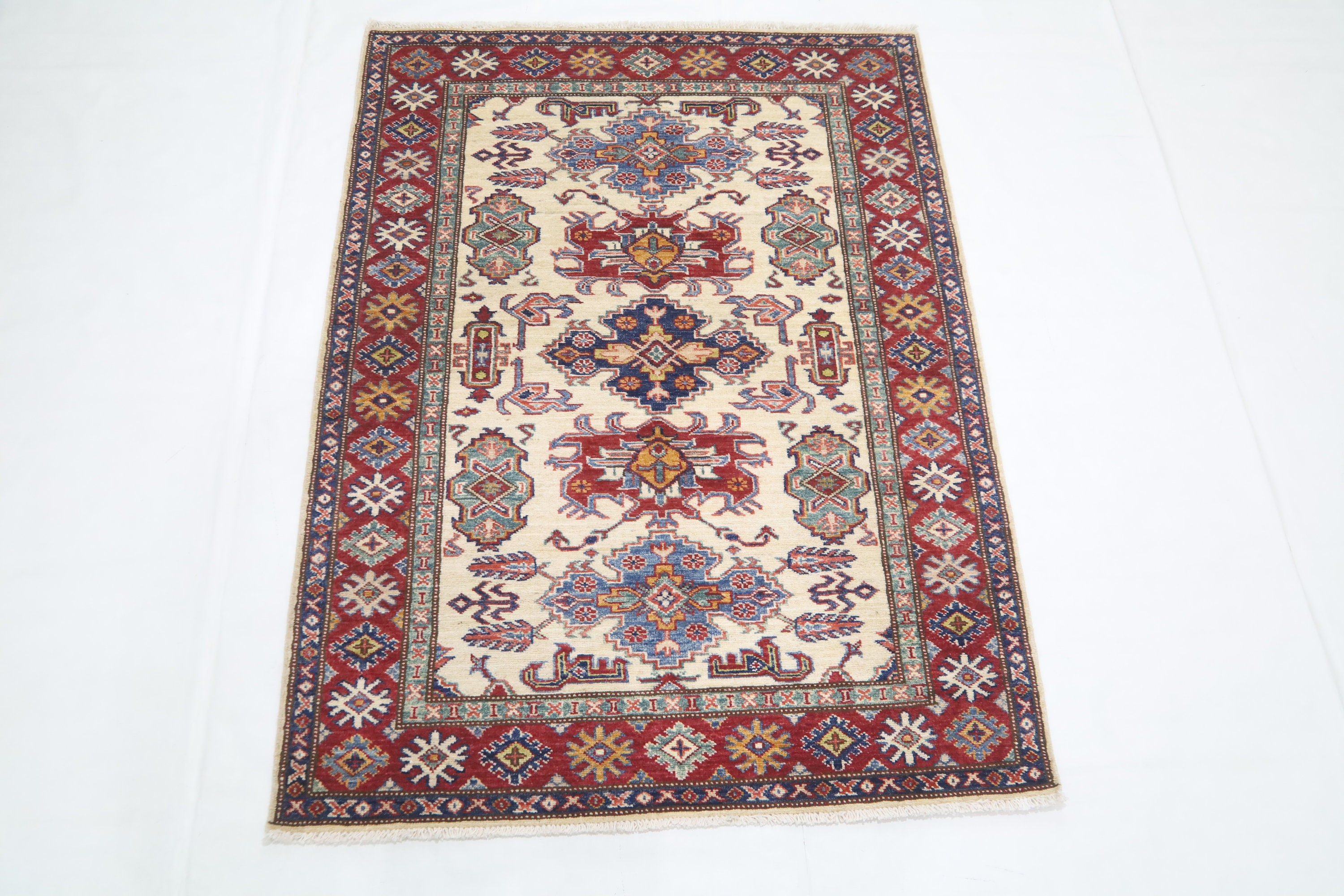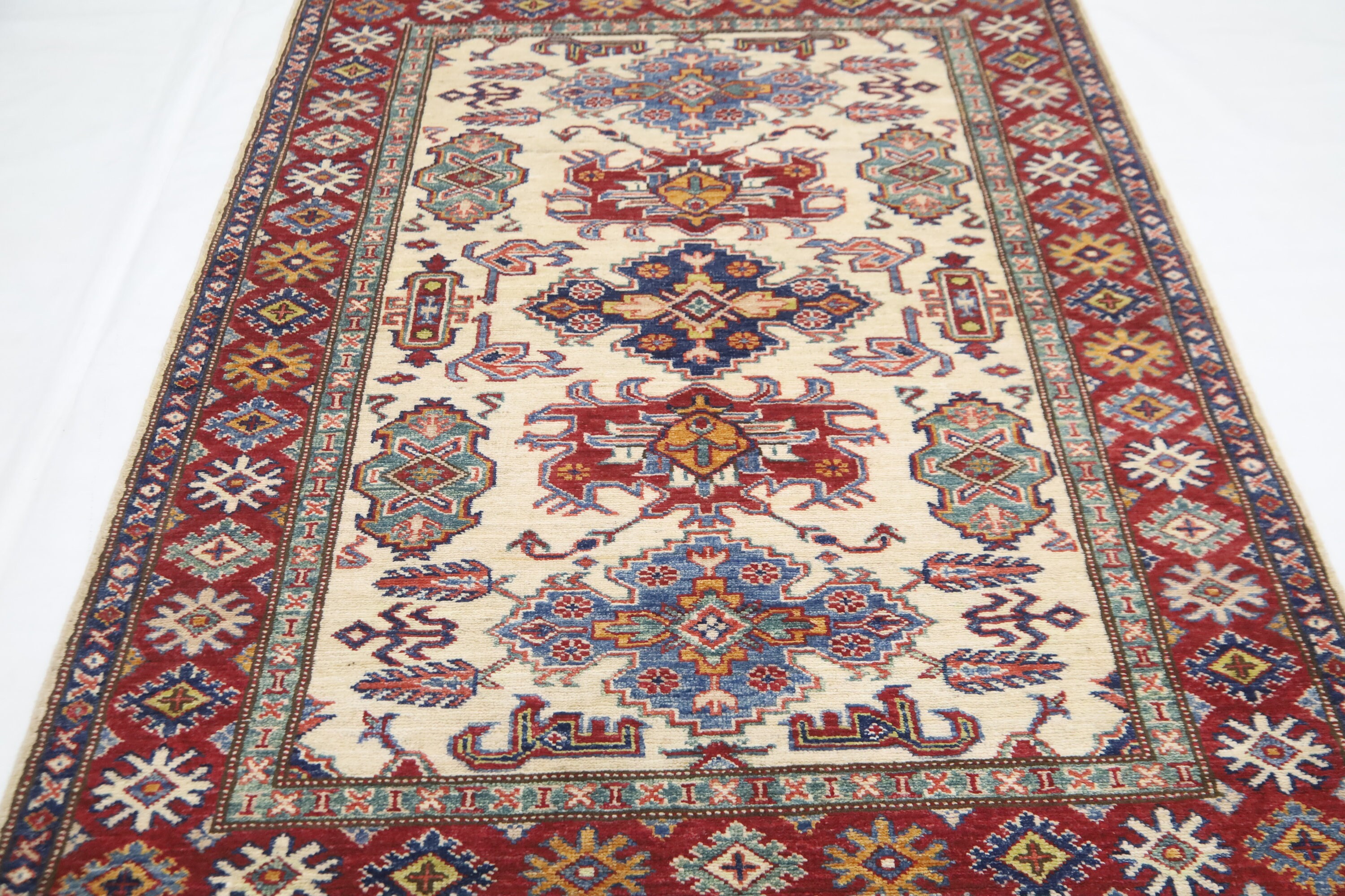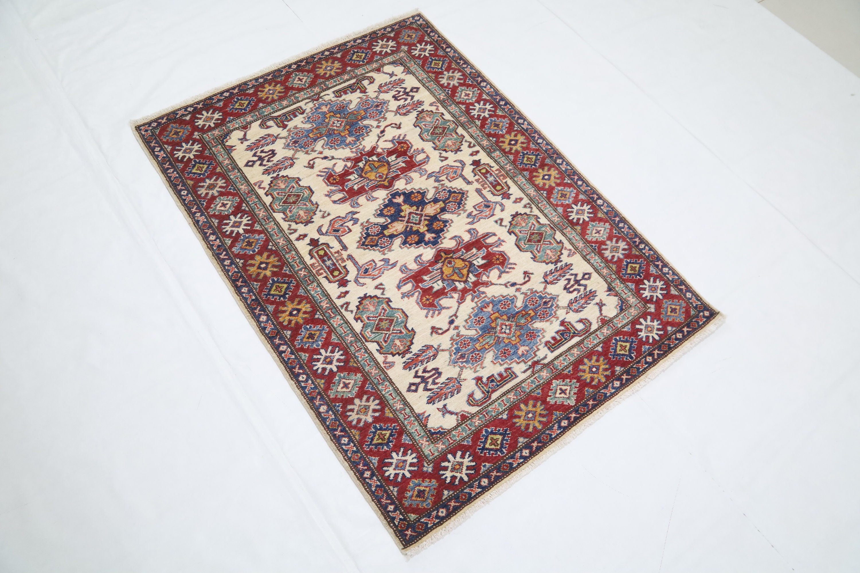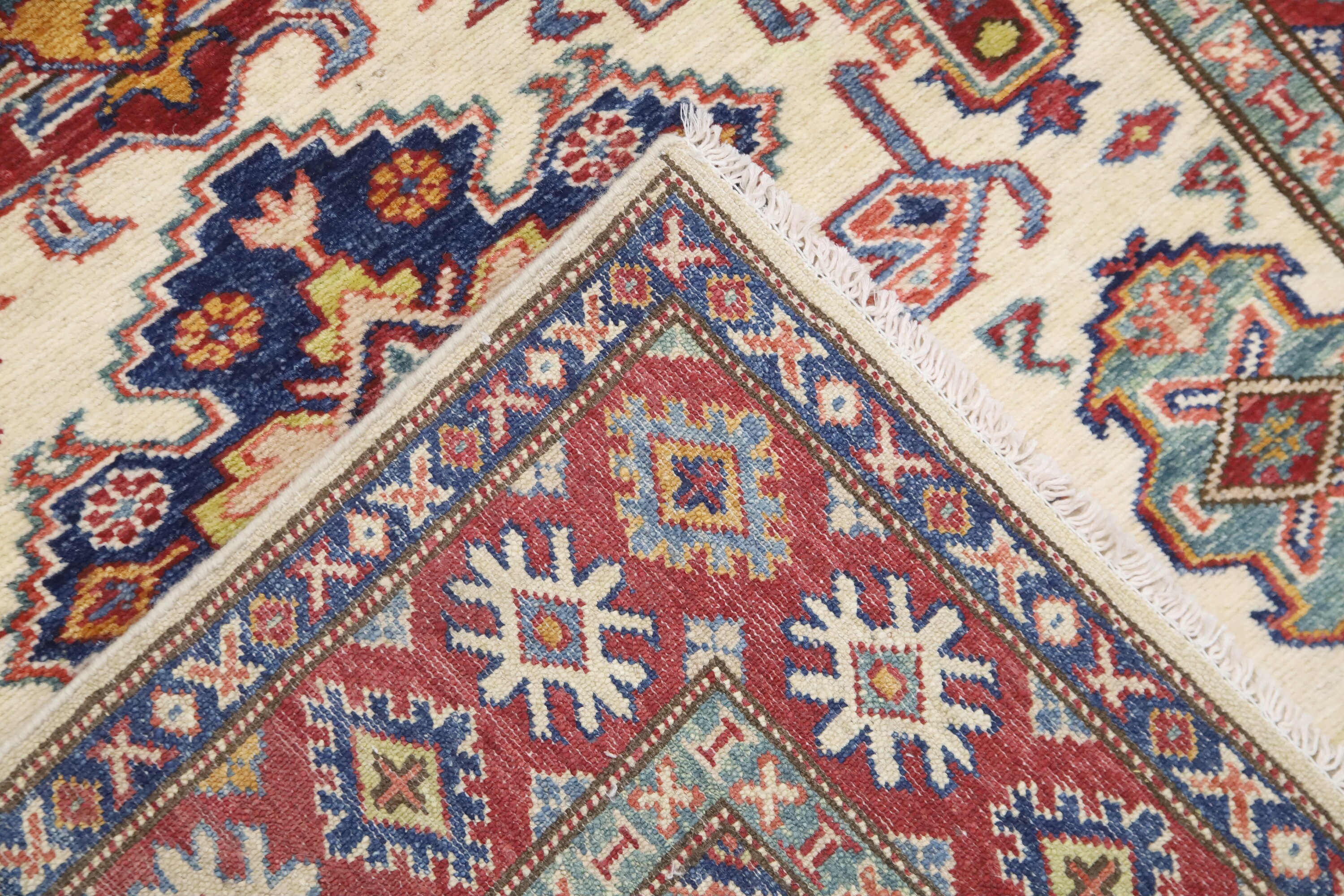 3x5 Kazak Area Rug - Beige Red Afghan Hand Made Traditional Fine Quality Wool Rug - Kitchen Rug - Foyer Rug - Hallway Rug - Kids Room Rug