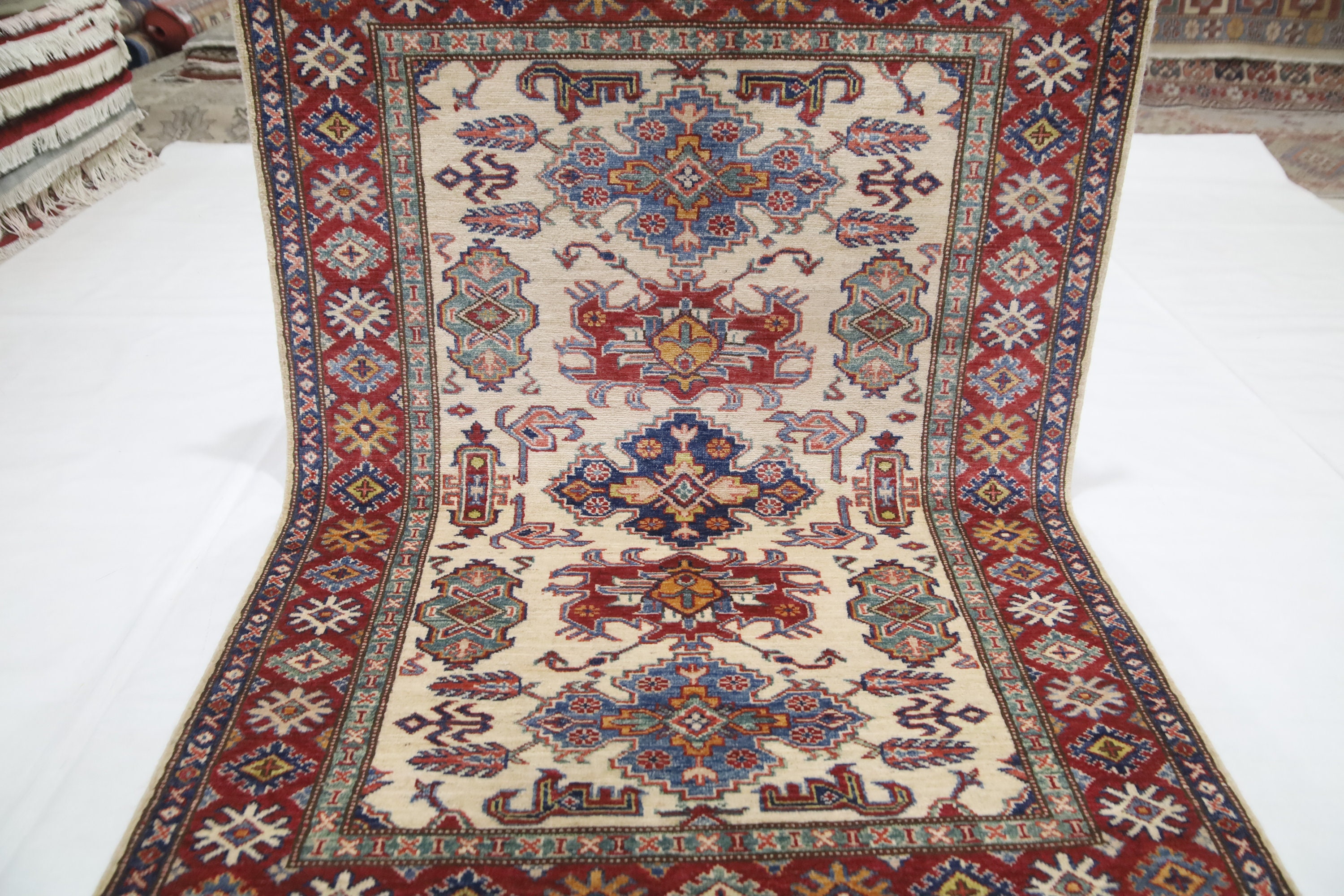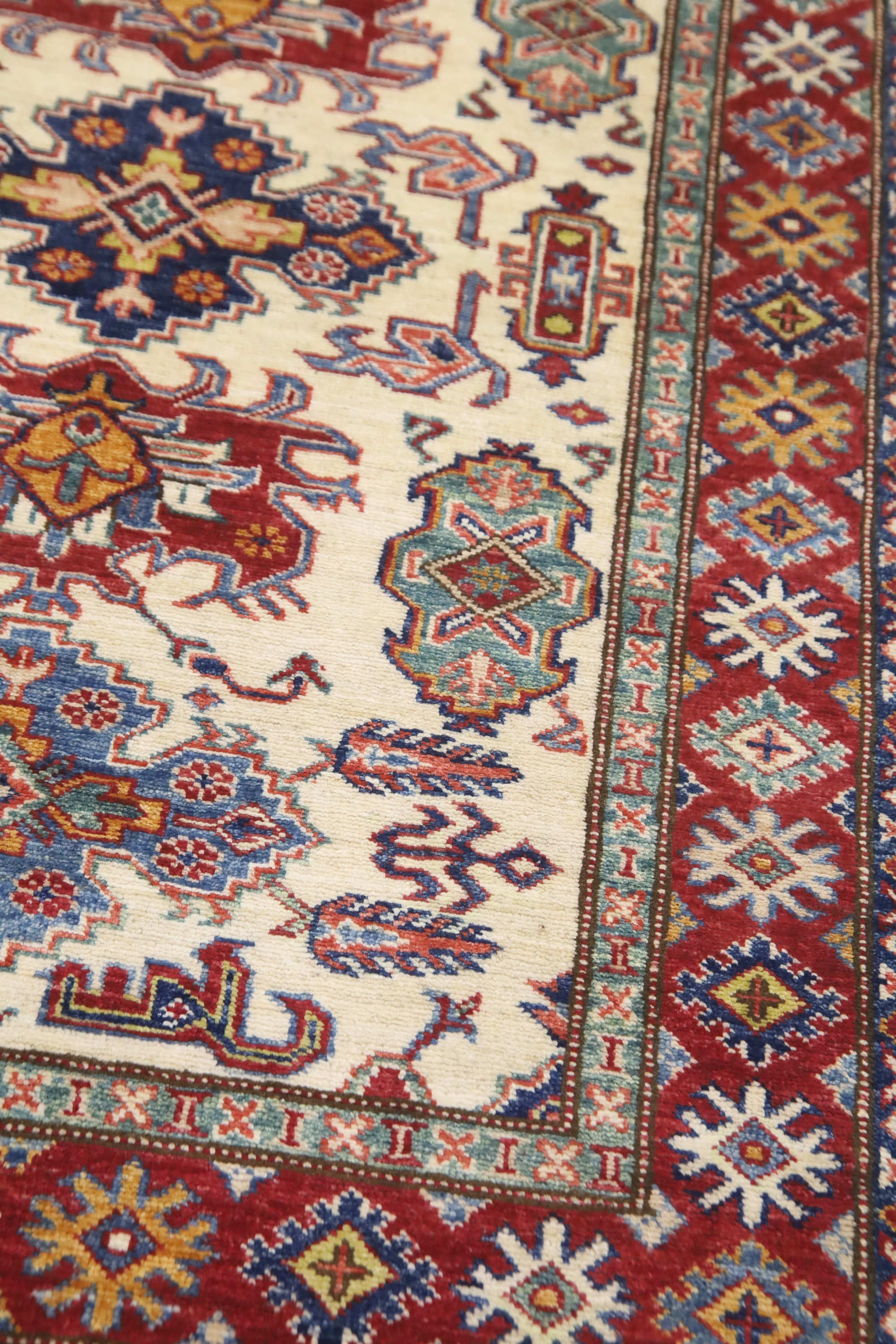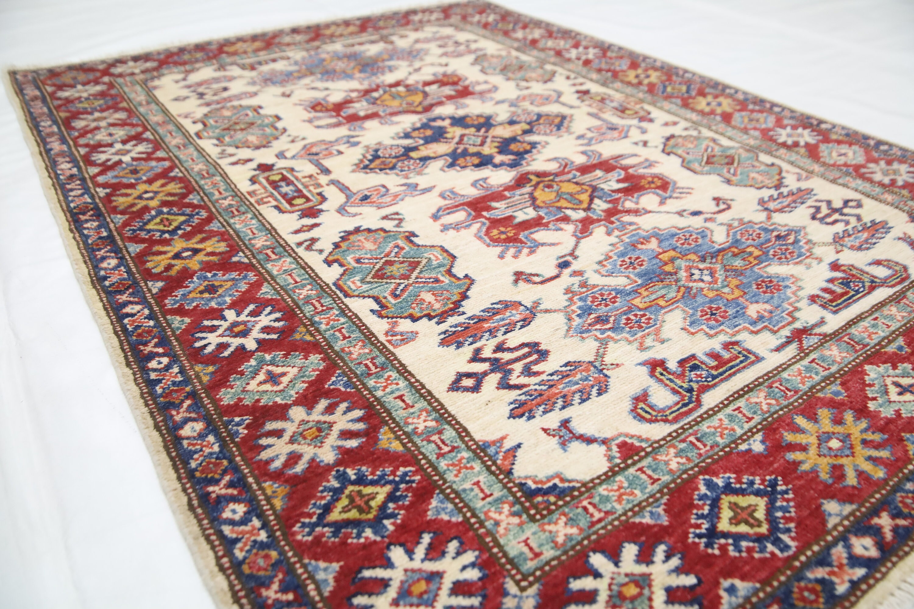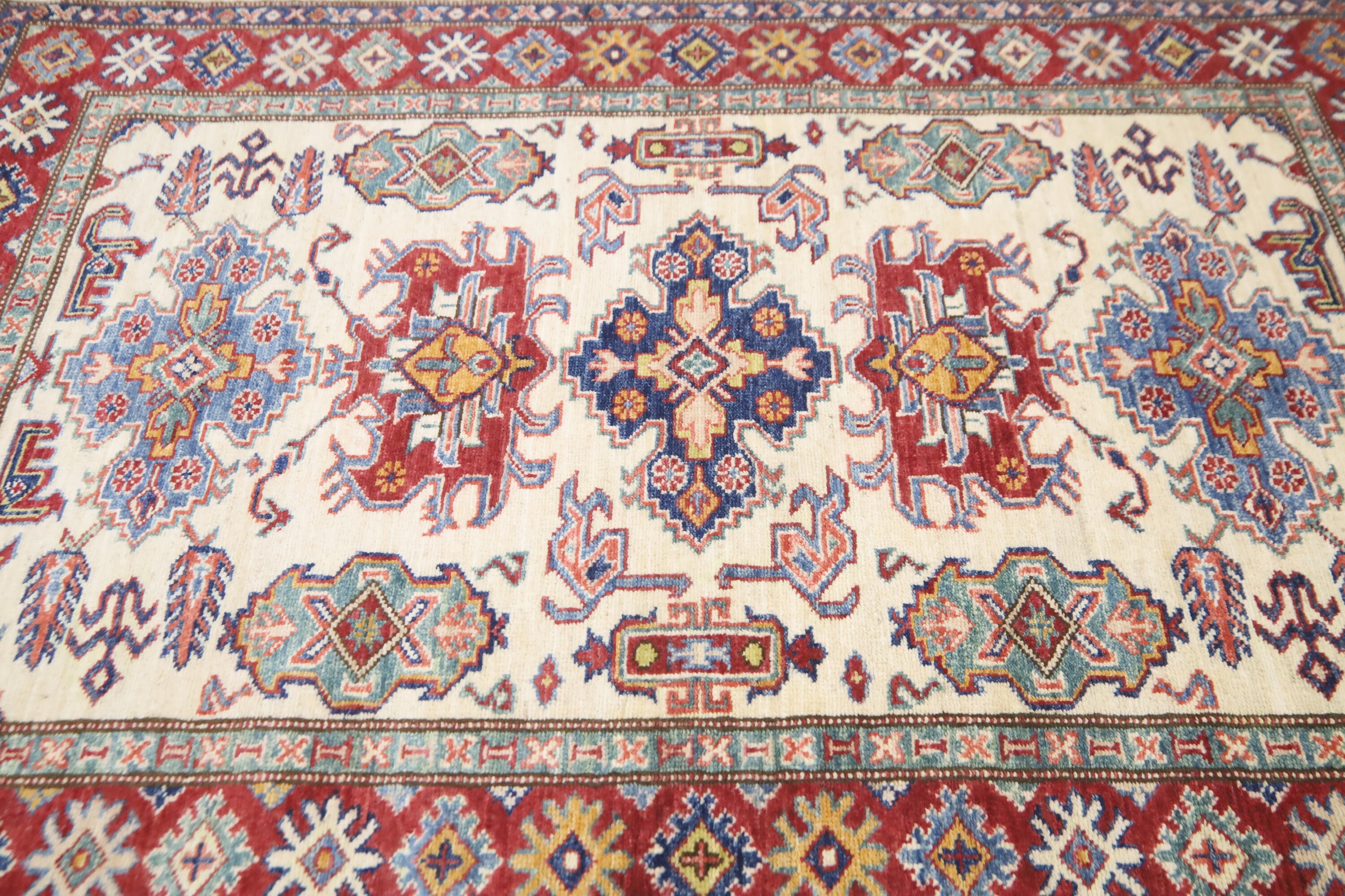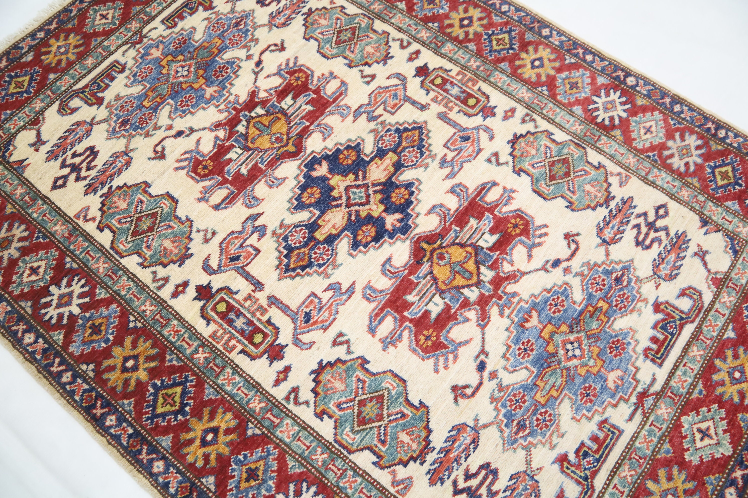 3x5 Kazak Area Rug - Beige Red Afghan Hand Made Traditional Fine Quality Wool Rug - Kitchen Rug - Foyer Rug - Hallway Rug - Kids Room Rug