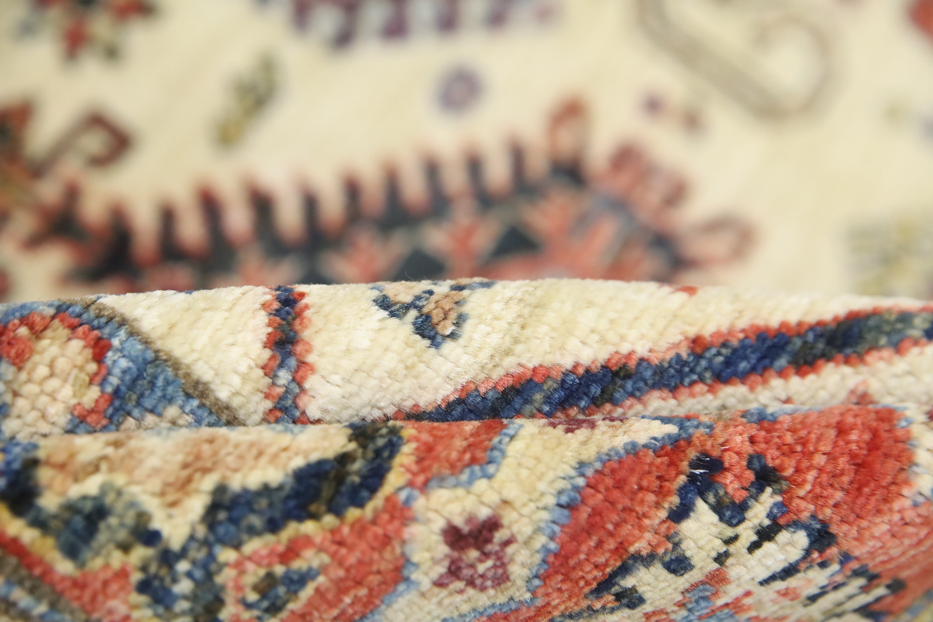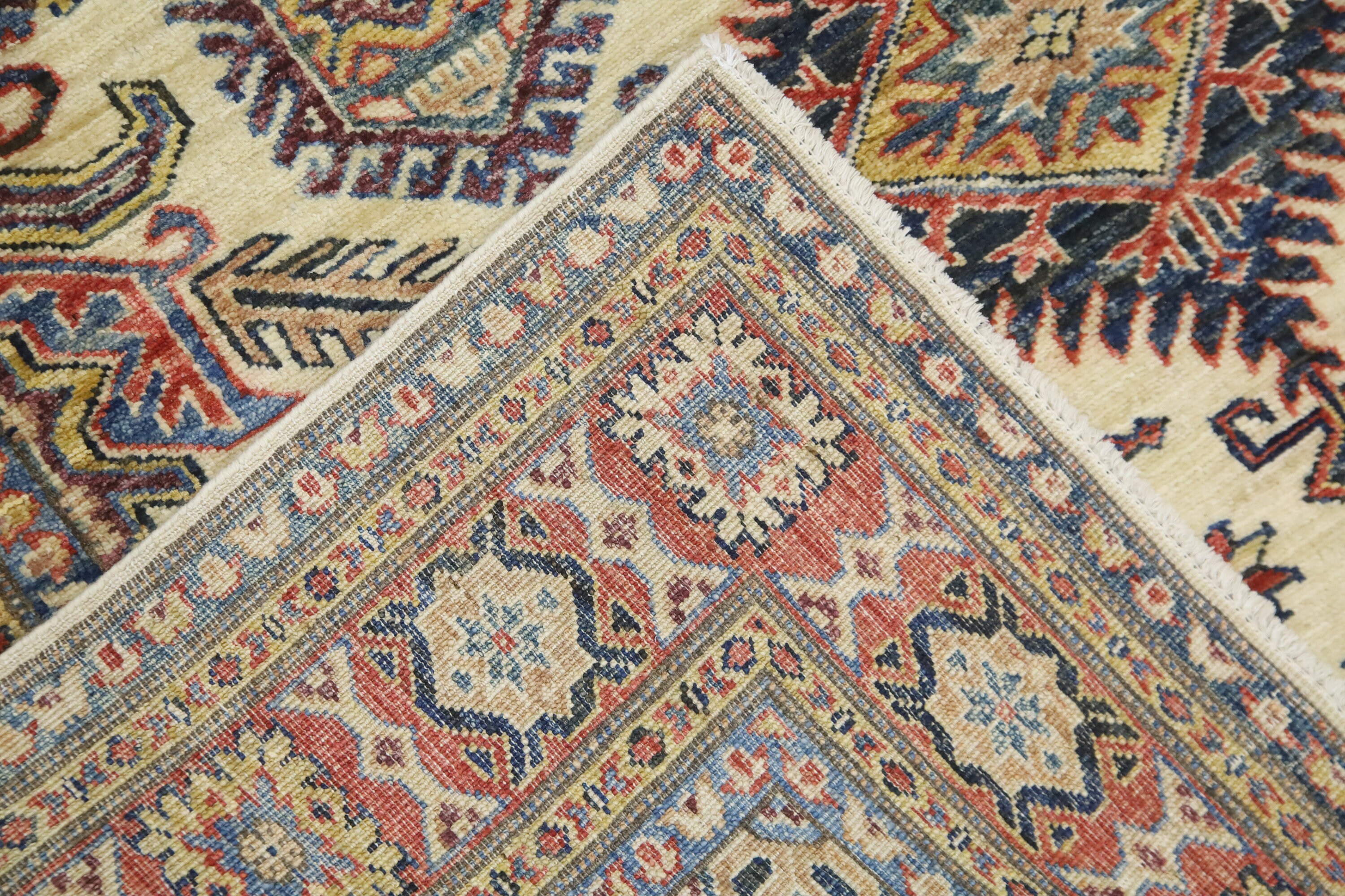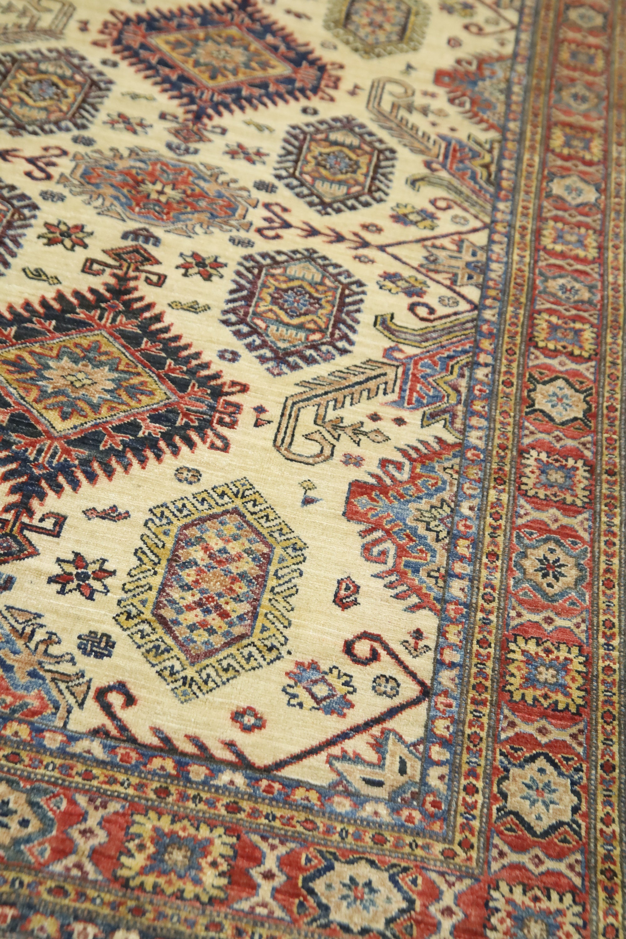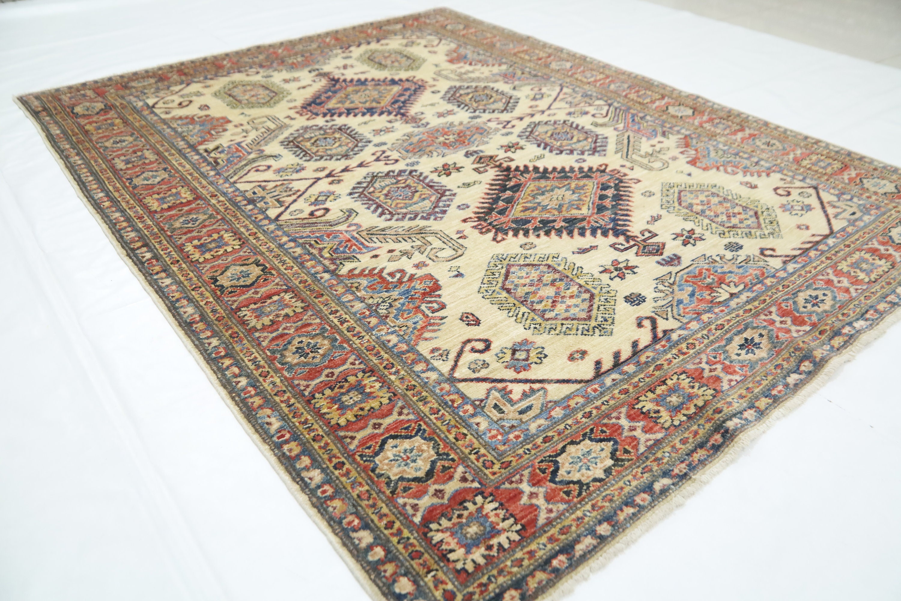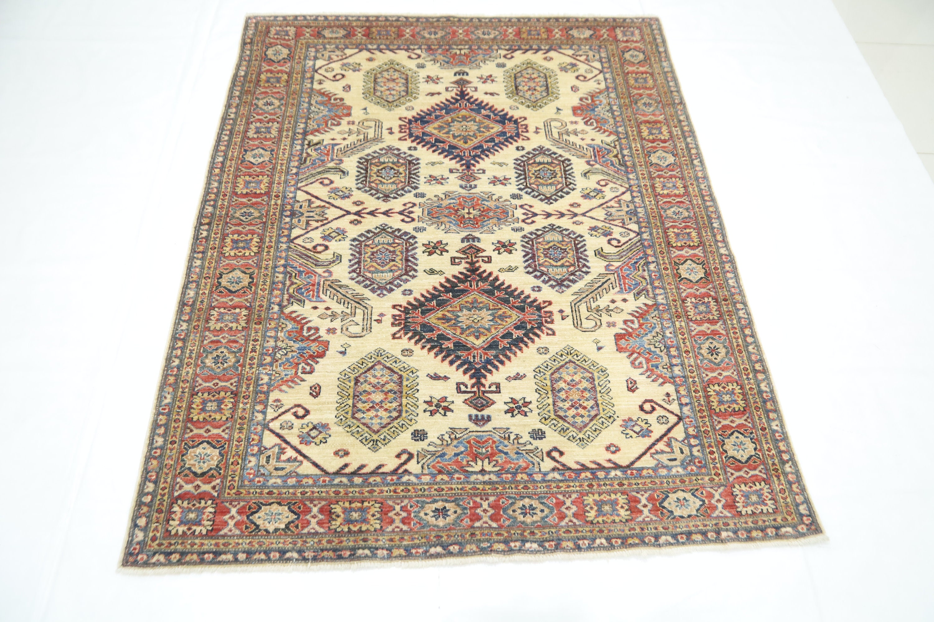 Kazak 5x7 Ft Area Rug - Beige Afghan Hand Knotted Geometric Organic Dye Wool Rug - 5x7 Kitchen Rug - Beige Bedroom Rug - Kids Room Rug