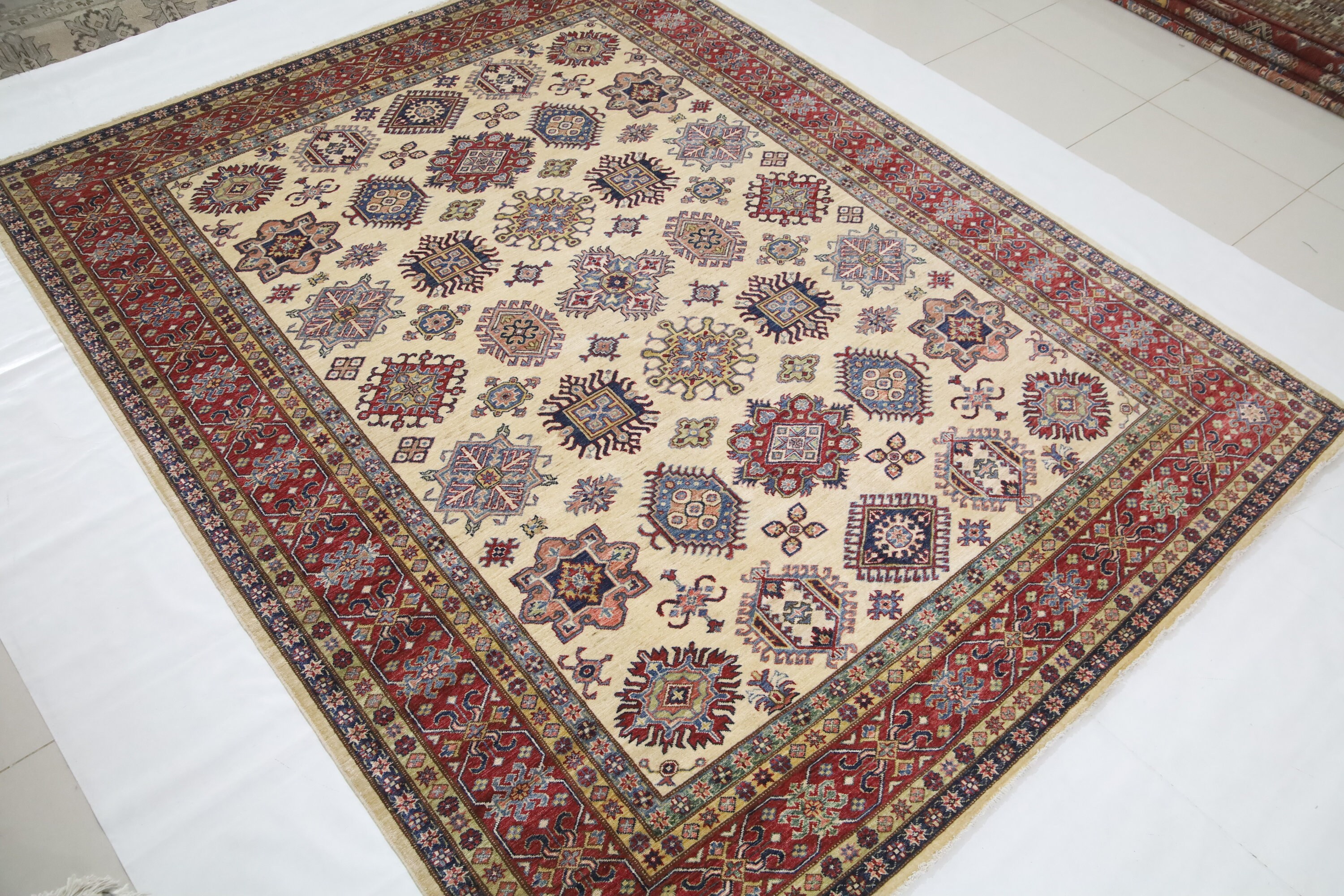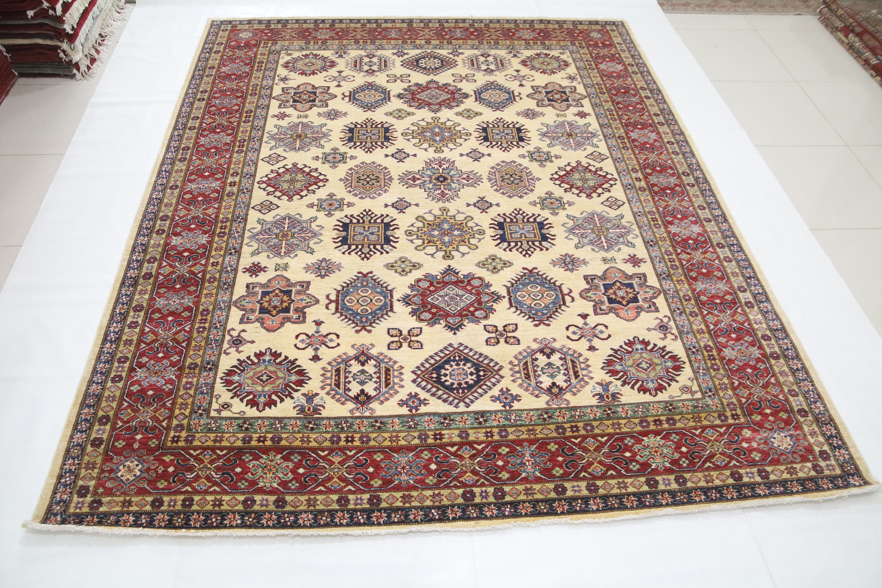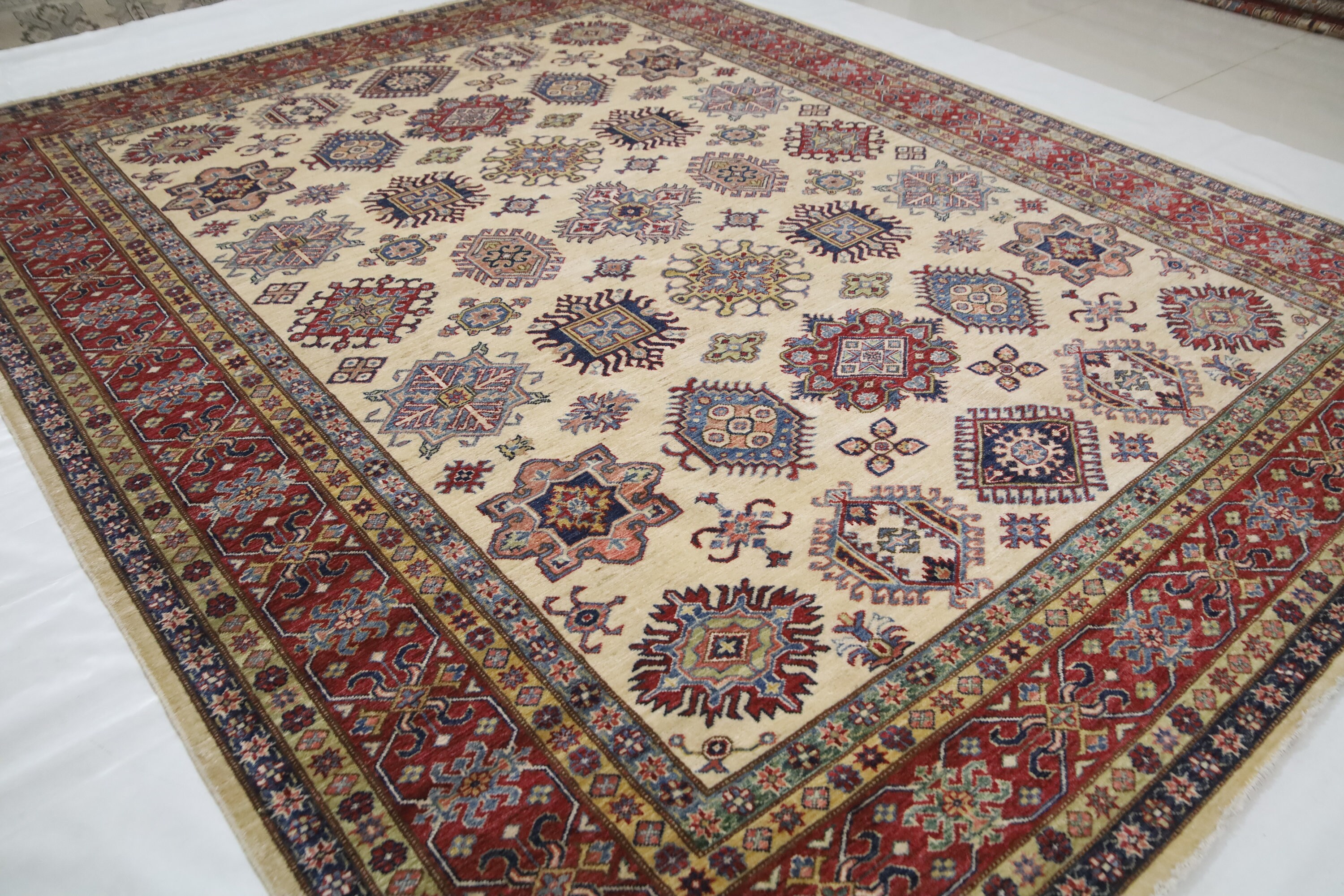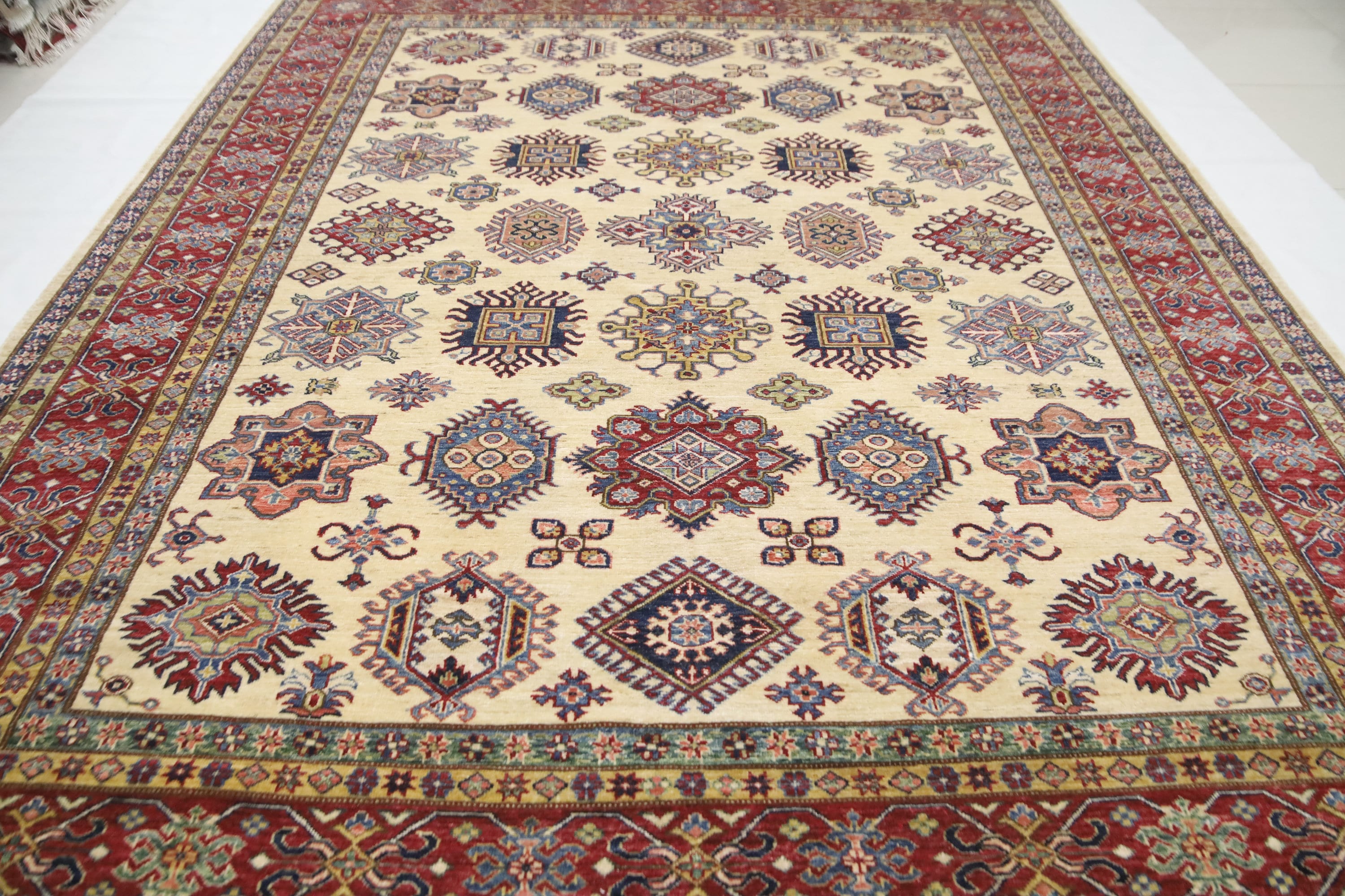 8x10 Beige Kazak Area Rug - Afghan Hand Made Geometric Design Organic Dye Wool Rug - Dining Room Rug - Living Room Rug - Bedroom Rug
