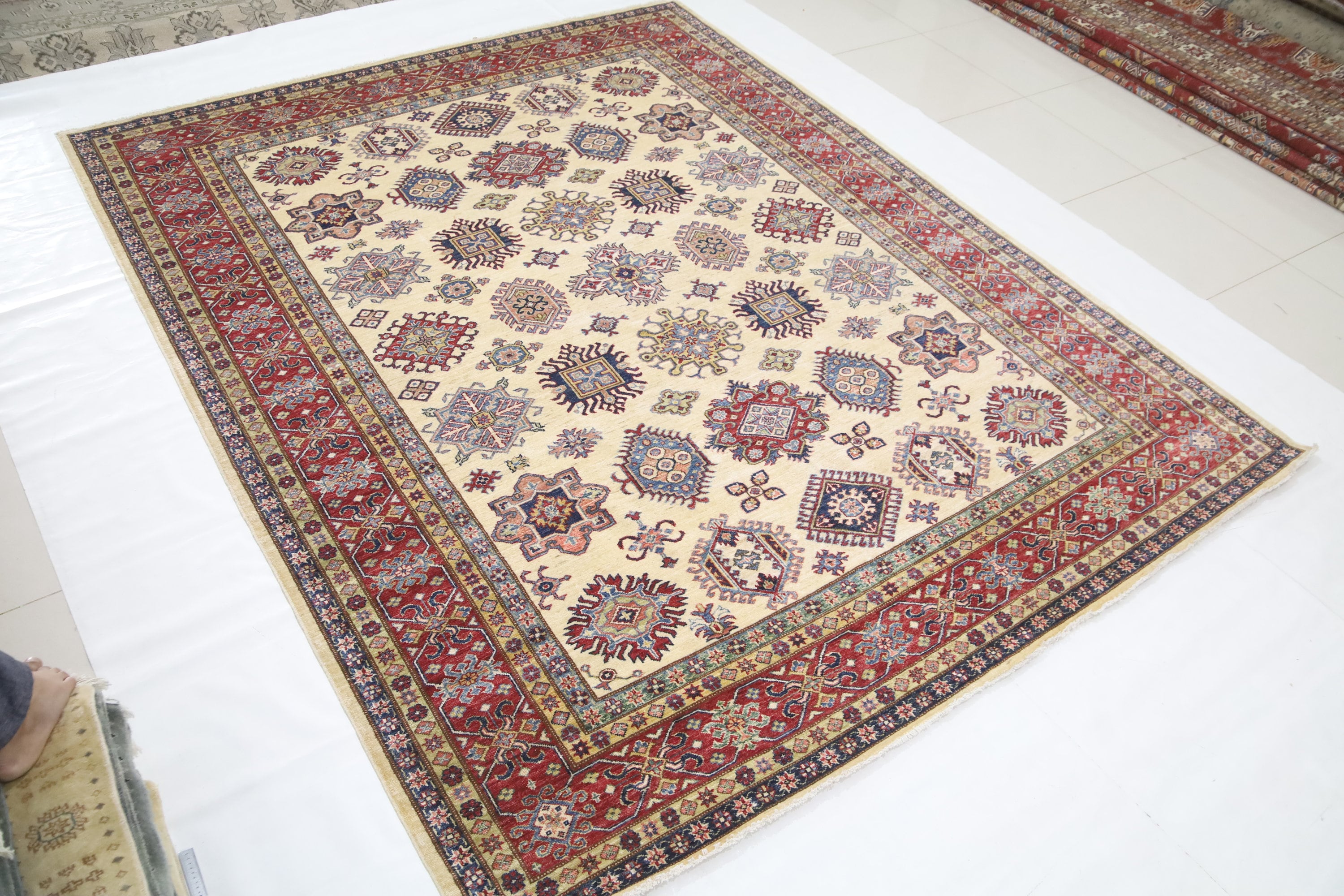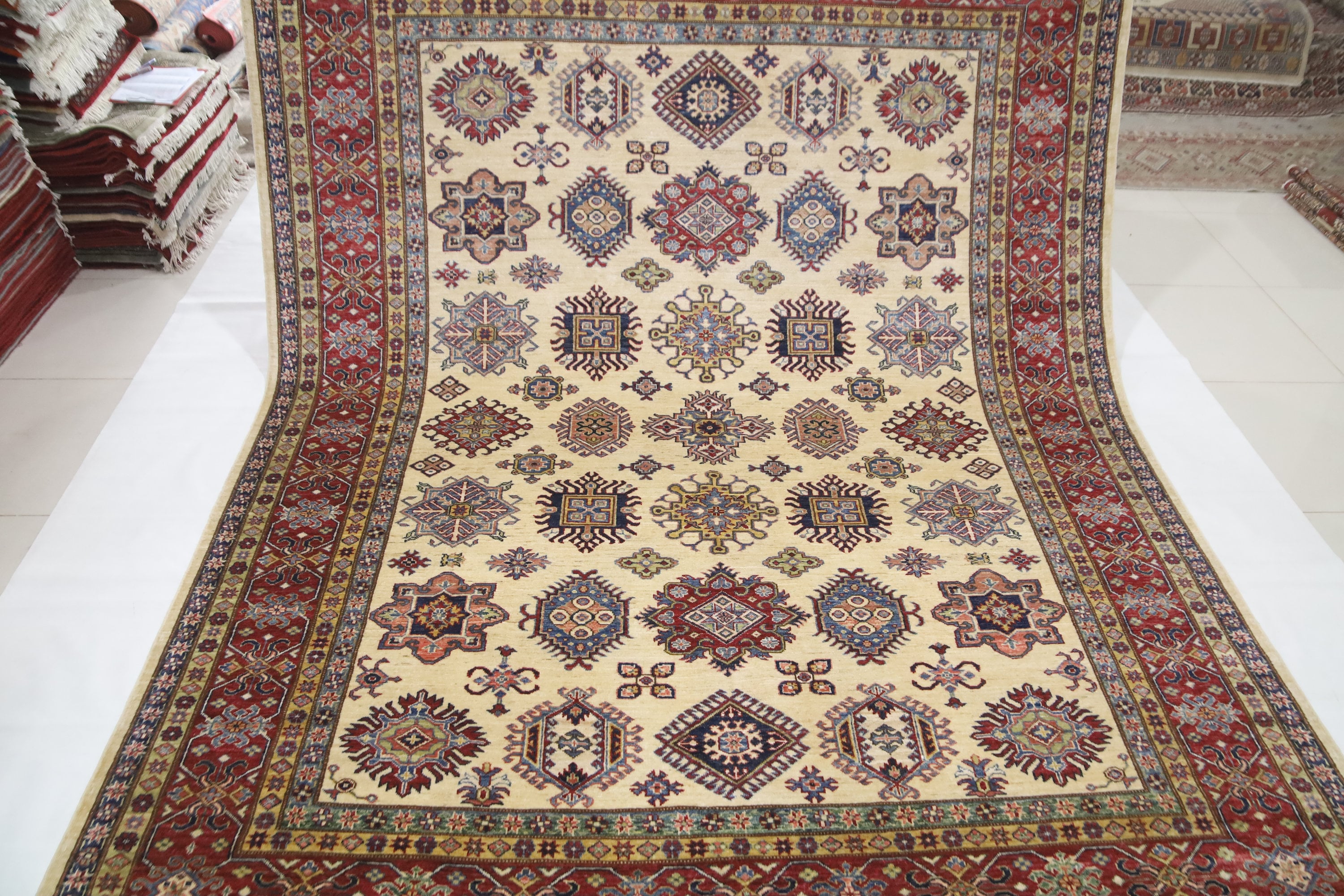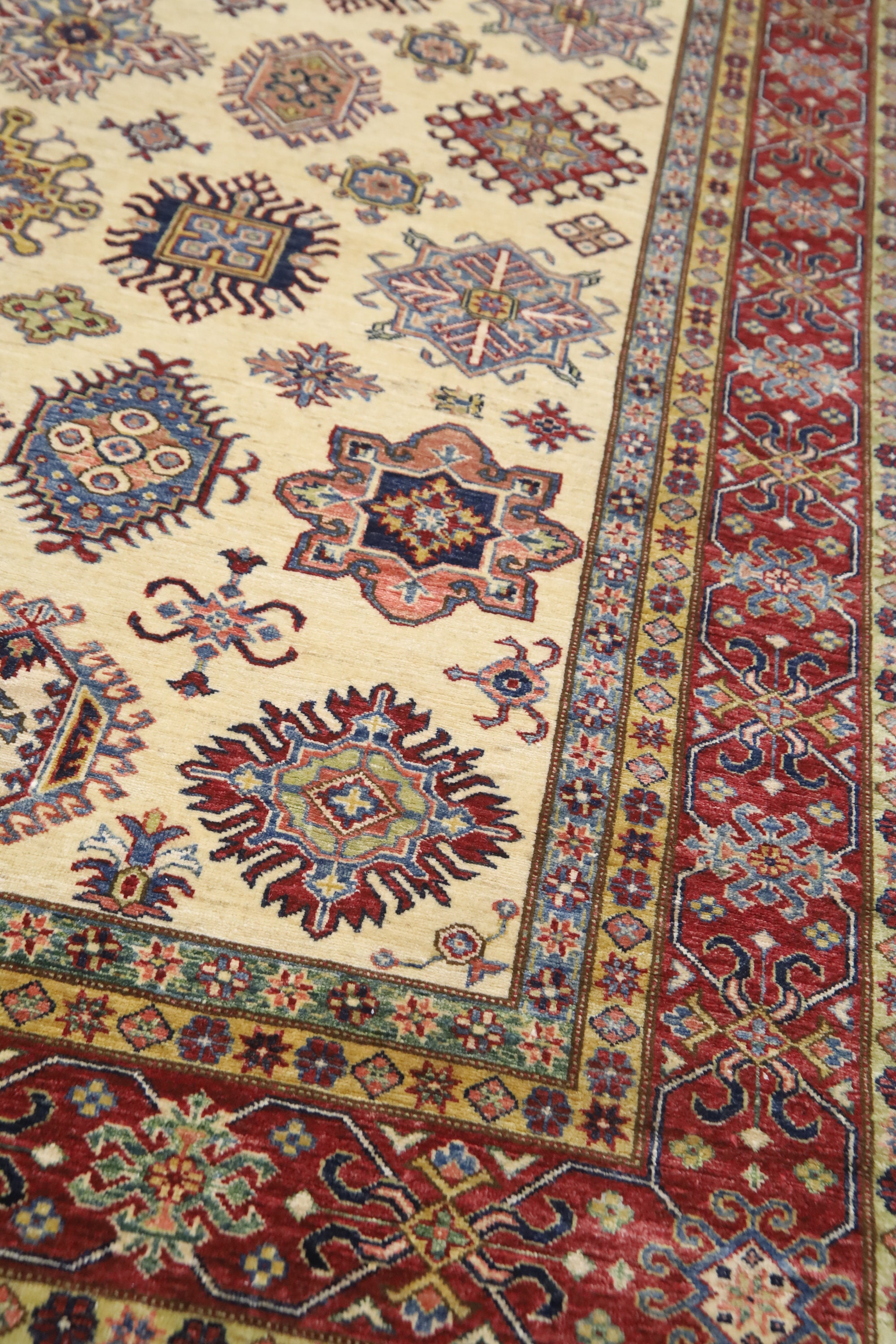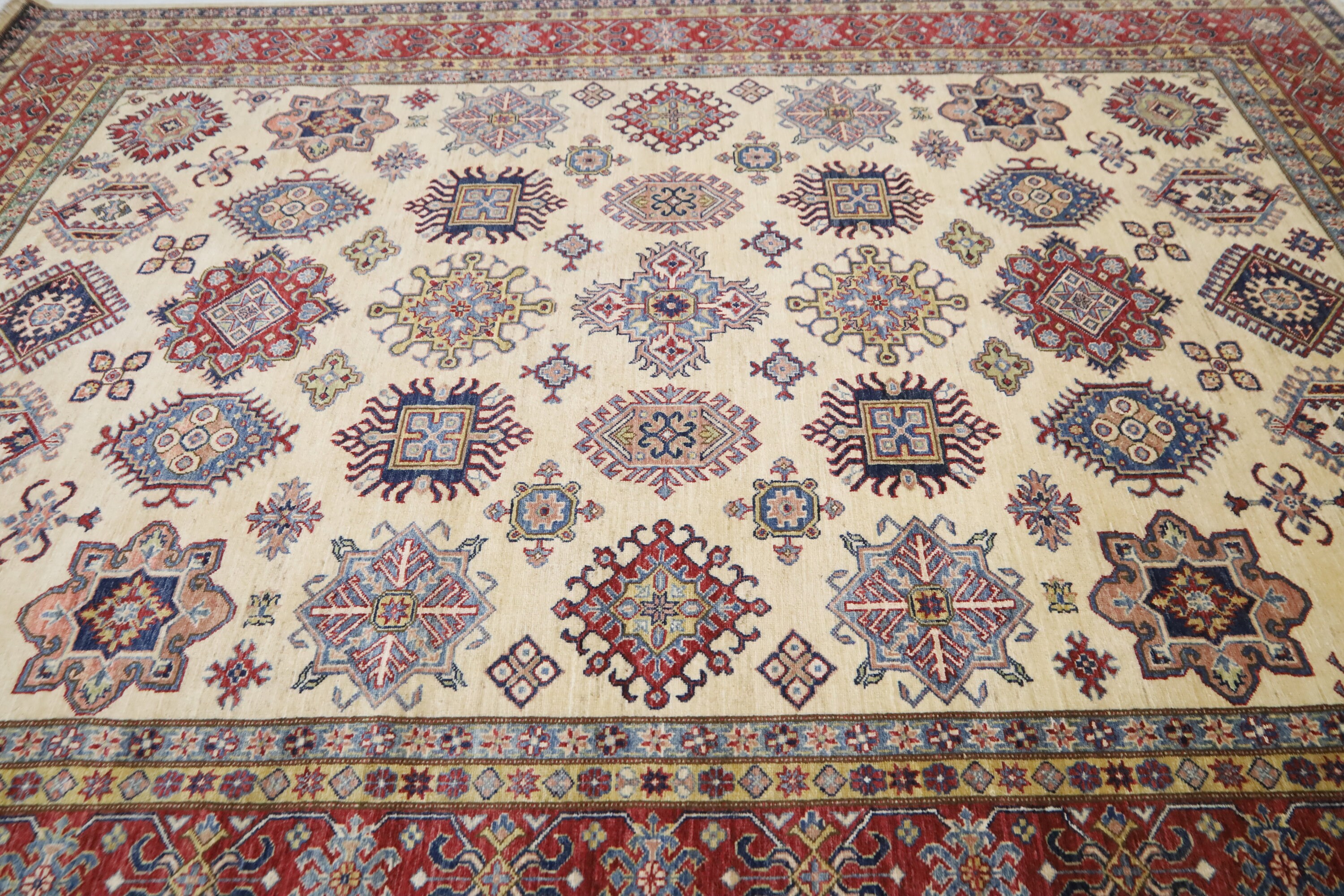 8x10 Beige Kazak Area Rug - Afghan Hand Made Geometric Design Organic Dye Wool Rug - Dining Room Rug - Living Room Rug - Bedroom Rug
