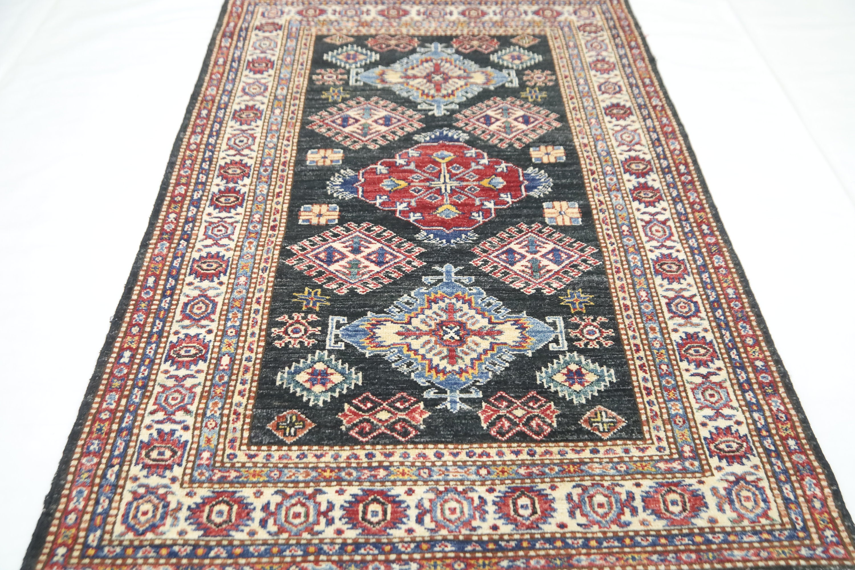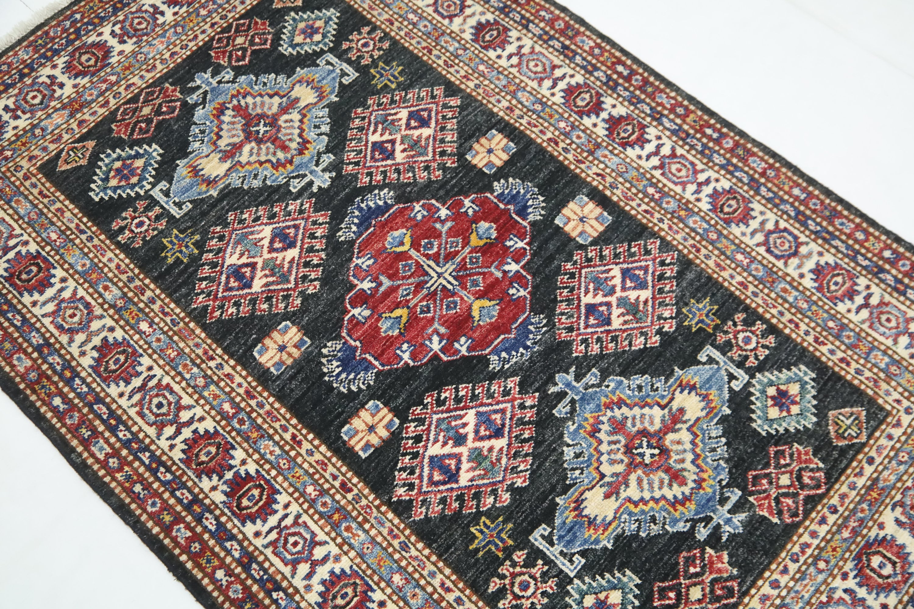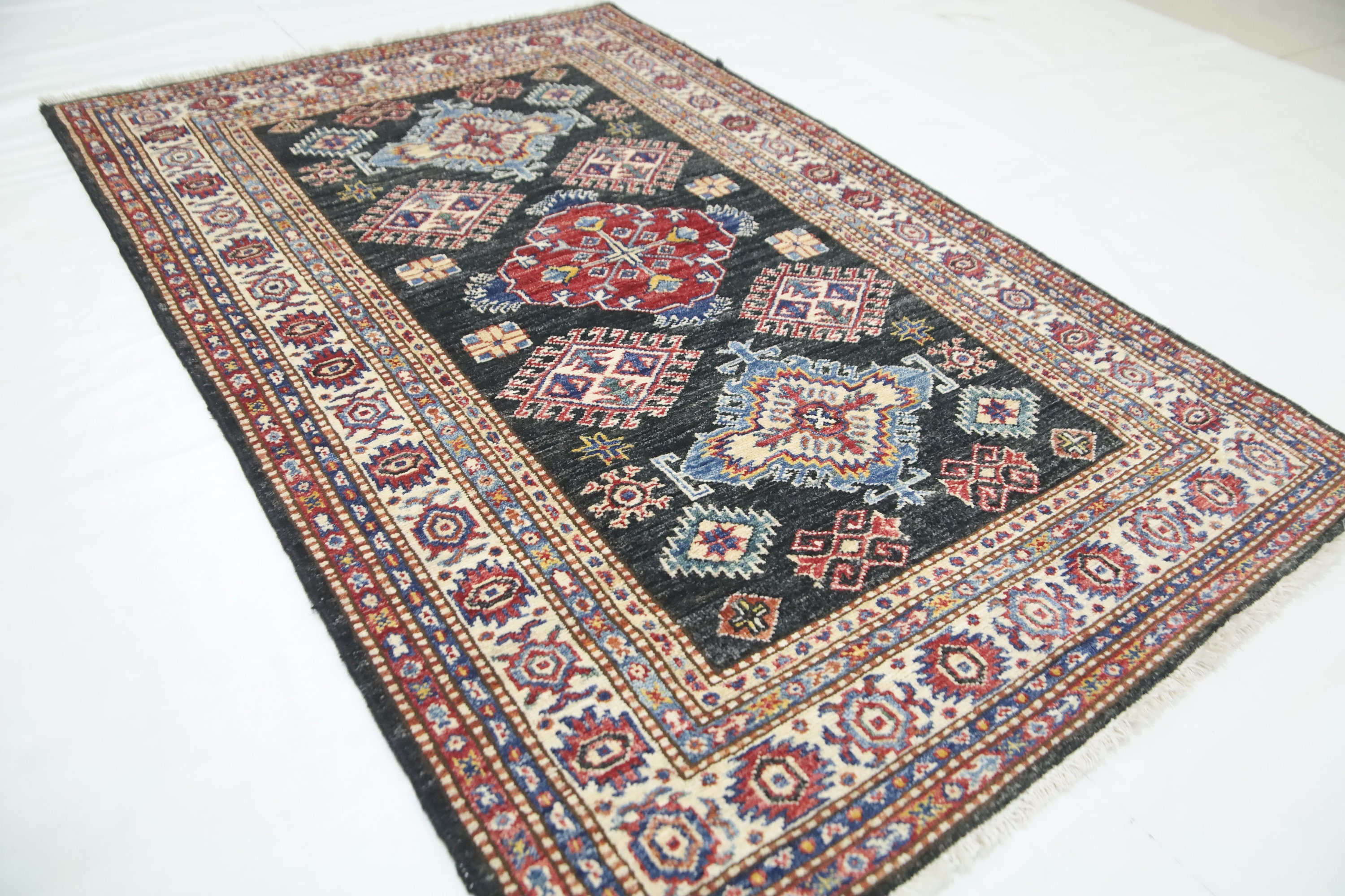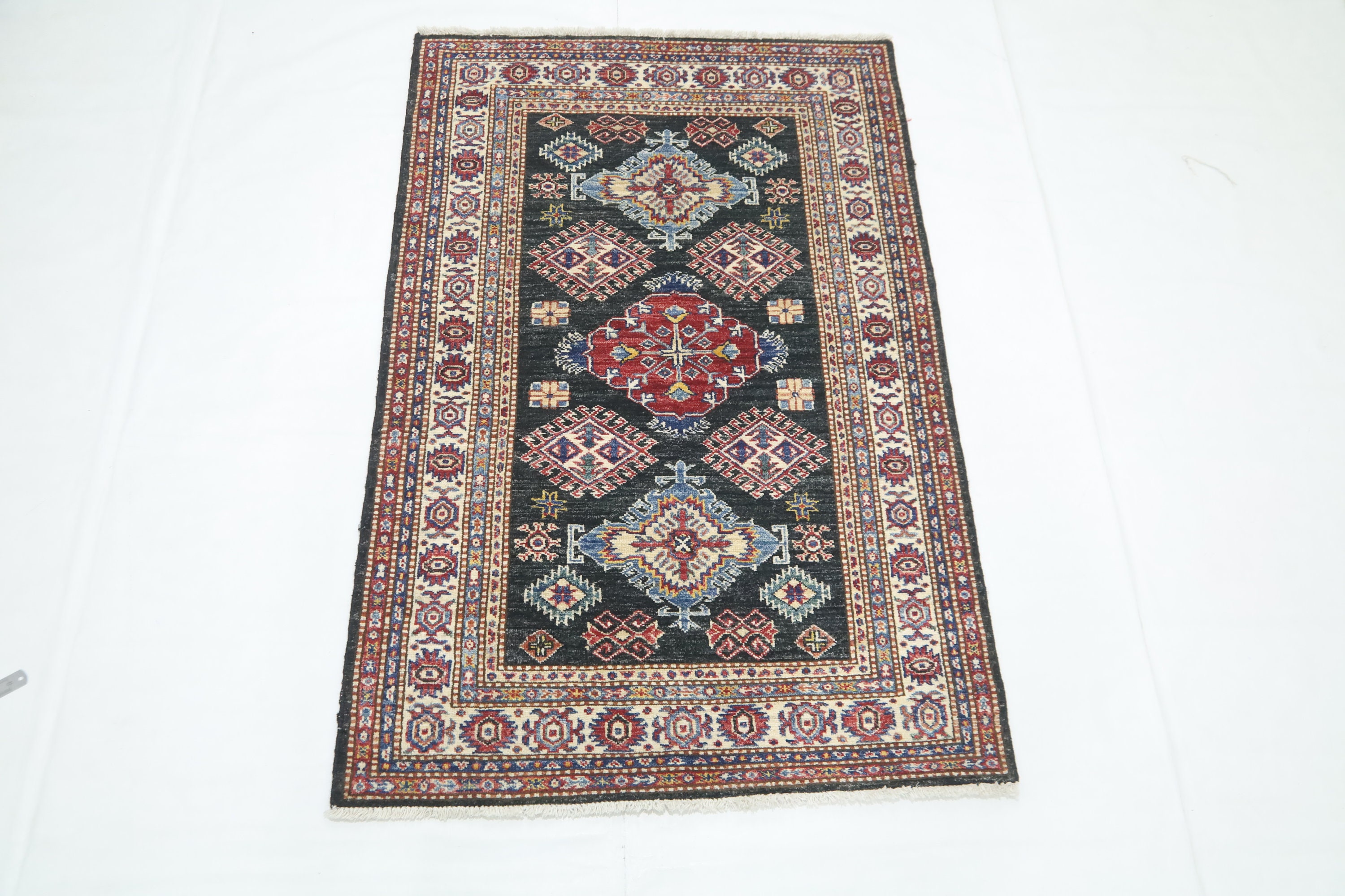 Black 3x5 Kazak Area Rug - Afghan Hand Made Geometric Design Fine Quality Wool Rug - Caucasian Rug - Kitchen Rug - Kids Room Rug - Foyer Rug
