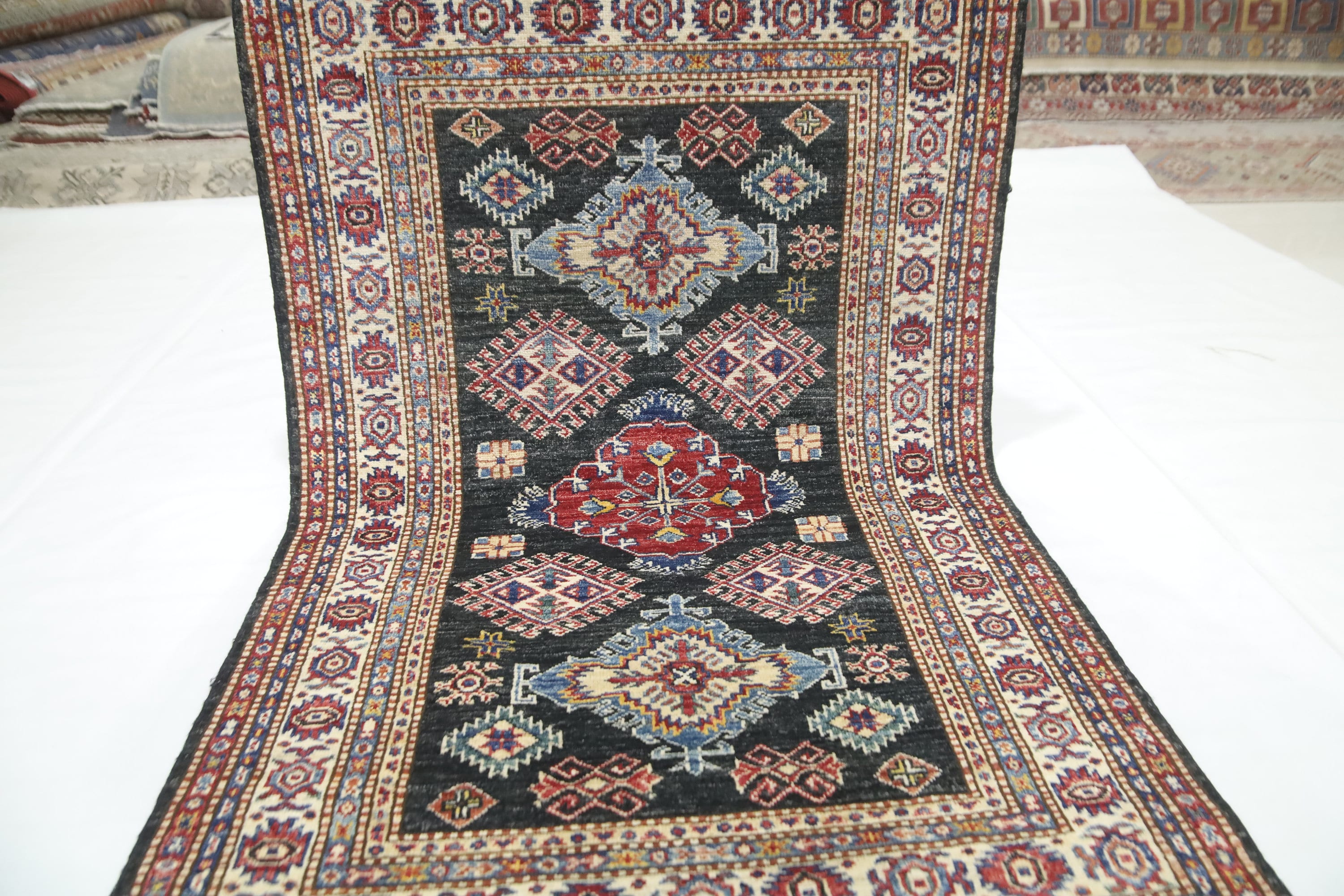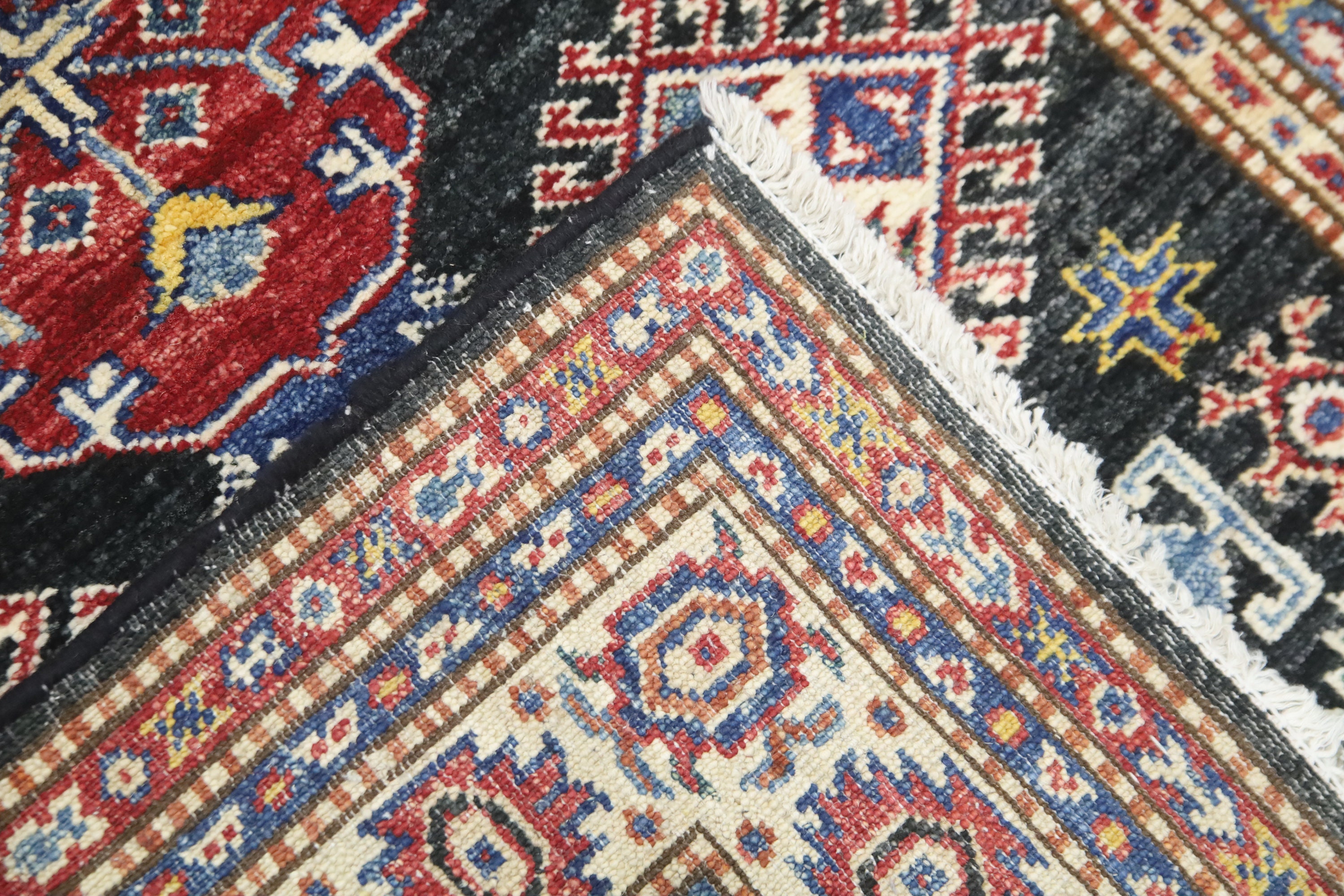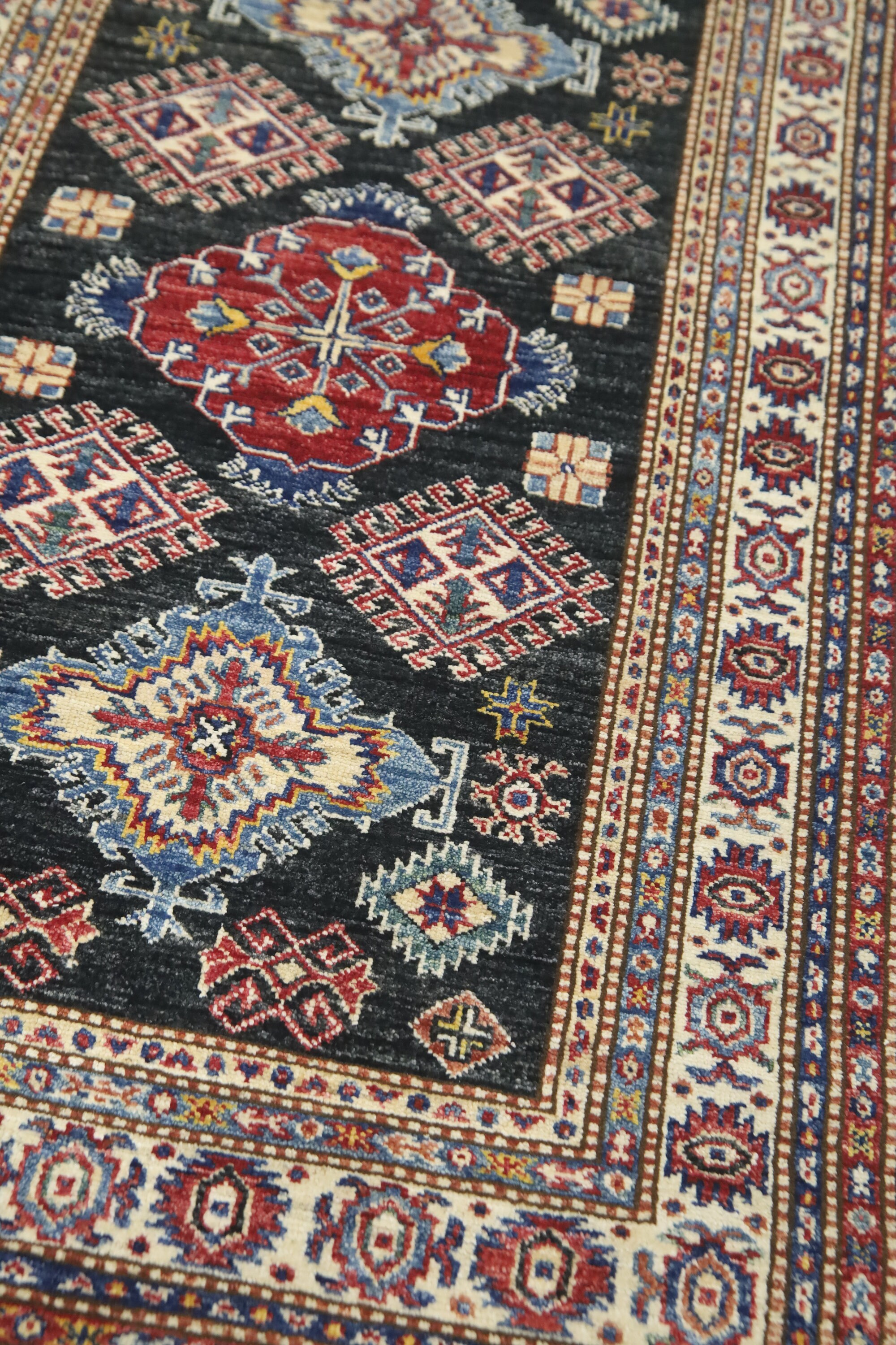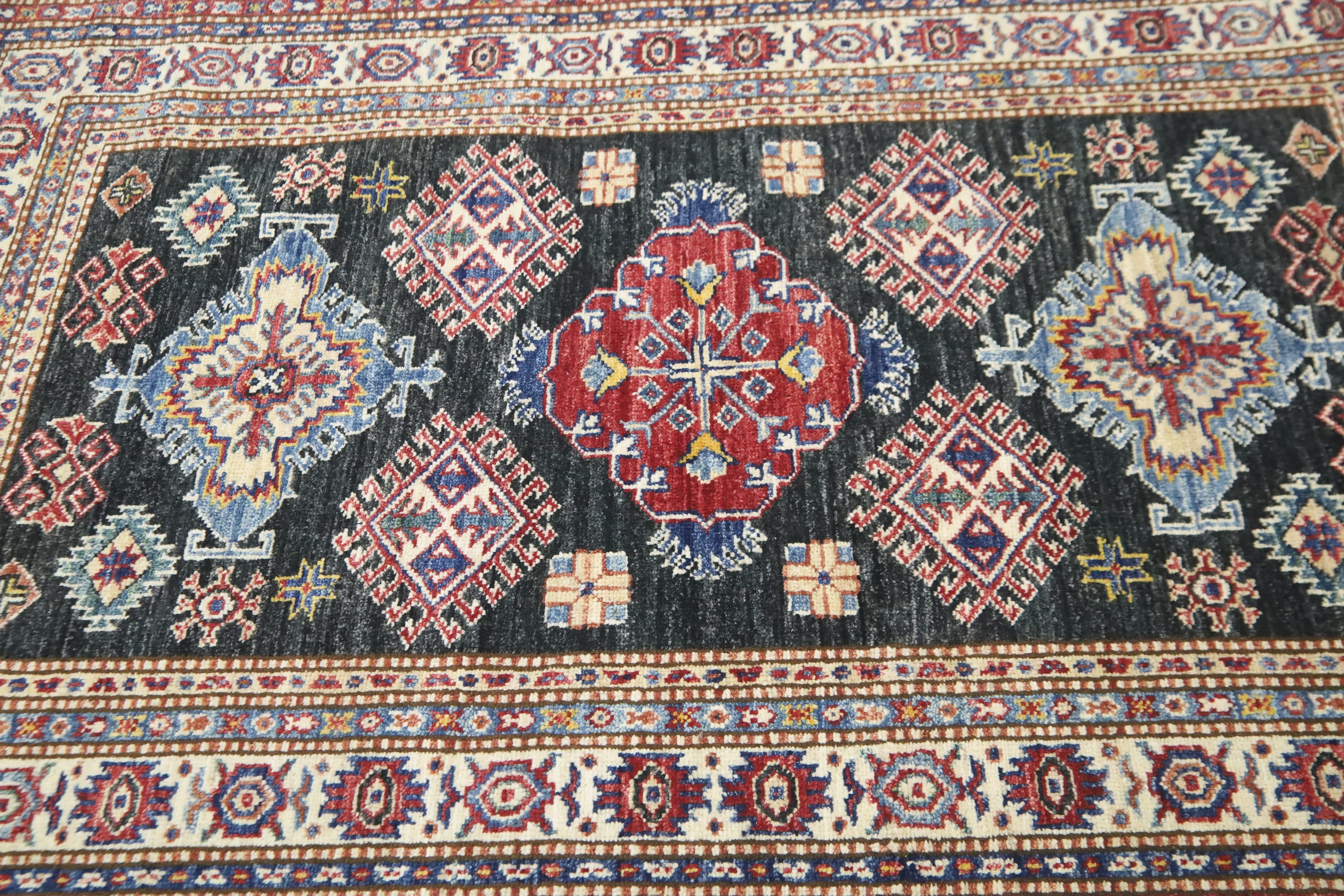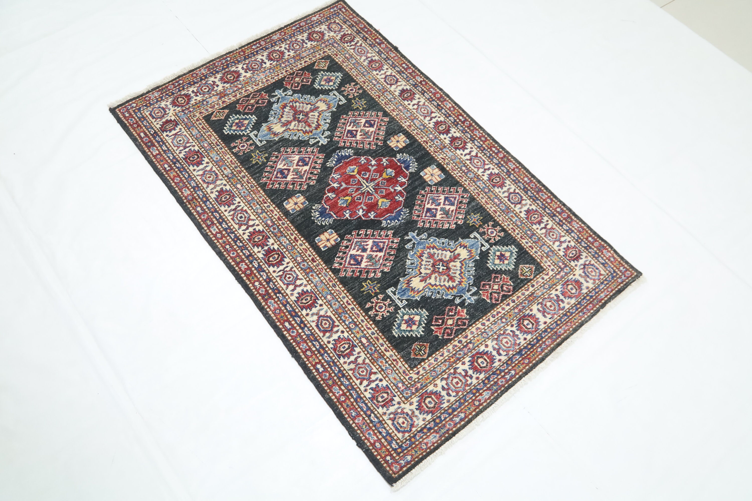 Black 3x5 Kazak Area Rug - Afghan Hand Made Geometric Design Fine Quality Wool Rug - Caucasian Rug - Kitchen Rug - Kids Room Rug - Foyer Rug