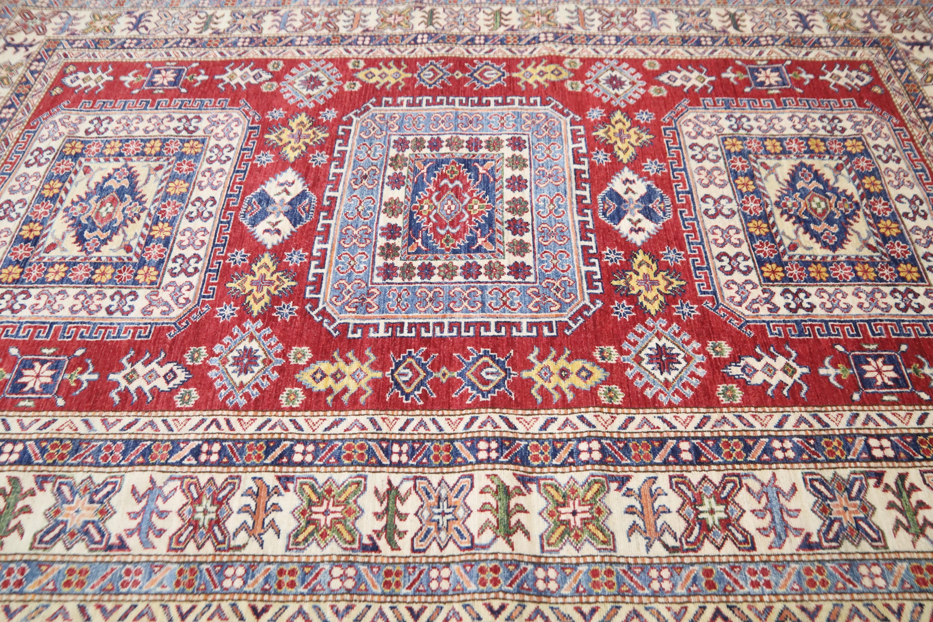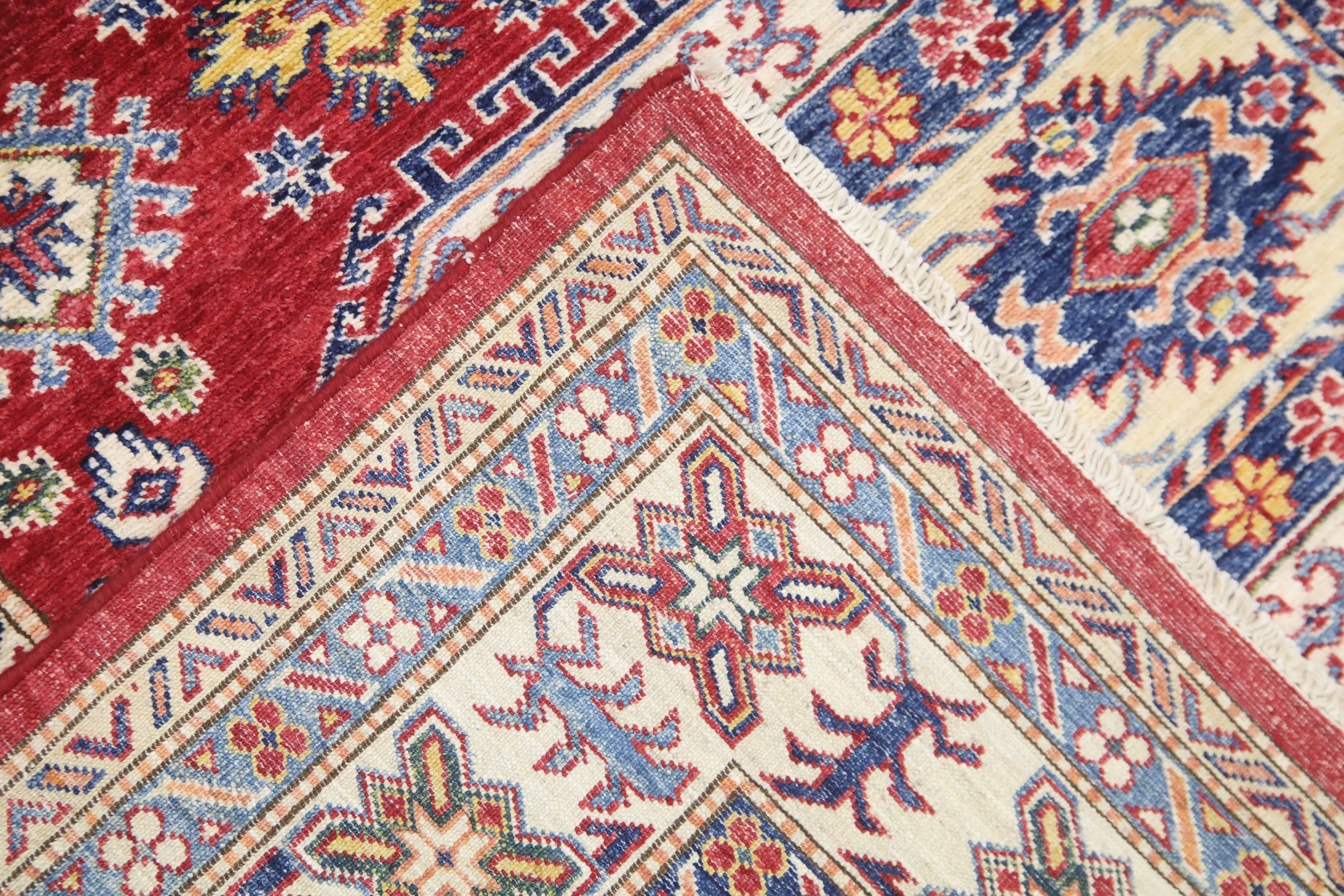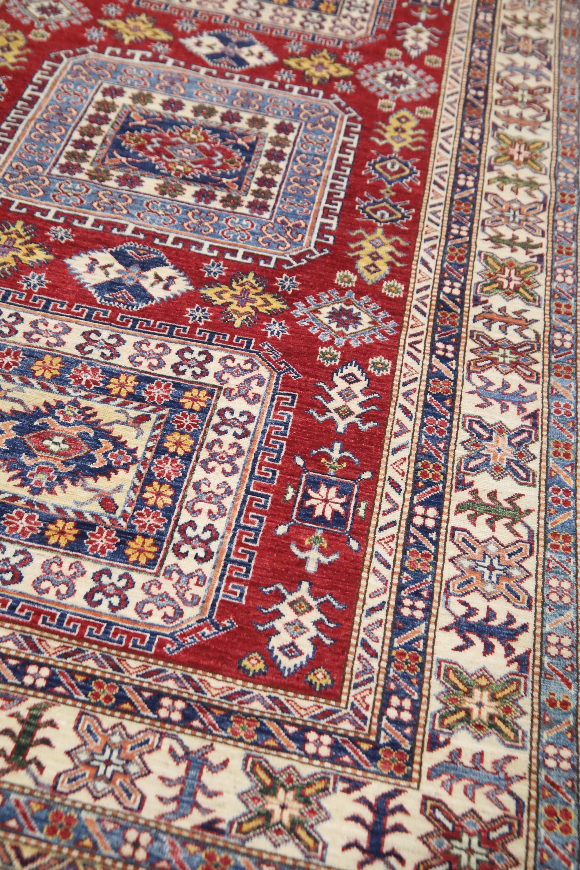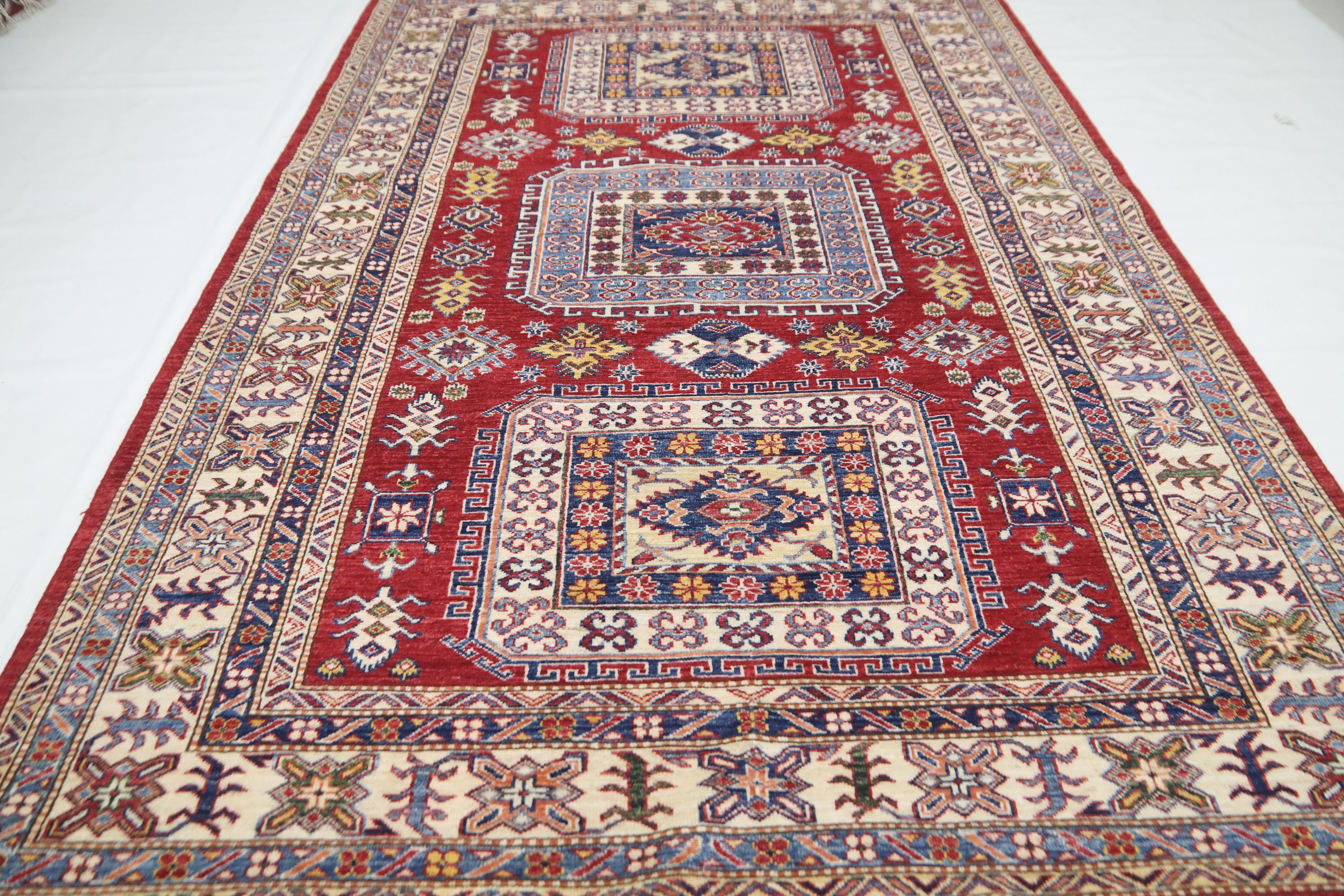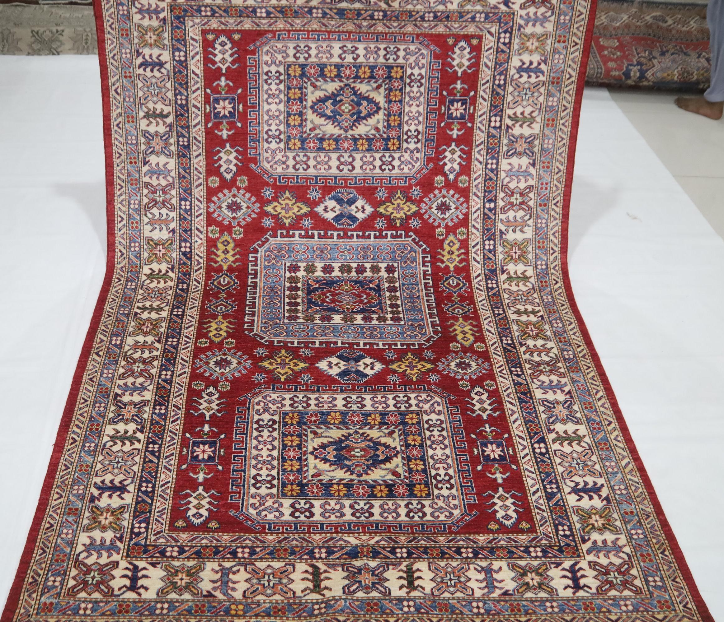 5x8 Kazak Red Area Rug - Afghan Hand Made Traditional Fine Quality Wool Rug - Geometric Rug - Entryway Rug - Bedroom Rug - Kitchen Rug