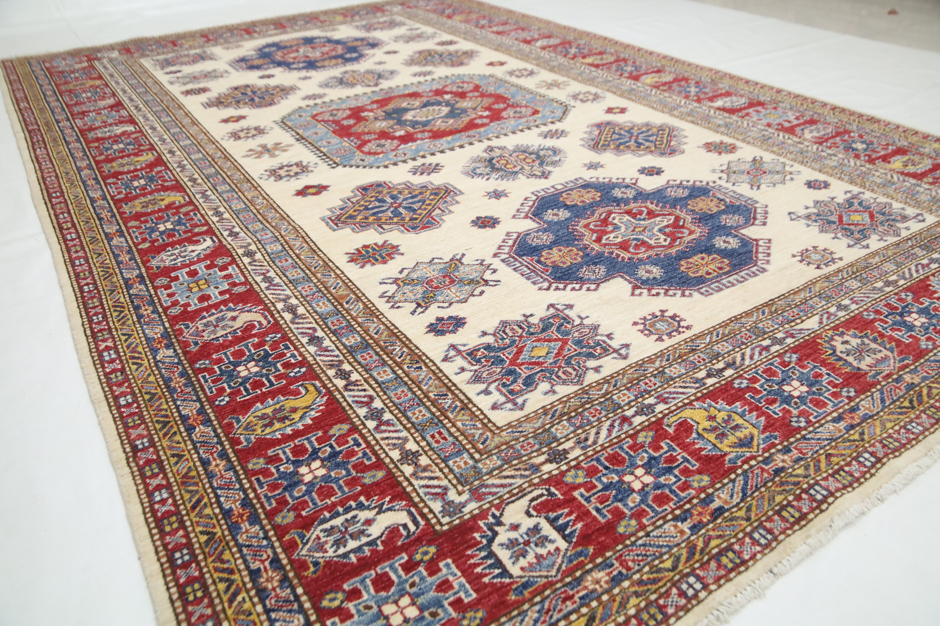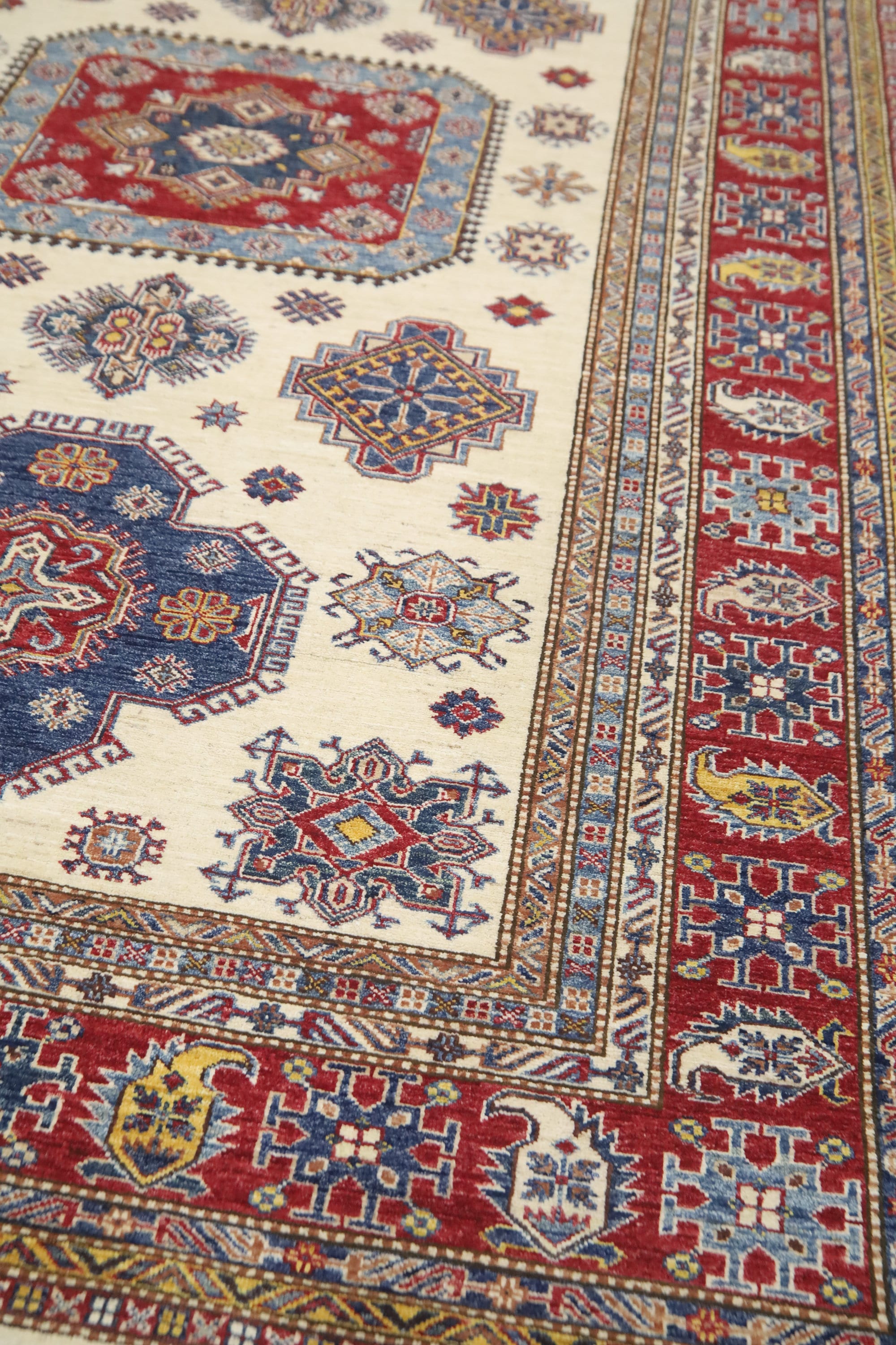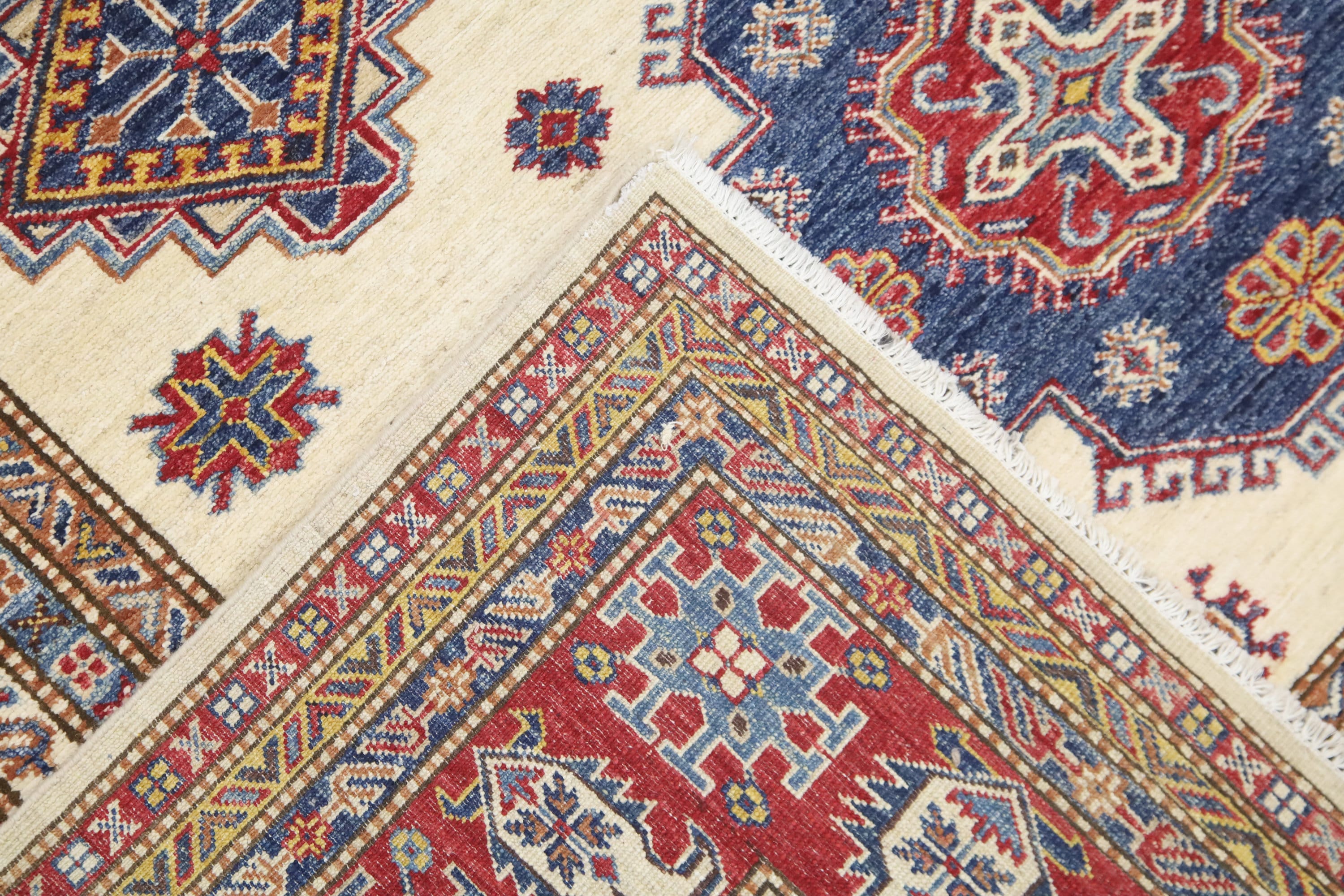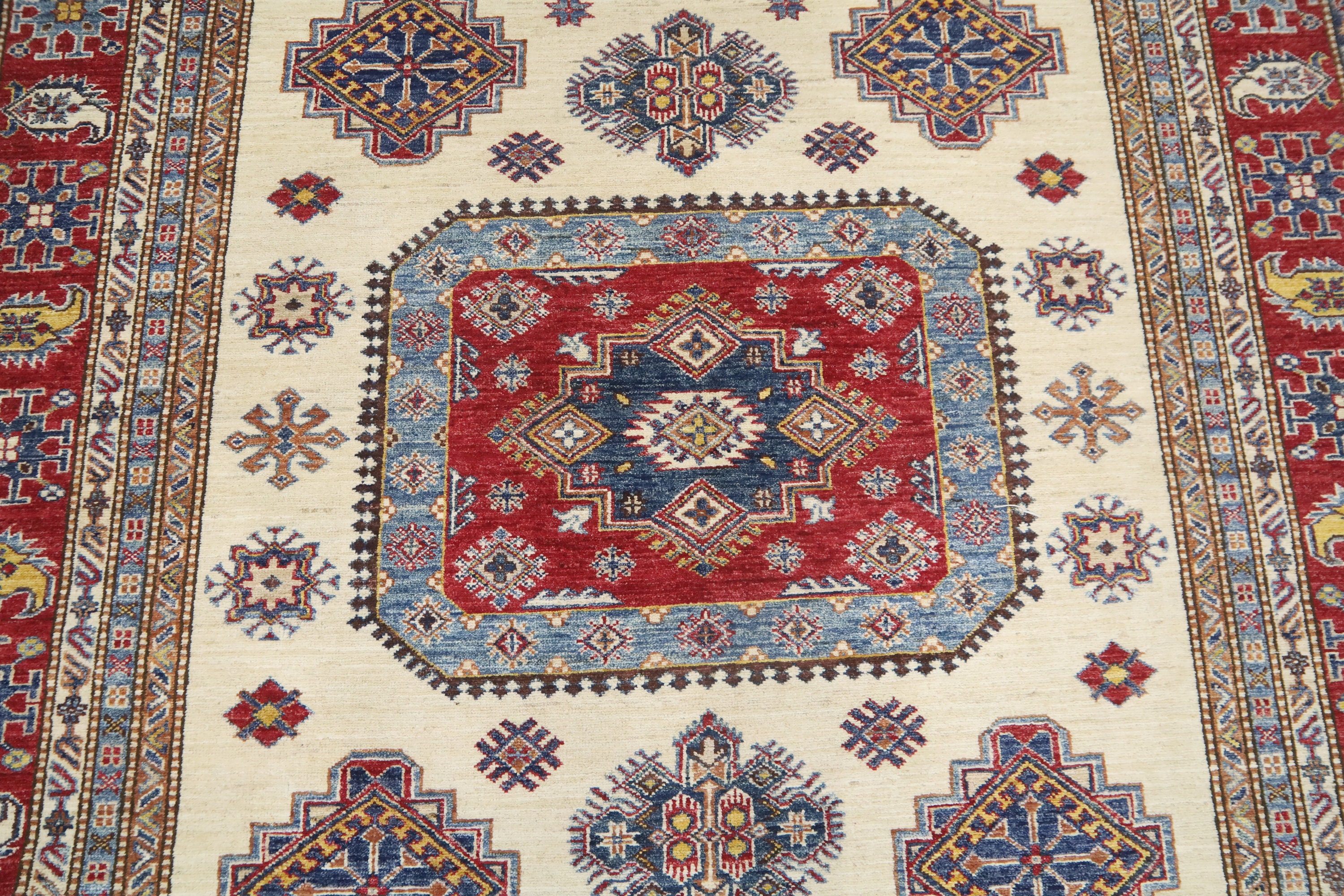 7x10 Beige Kazak Area Rug - Afghan Hand Made Geometric Design Fine Quality Wool Rug - Bedroom Rug - Living Room Rug - Dining Room Rug