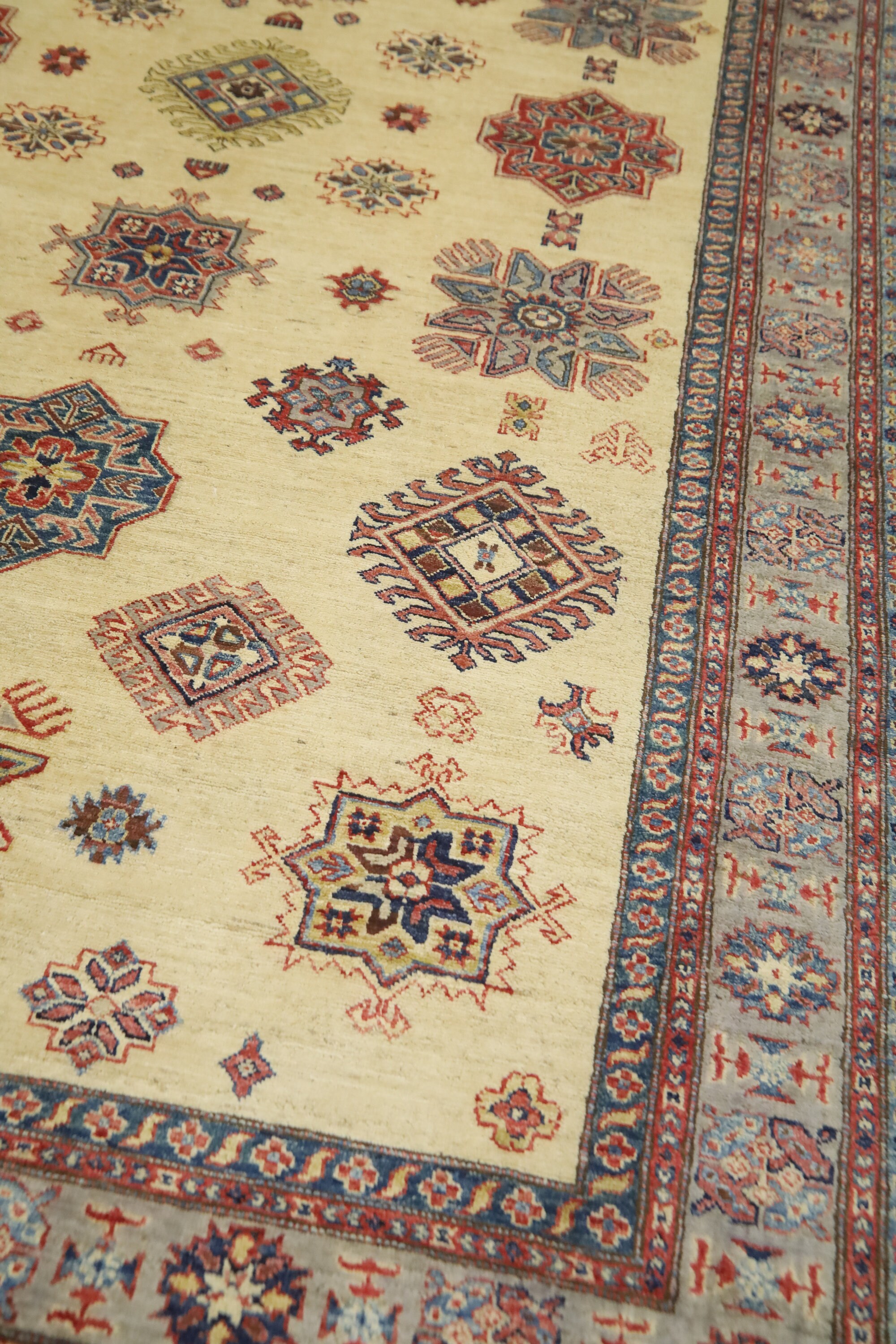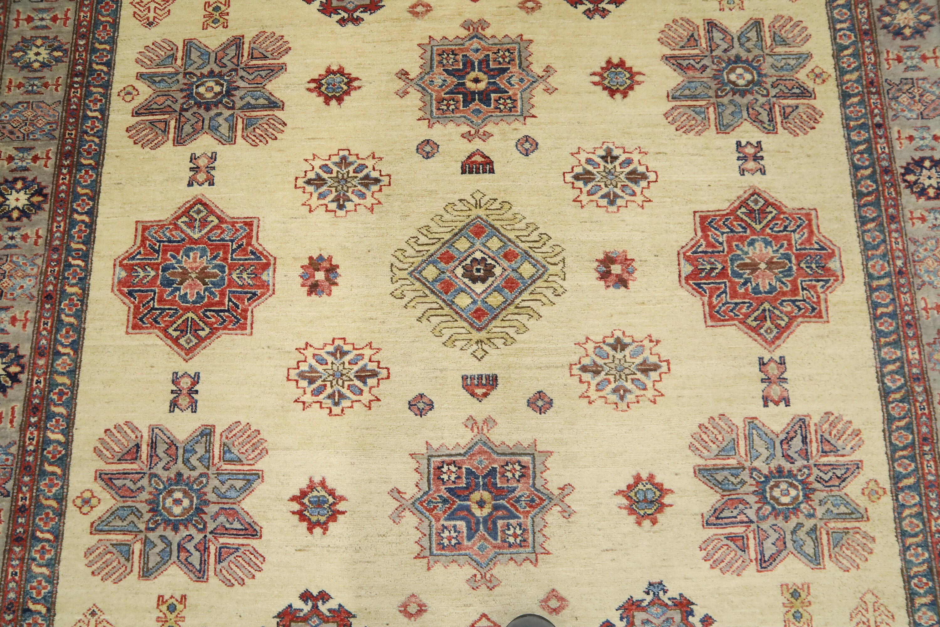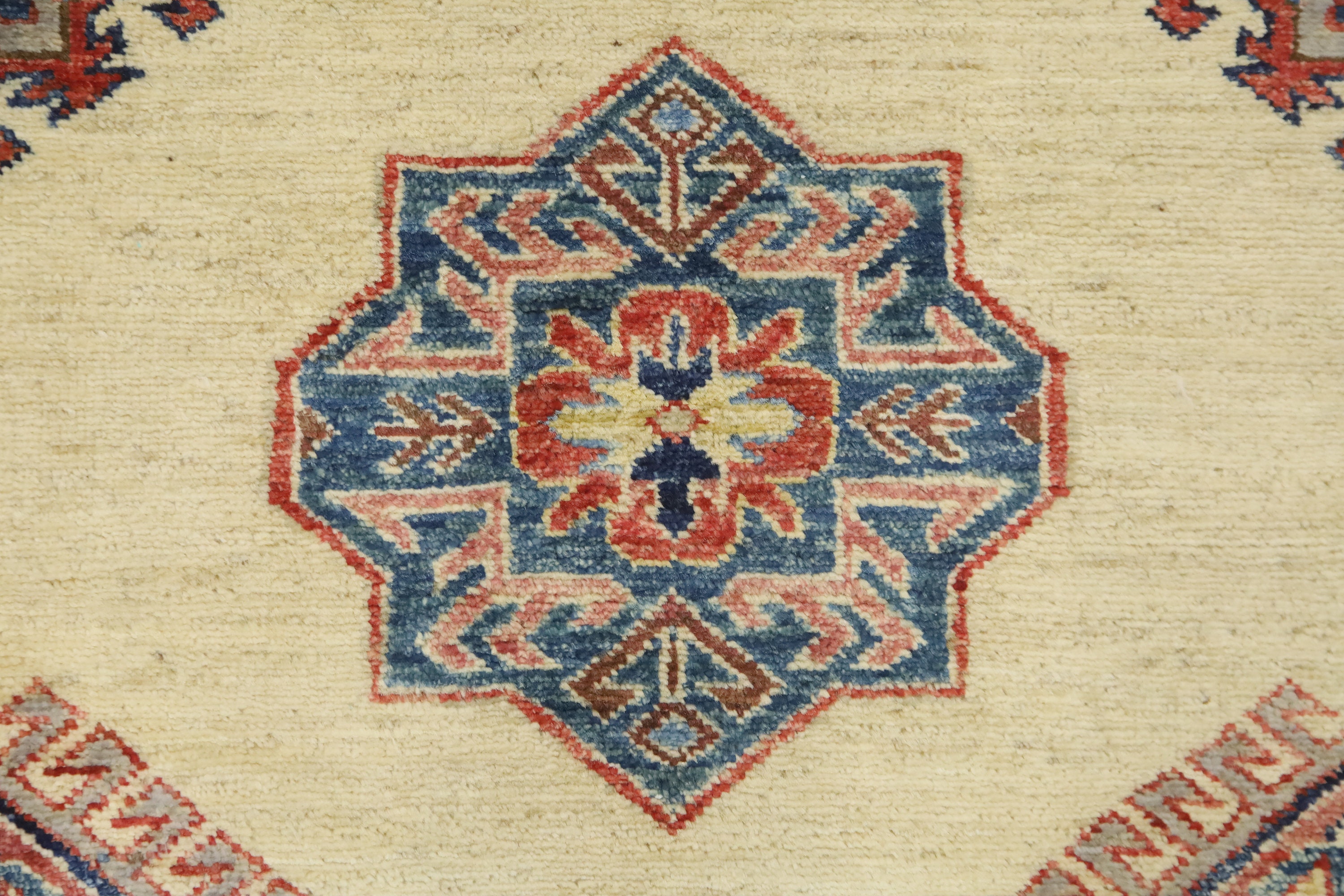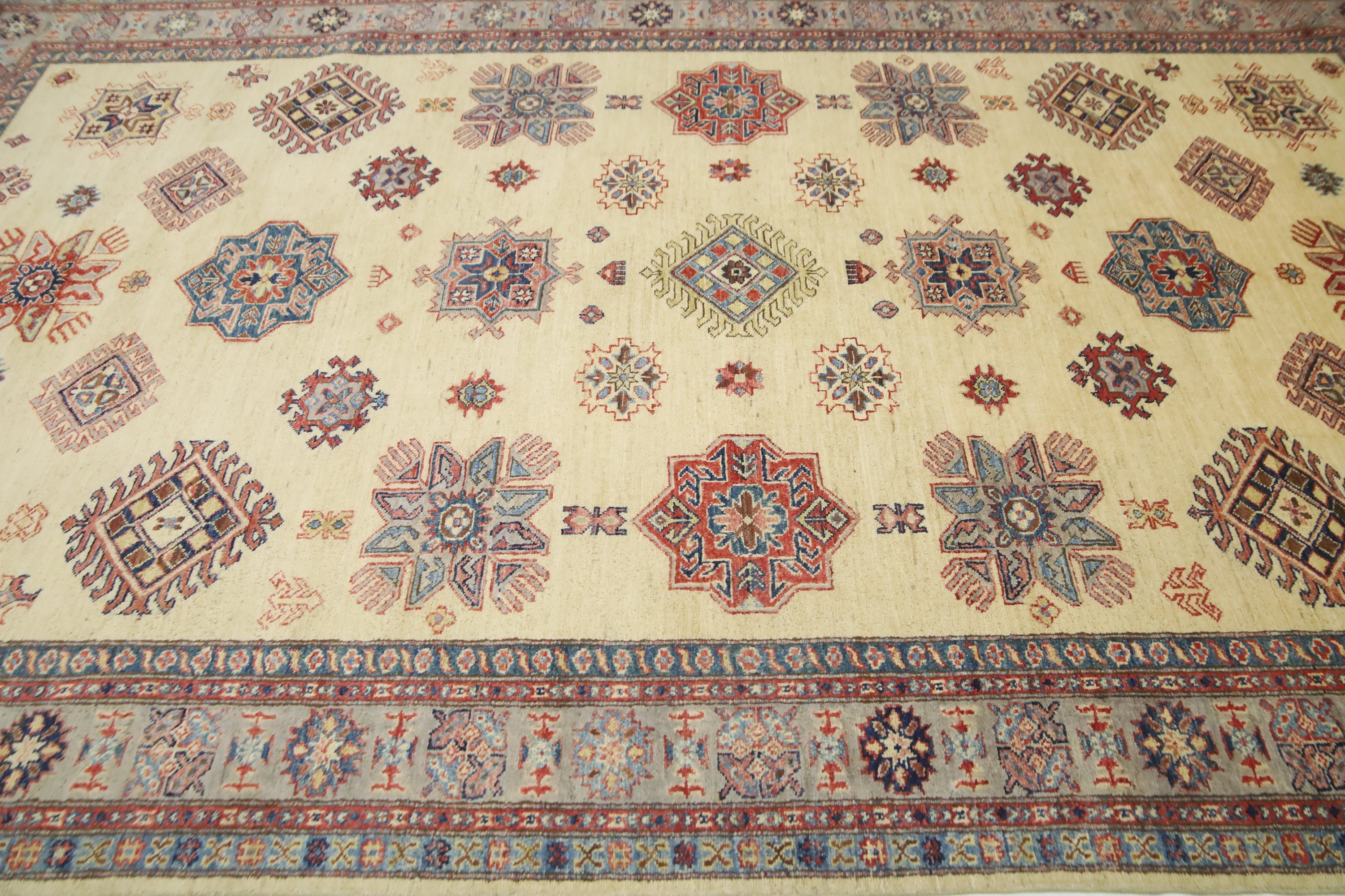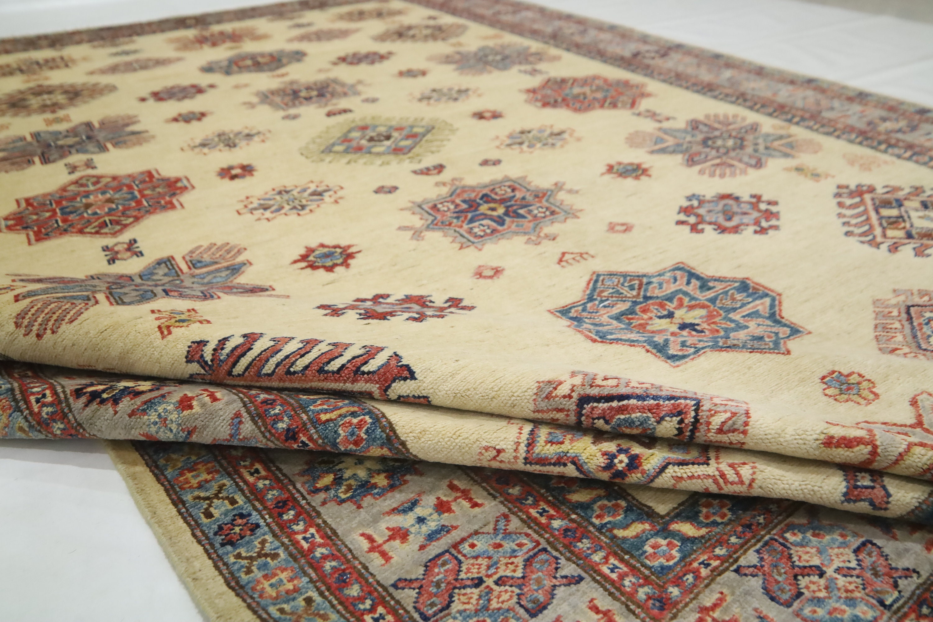 6'3x10 Kazak Area Rug - Beige Wool Rug - Afghan Hand Knotted Wool Rug - Geometric Rug - Traditional Rug - Bedroom Rug - Living Room Rug