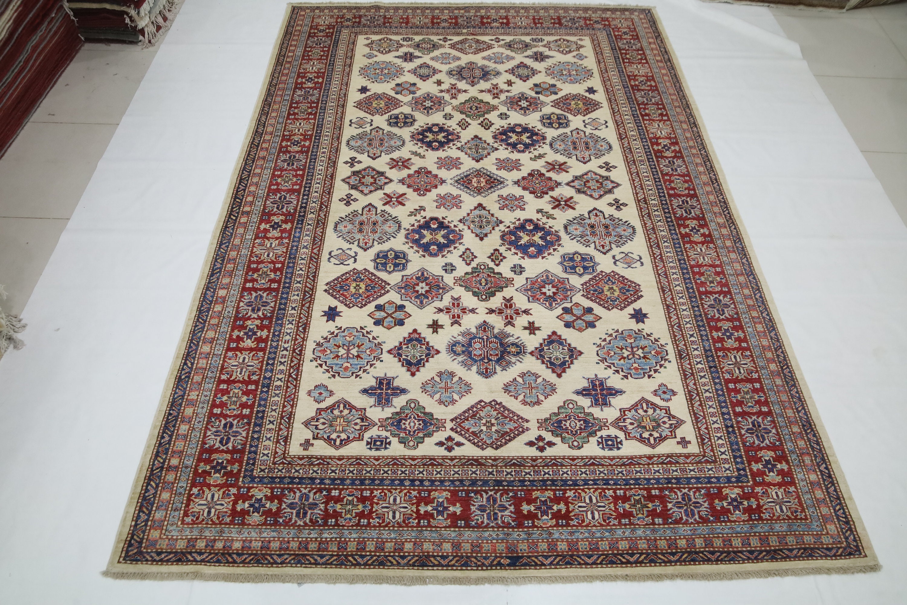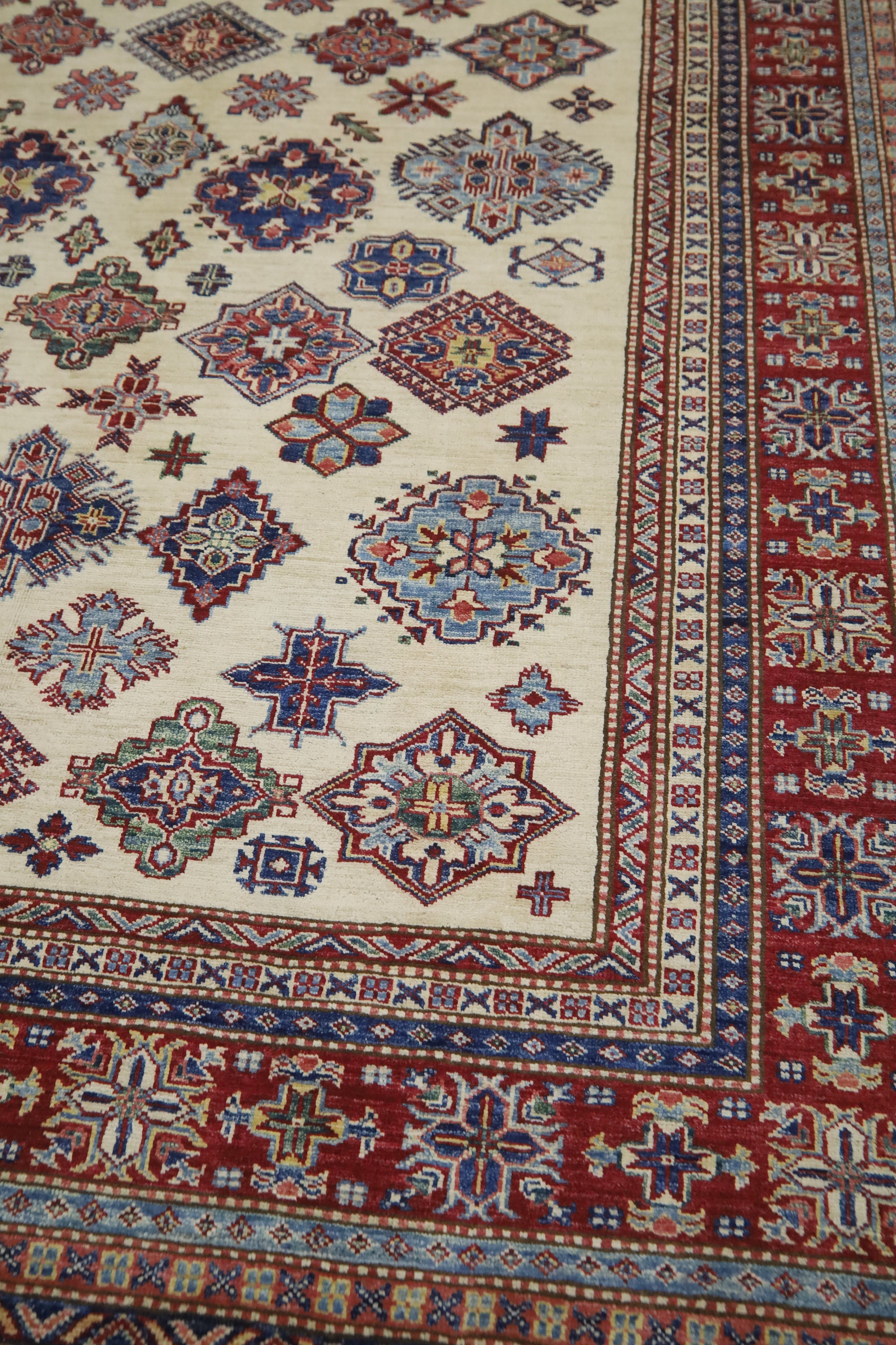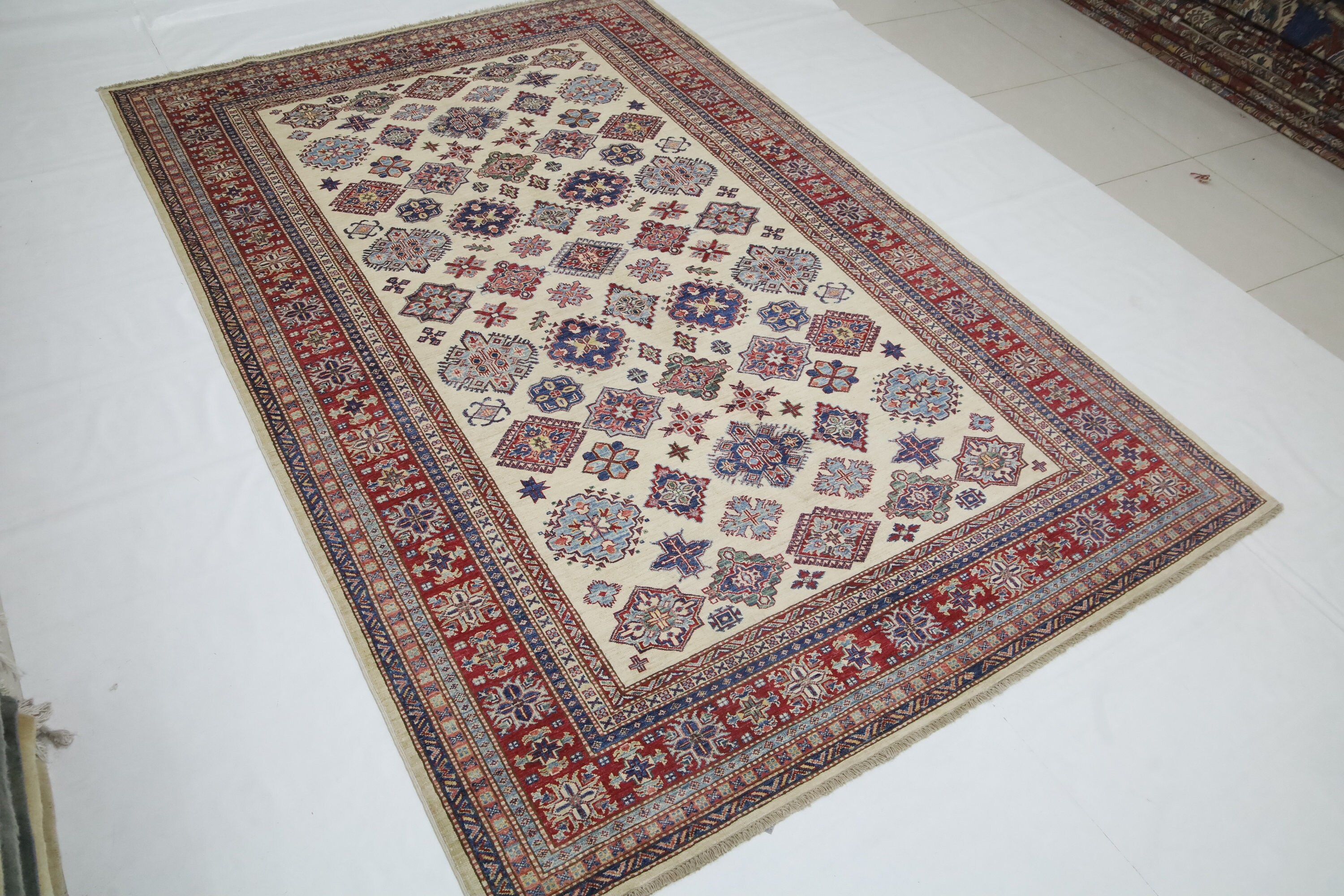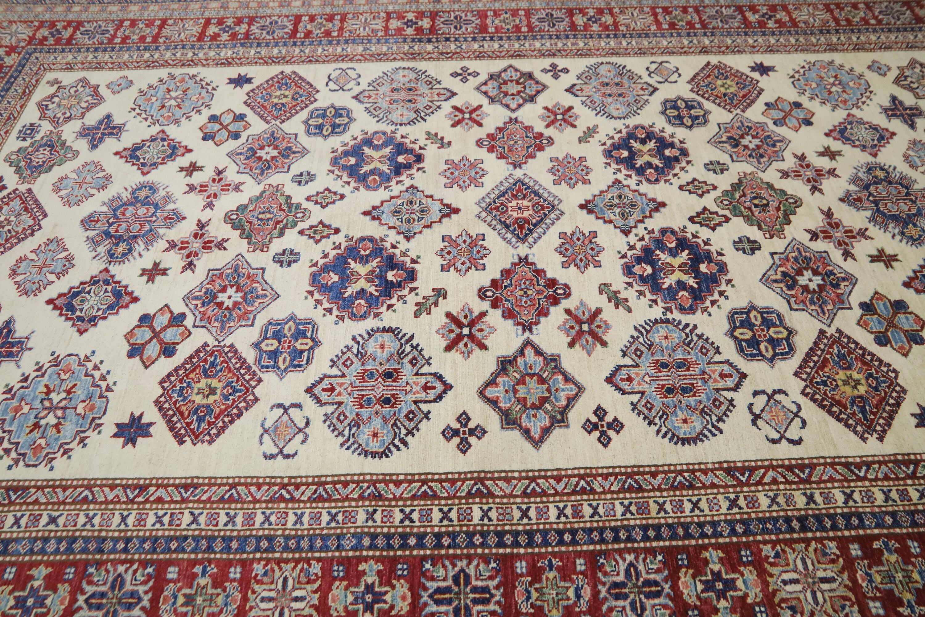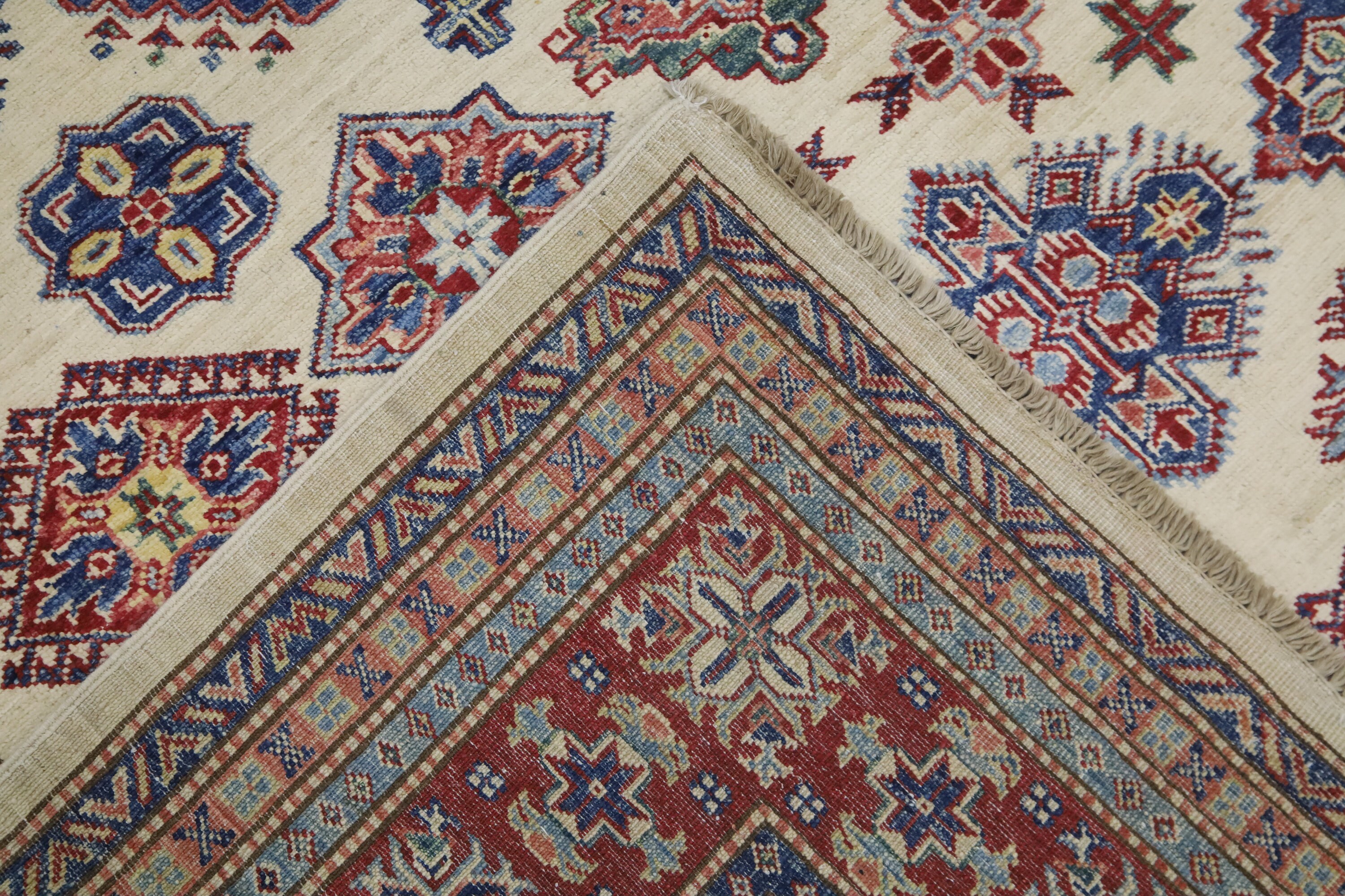Geometric Kazak 7x10 Area Rug - Afghan Hand Made Traditional Fine Quality Wool Rug - 7x10 Bedroom Rug - Beige Office Rug - Living Room Rug