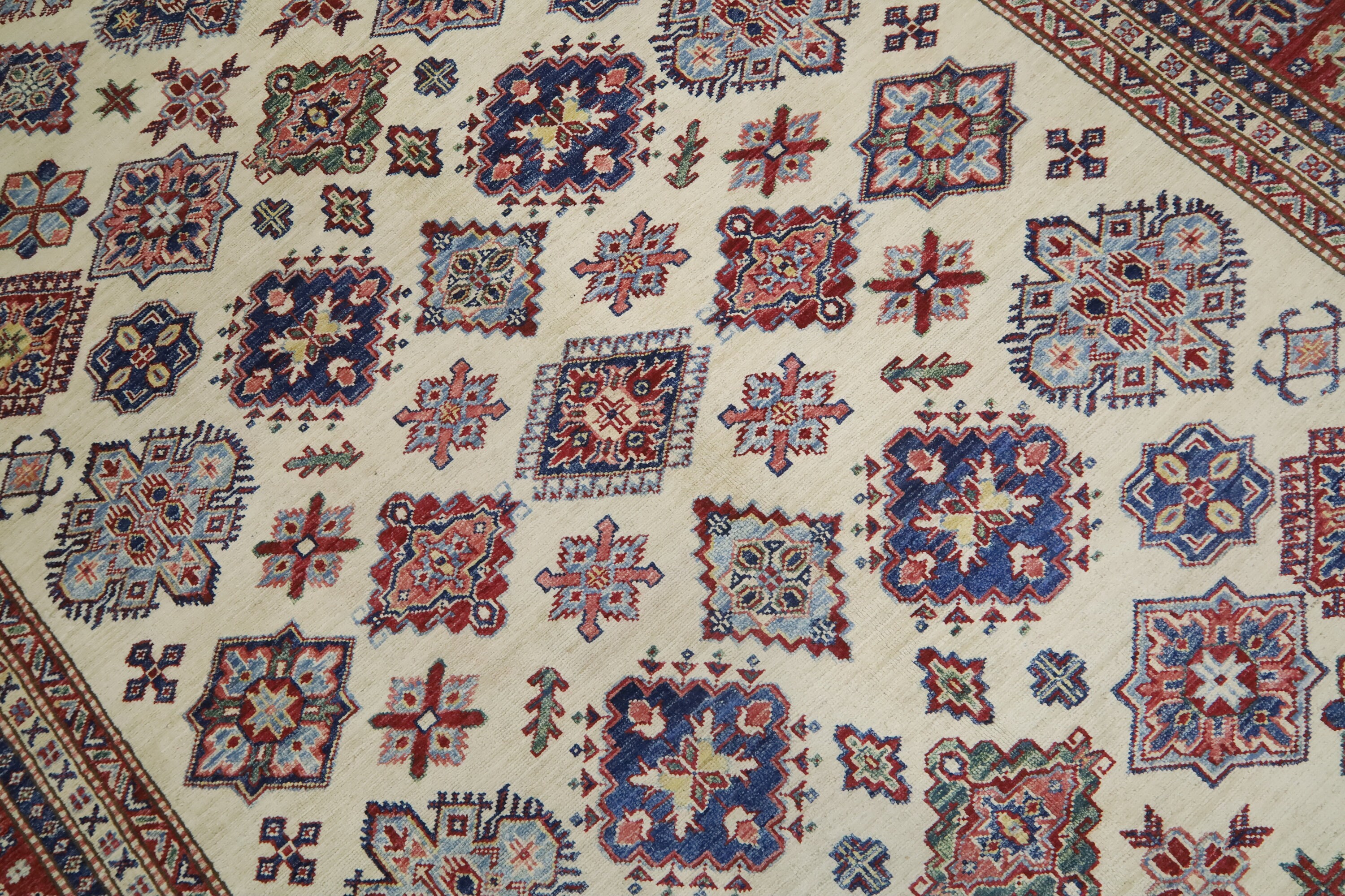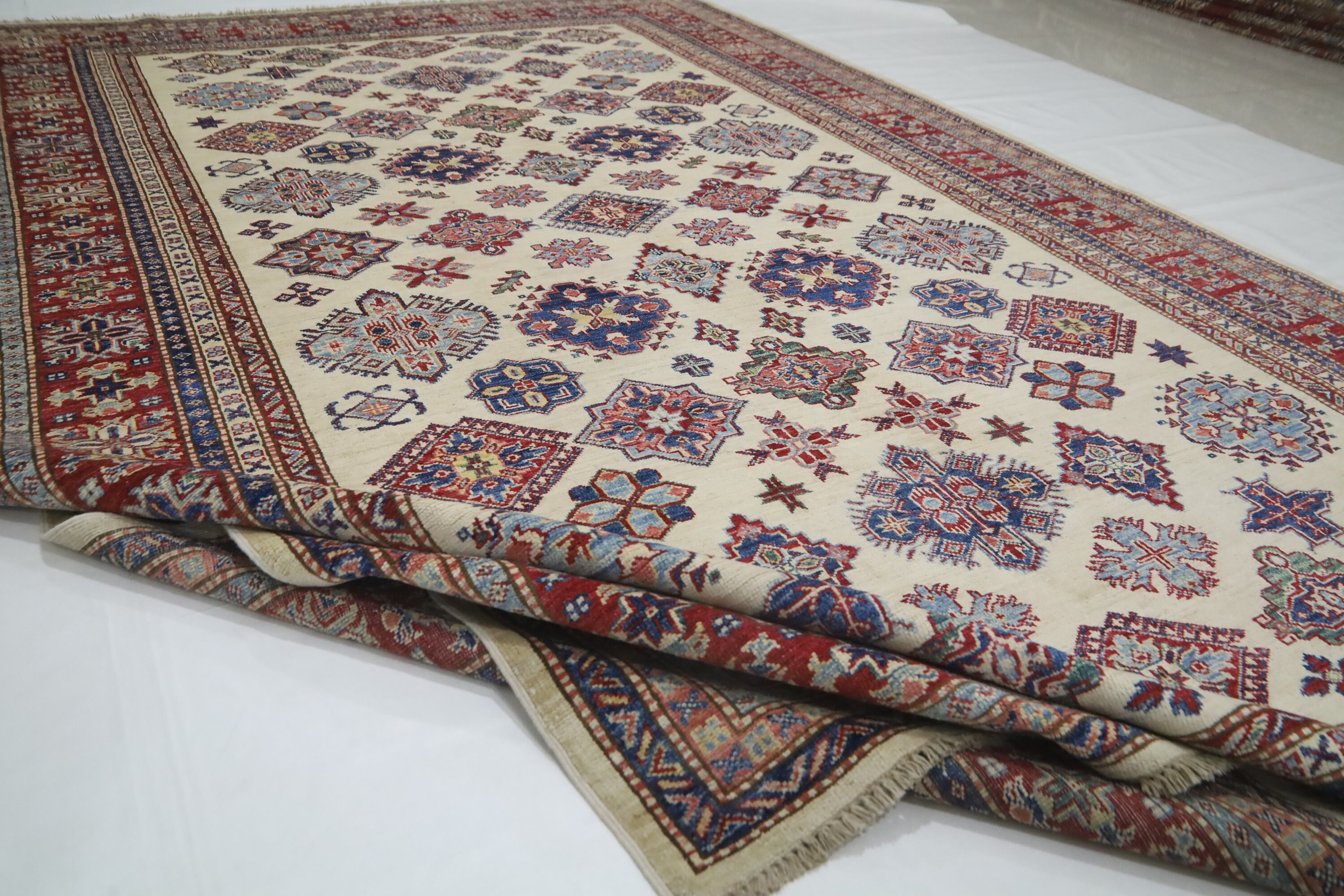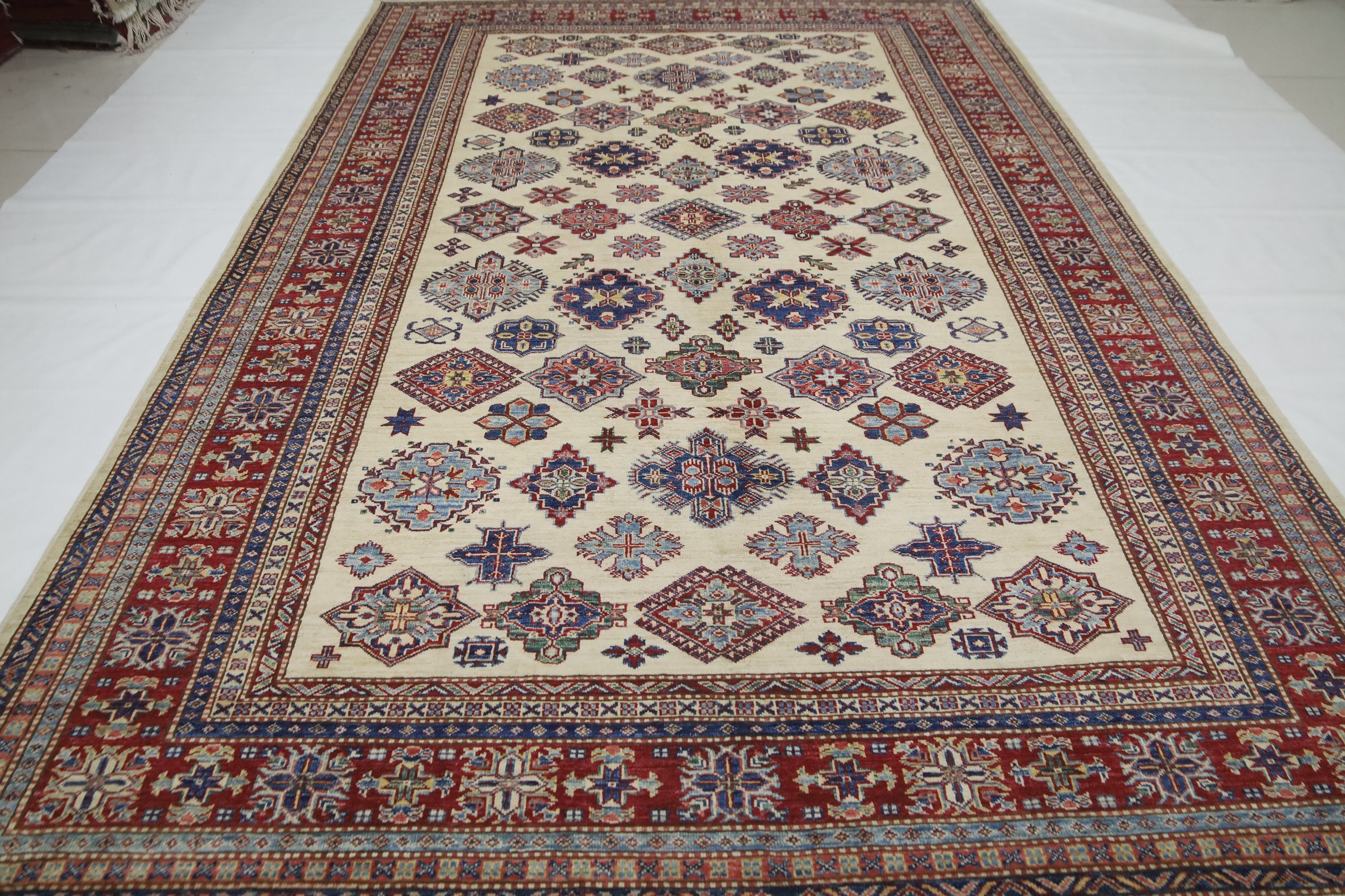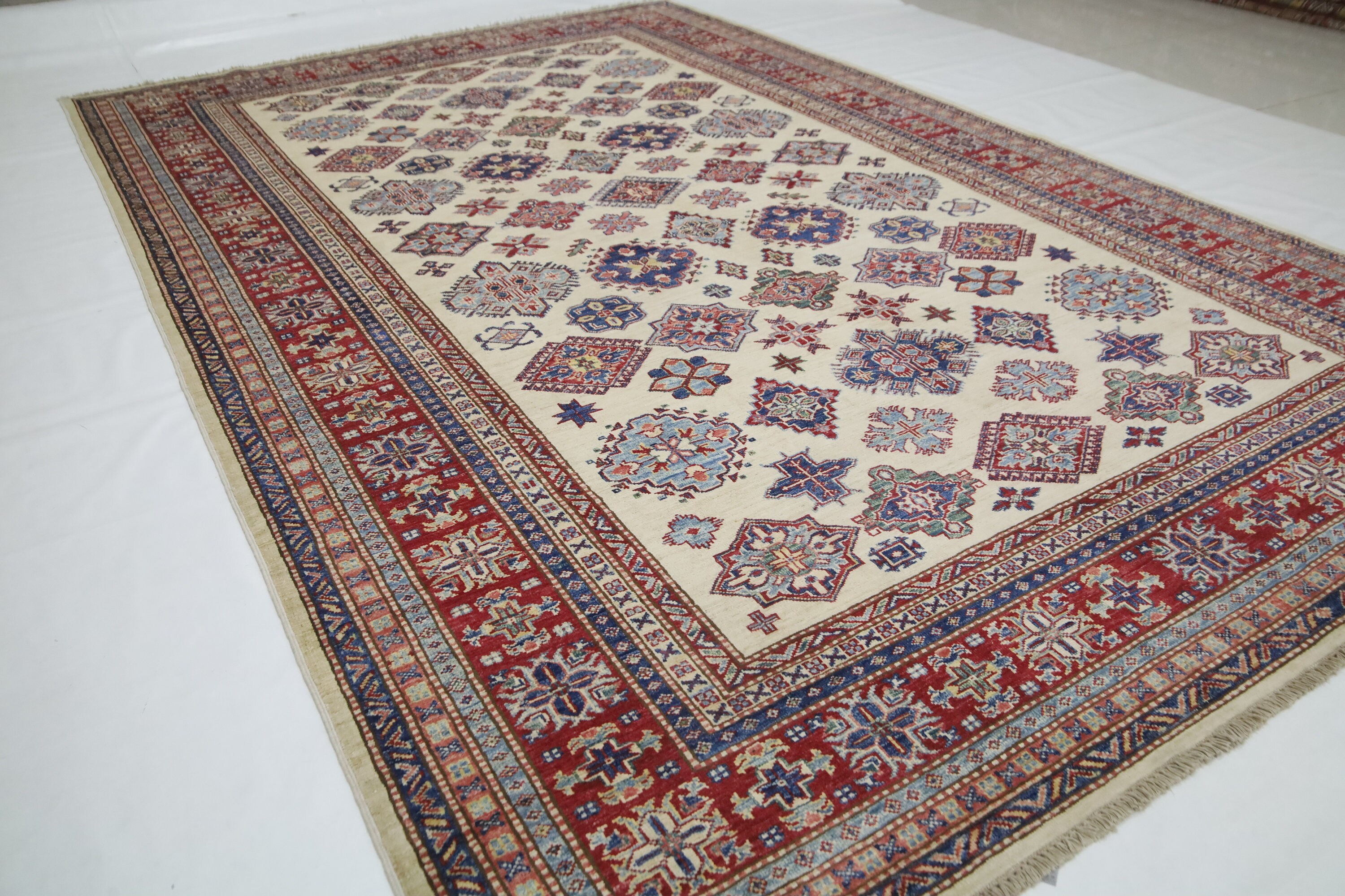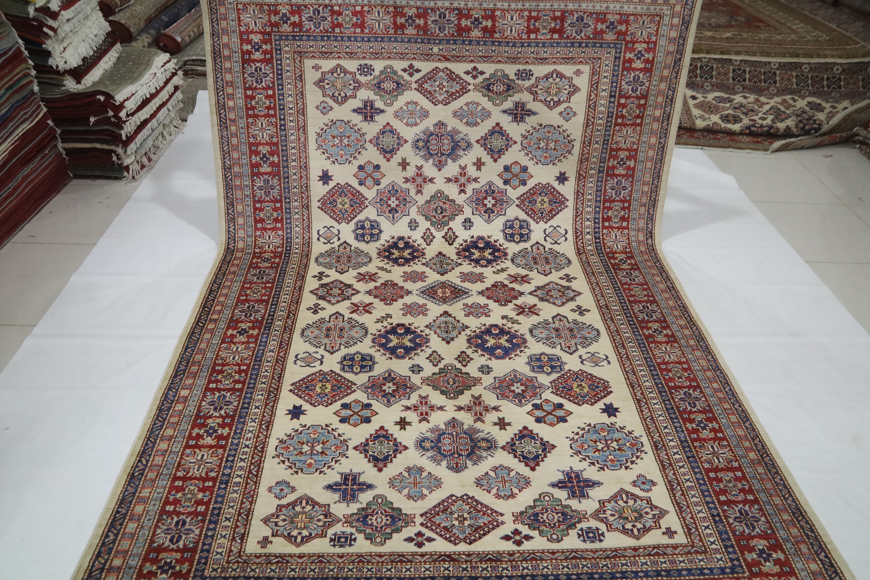 Geometric Kazak 7x10 Area Rug - Afghan Hand Made Traditional Fine Quality Wool Rug - 7x10 Bedroom Rug - Beige Office Rug - Living Room Rug