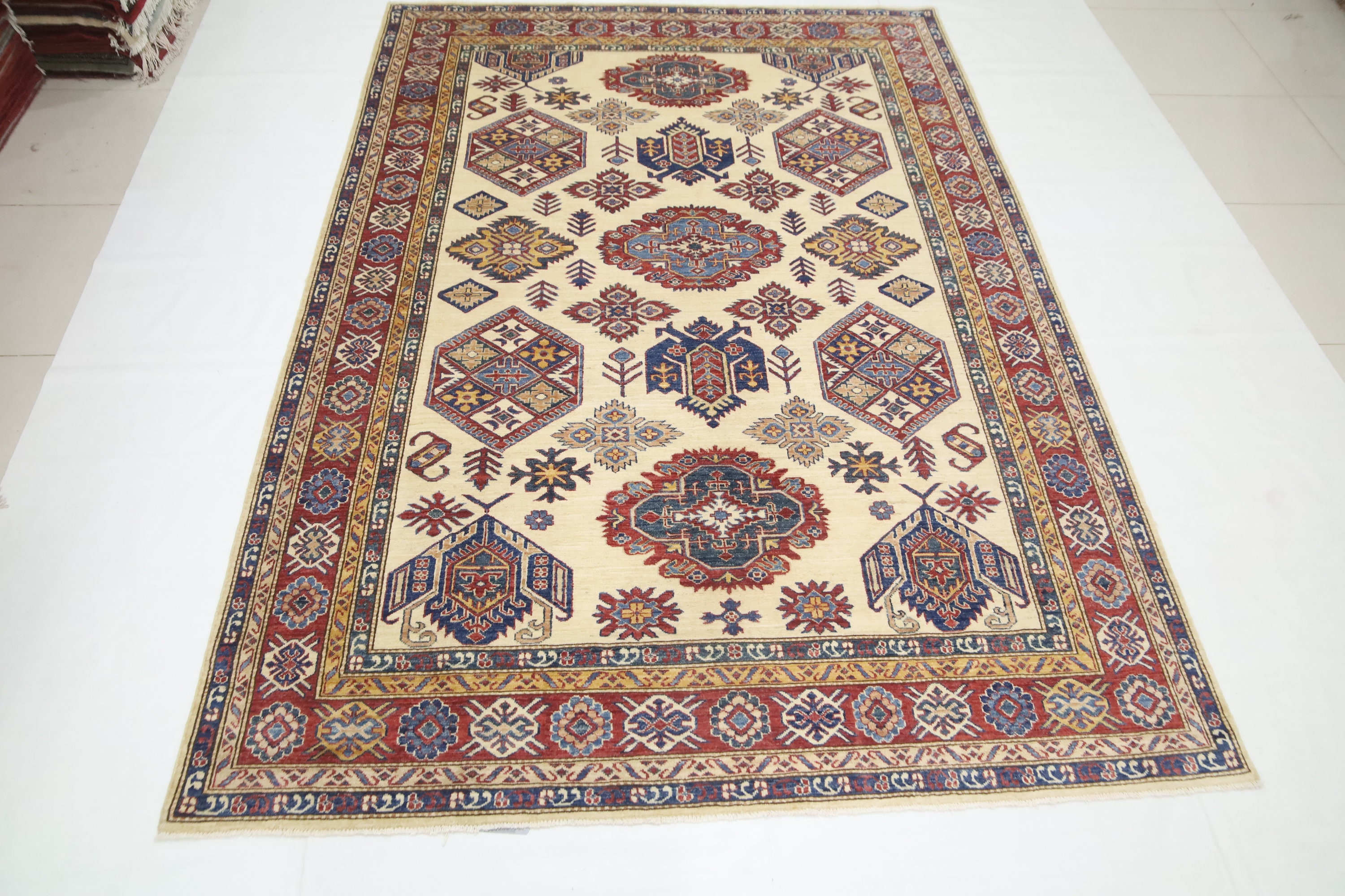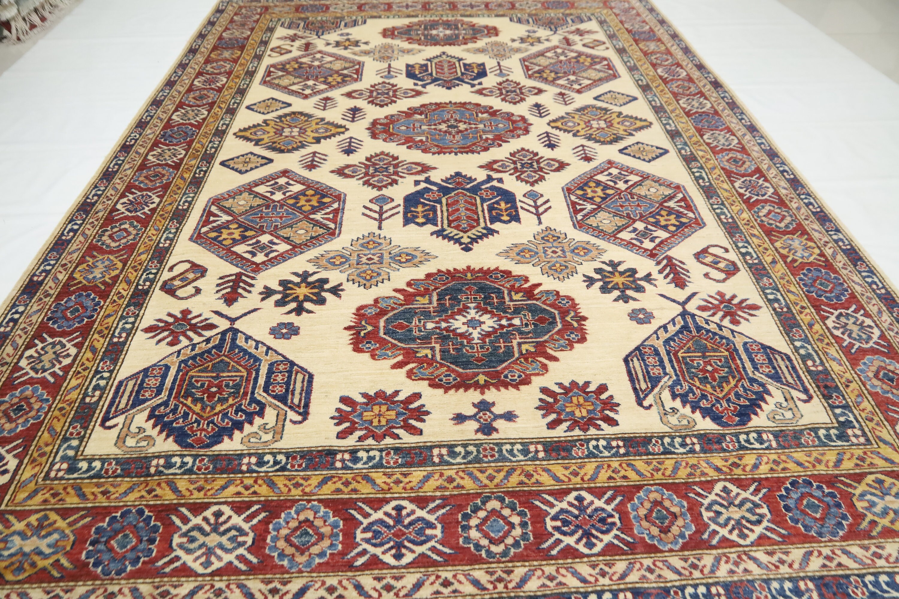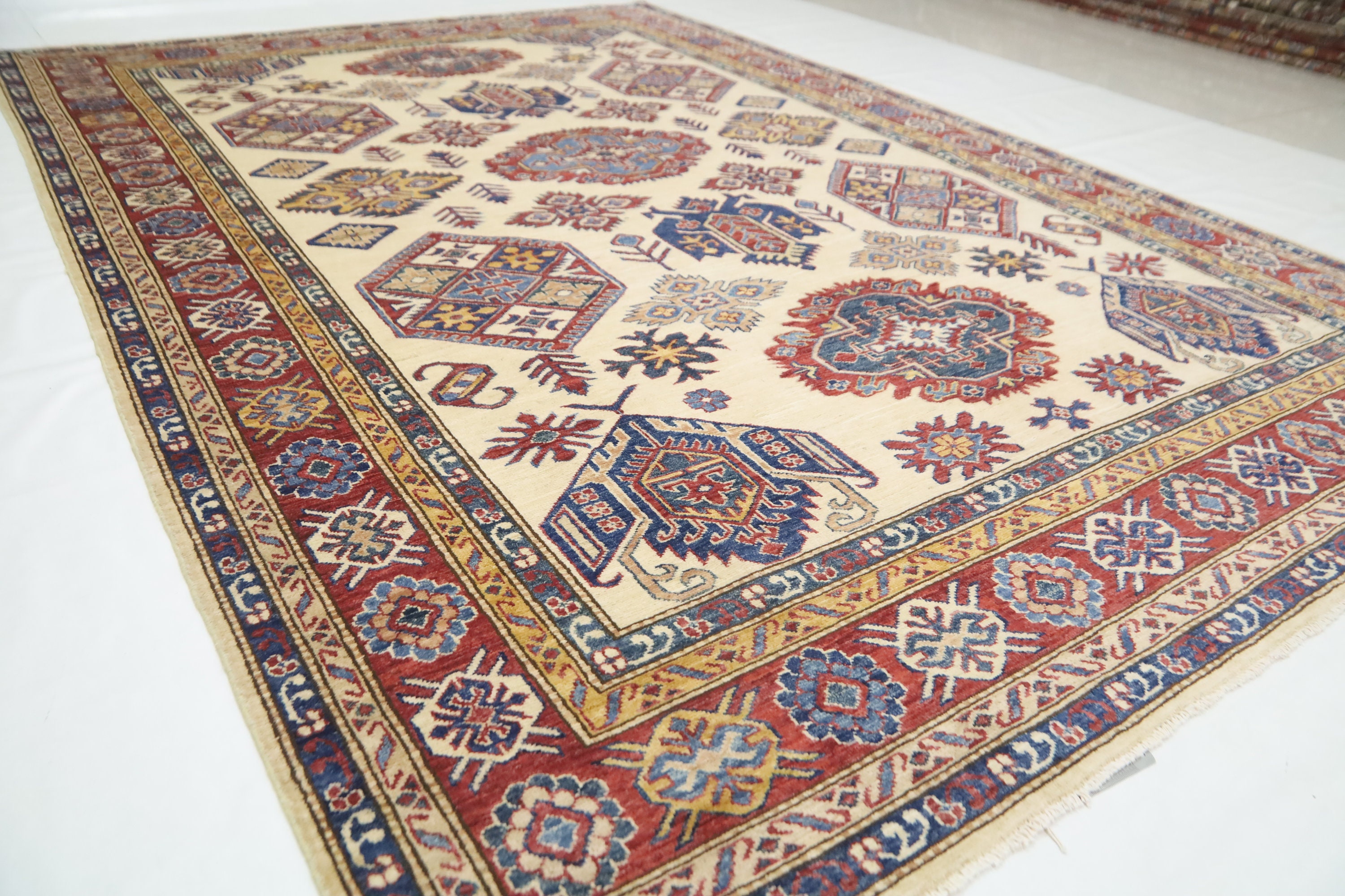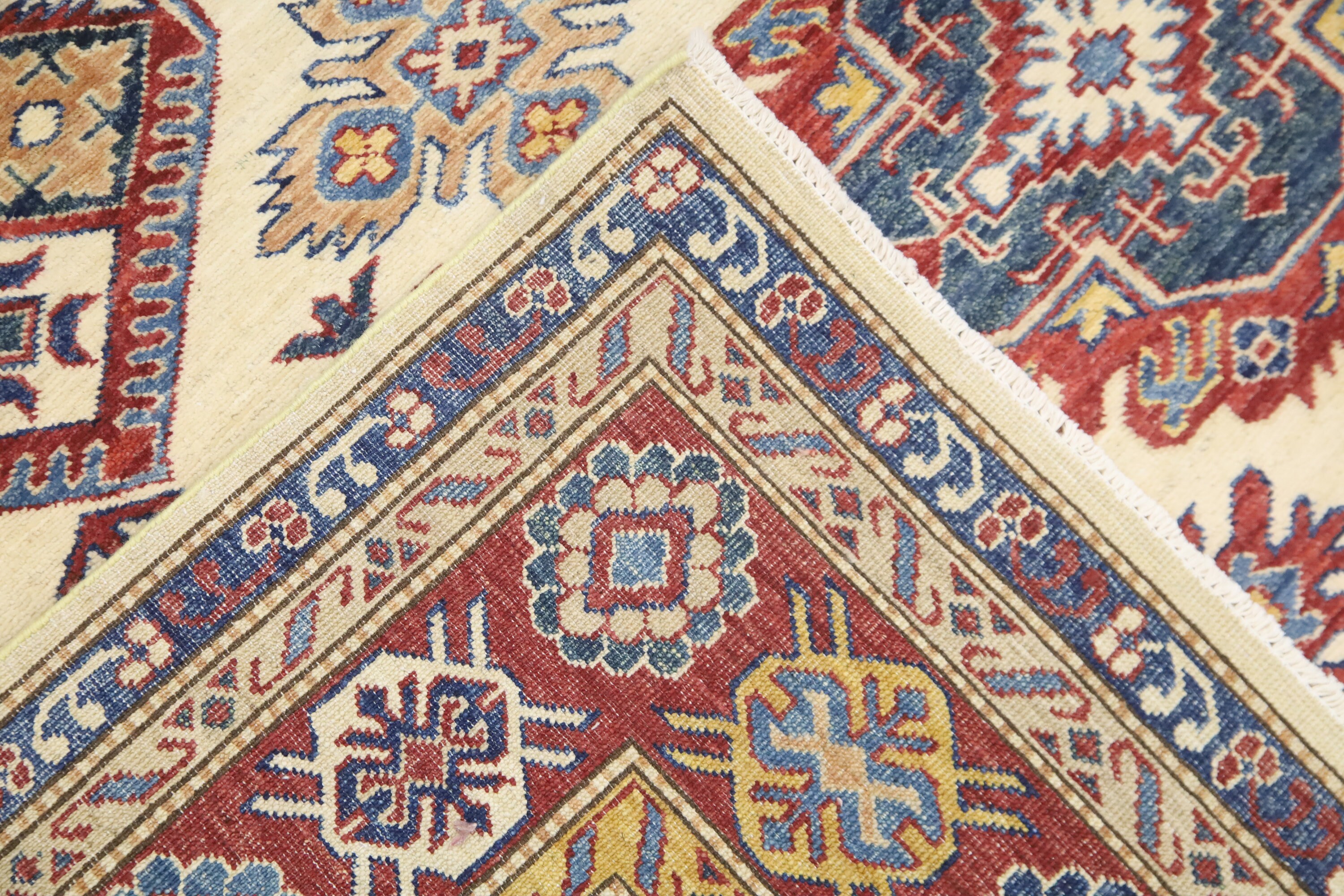 Beige 7x10 Ft Kazak Area Rug - Afghan Hand Knotted Geometric Organic Dye Wool Rug - Traditional Rug - Caucasian Rug - Oriental Rug