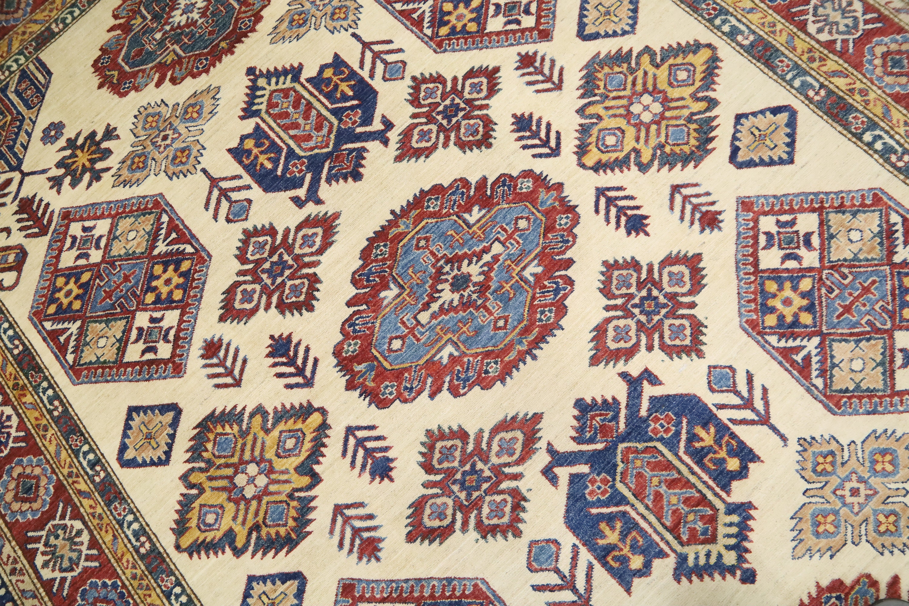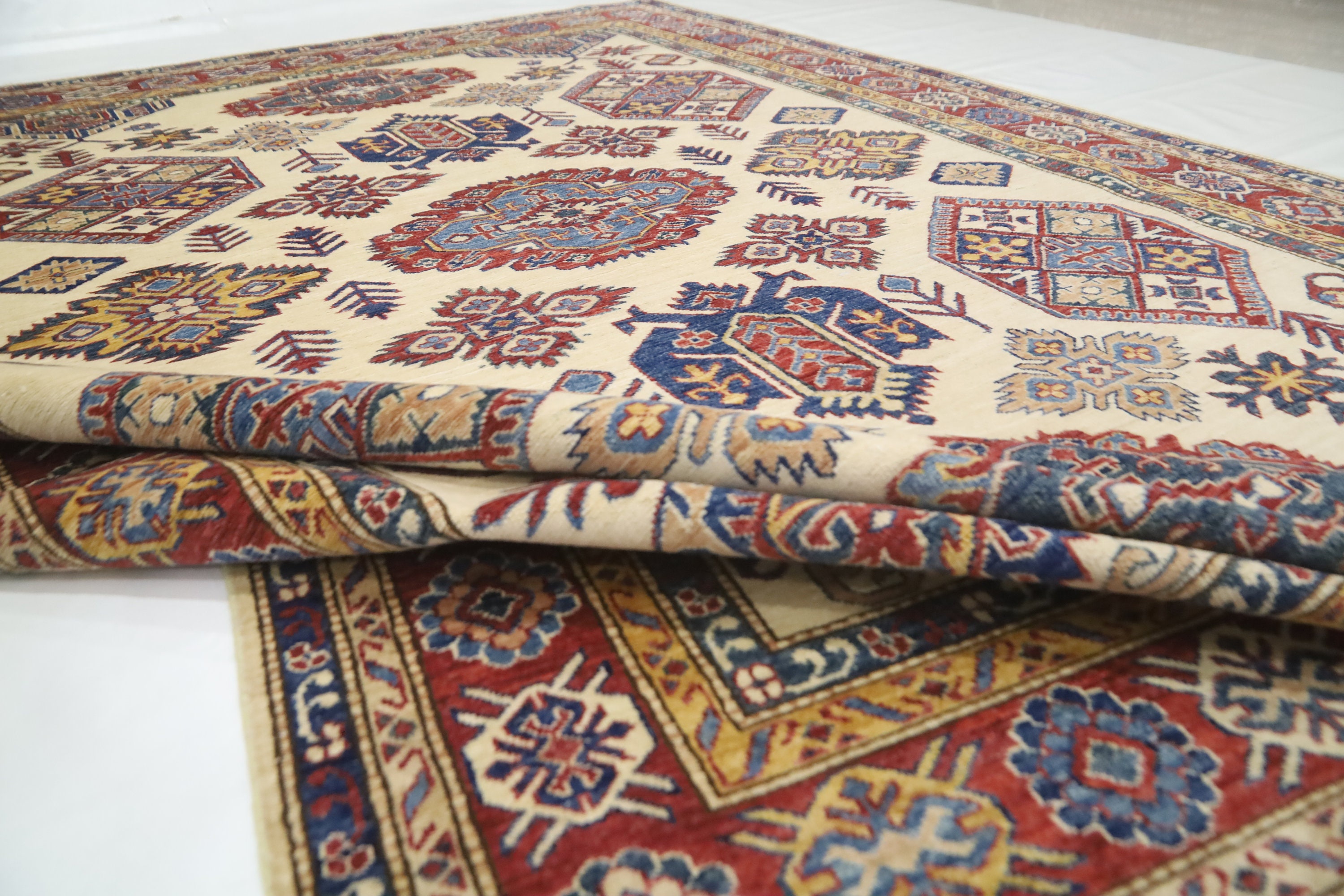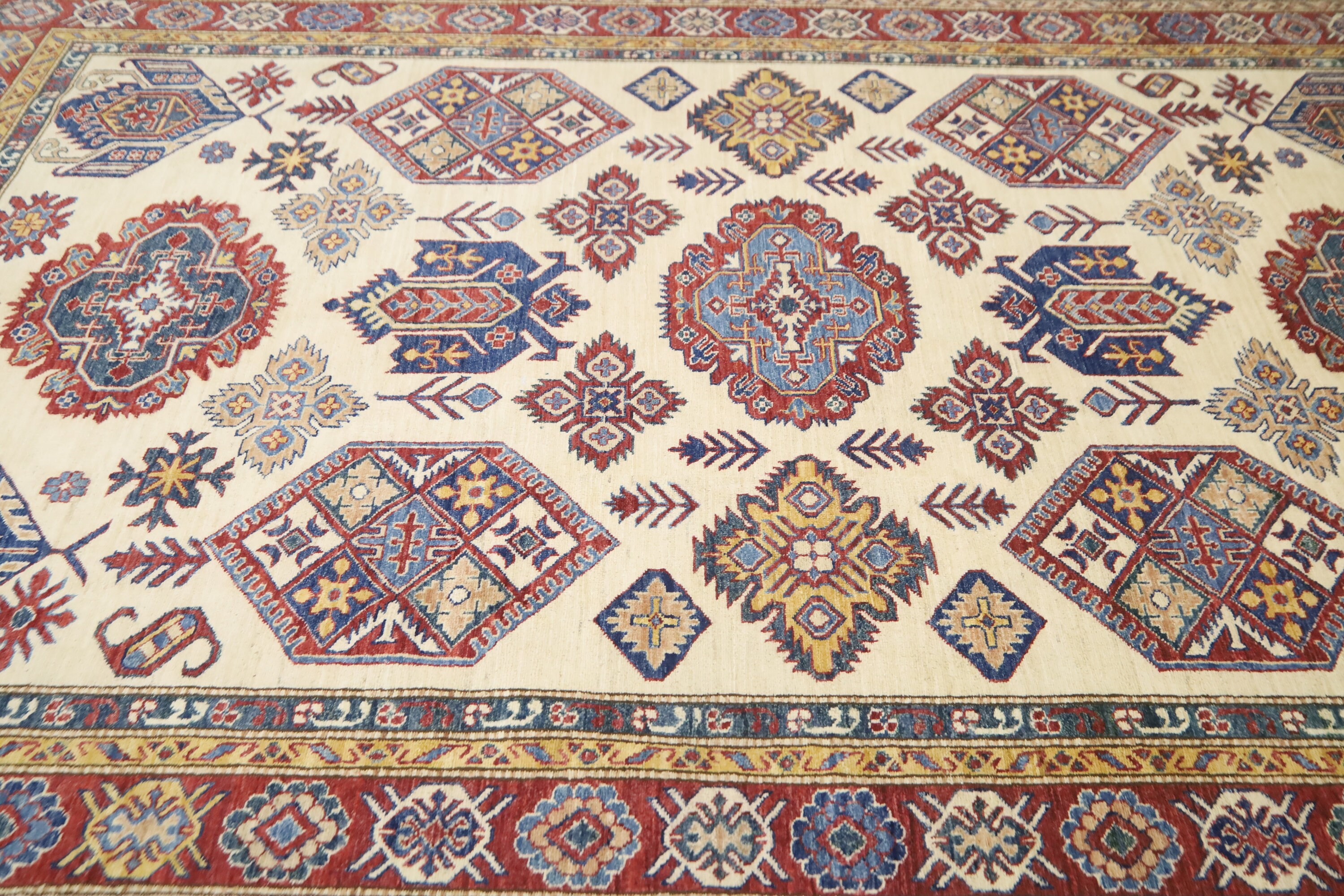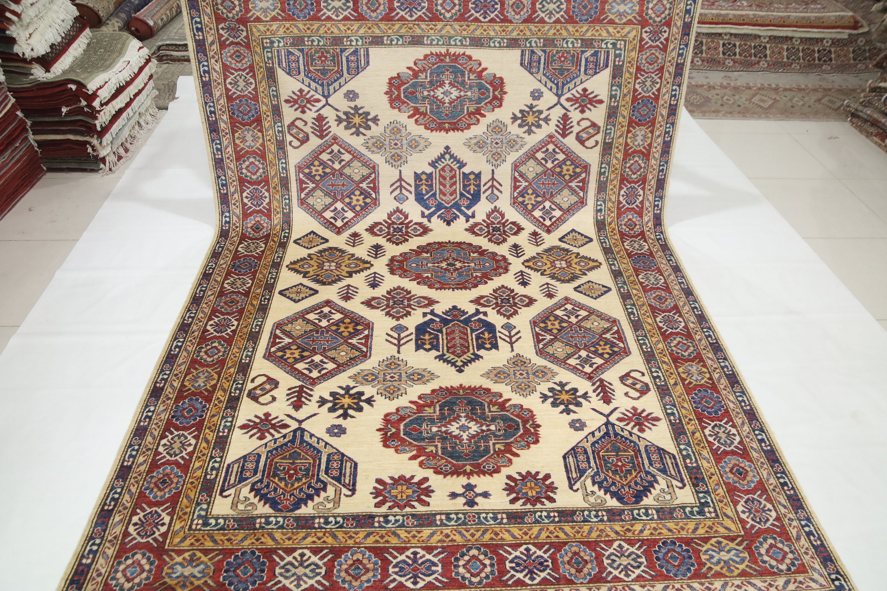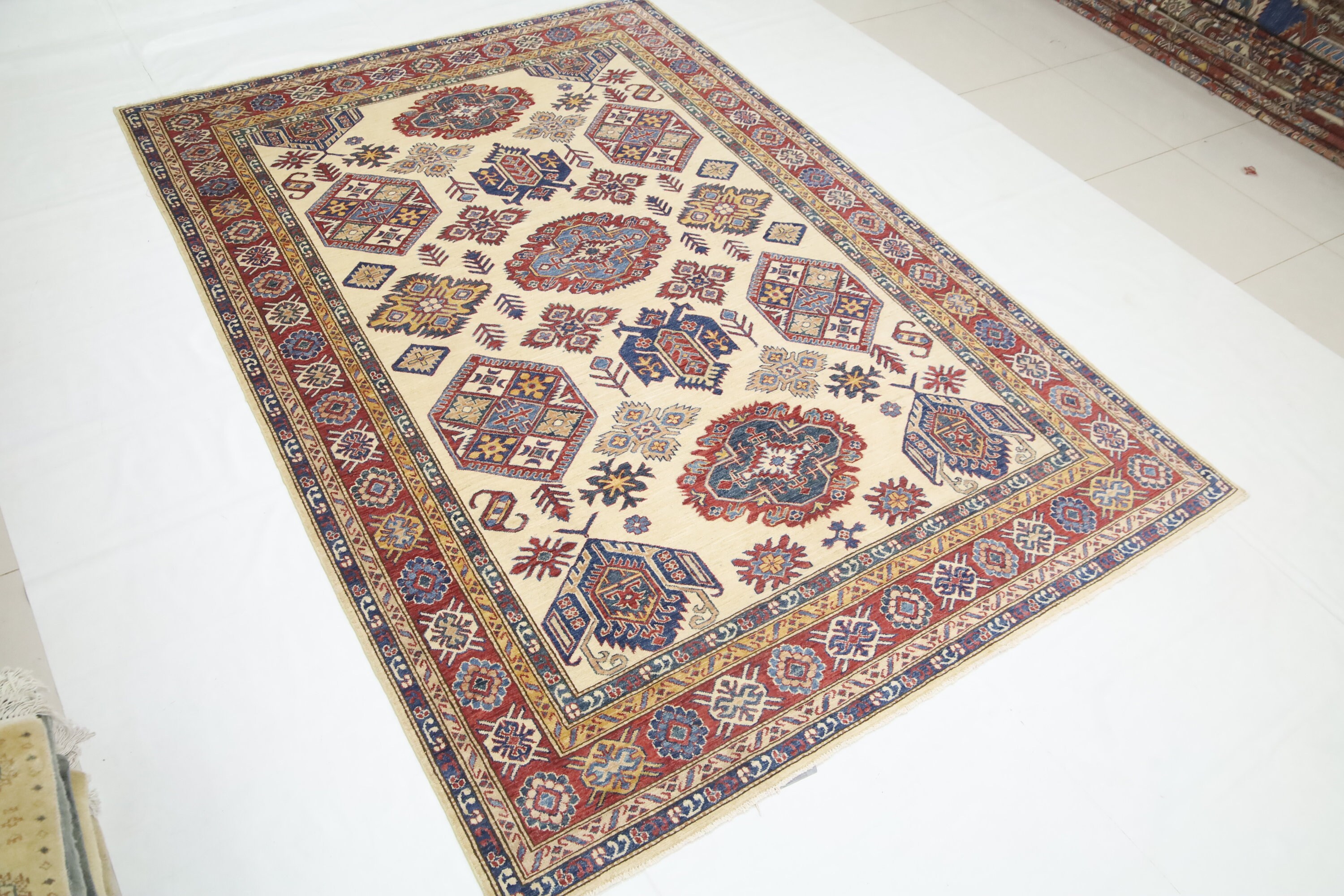 Beige 7x10 Ft Kazak Area Rug - Afghan Hand Knotted Geometric Organic Dye Wool Rug - Traditional Rug - Caucasian Rug - Oriental Rug