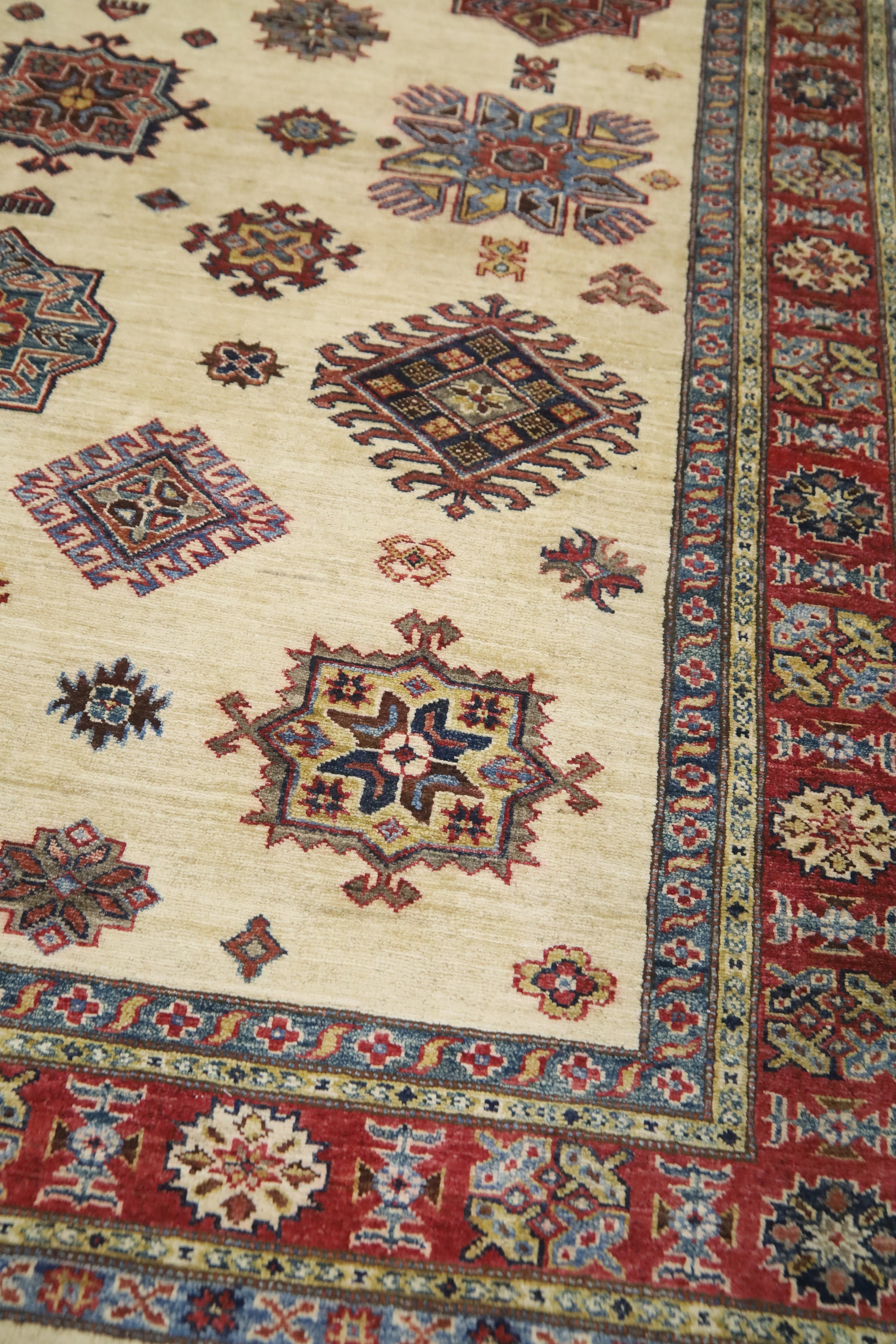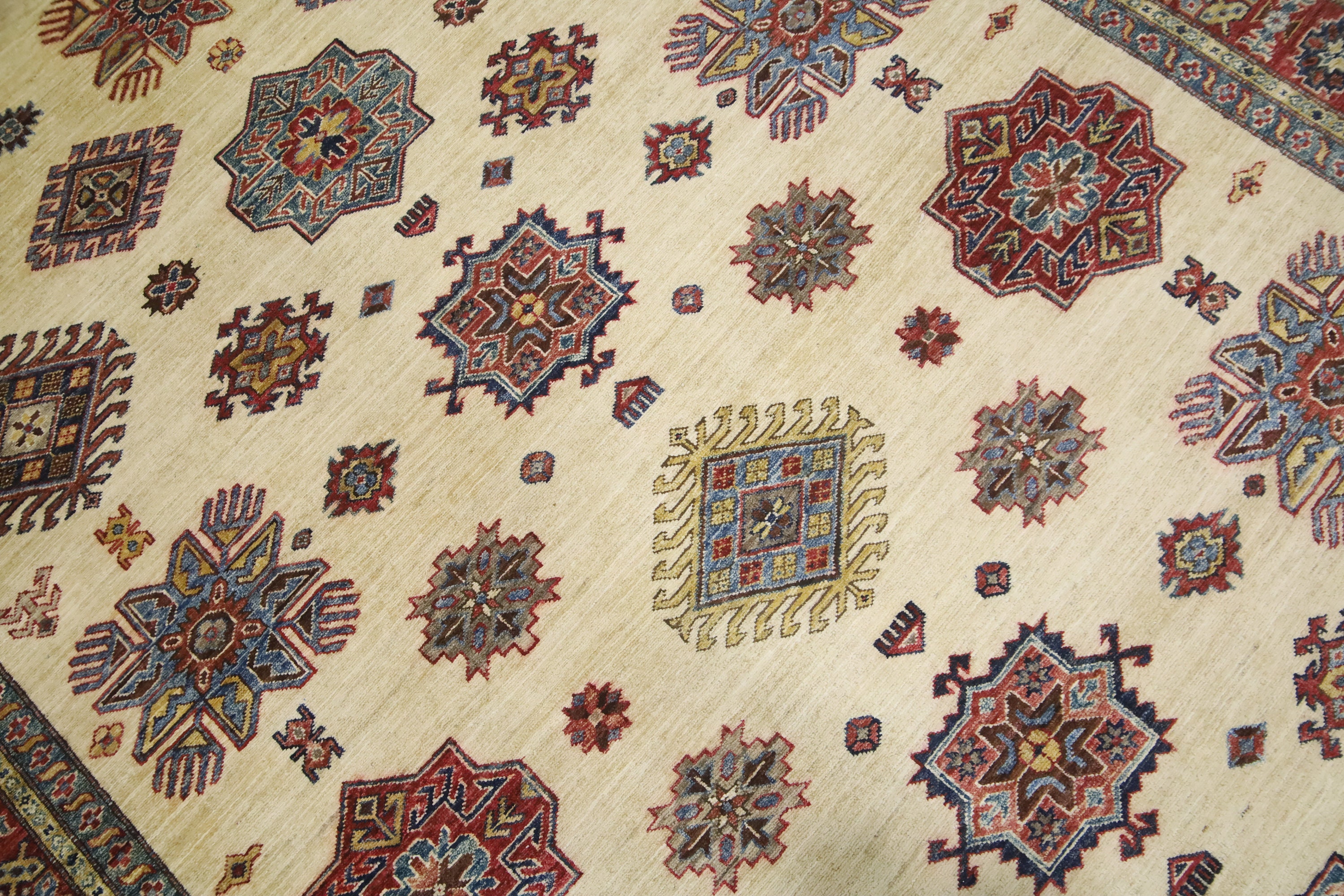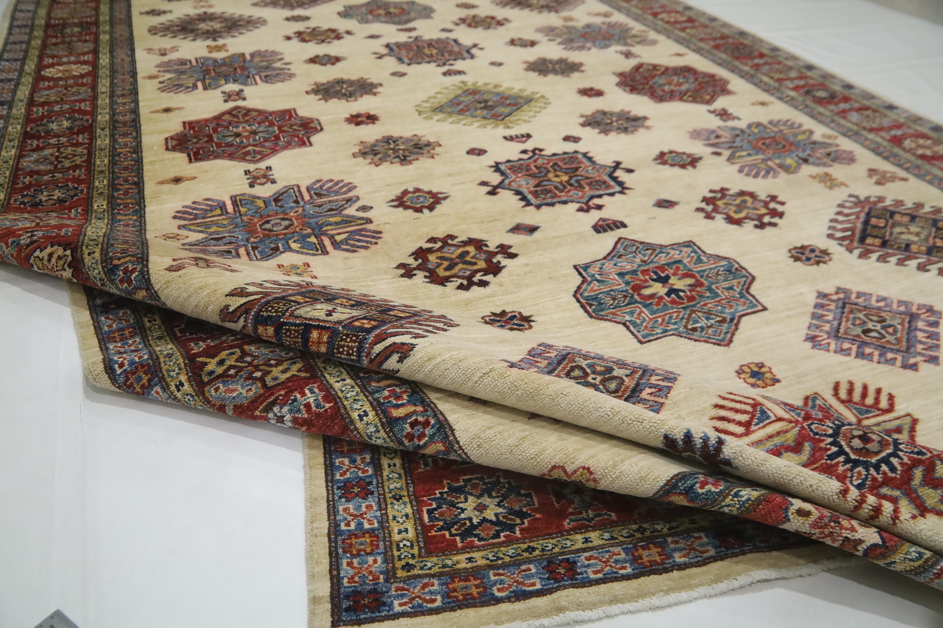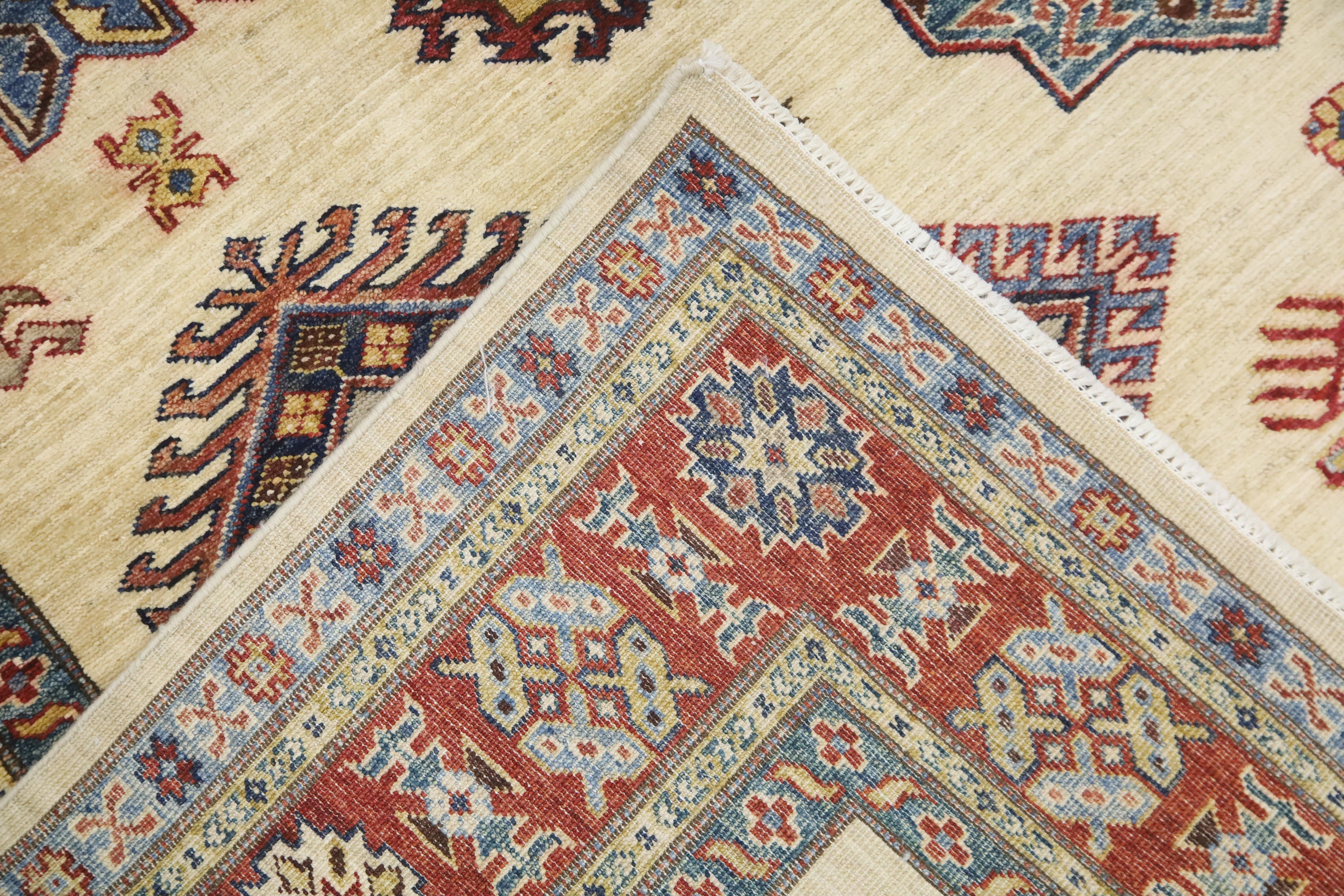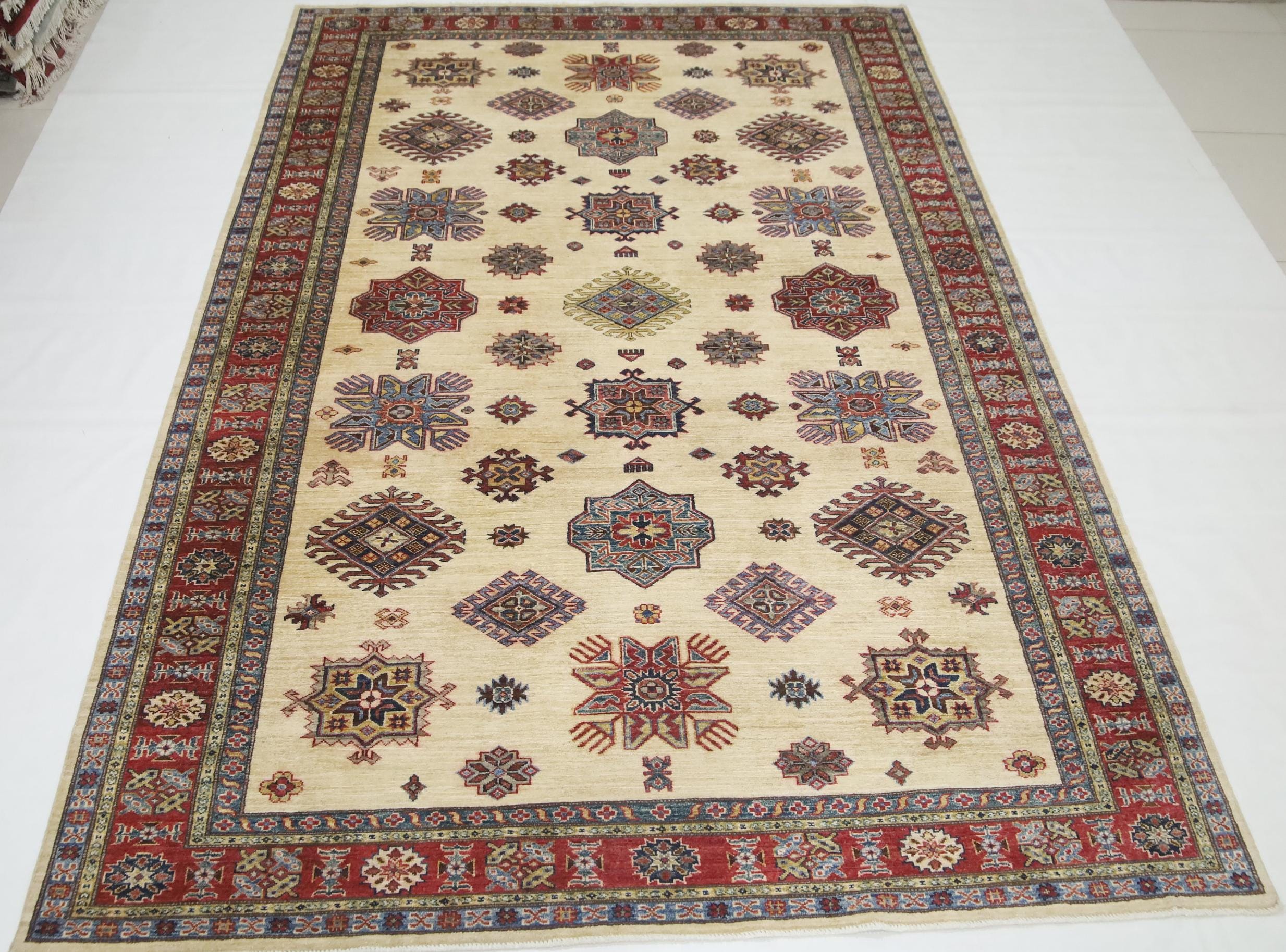 7x10 Kazak Area Rug - Beige Red Rug - Afghan Handmade Wool Rug - Veg Dye Rug - Geometric Rug - Traditional Rug - Bedroom Rug - Office Rugs