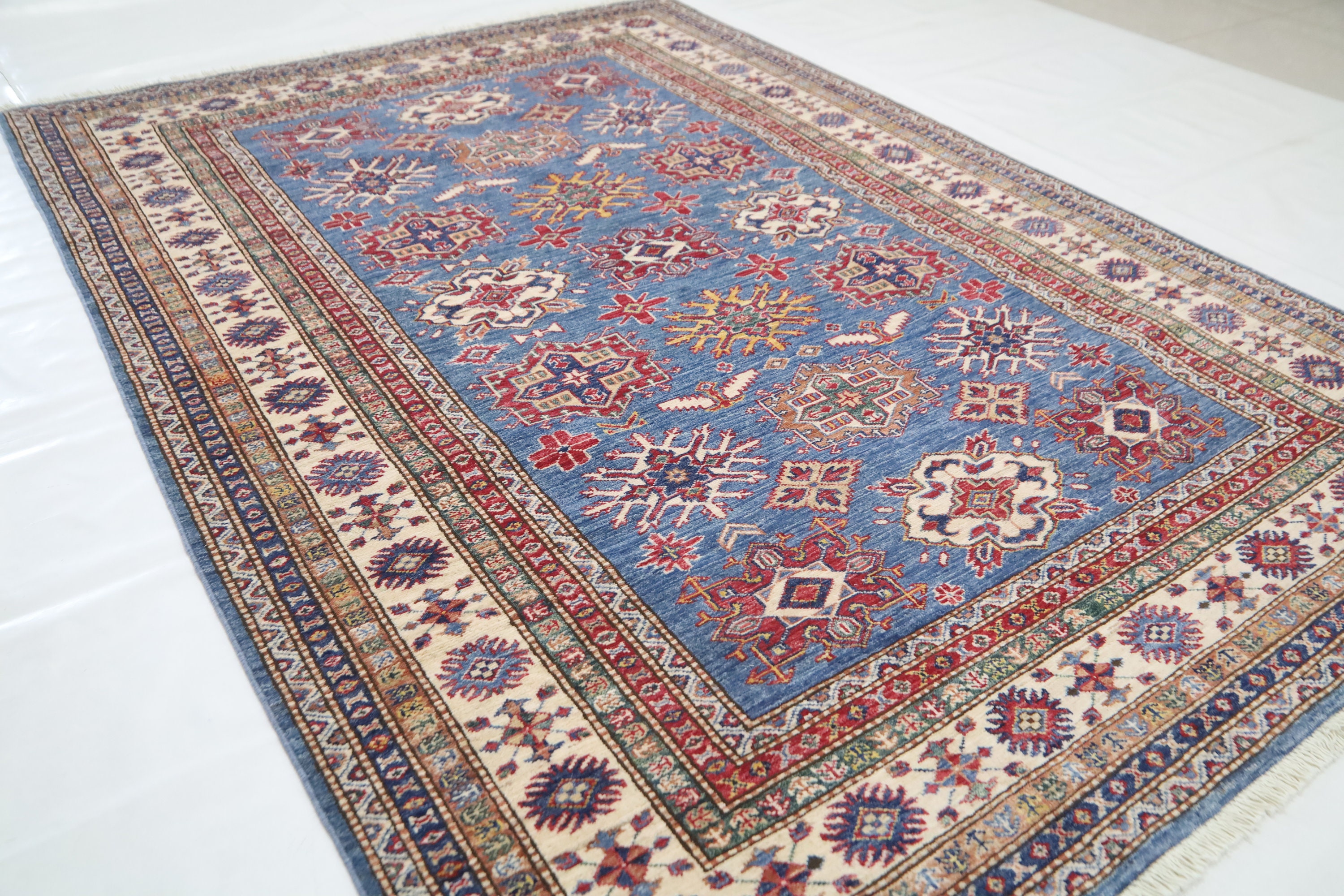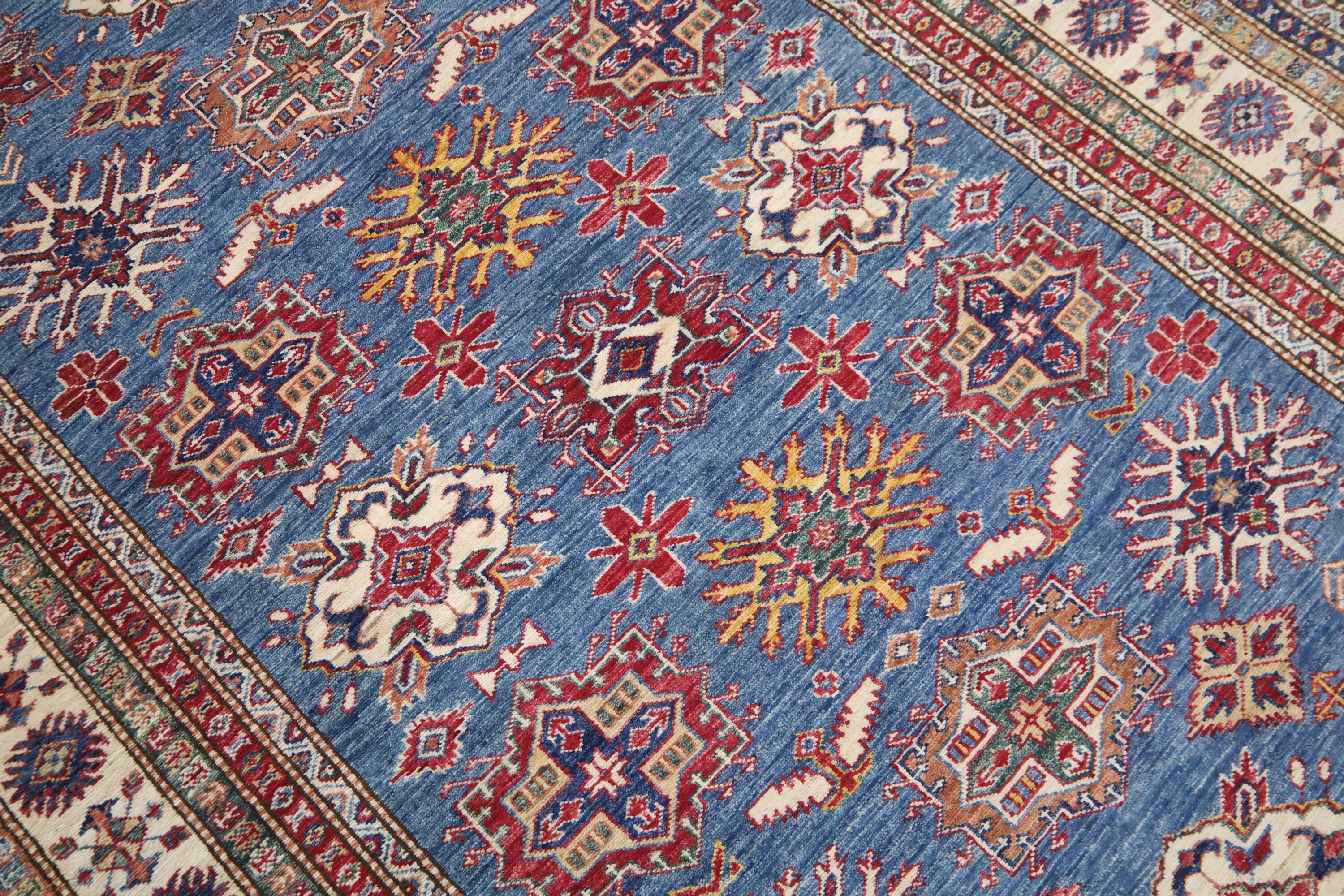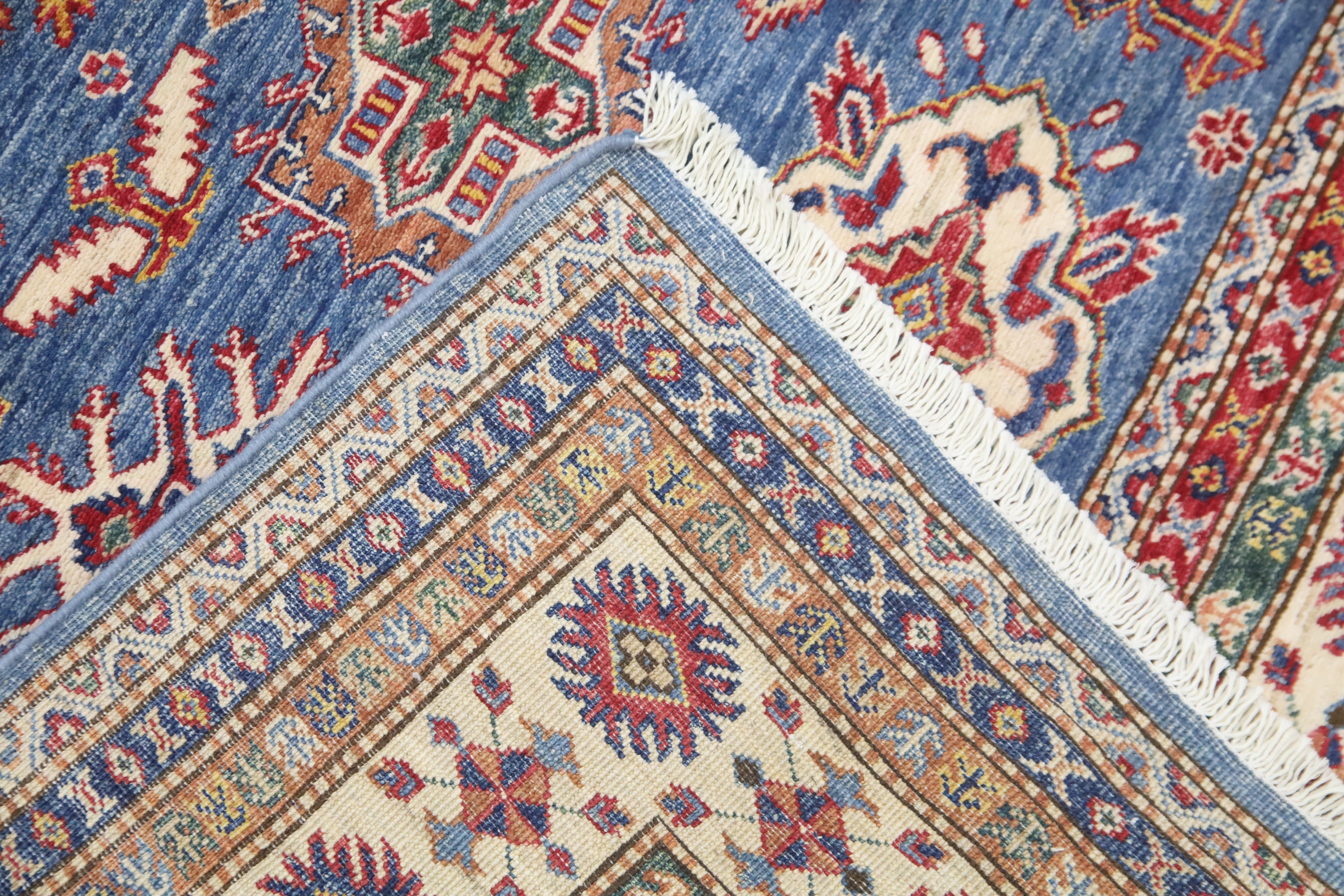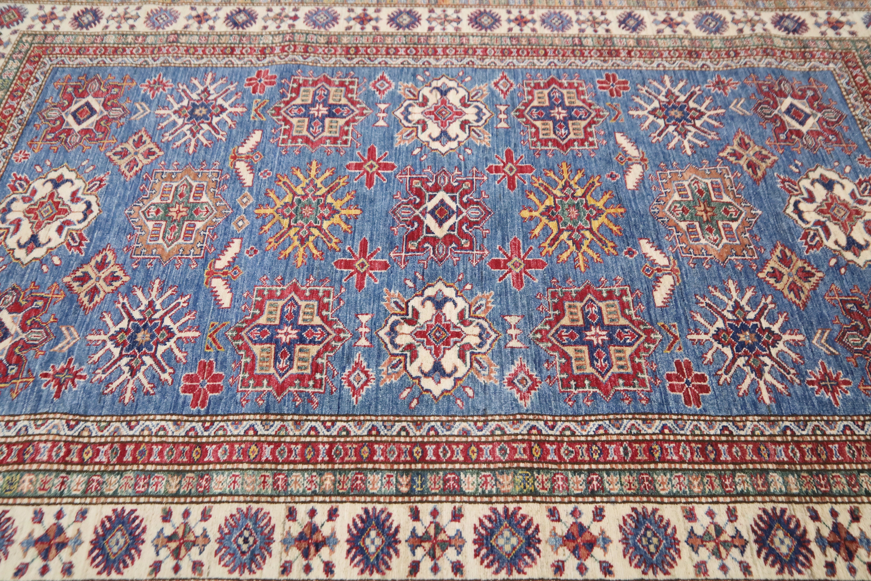 5x8 Blue Kazak Area Rug - Afghan Hand Made Geometric Design Fine Quality Wool Rug - Blue Bedroom Rug - Living Room Rug - Caucasian Wool Rug