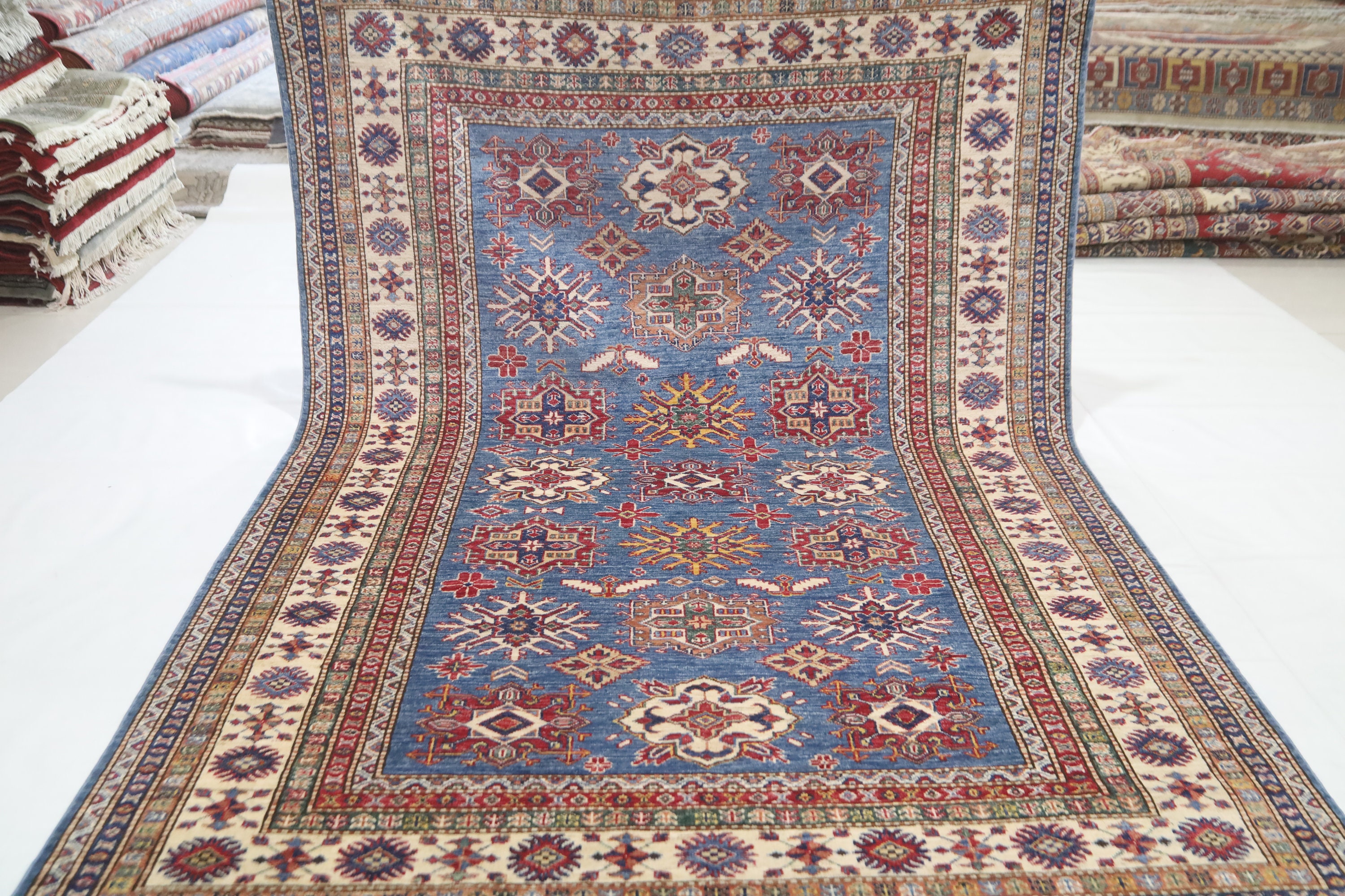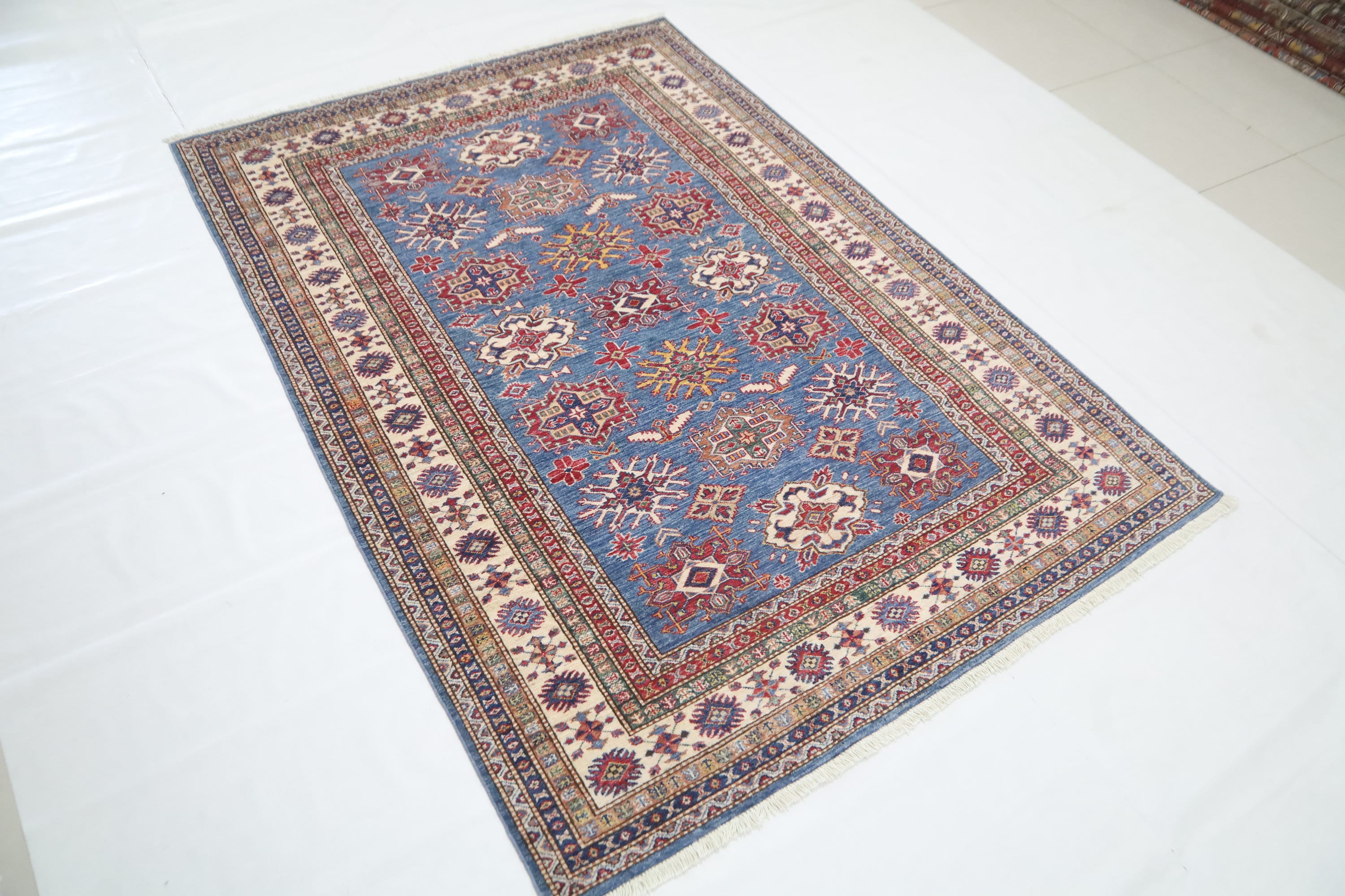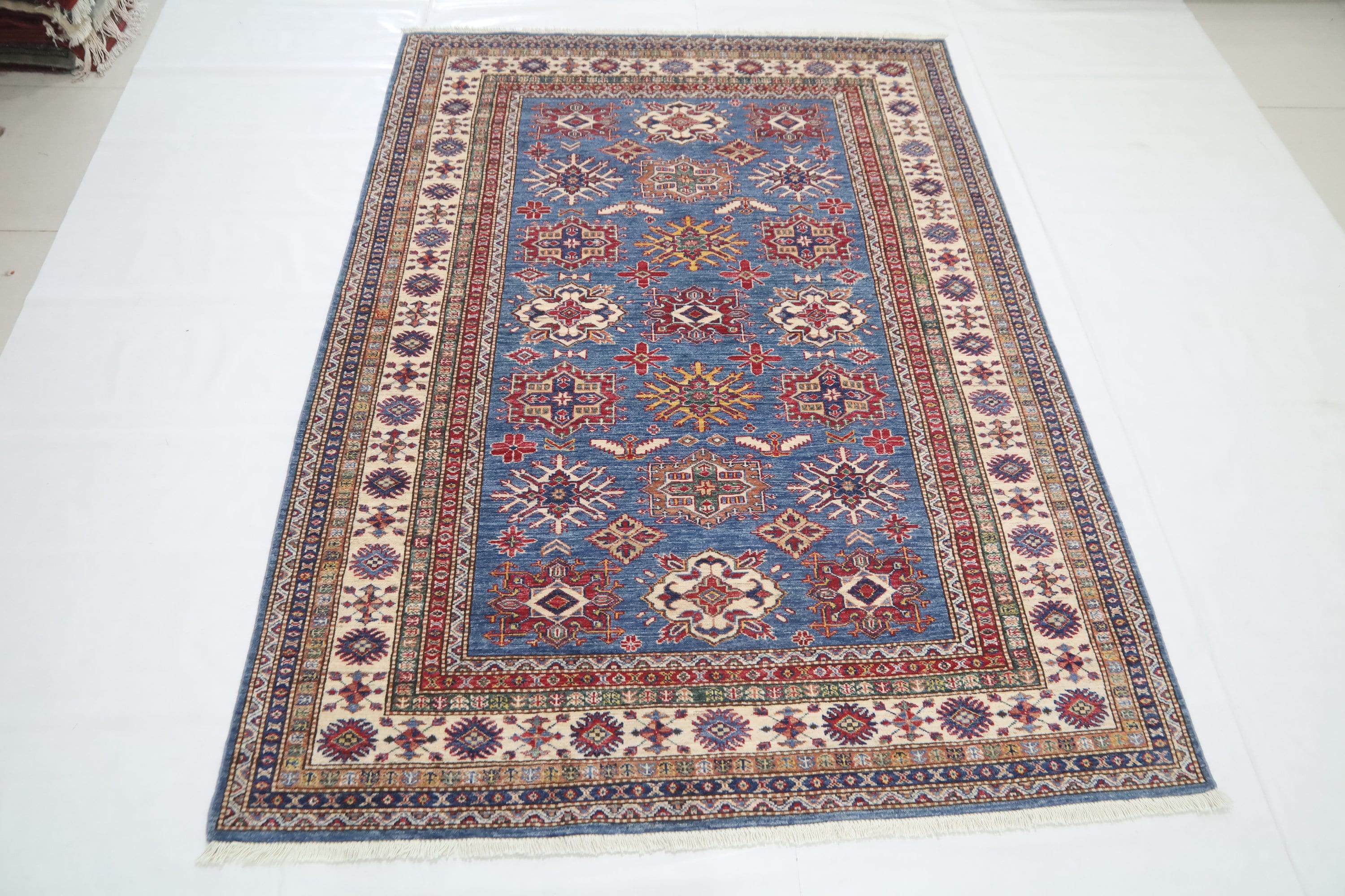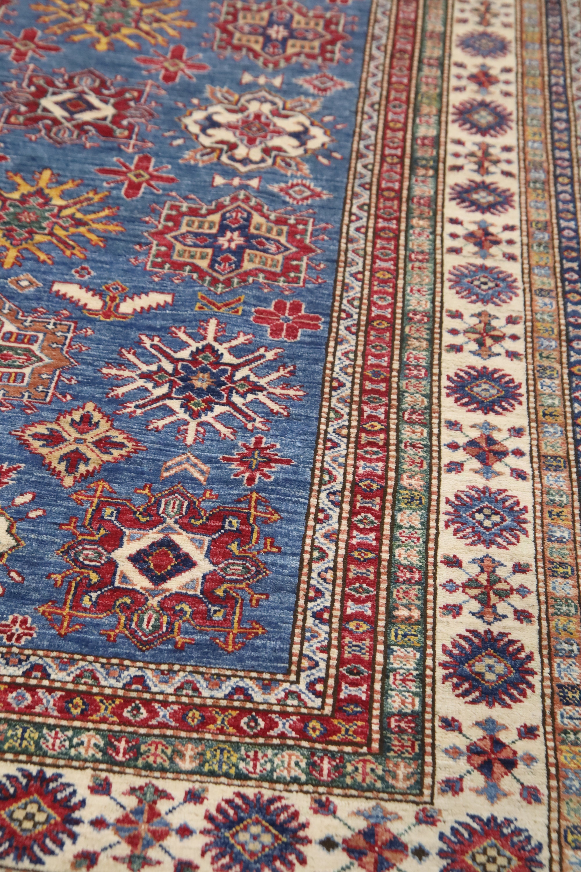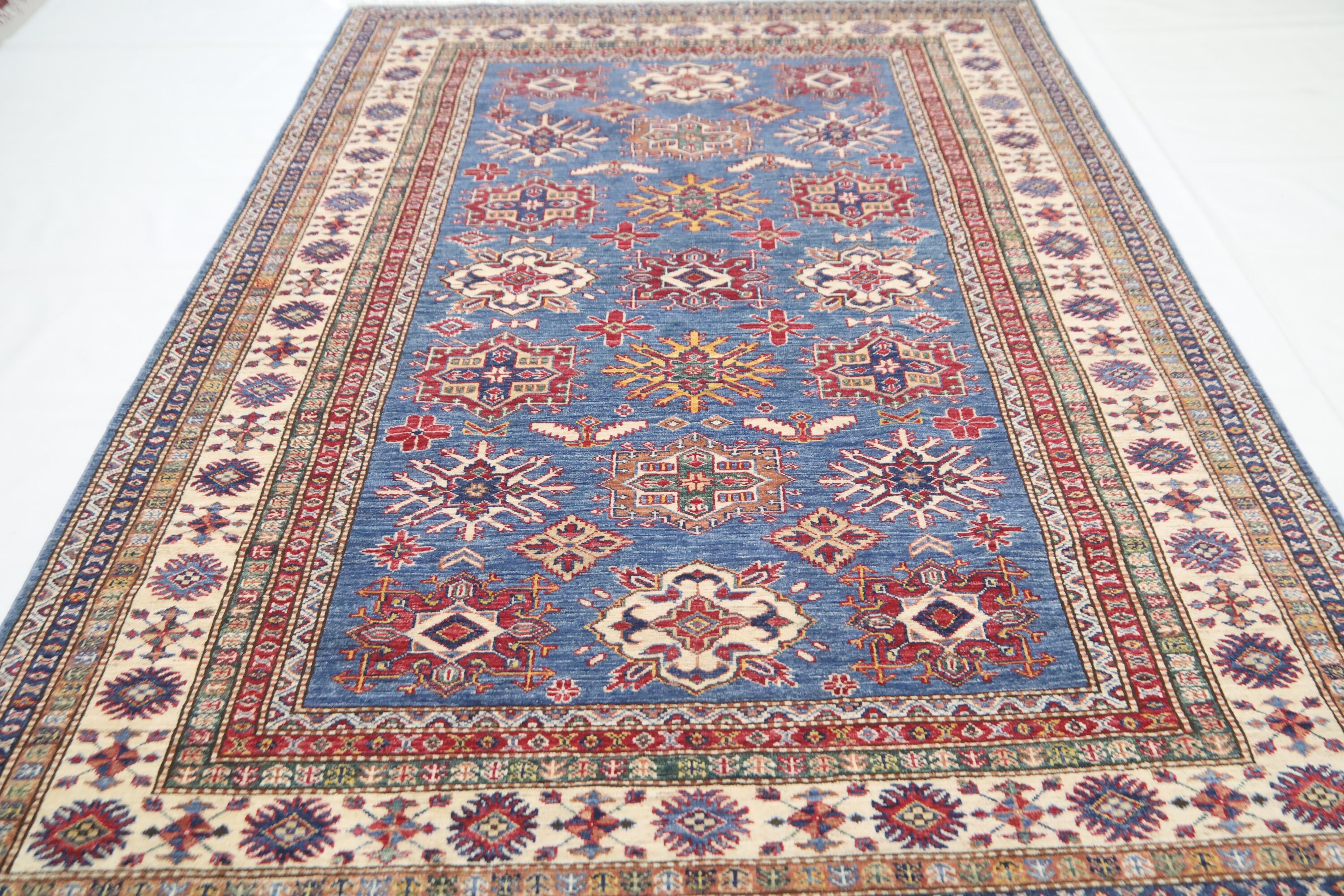 5x8 Blue Kazak Area Rug - Afghan Hand Made Geometric Design Fine Quality Wool Rug - Blue Bedroom Rug - Living Room Rug - Caucasian Wool Rug