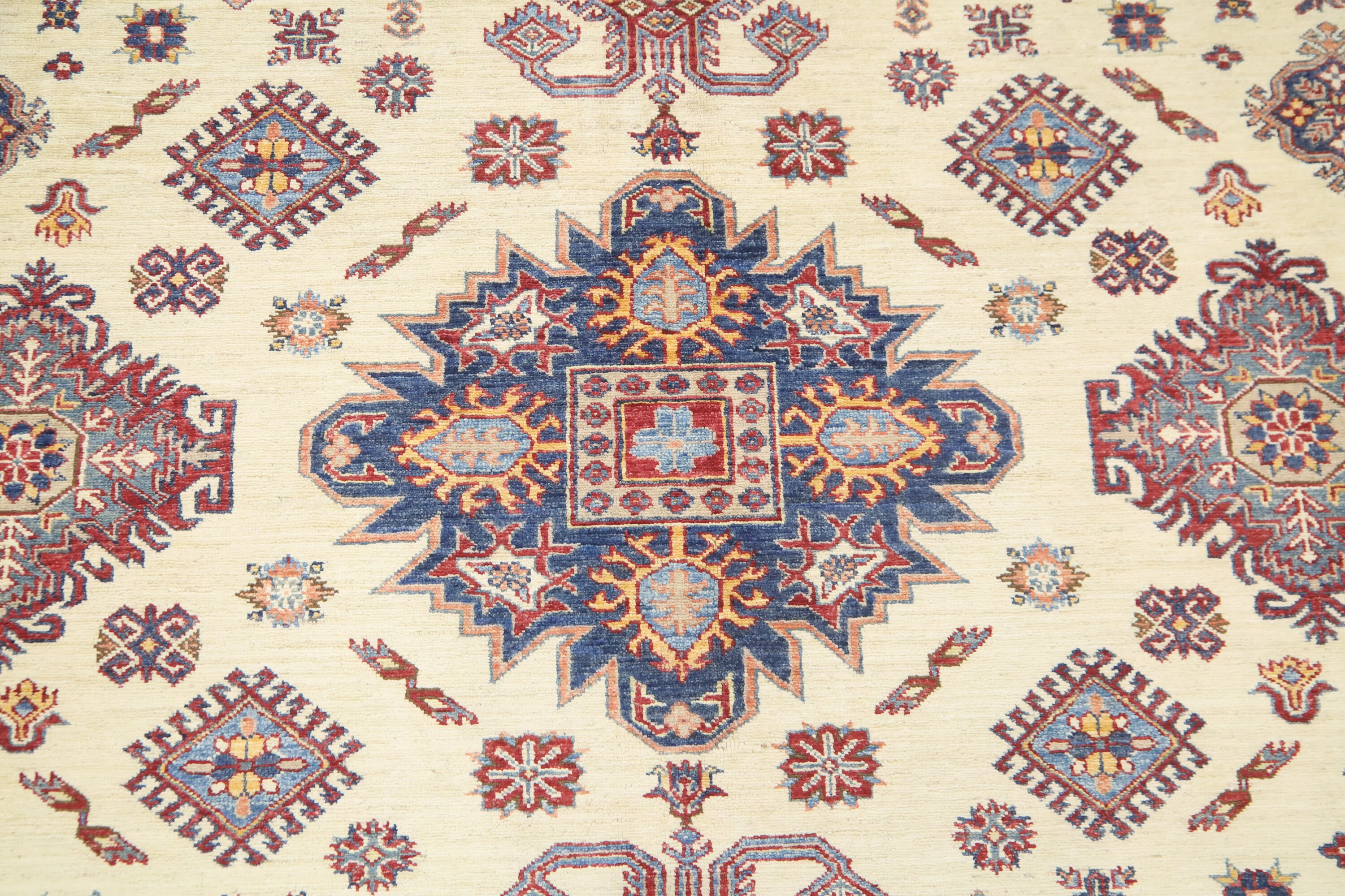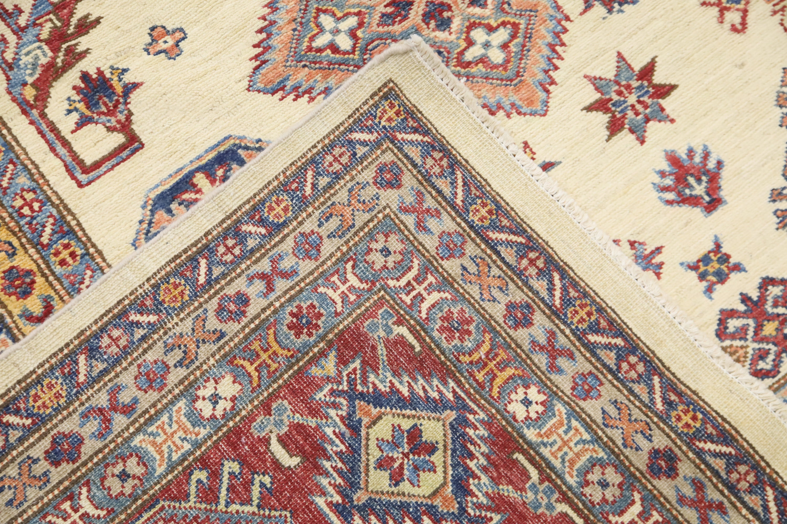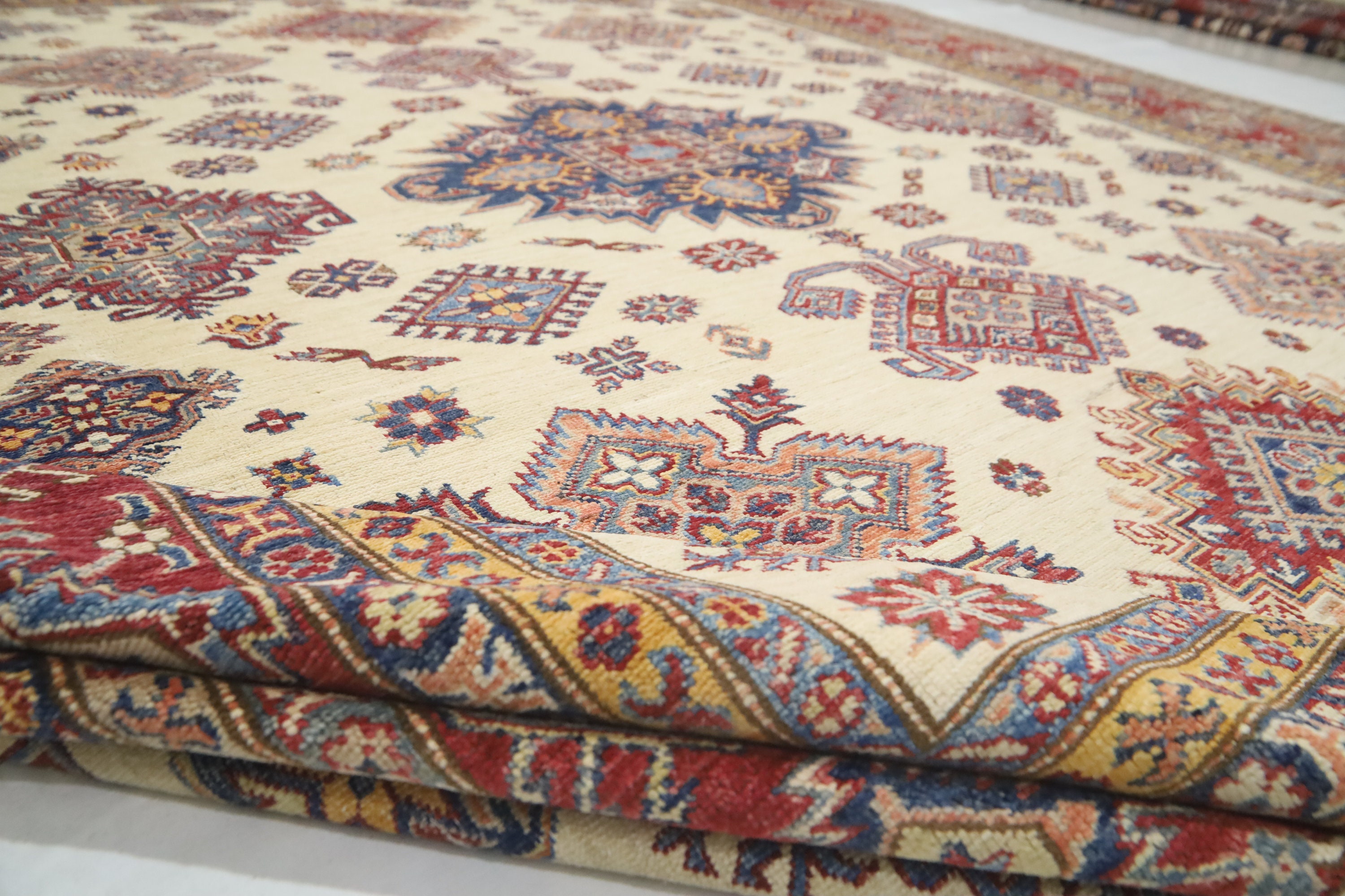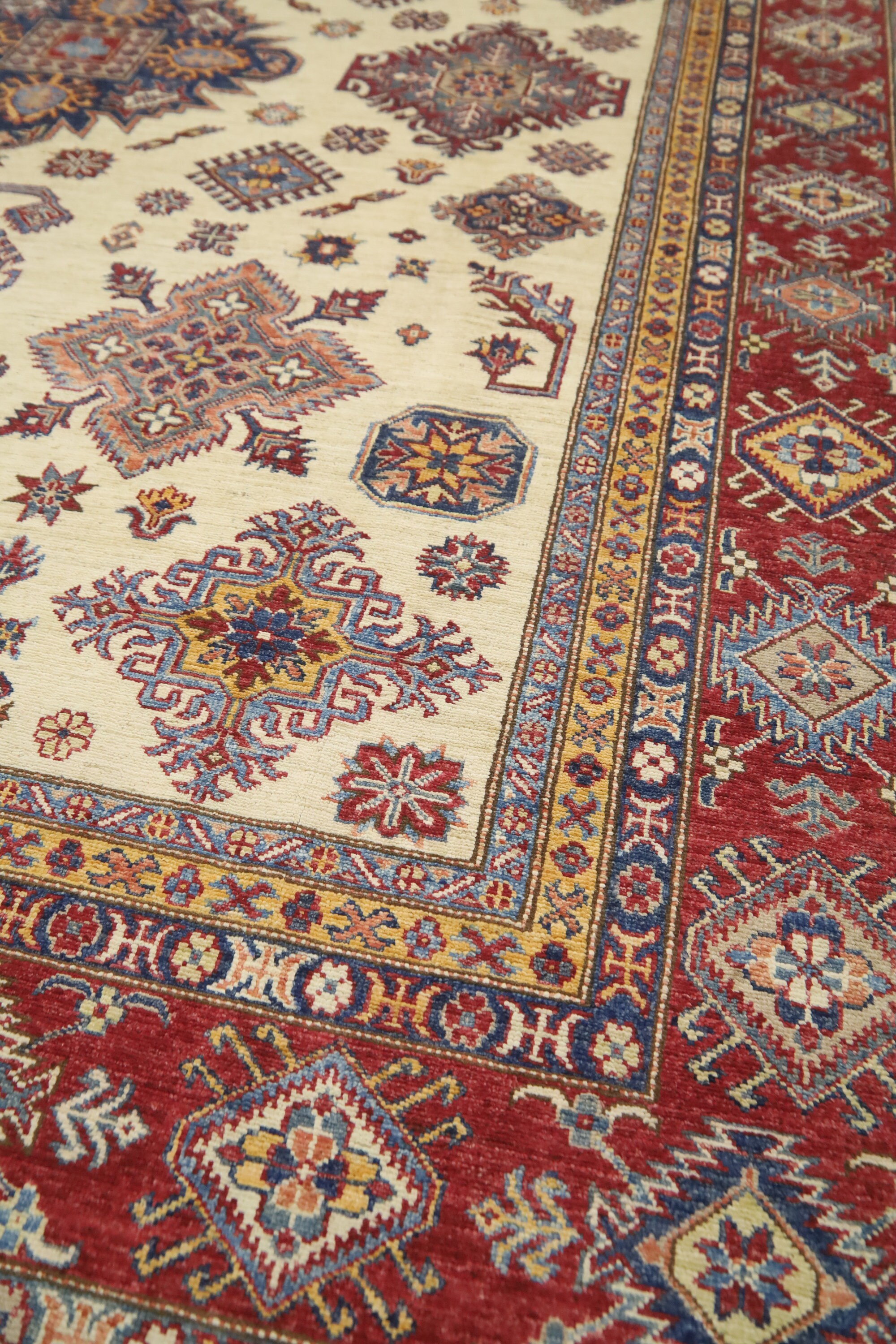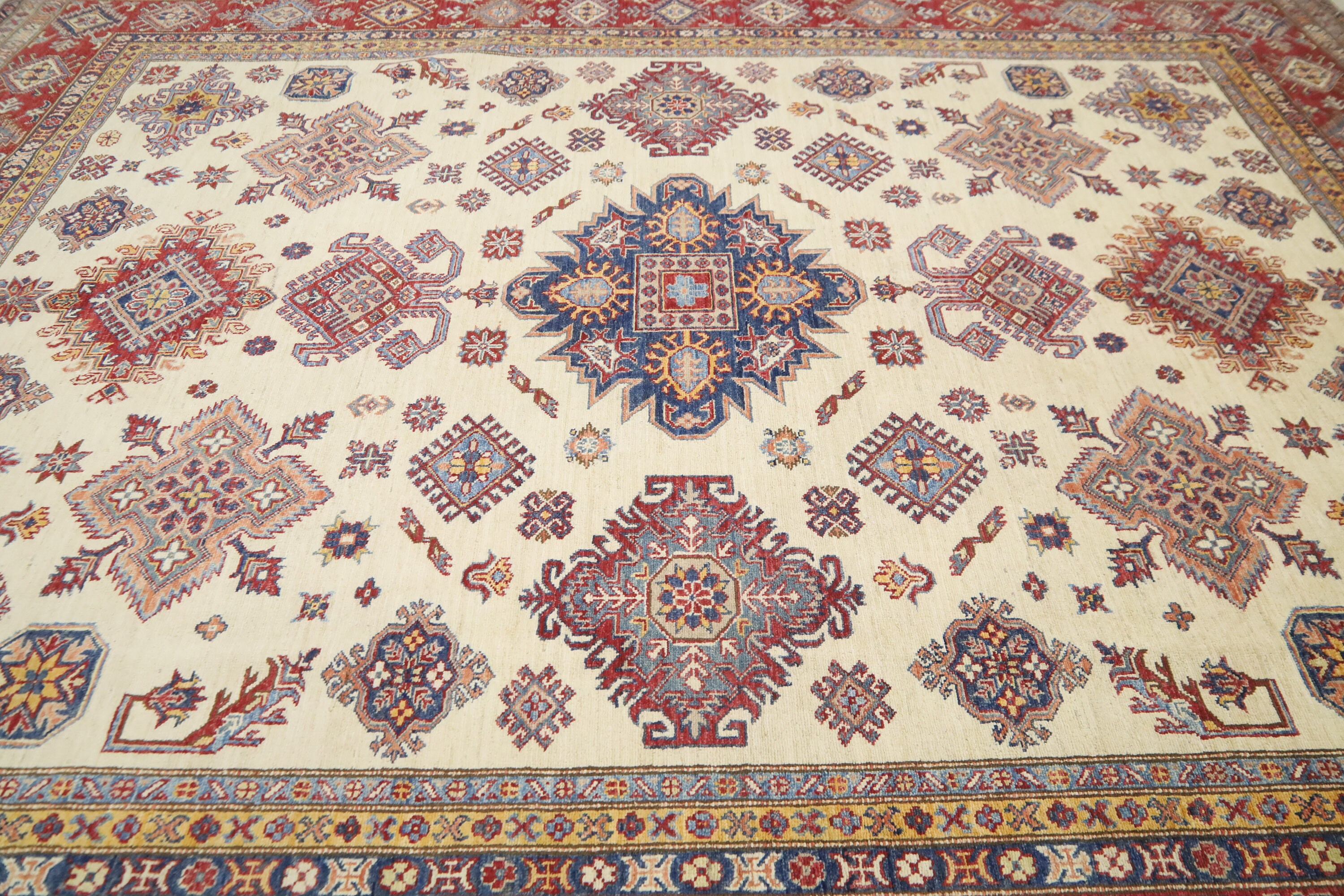 8x10 Kazak Fine Quality Area Rug - Beige Red Afghan Hand Made Geometric Design Wool Rug - Dining Room Rug - Living Room Rug - Bedroom Rug