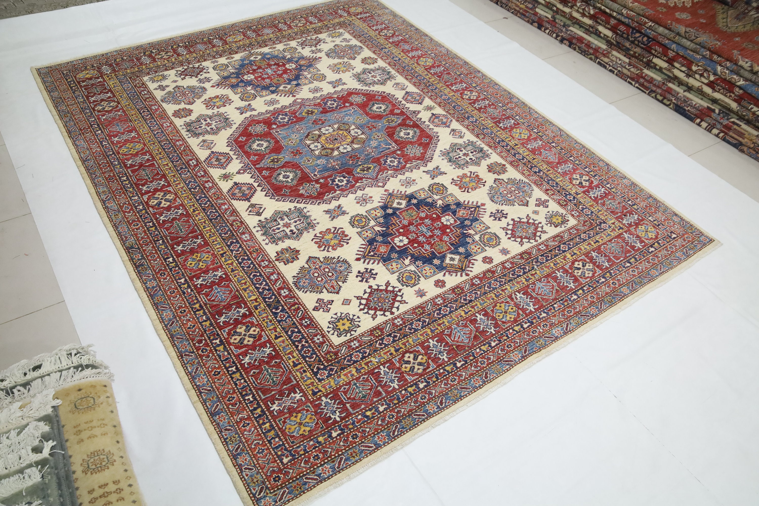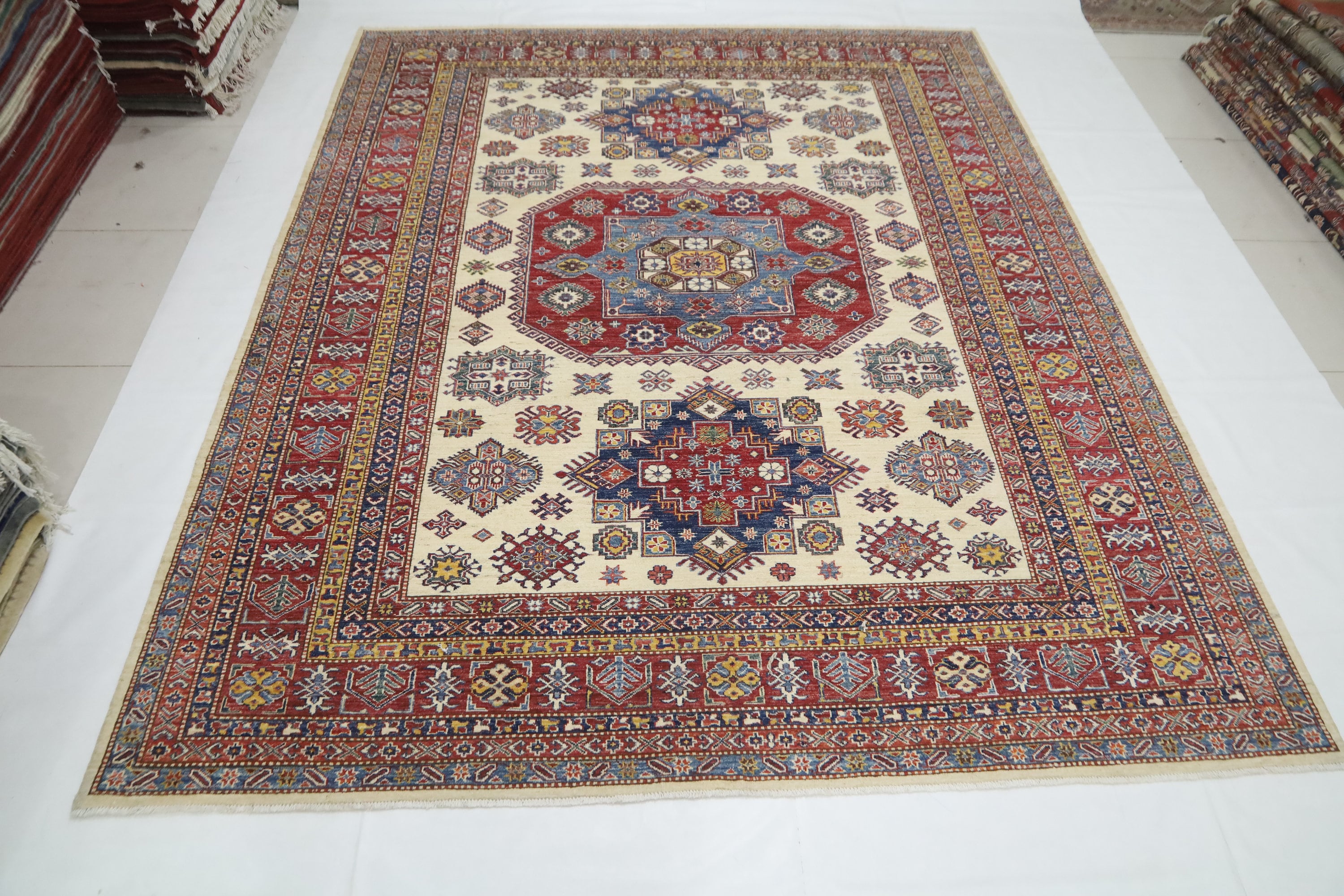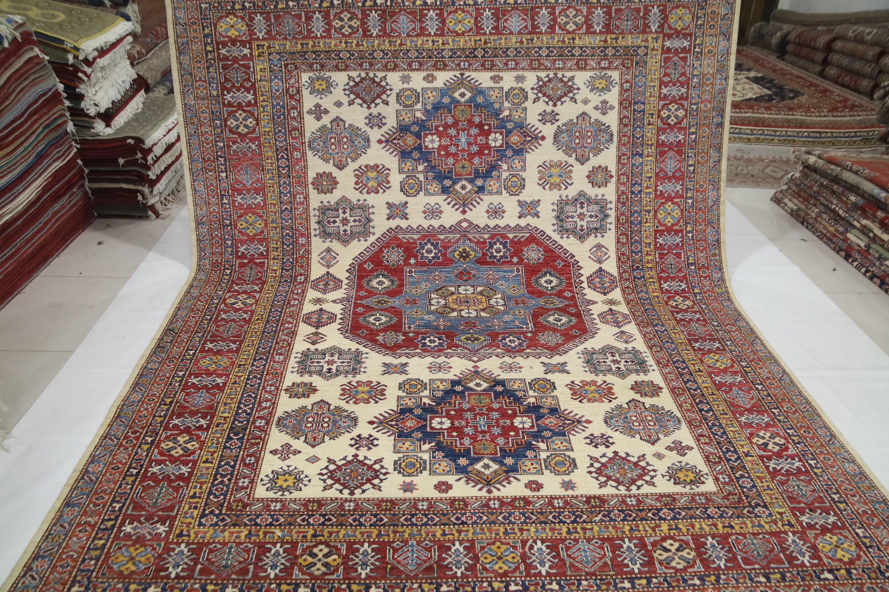 Beige 8x10 Kazak Area Rug - Afghan Hand Made Traditional Fine Quality Wool Rug - Beige Rugs - Caucasian Rug - Bedroom Rug - Living Room Rug