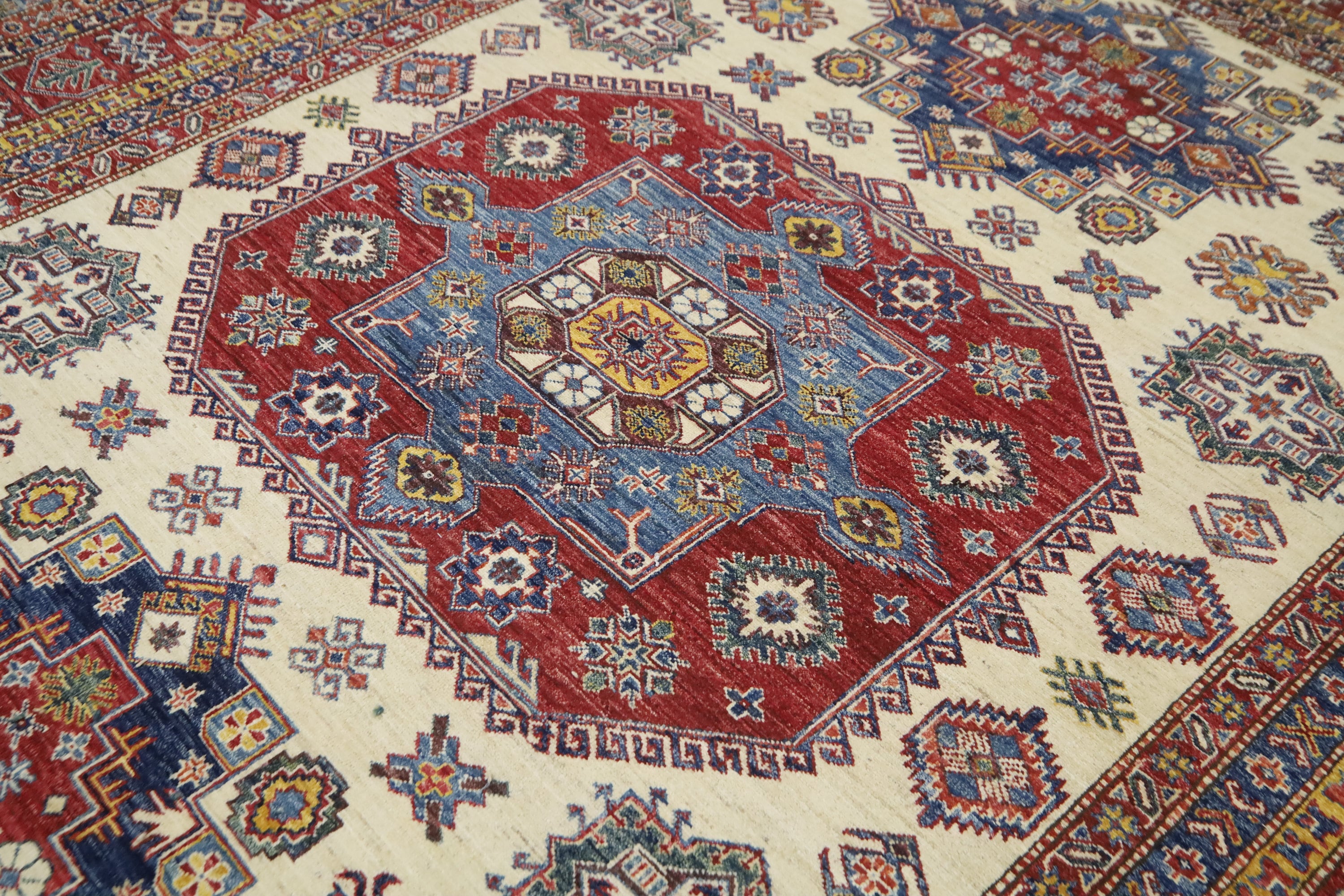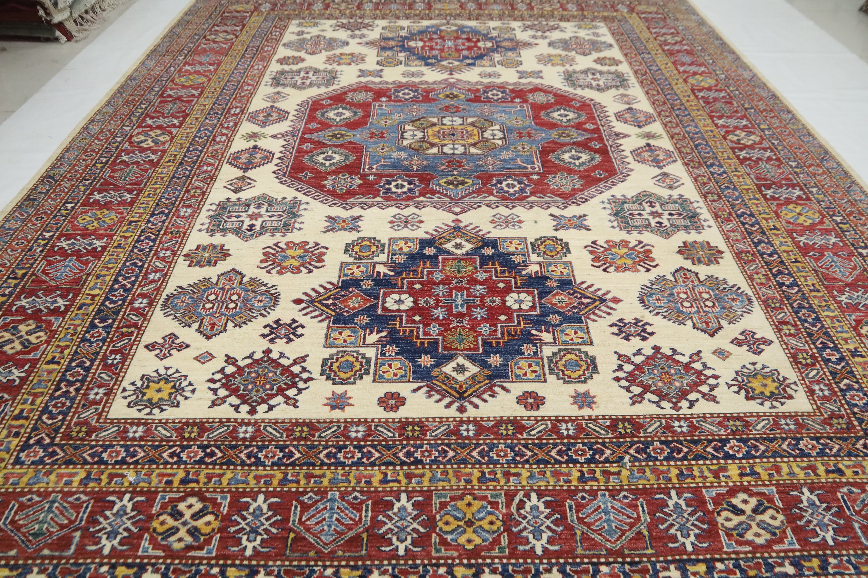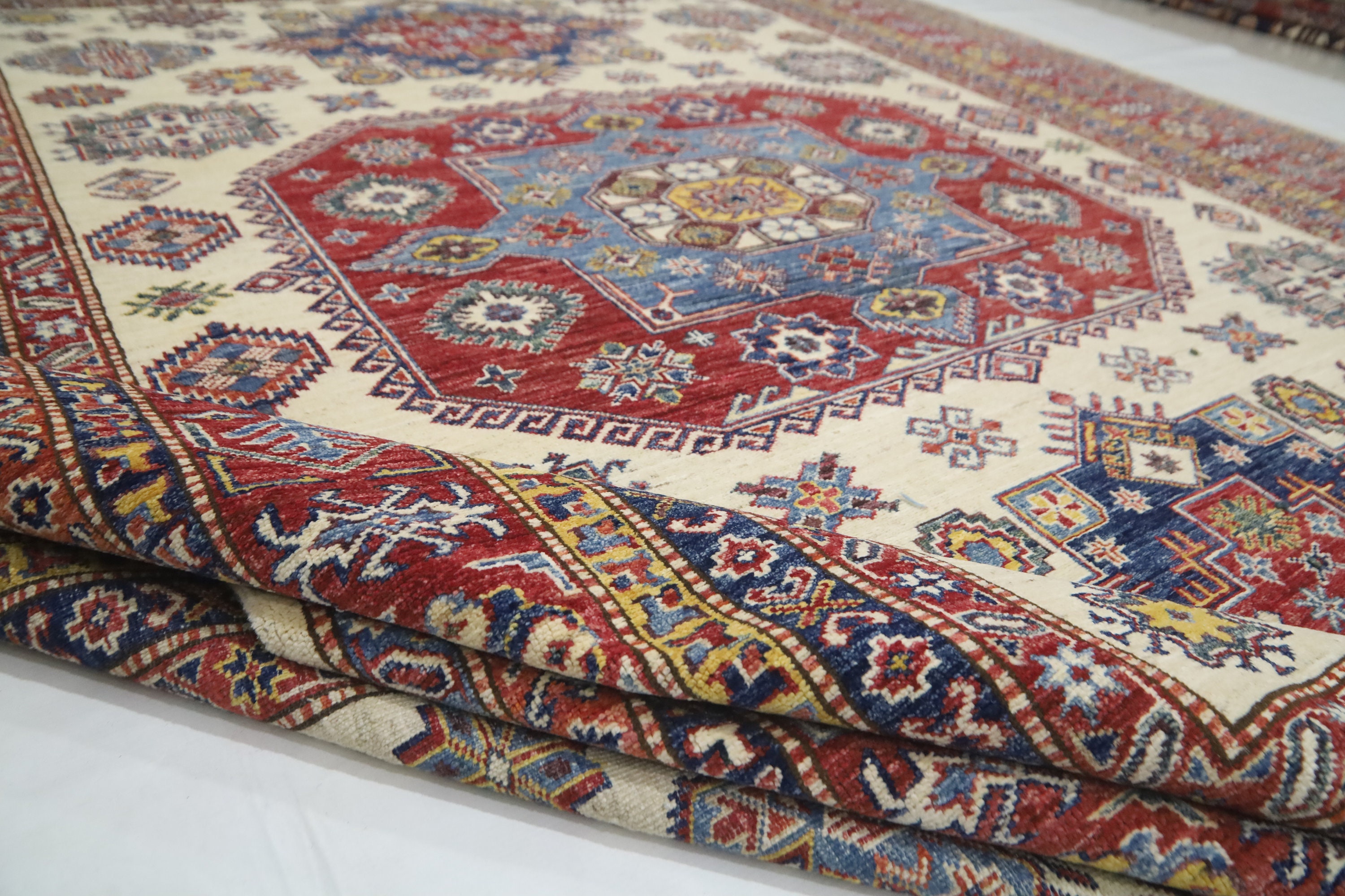 Beige 8x10 Kazak Area Rug - Afghan Hand Made Traditional Fine Quality Wool Rug - Beige Rugs - Caucasian Rug - Bedroom Rug - Living Room Rug