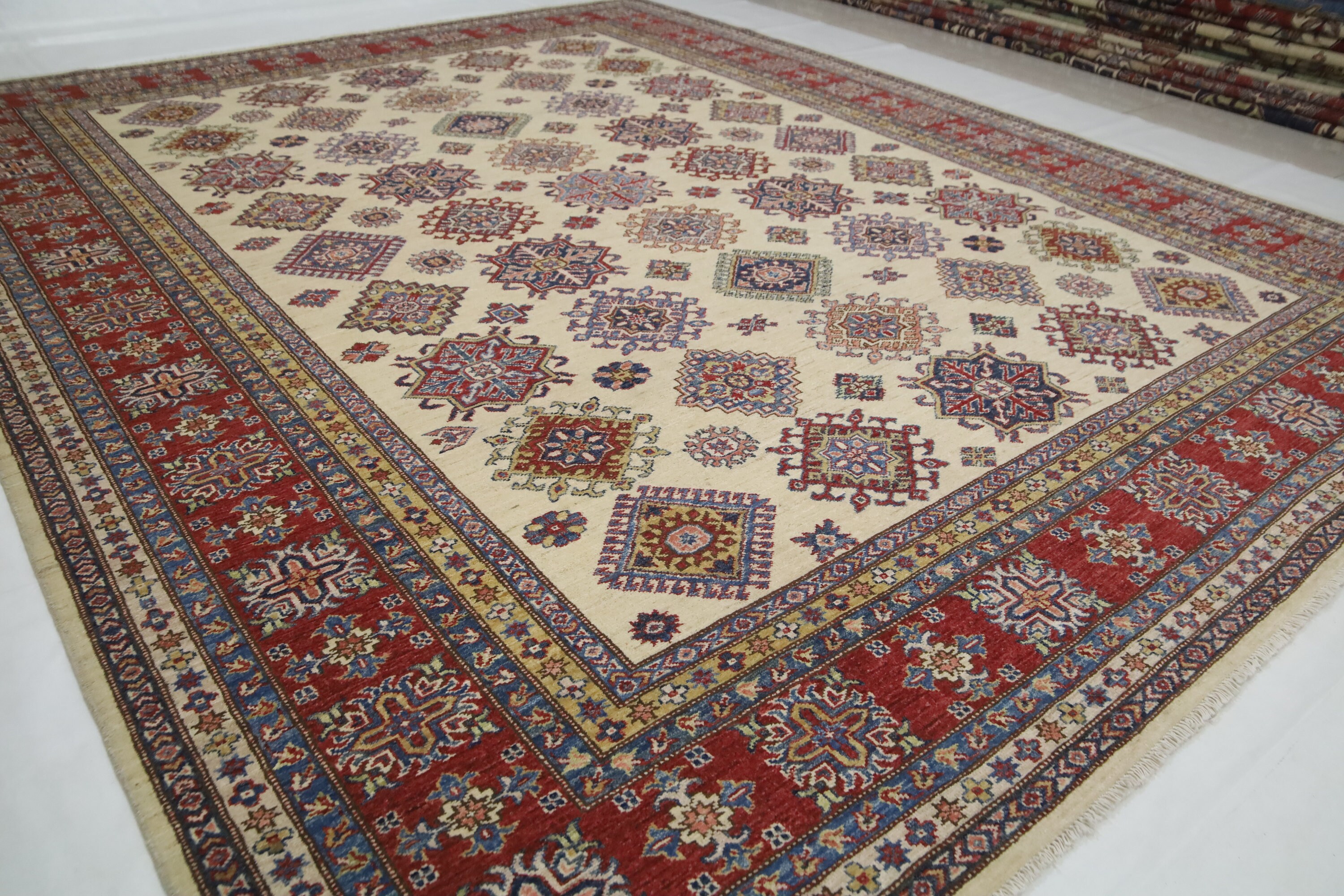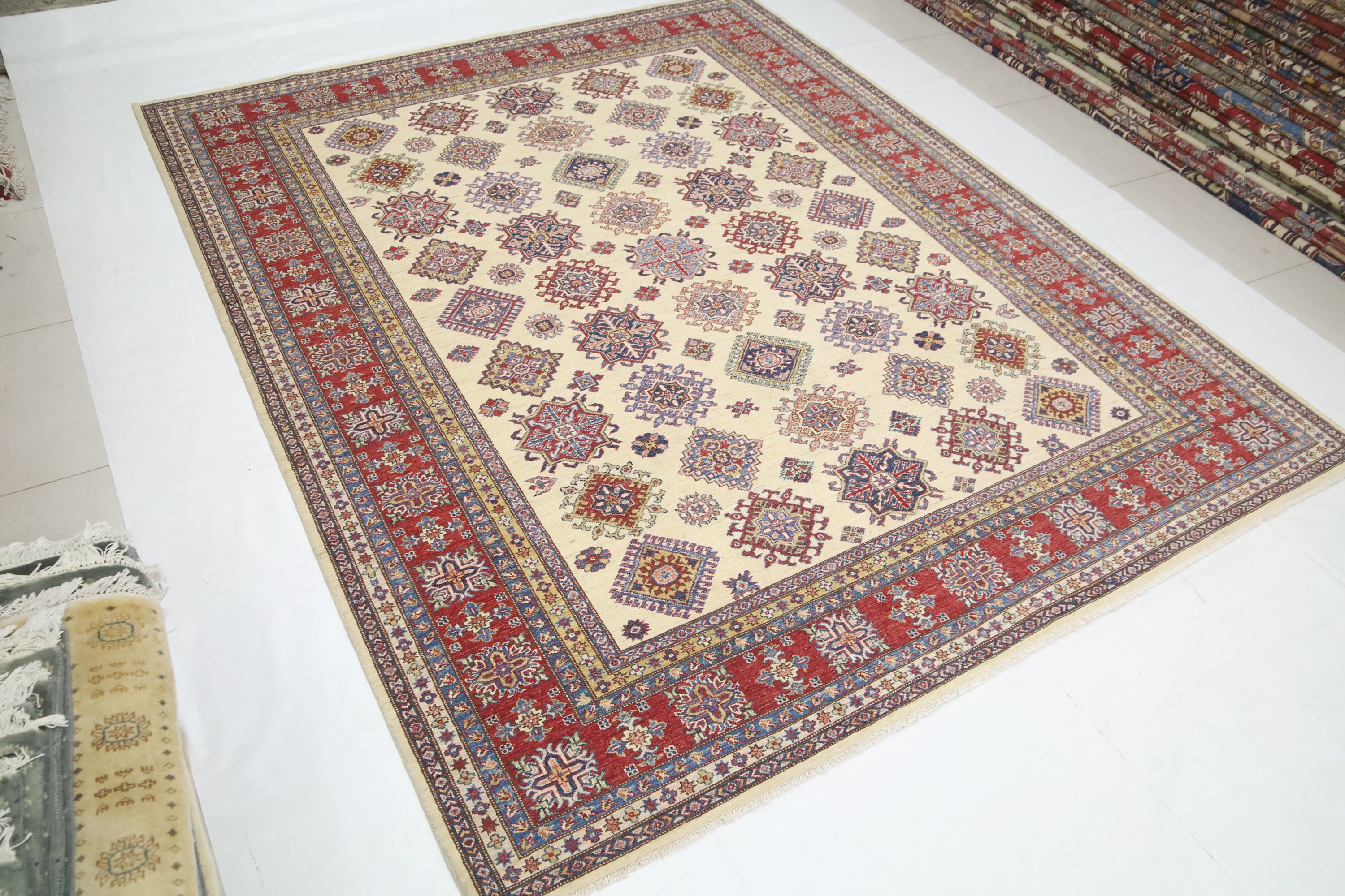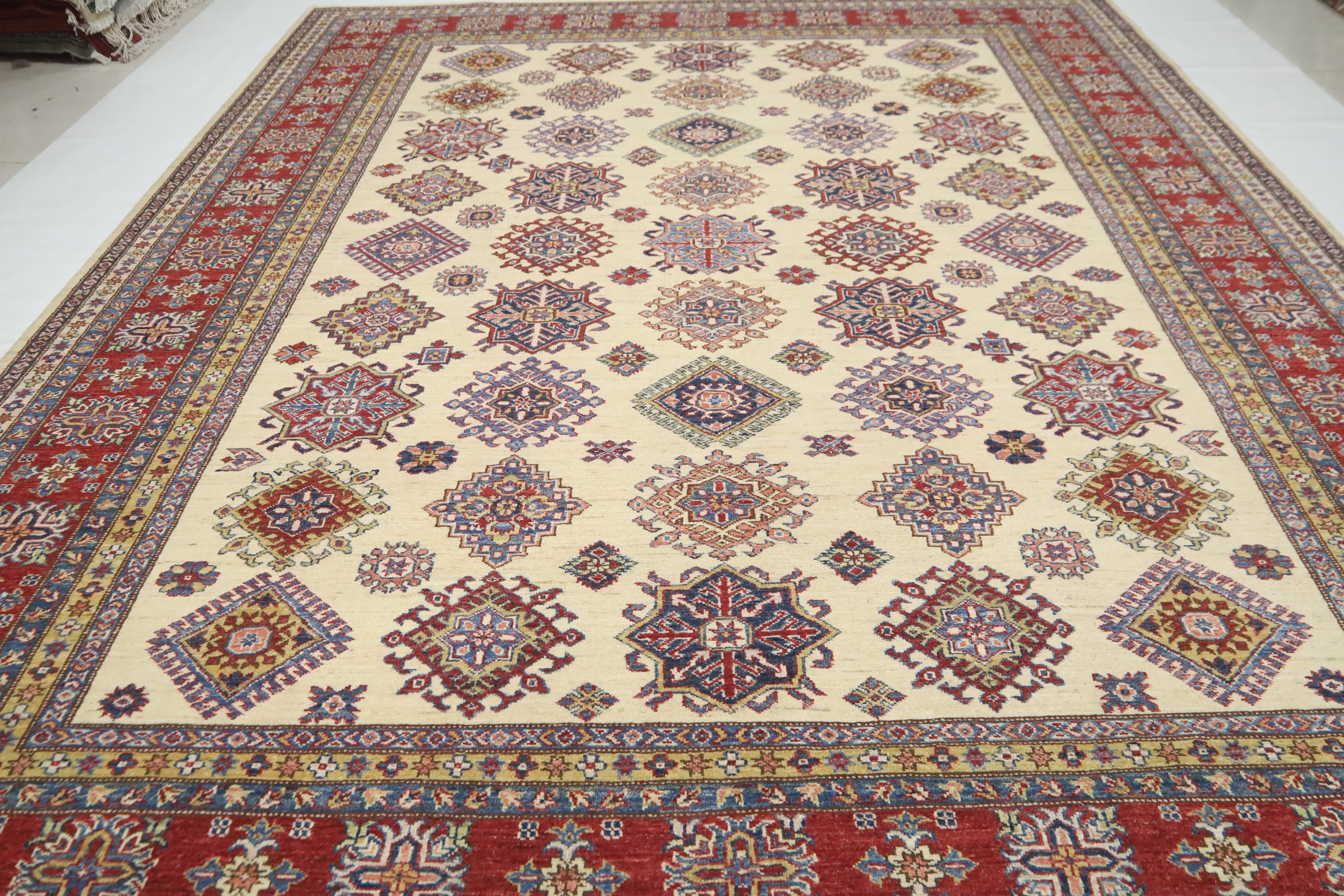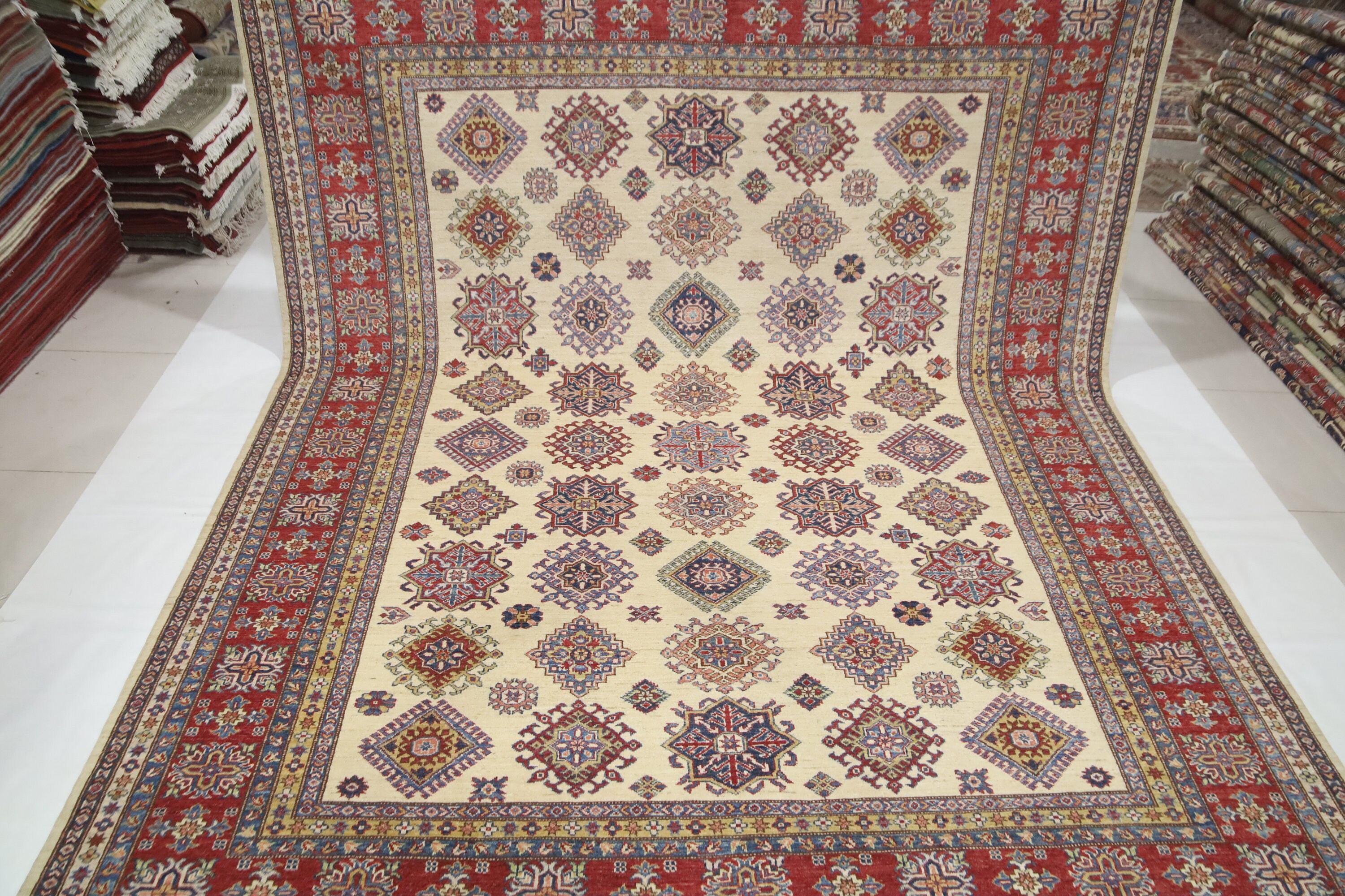 8x10 Ft Kazak Area Rug - Beige Red Afghan Hand Made Caucasian Fine Quality Wool Rug - Natural Wool Rug - Bedroom Rug - Living Room Rug