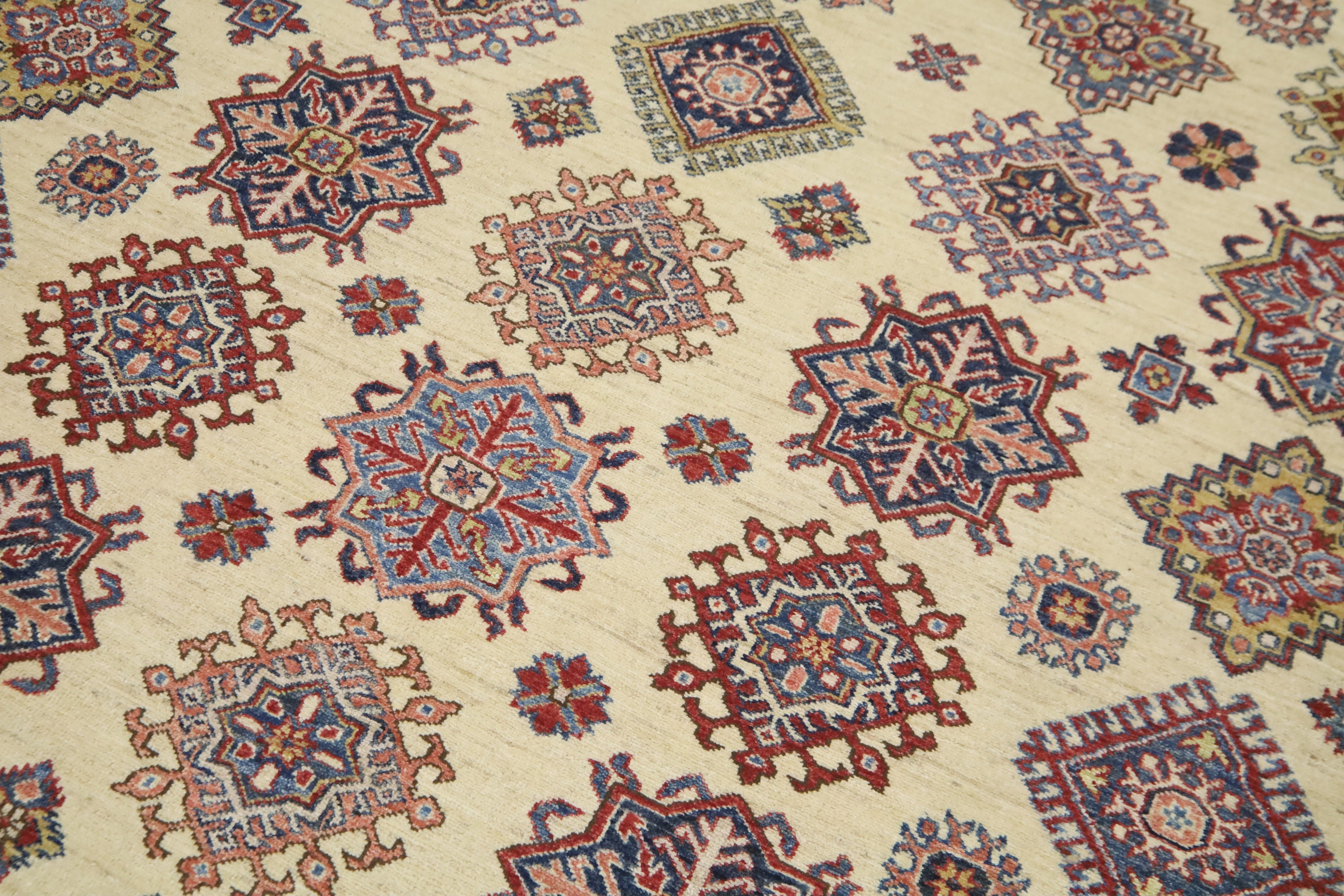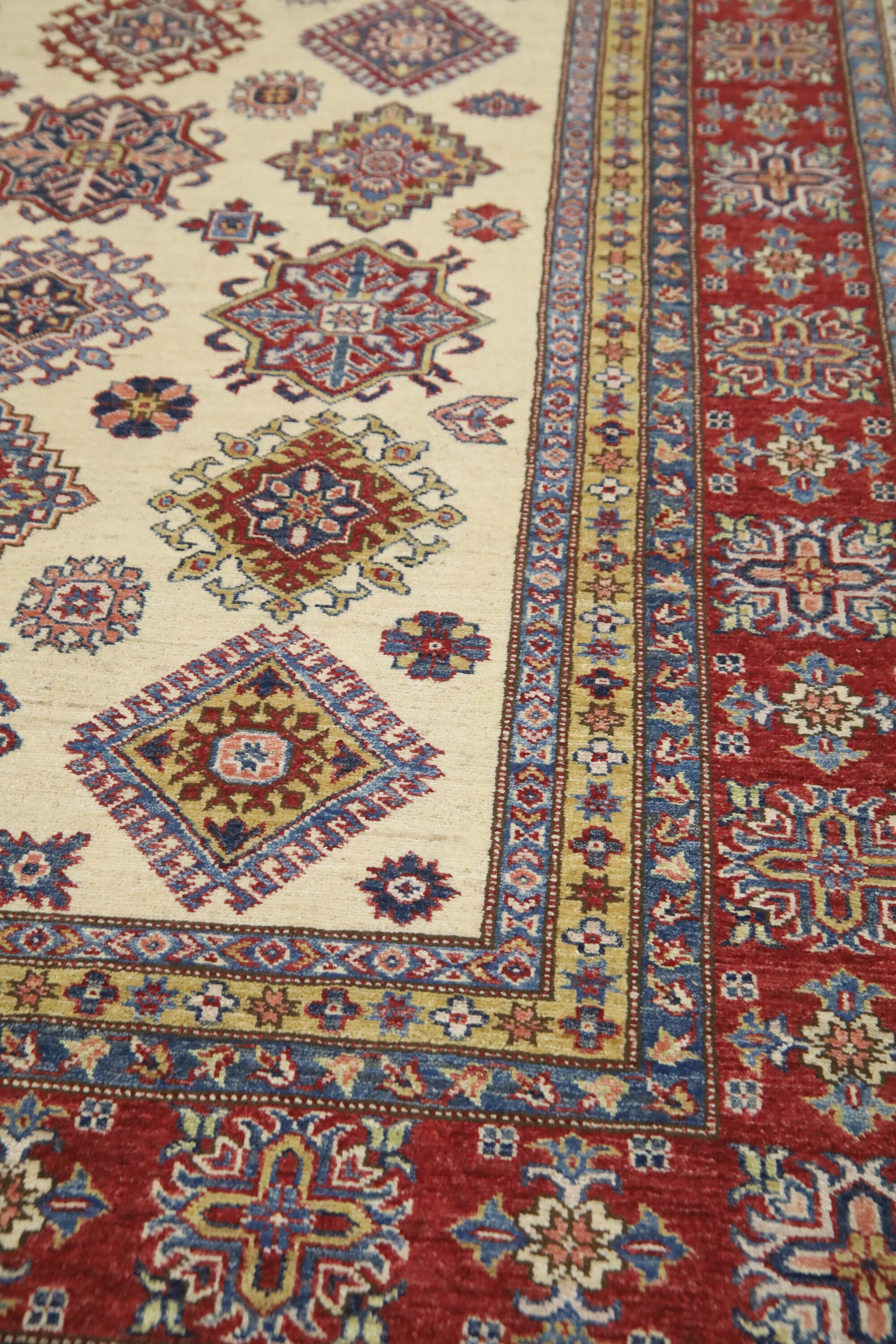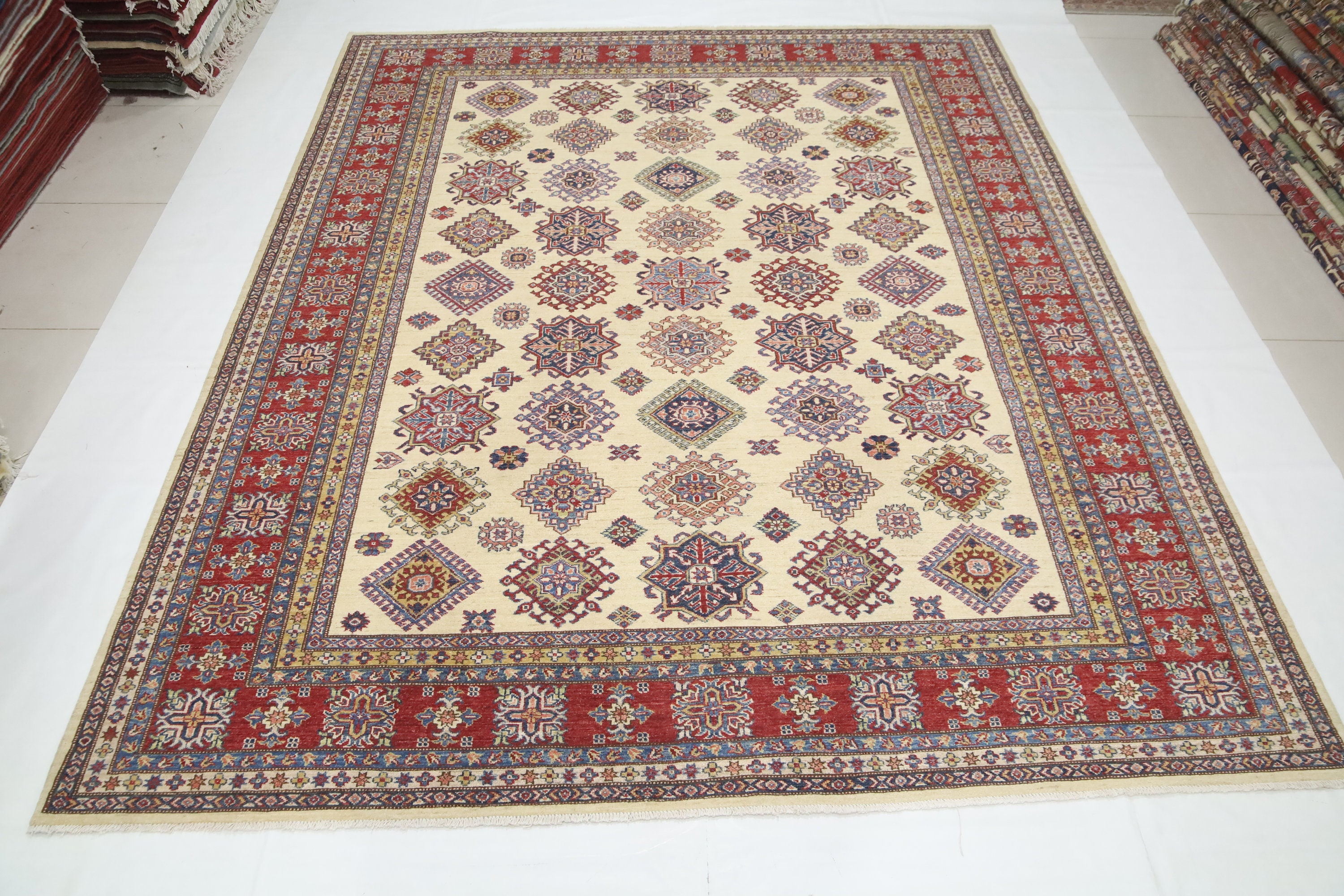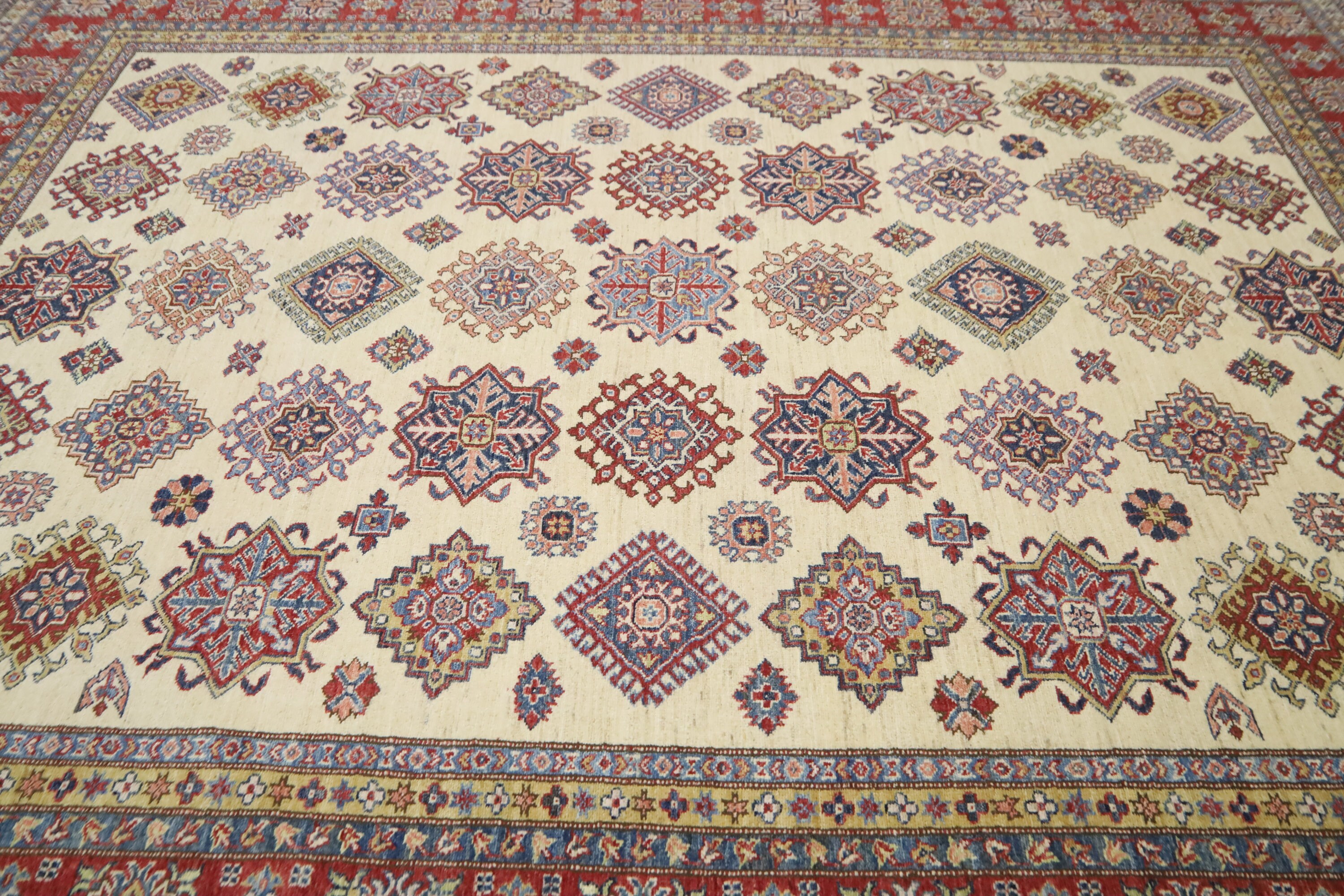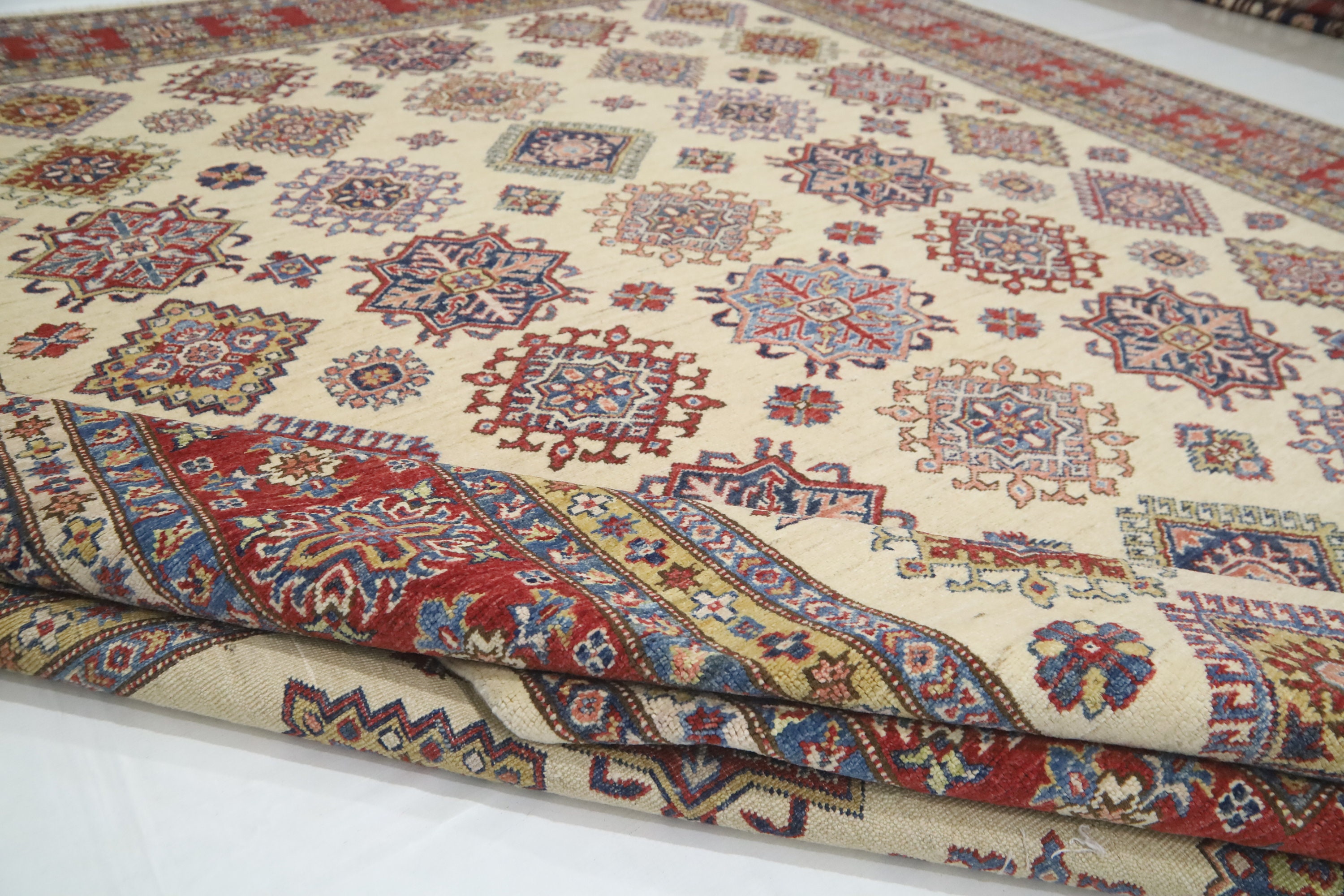 8x10 Ft Kazak Area Rug - Beige Red Afghan Hand Made Caucasian Fine Quality Wool Rug - Natural Wool Rug - Bedroom Rug - Living Room Rug
