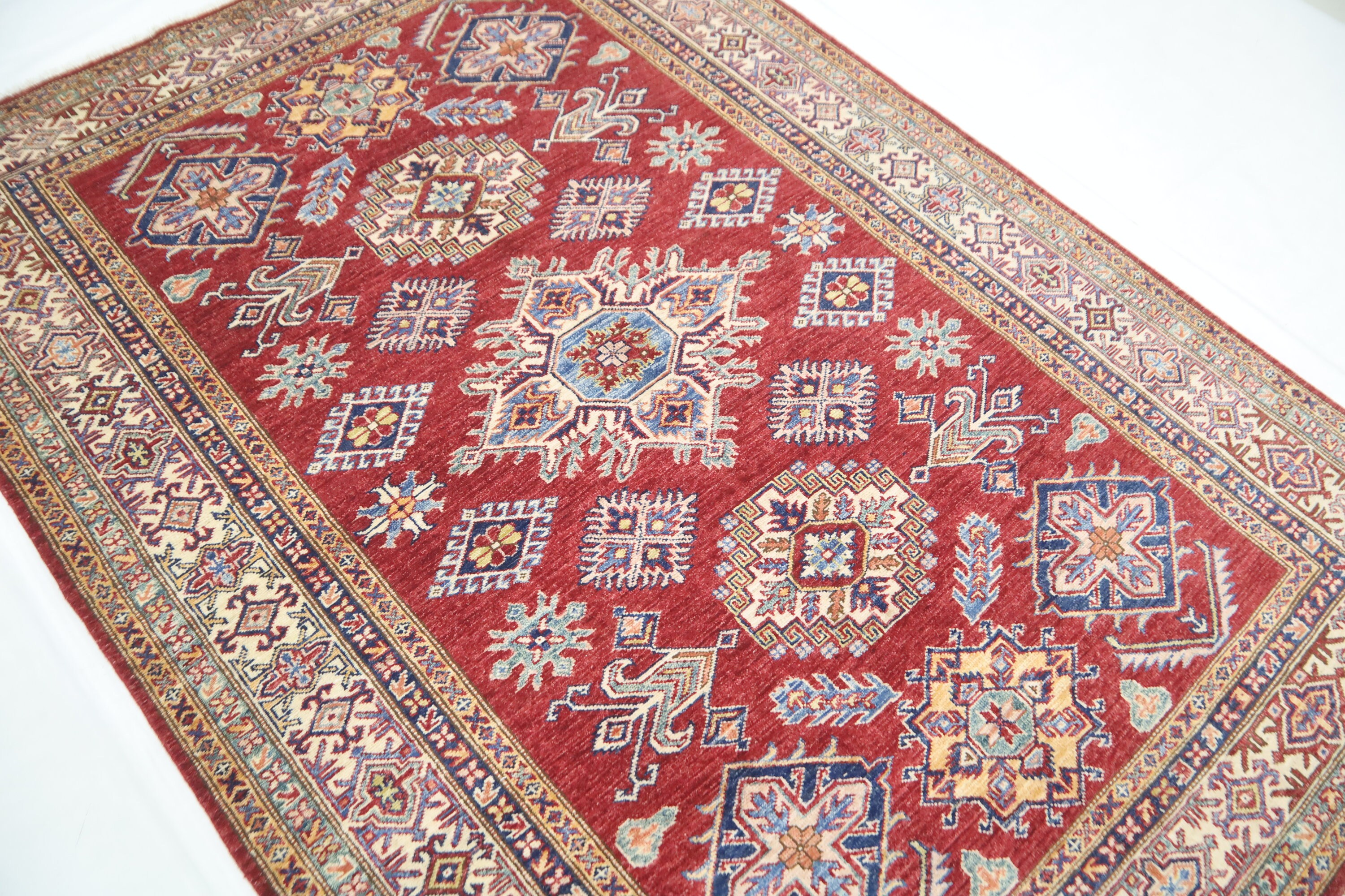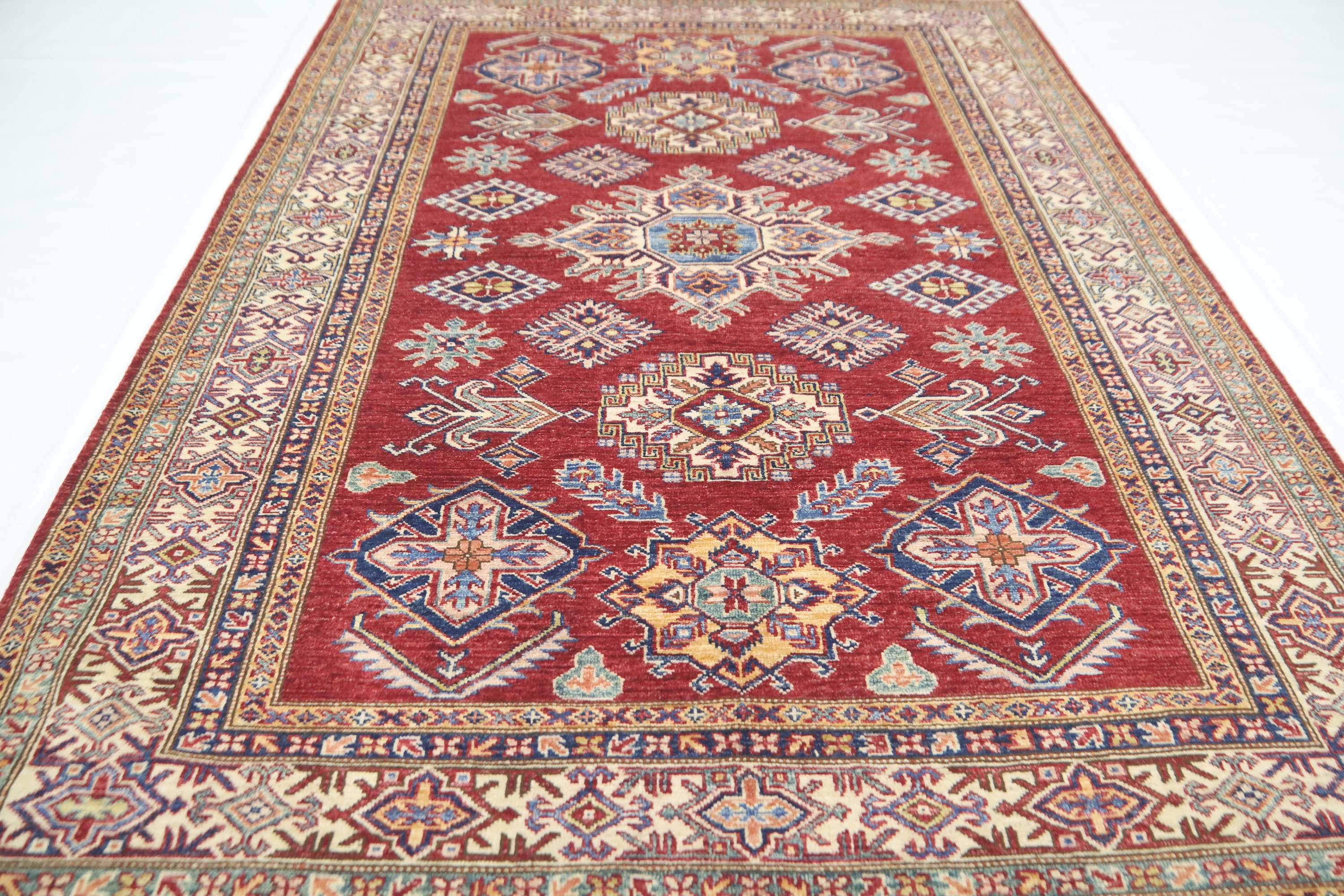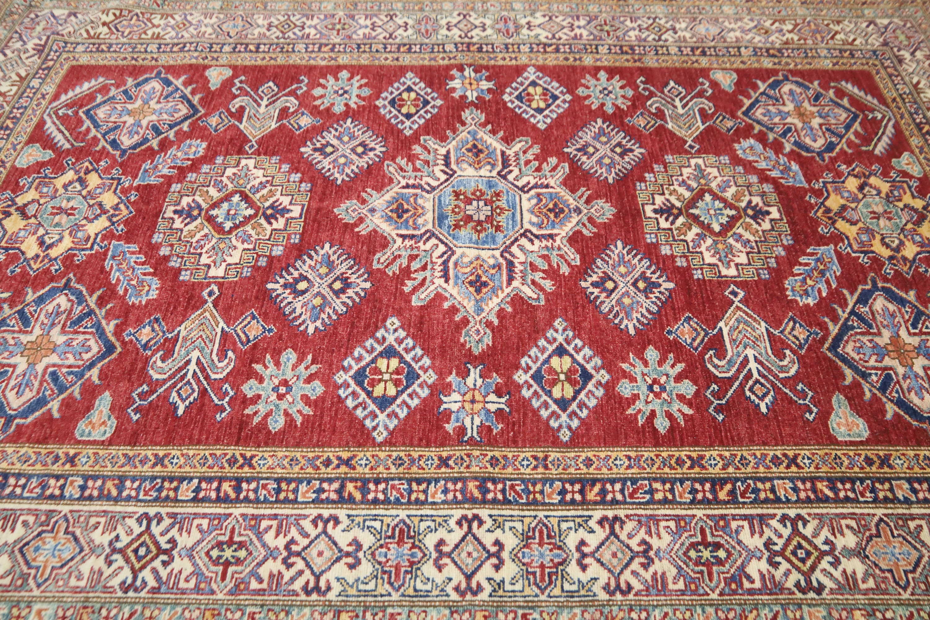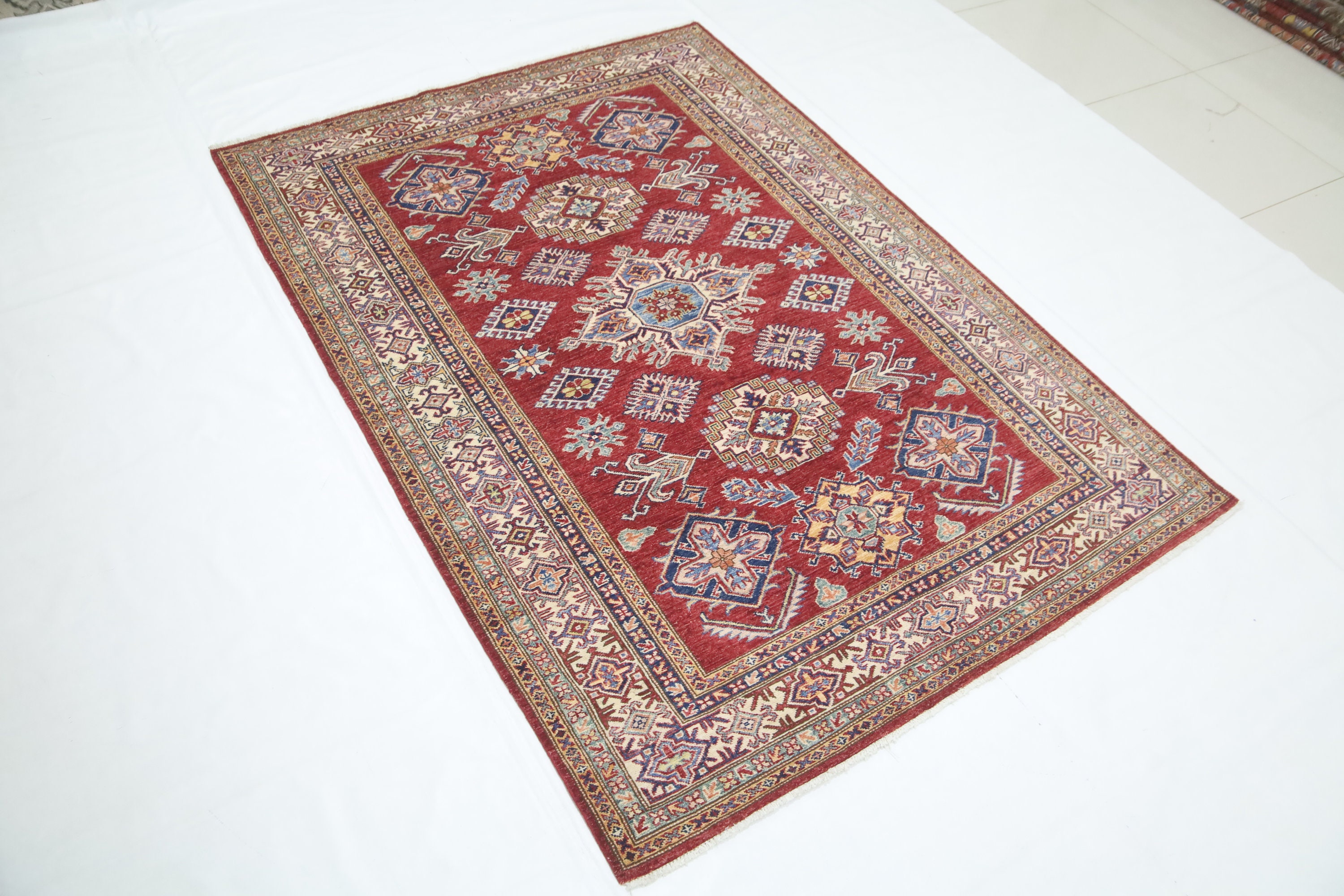 Wool 5x7 Rug - Red Kazak Rug - Geometric Wool Rug - Handmade Rug - Traditional Rug - Oriental Rug - Area Rug - Kitchen Rug - Foyer Rug