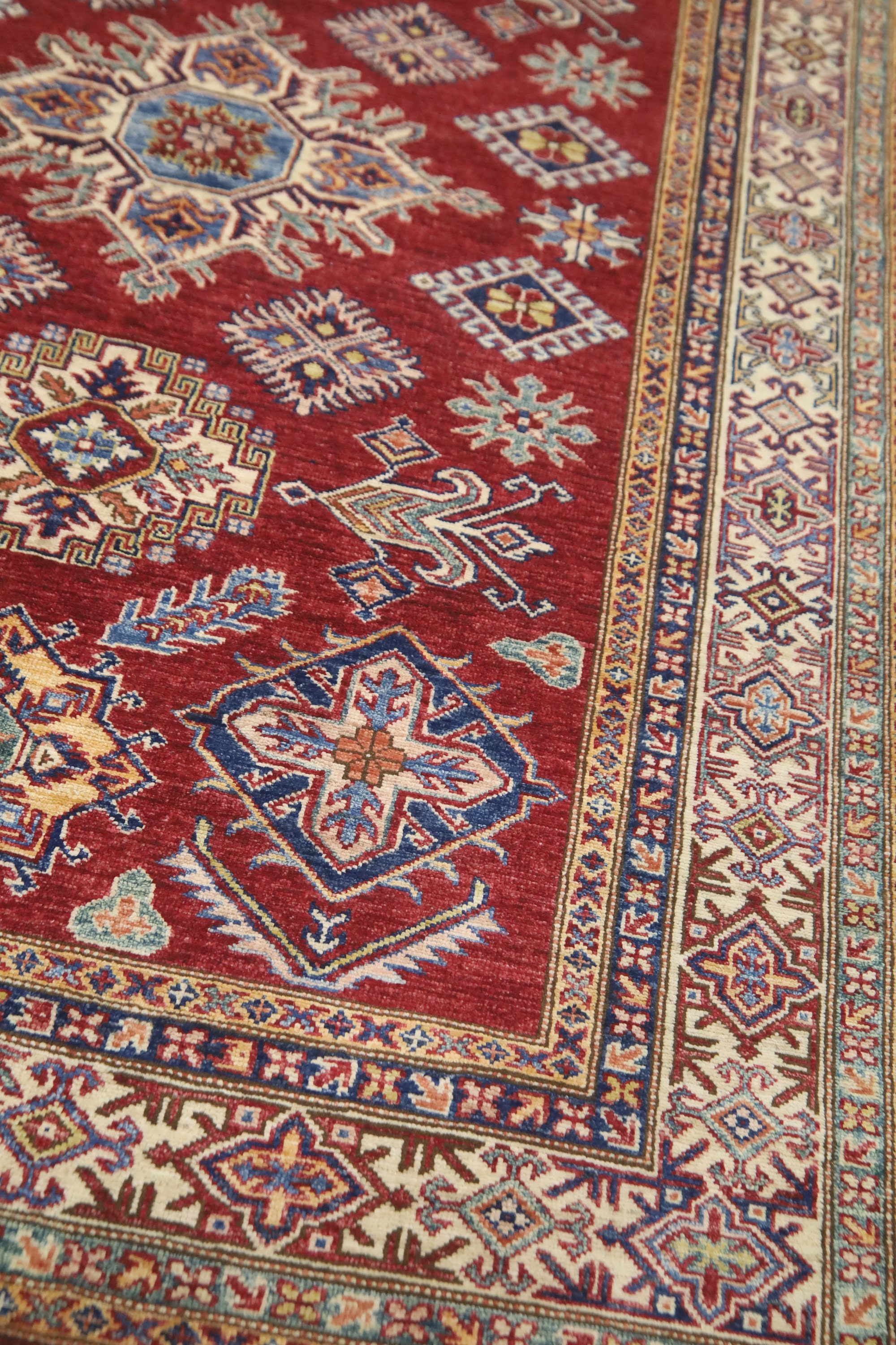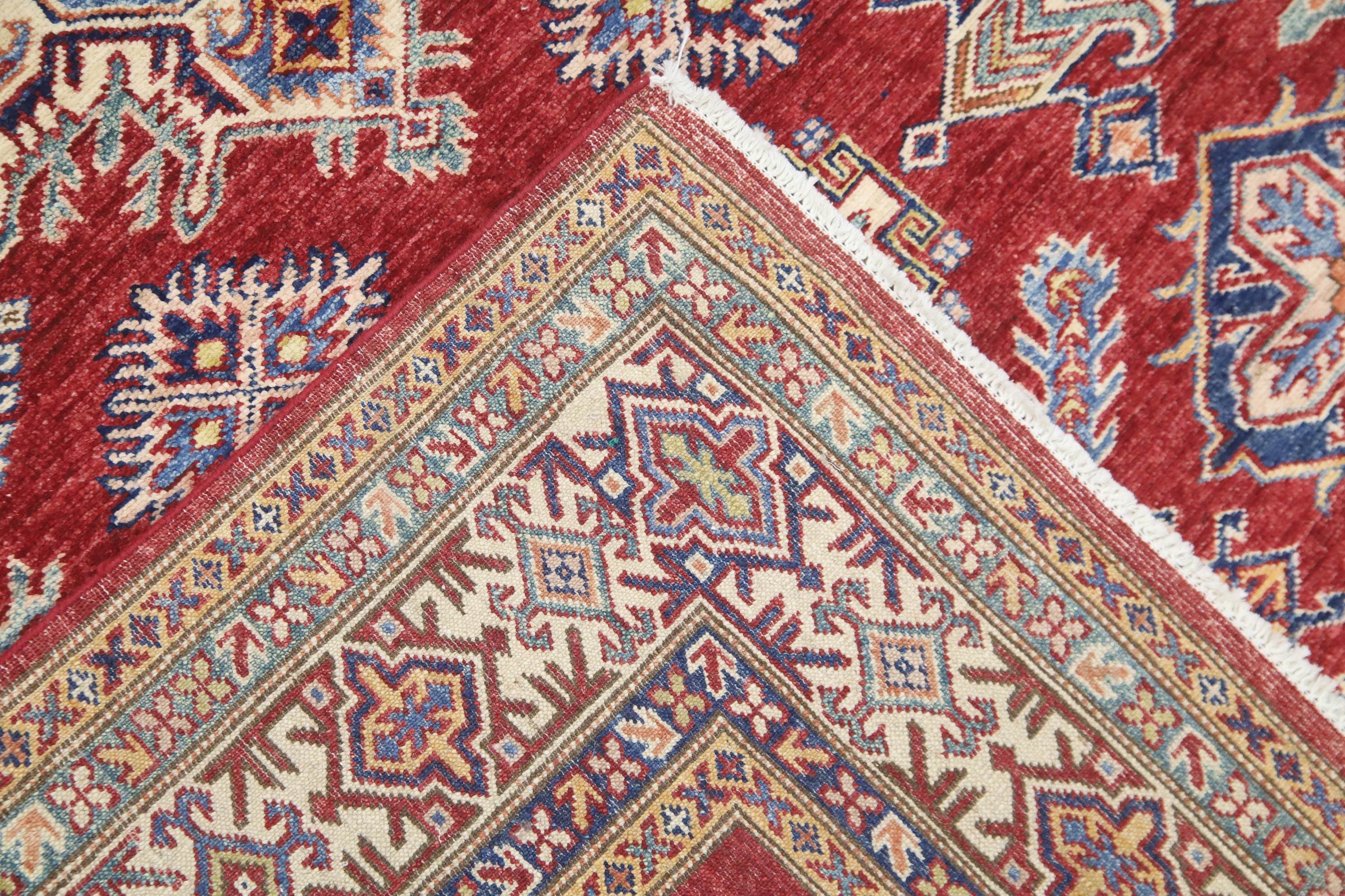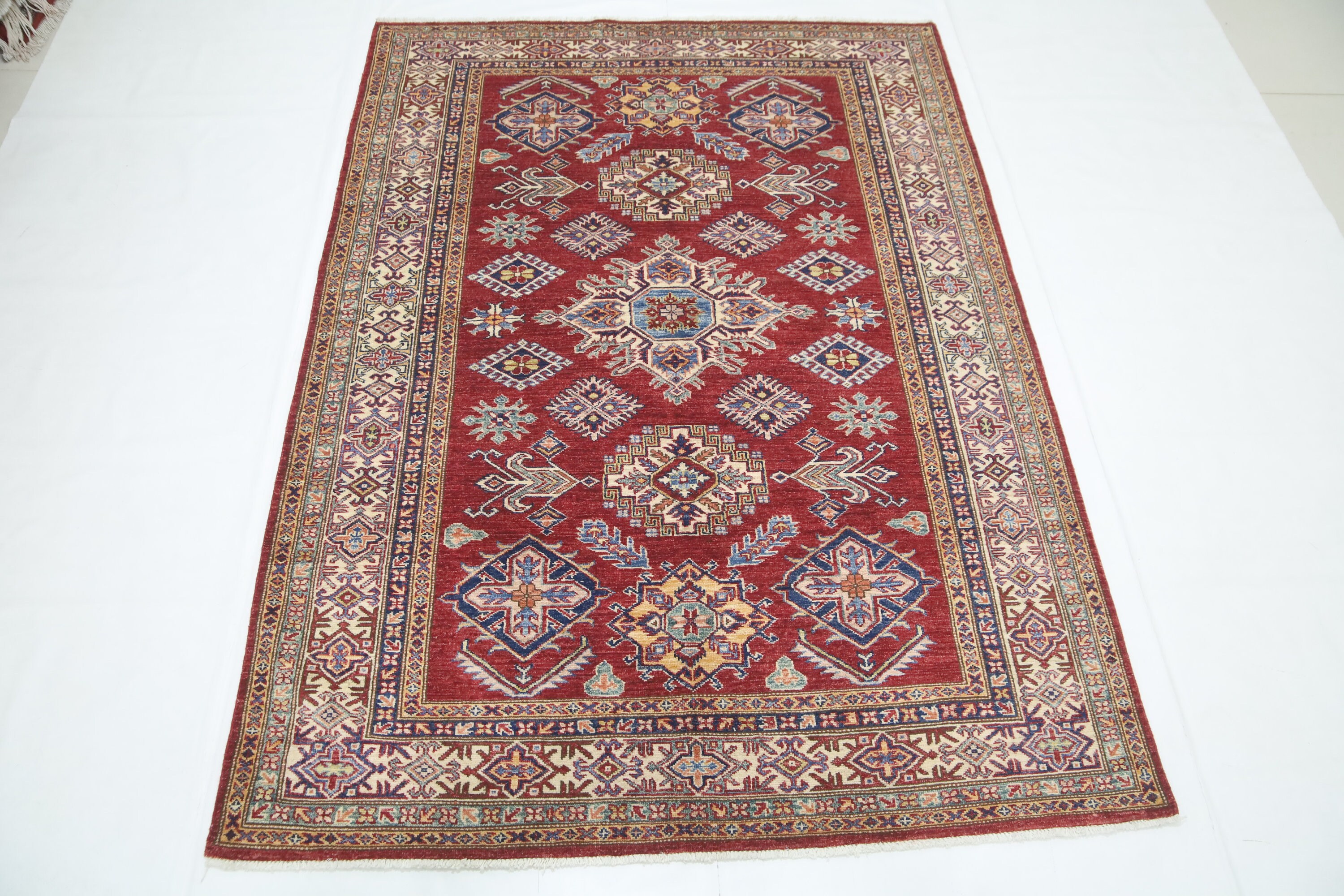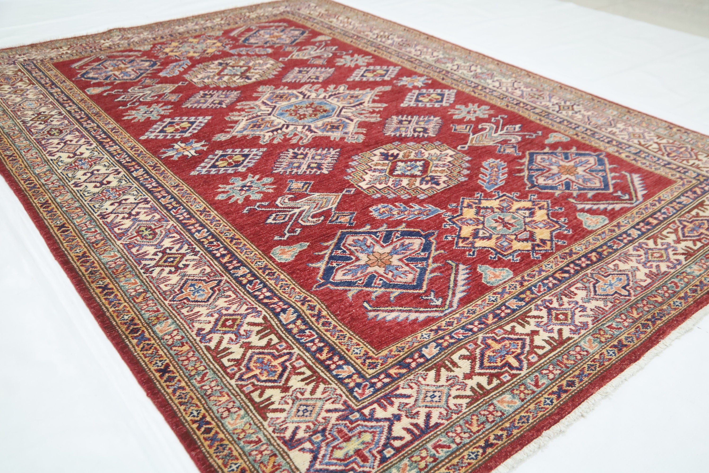 Wool 5x7 Rug - Red Kazak Rug - Geometric Wool Rug - Handmade Rug - Traditional Rug - Oriental Rug - Area Rug - Kitchen Rug - Foyer Rug