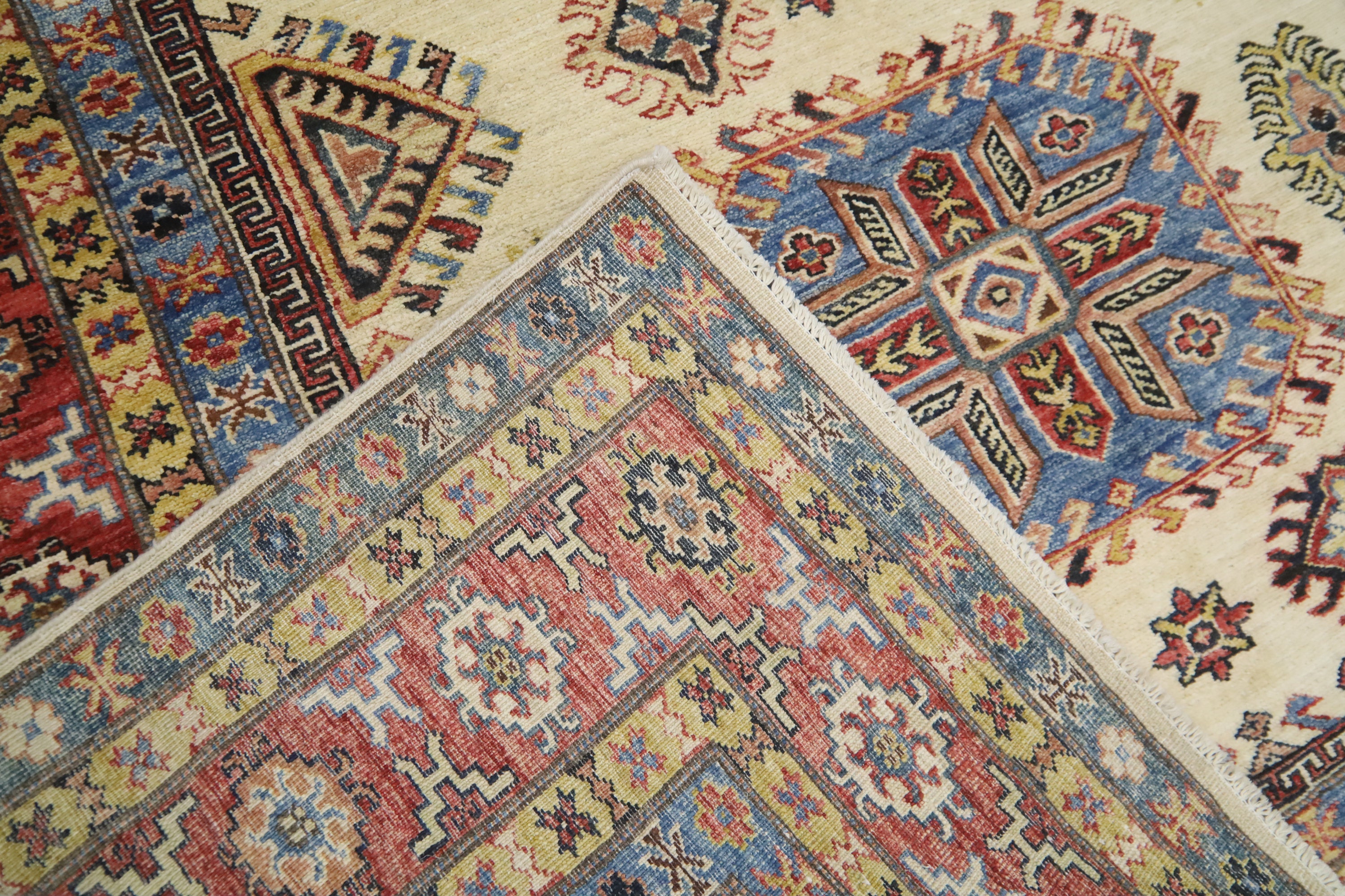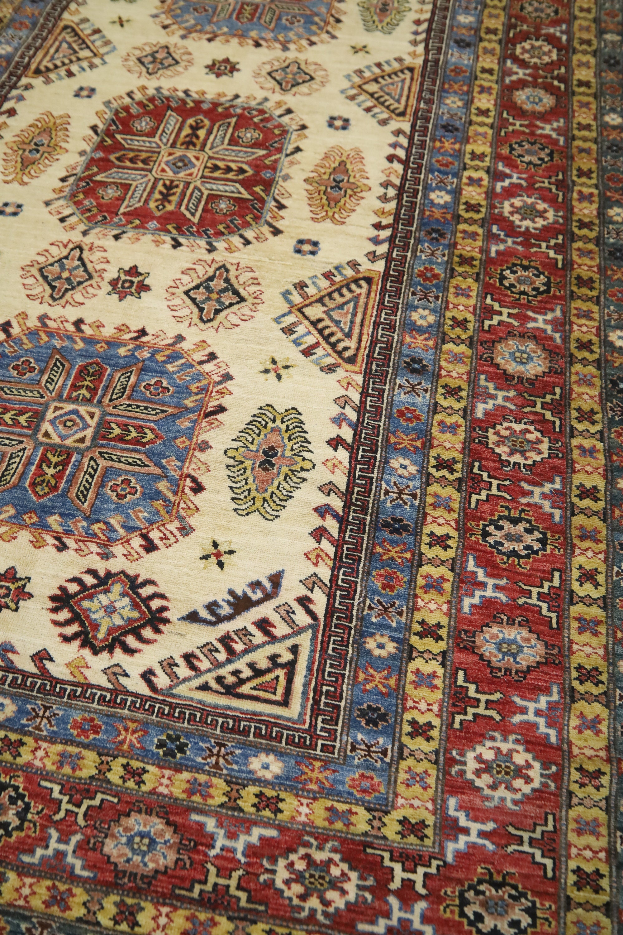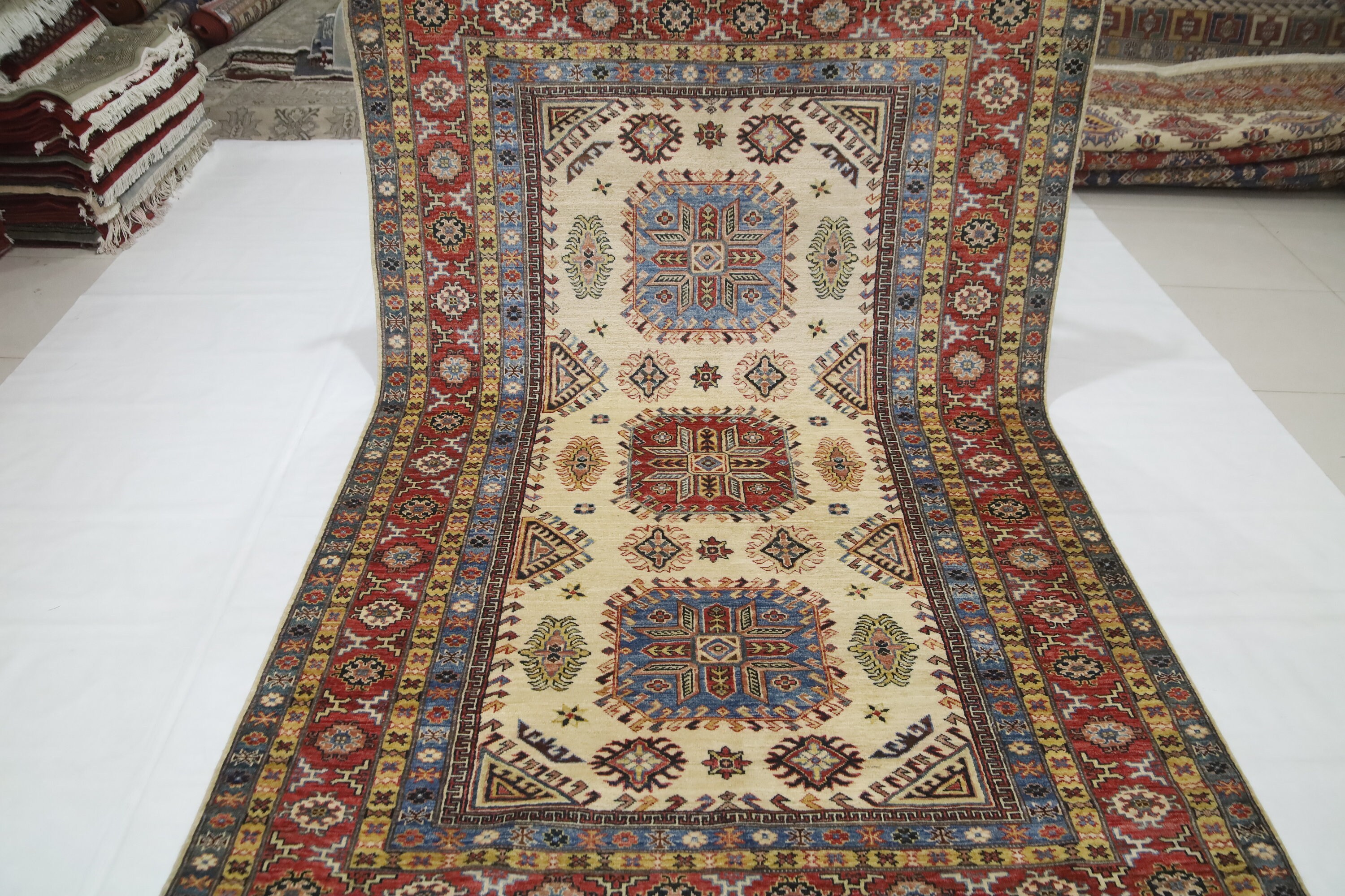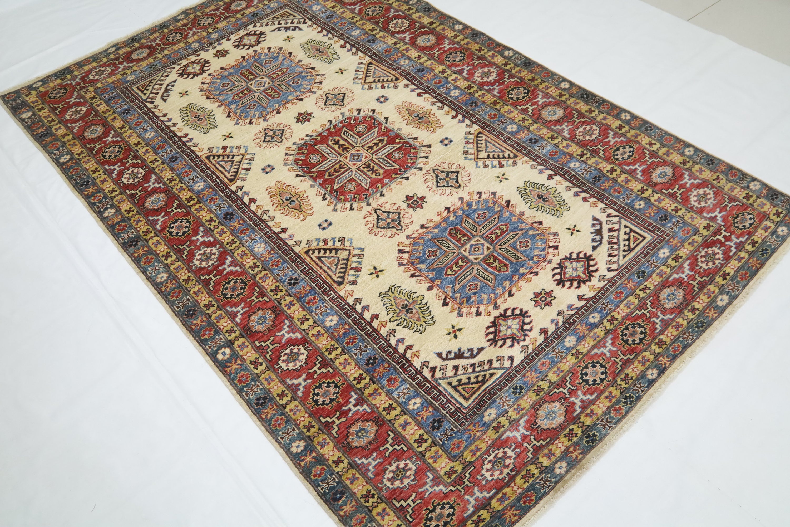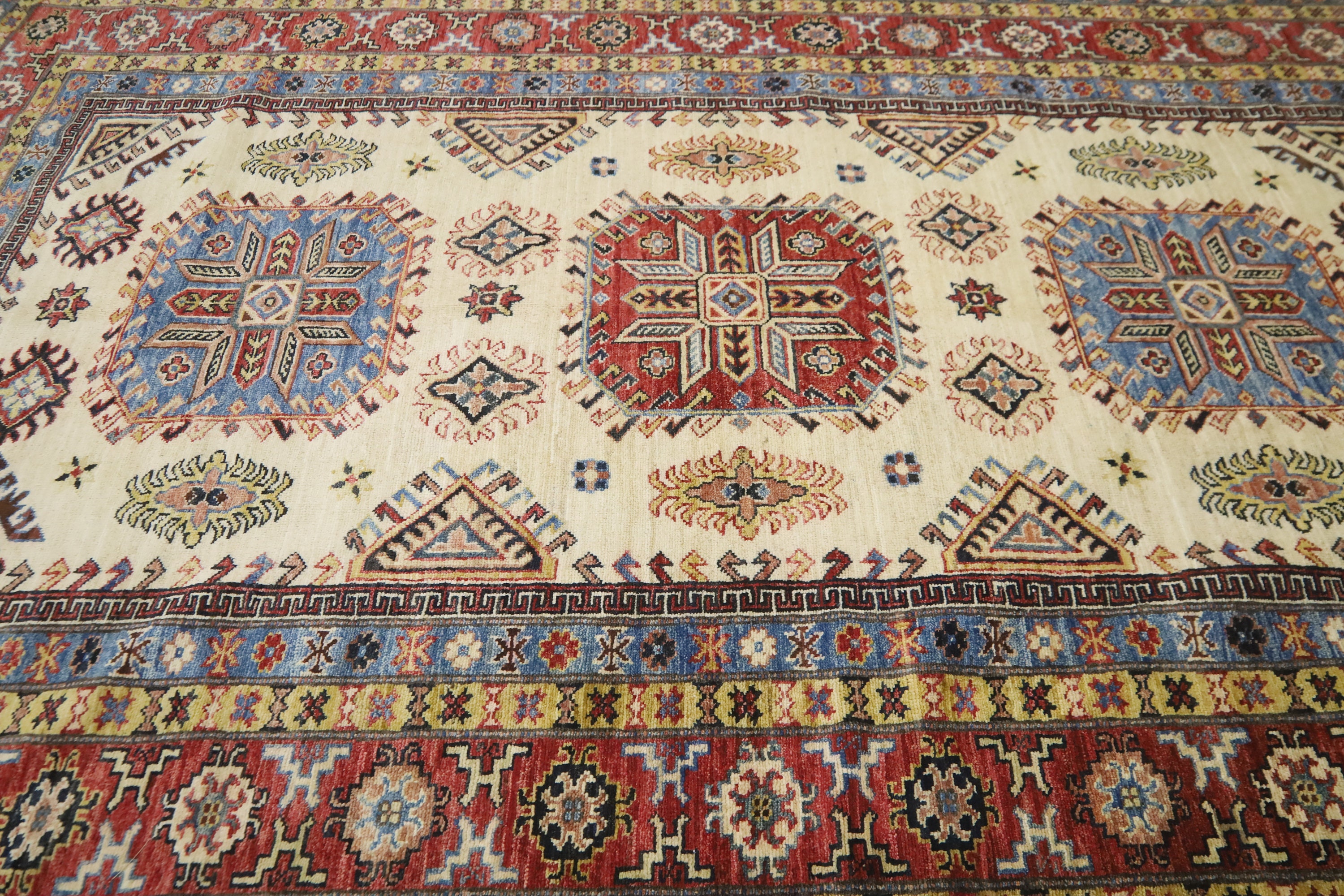 5x8 Geometric Kazak Area Rug - Beige Afghan Hand Made Oriental Fine Quality Wool Rug - Kitchen Rug - Entryway Rug - Bedroom Rug - Office Rug