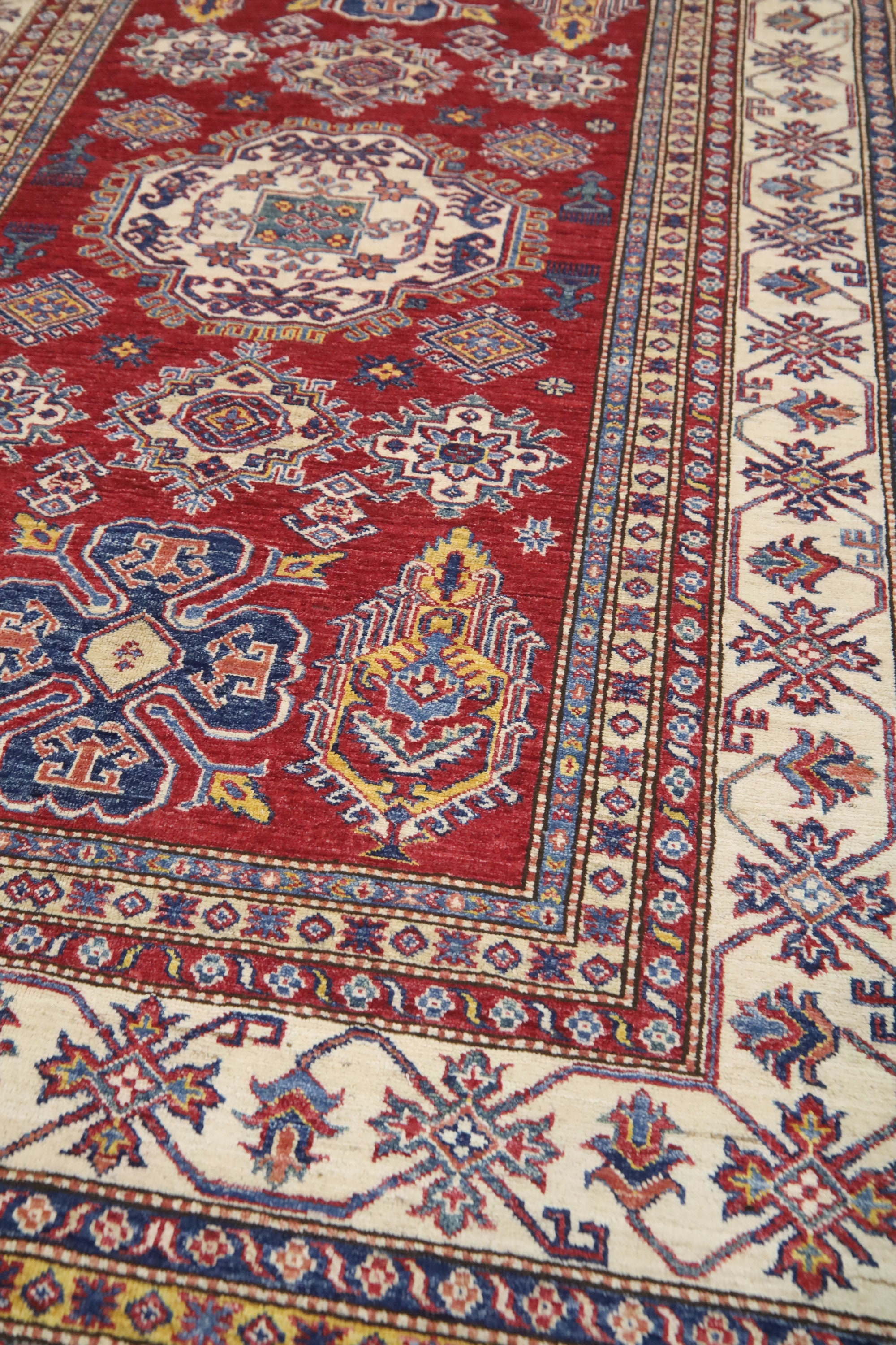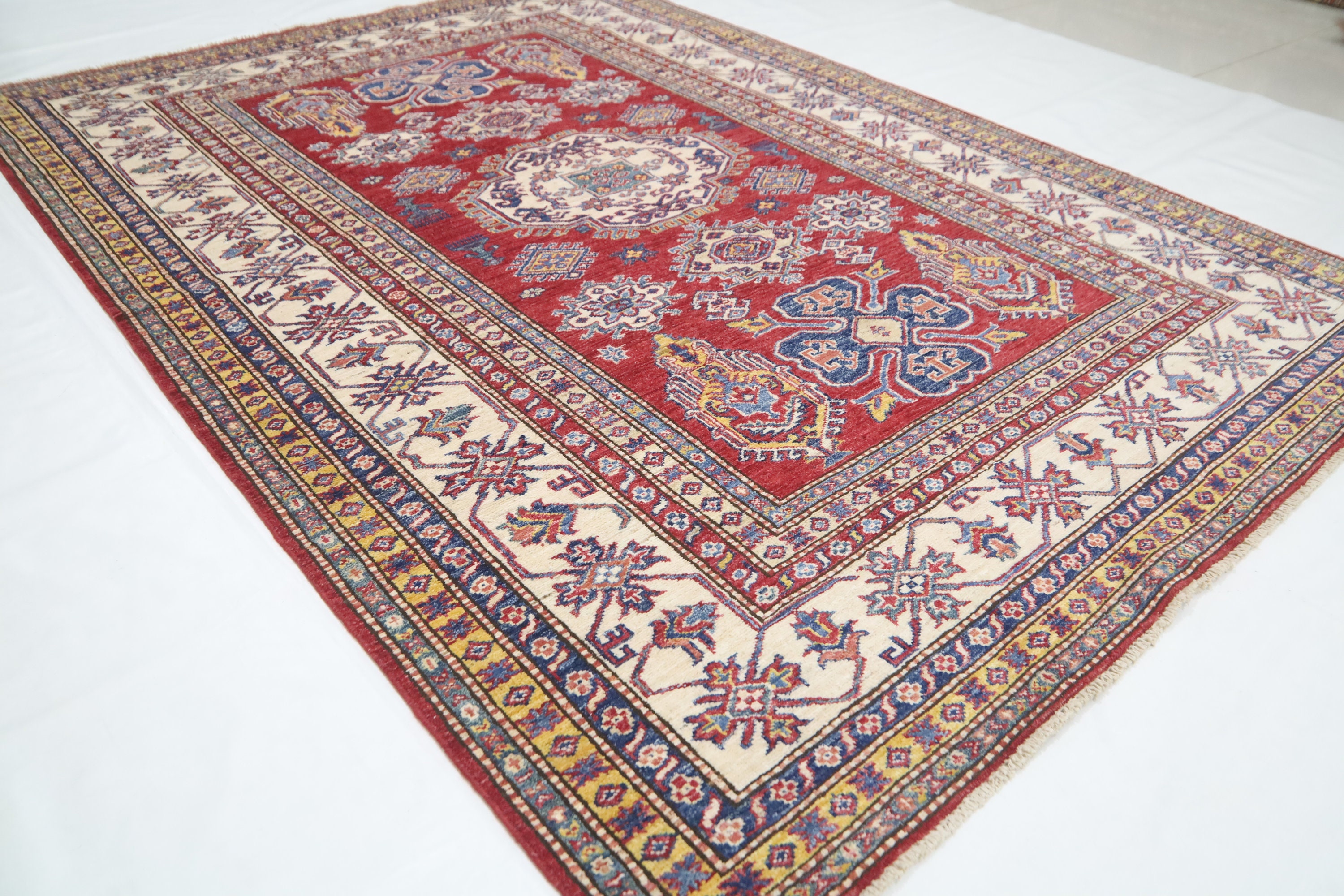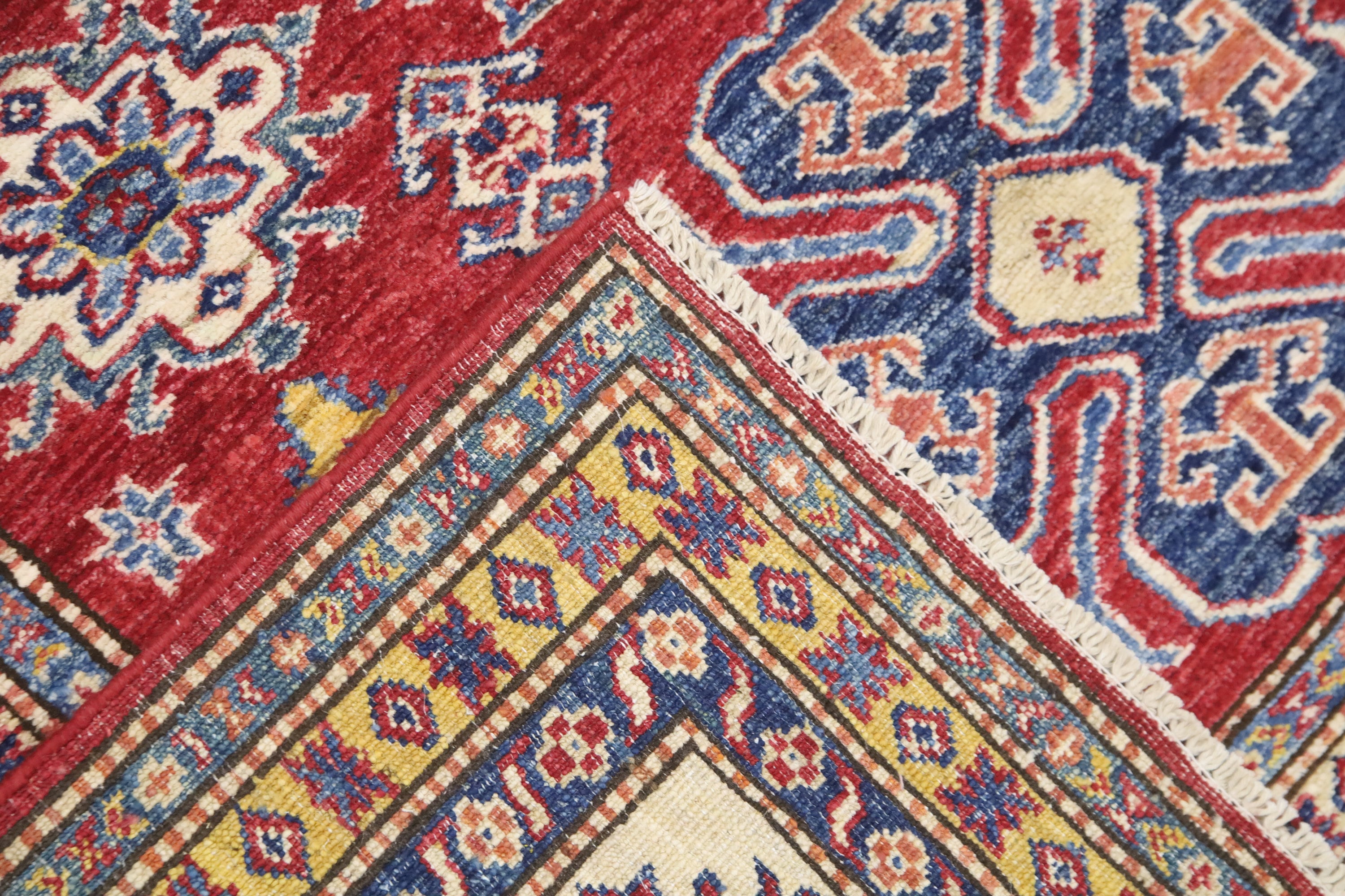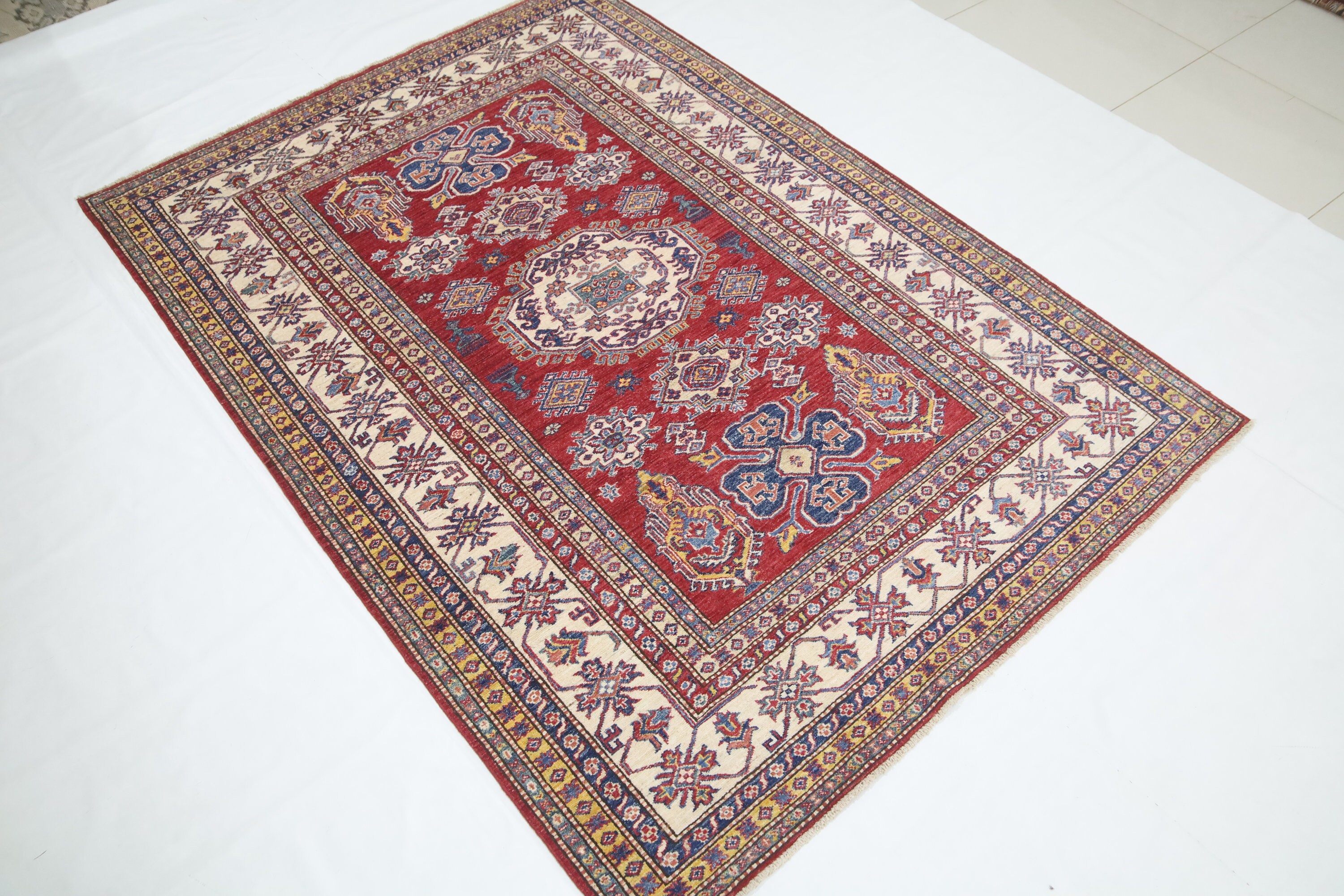 6x8 Ft Kazak Red Area Rug - Afghan Hand Made Caucasian Fine Quality Wool Rug - Red Kitchen Rug - Red Entryway Rug - Traditional Rug