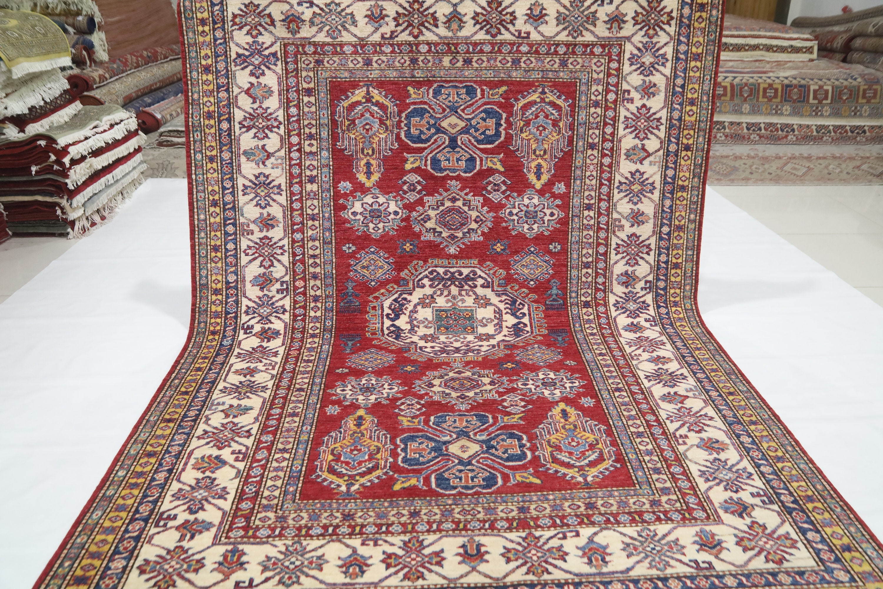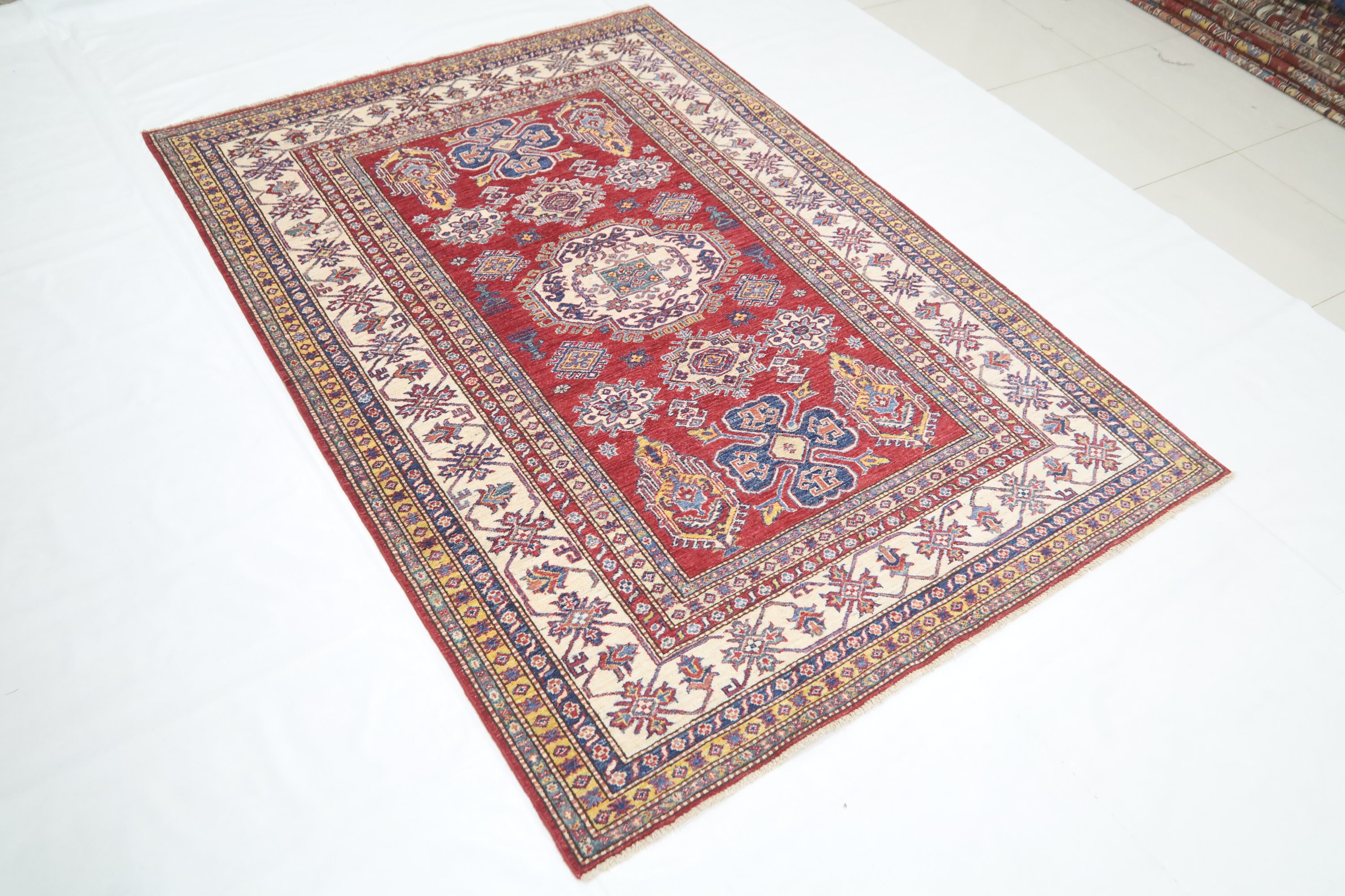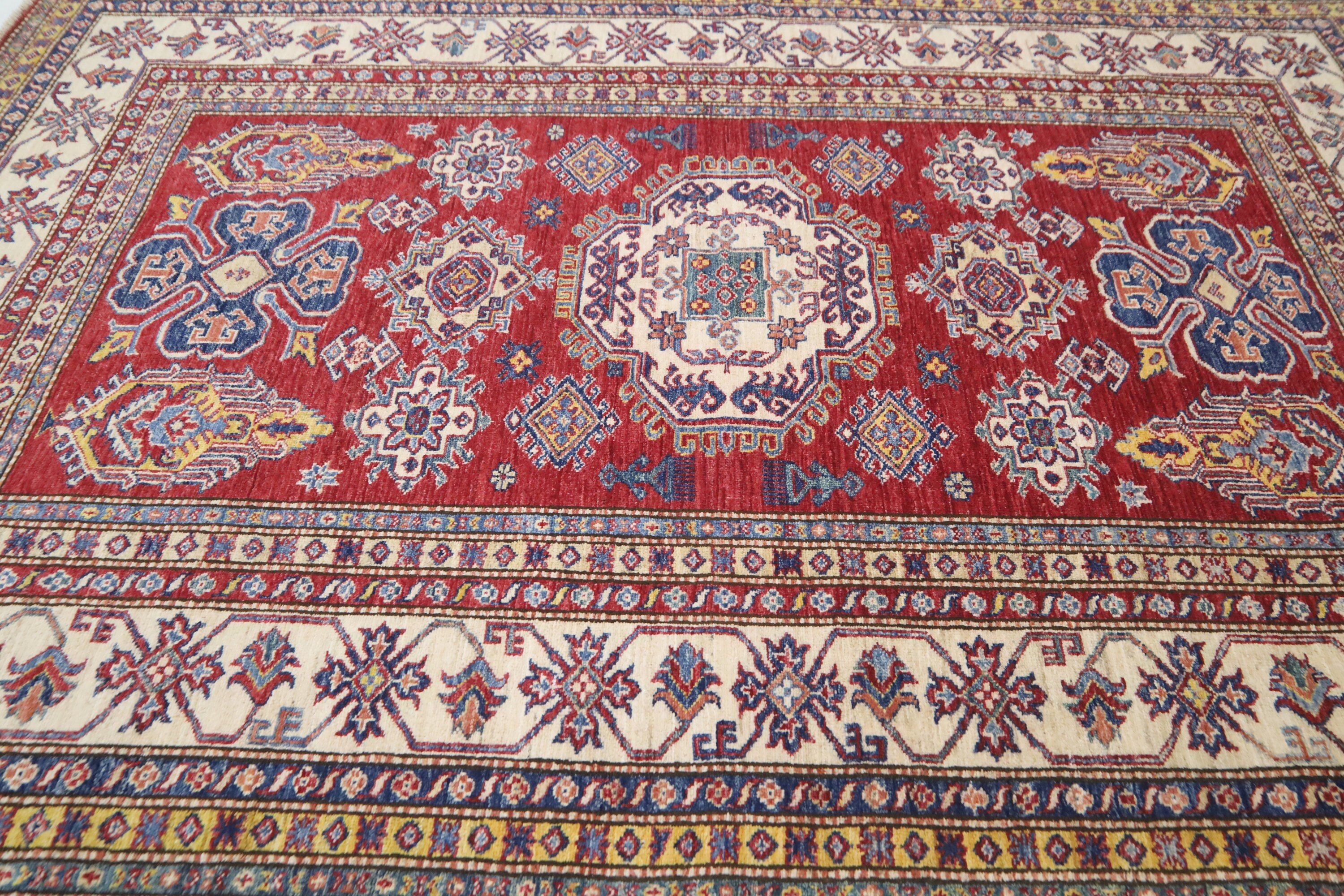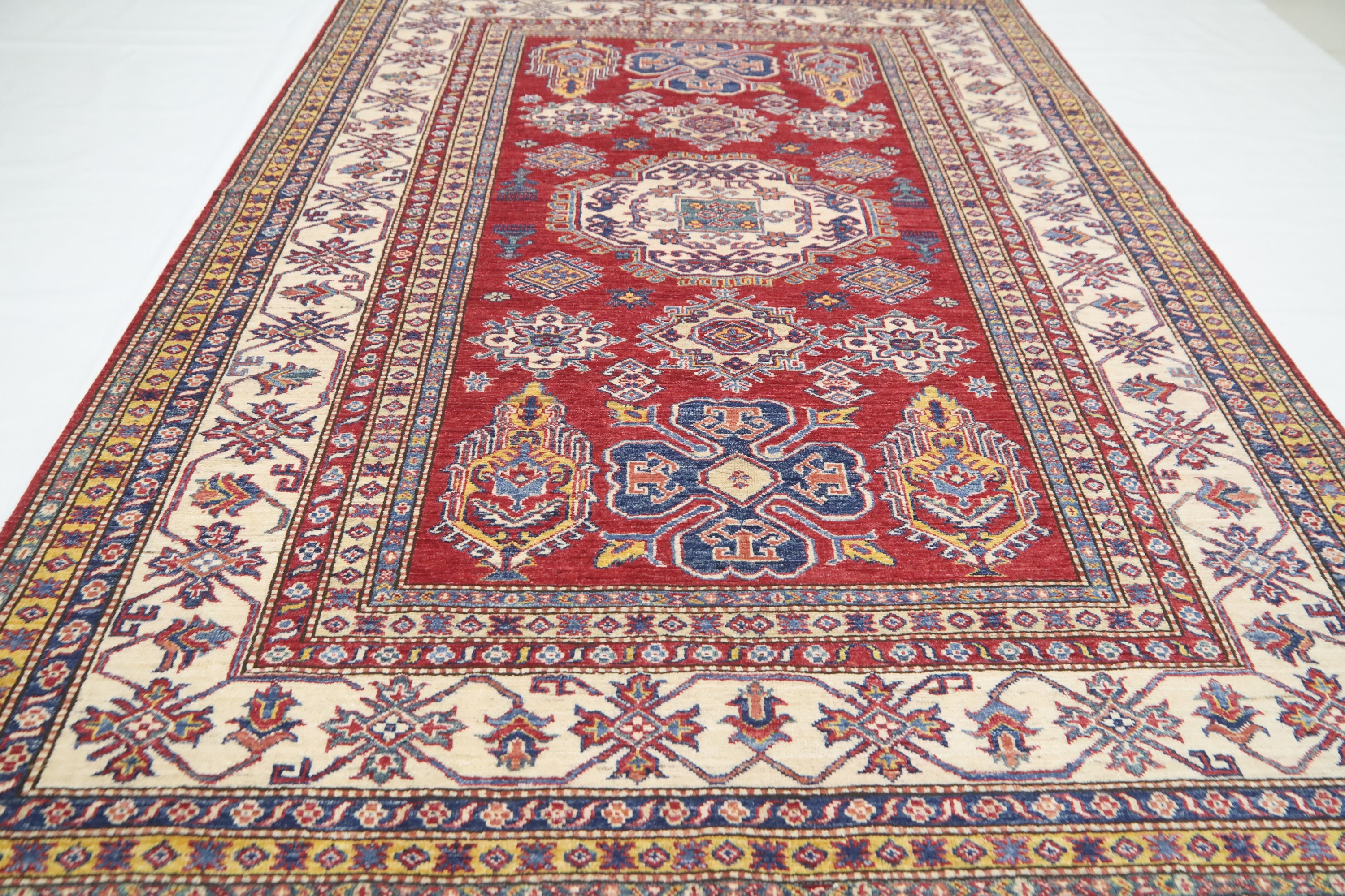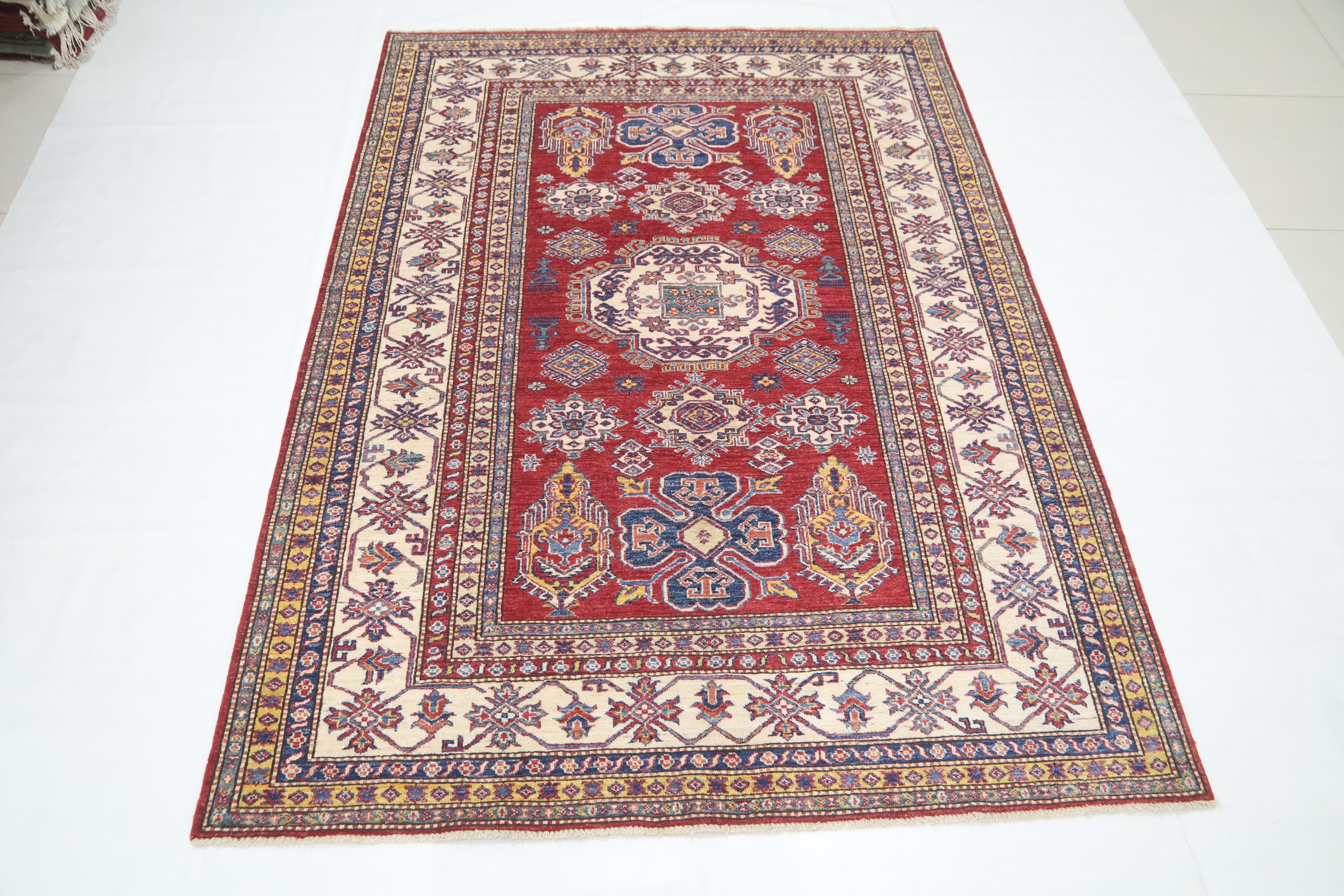 6x8 Ft Kazak Red Area Rug - Afghan Hand Made Caucasian Fine Quality Wool Rug - Red Kitchen Rug - Red Entryway Rug - Traditional Rug
