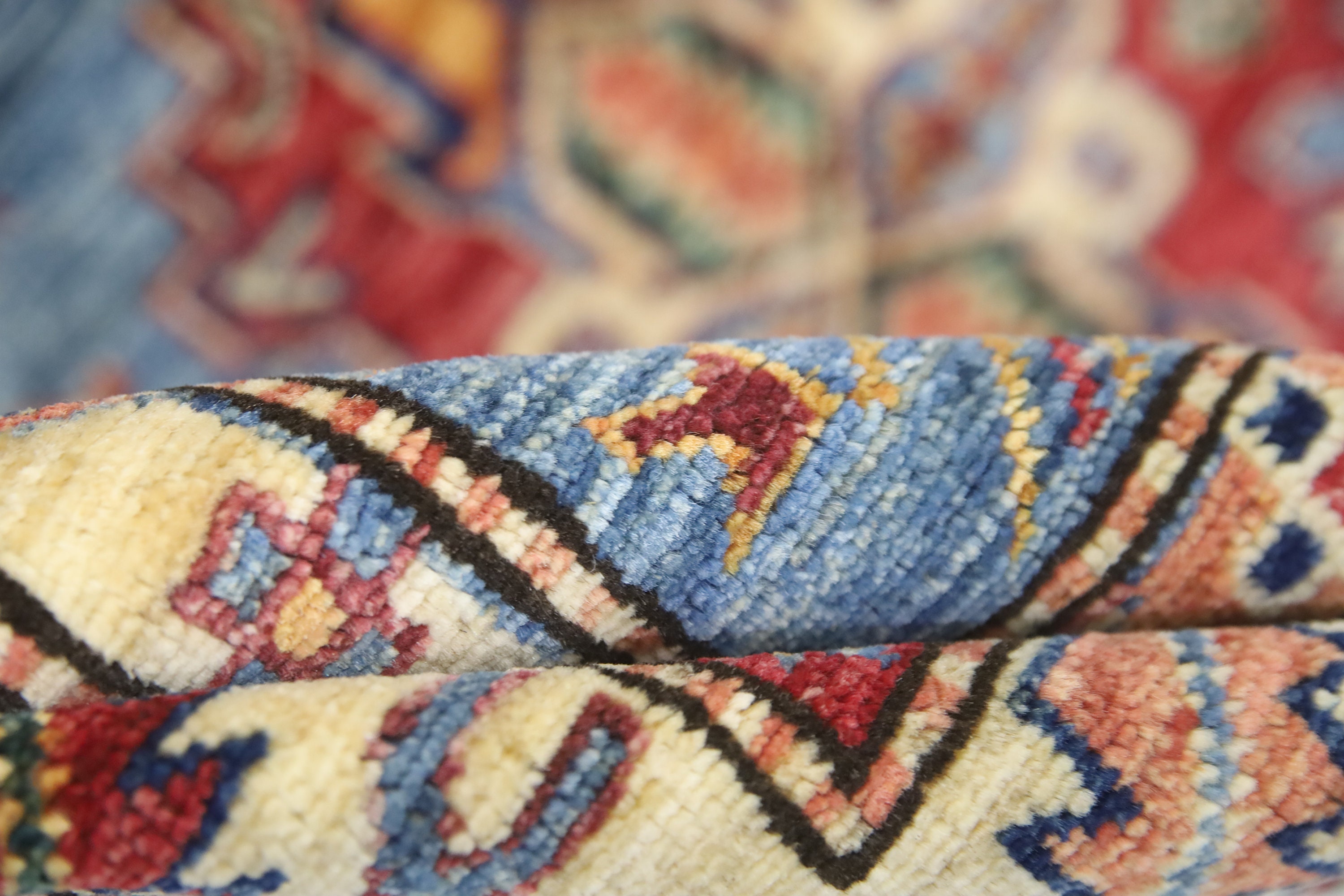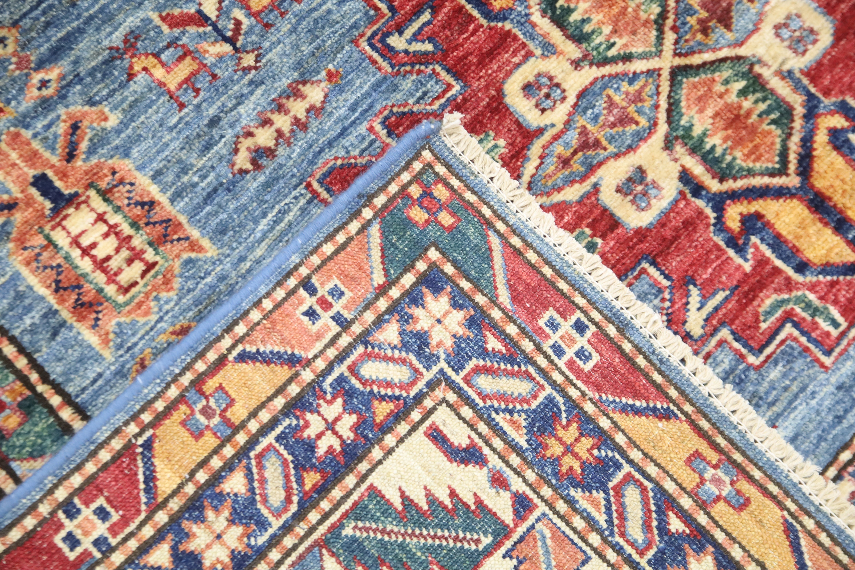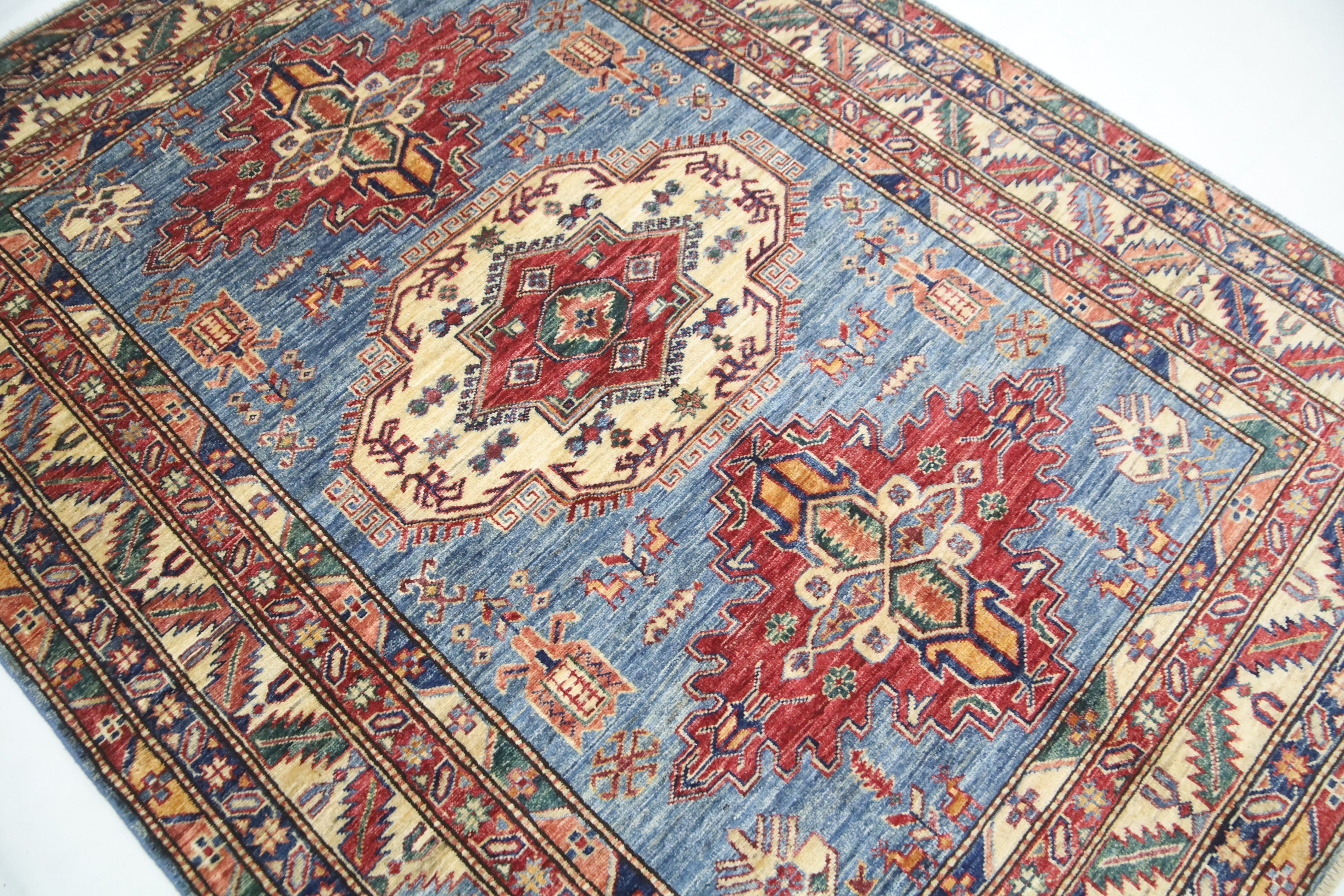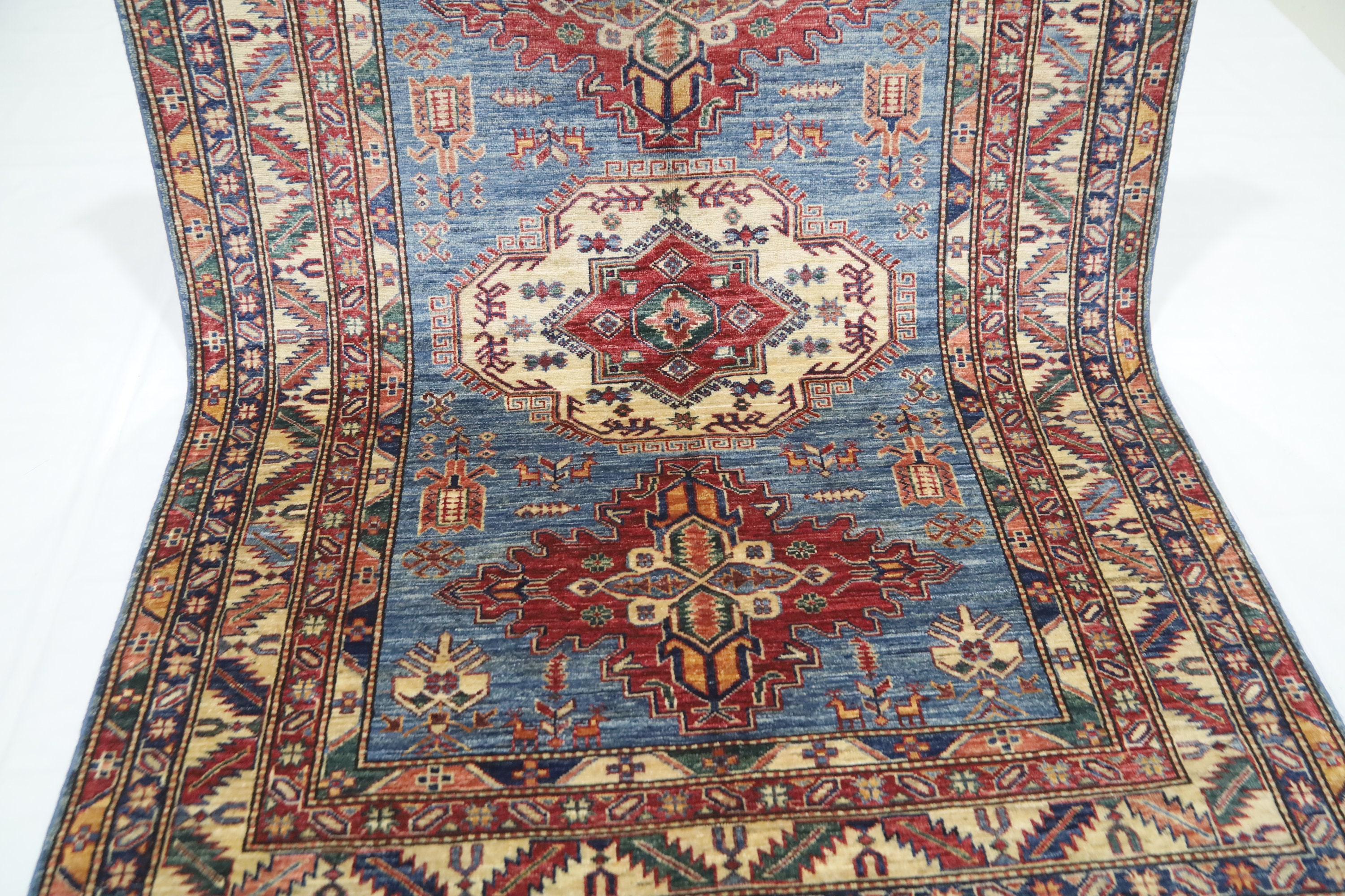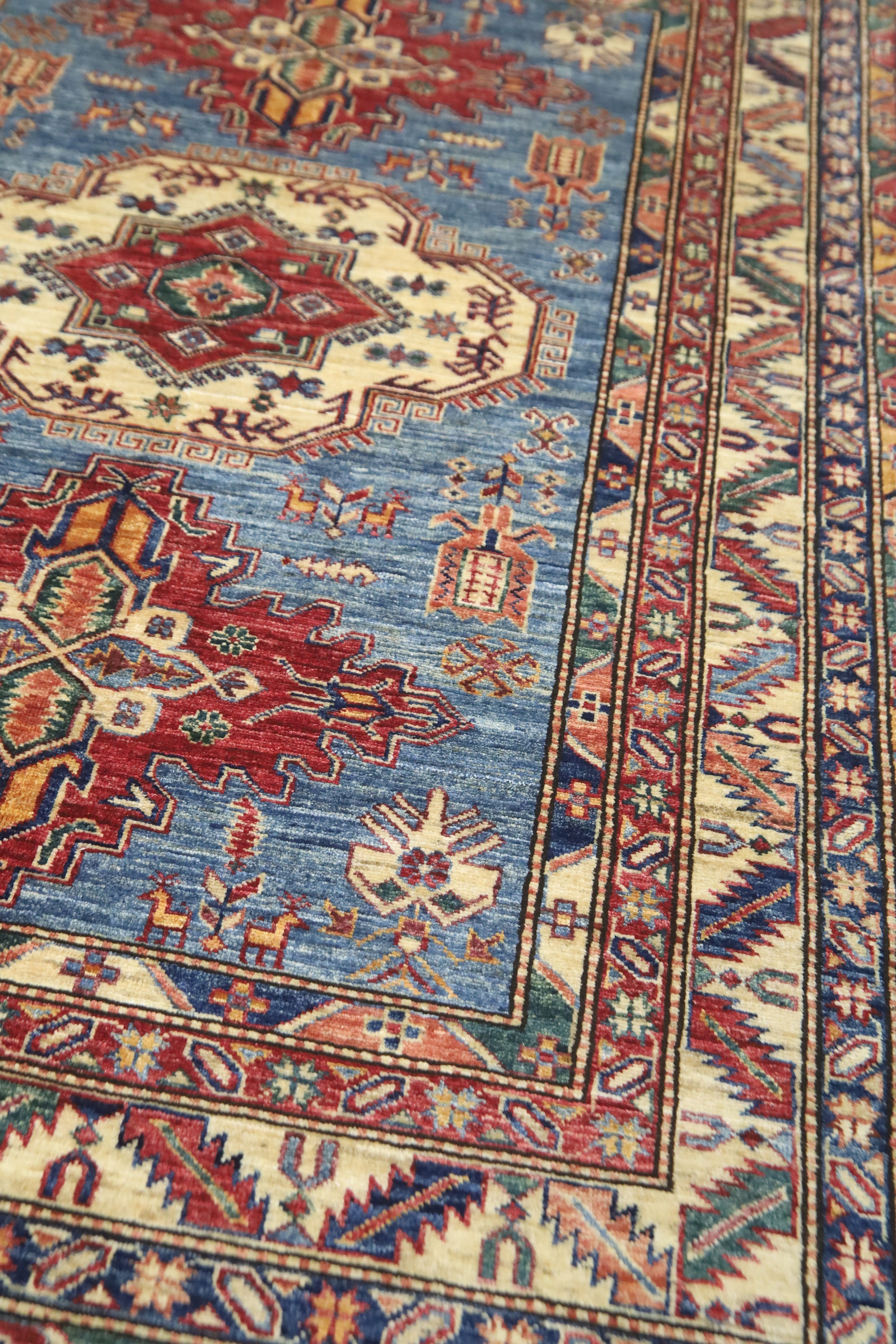 5x7 Kazak Area Rug - Blue Afghan Hand Made Traditional Organic Dye Wool Rug - Blue Rugs - Office Rug - Kitchen Rug - Bedroom Rug - Foyer Rug