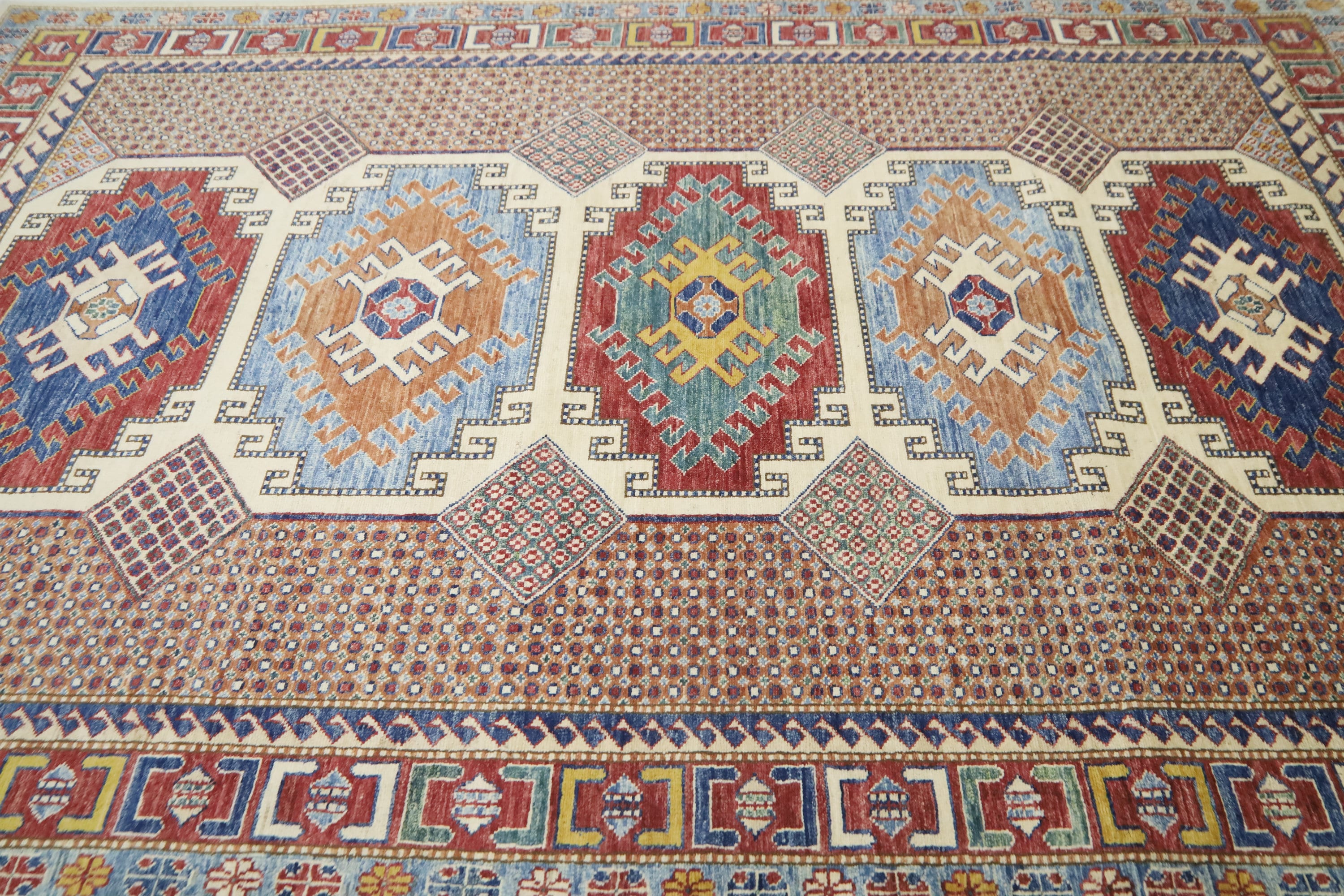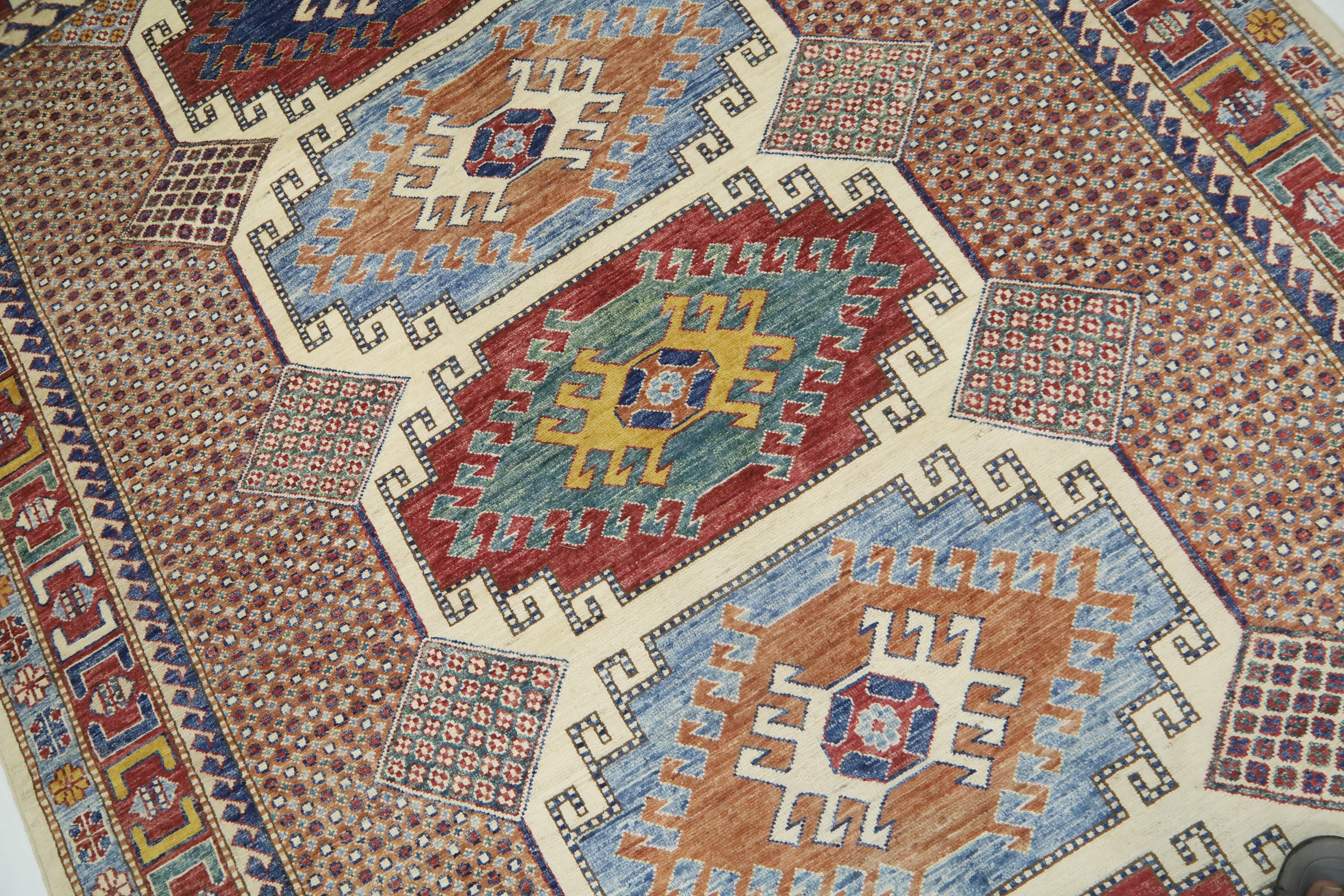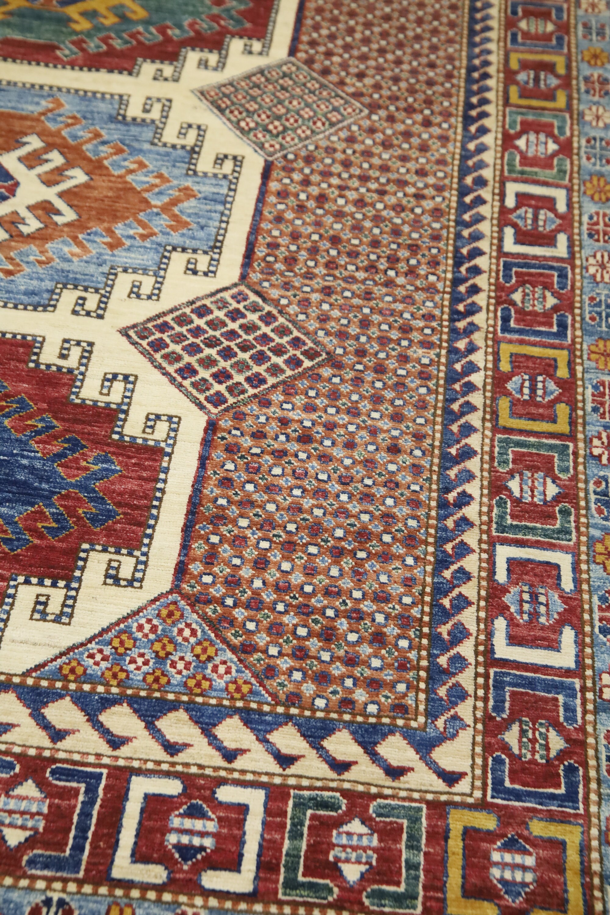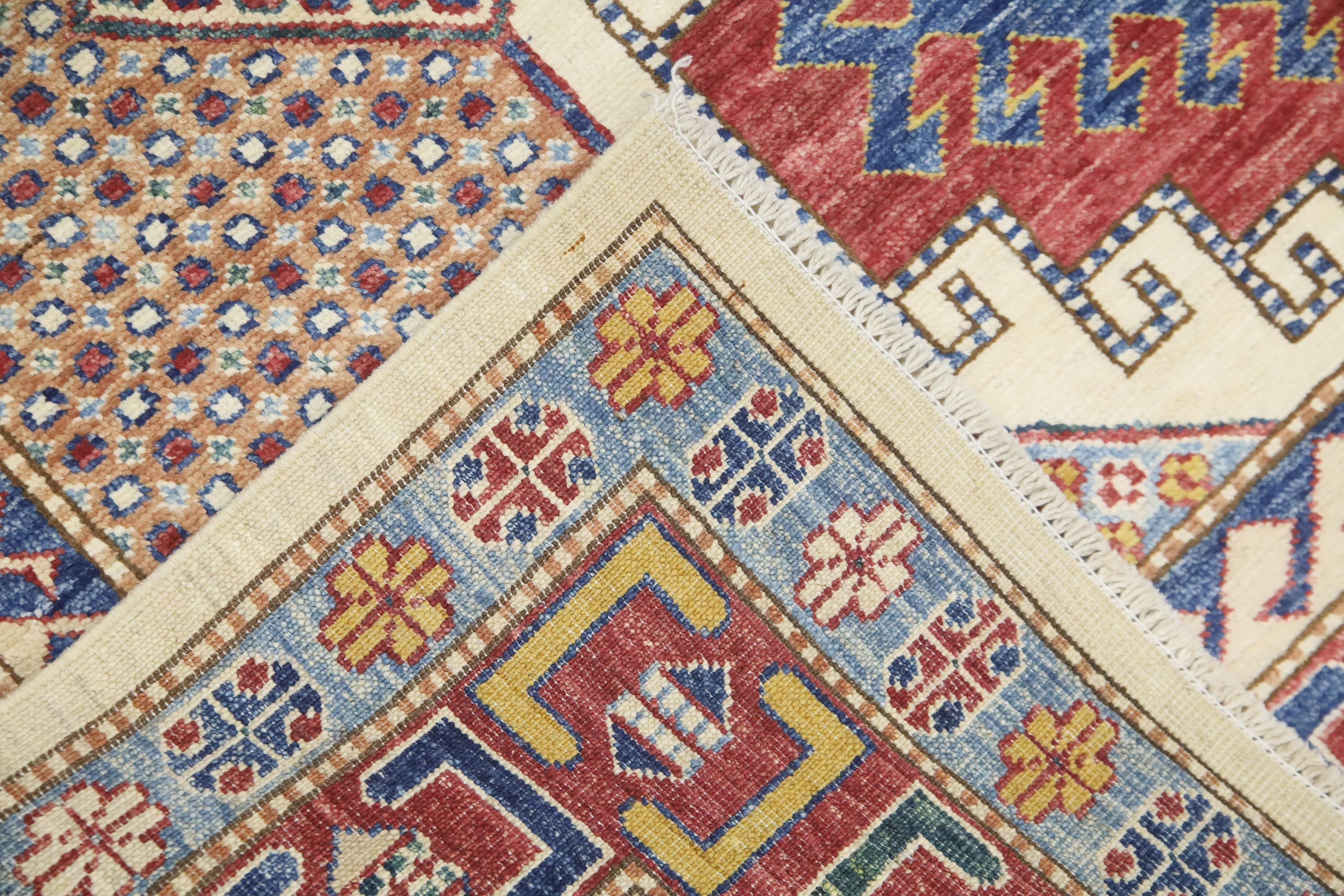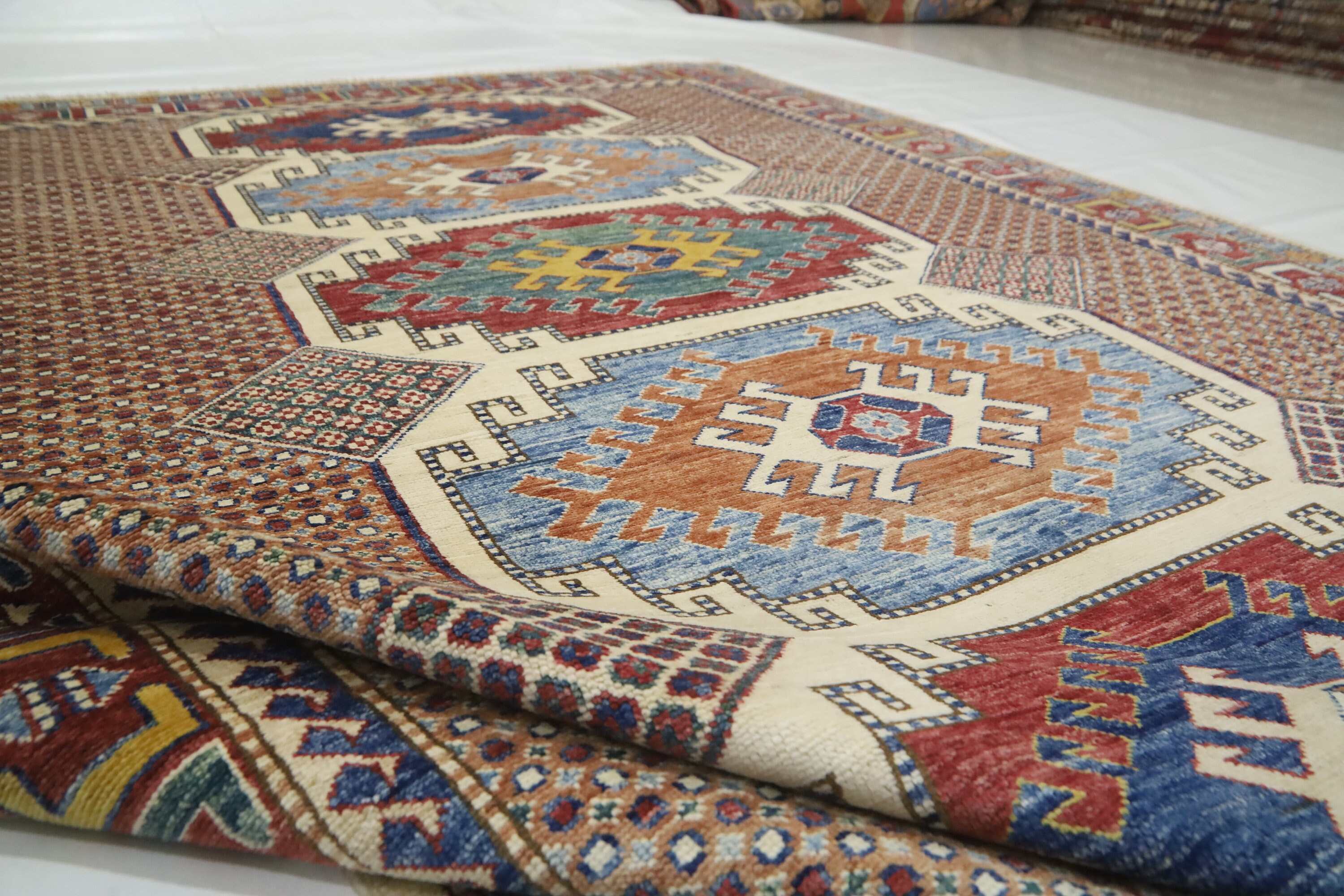6x8 Feet Kazak Area Rug - Beige Red Rug - Afghan Hand Knotted Wool Rug - Traditional Rug - Geometric Rug - Bedroom Rug - Living Room Rug