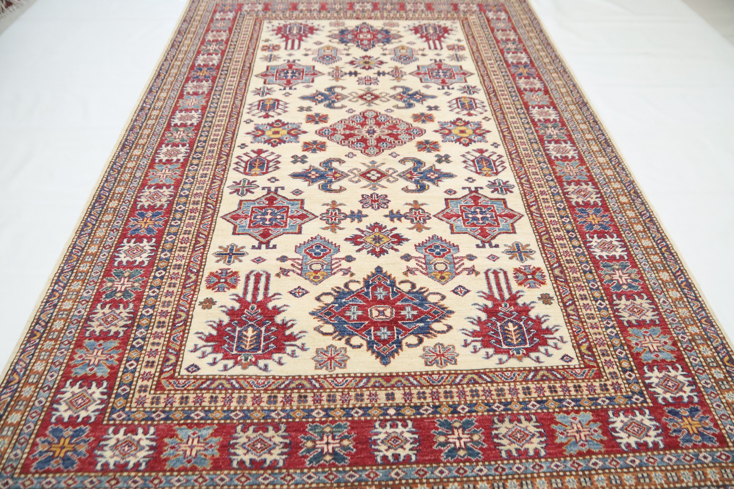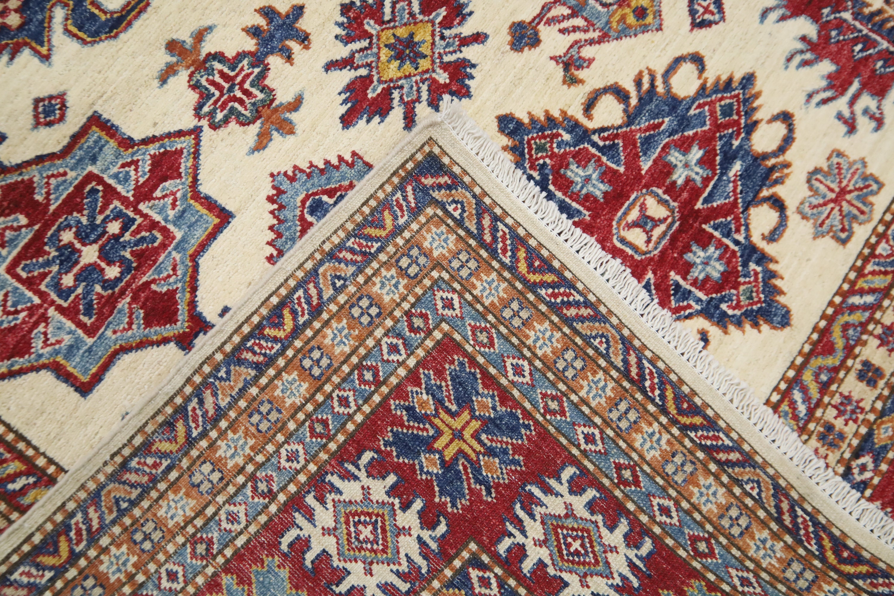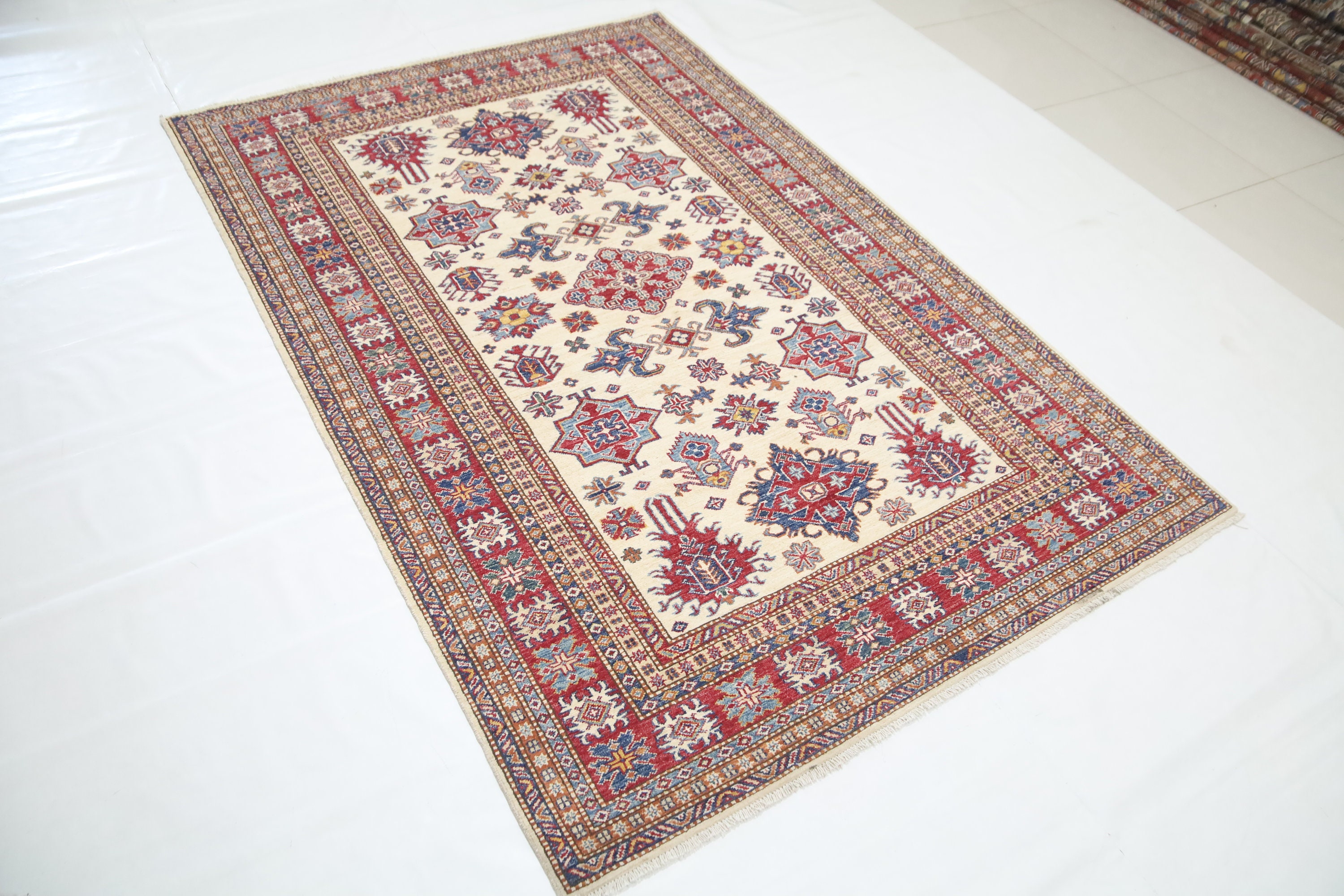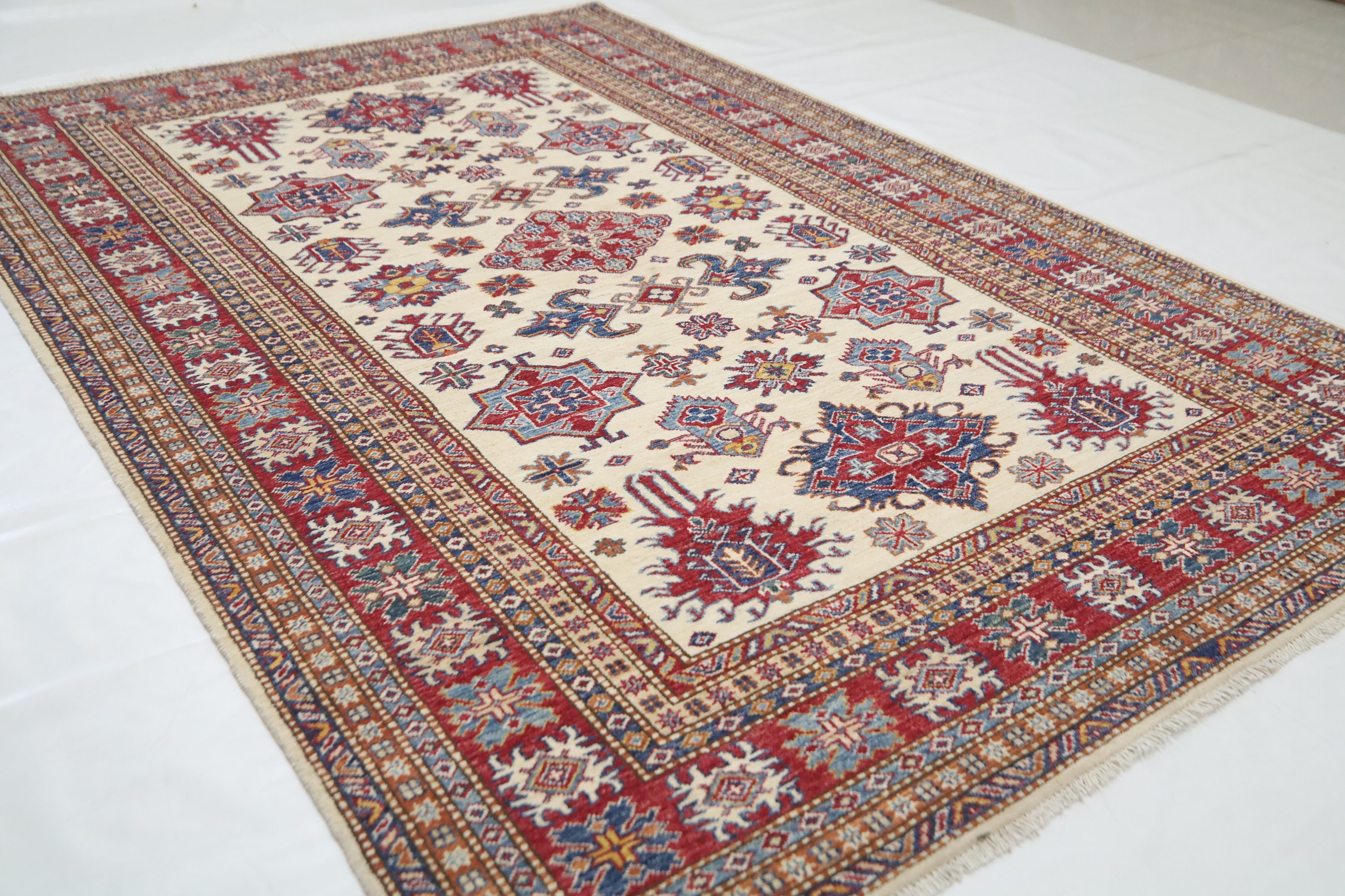 5'4x8'3 Kazak Area Rug - Beige Red Afghan Hand Made Geometric Fine Quality Wool Rug - Traditional Rug - Bedroom Rug - Kitchen Rug - Wool Rug