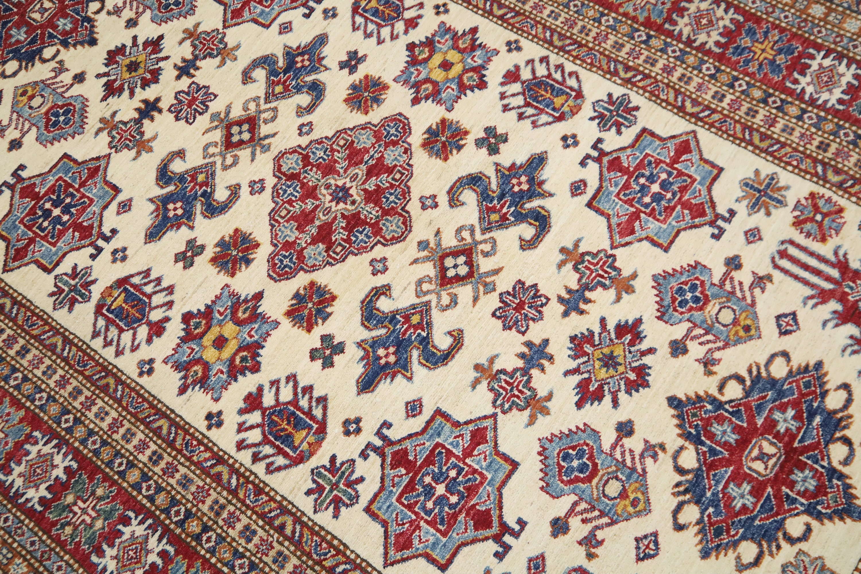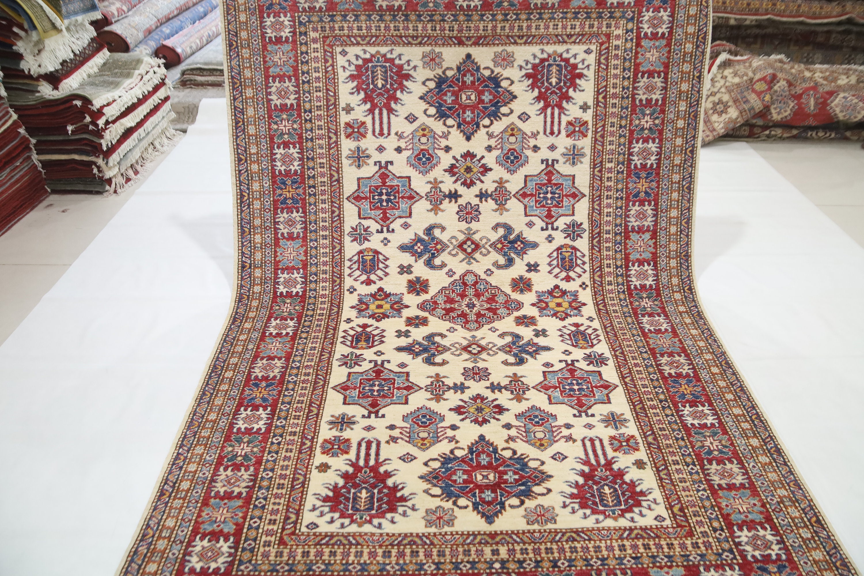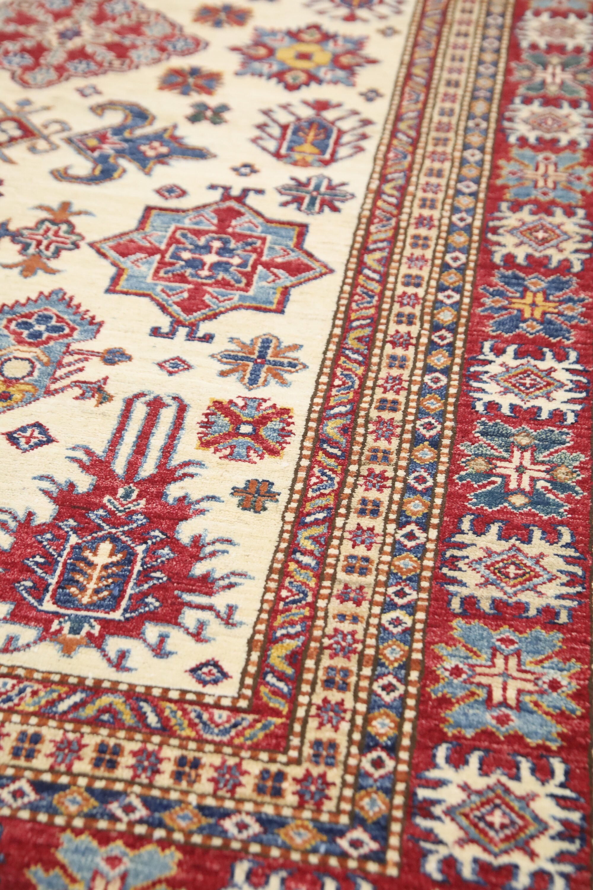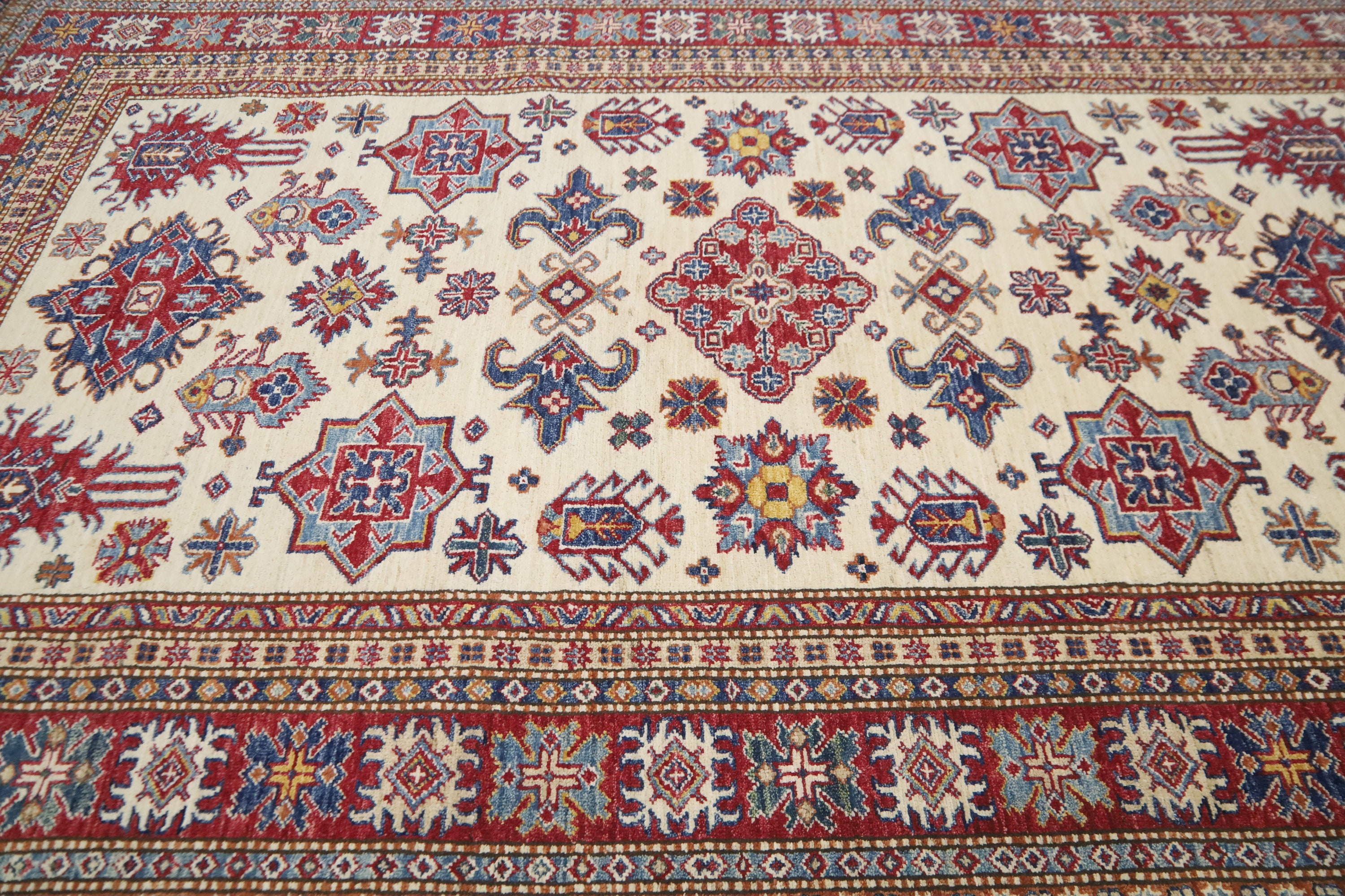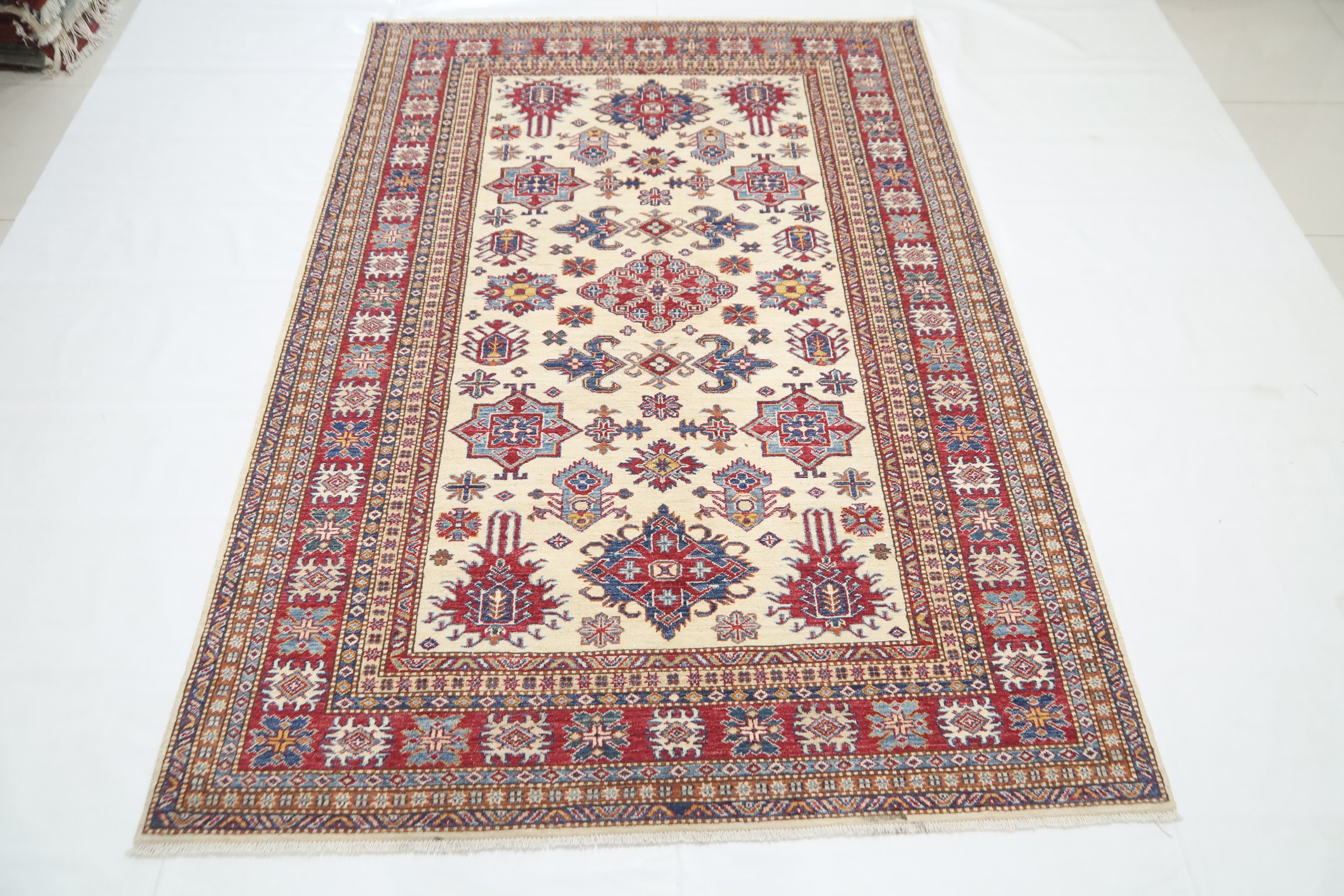 5'4x8'3 Kazak Area Rug - Beige Red Afghan Hand Made Geometric Fine Quality Wool Rug - Traditional Rug - Bedroom Rug - Kitchen Rug - Wool Rug
