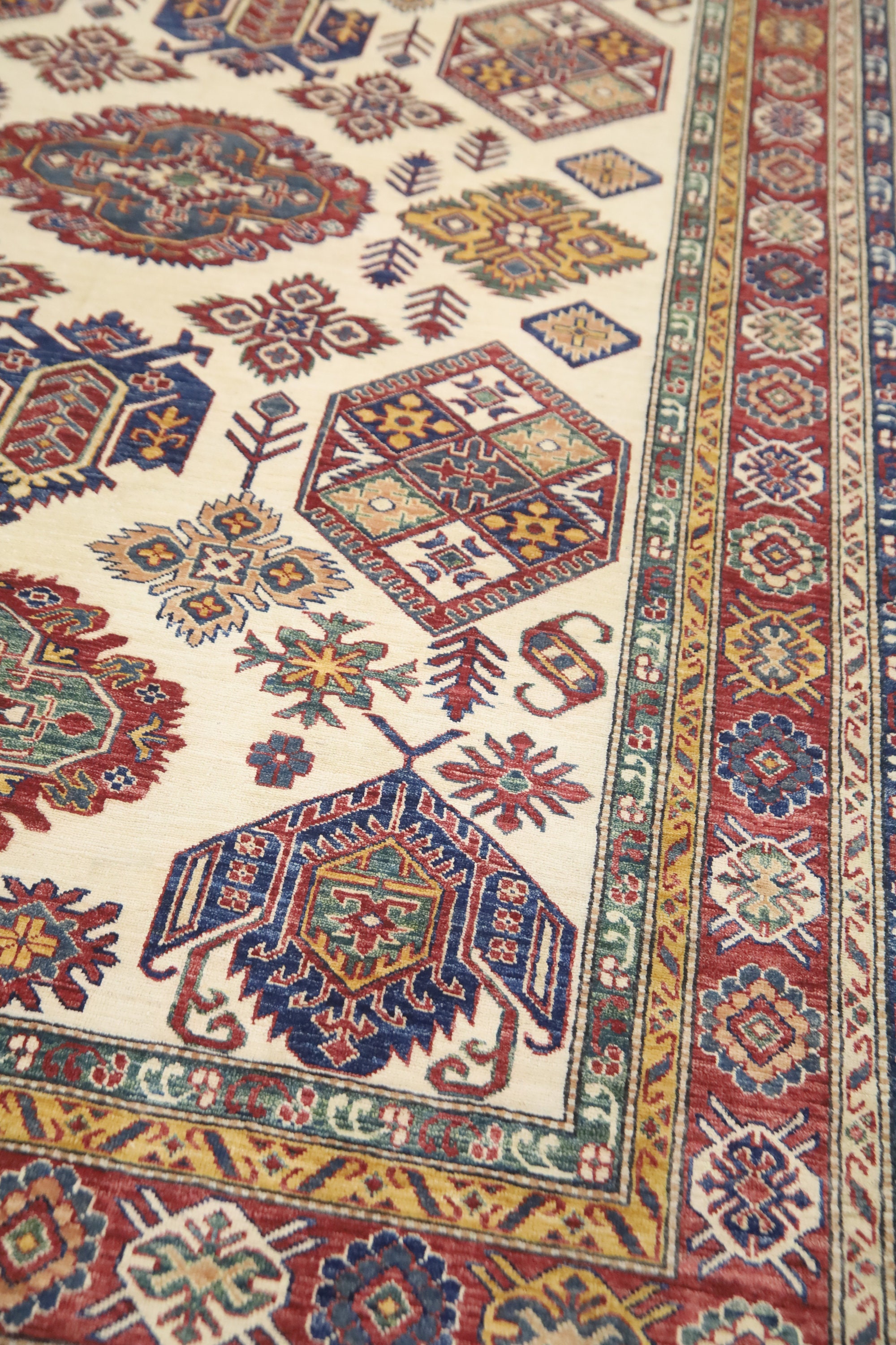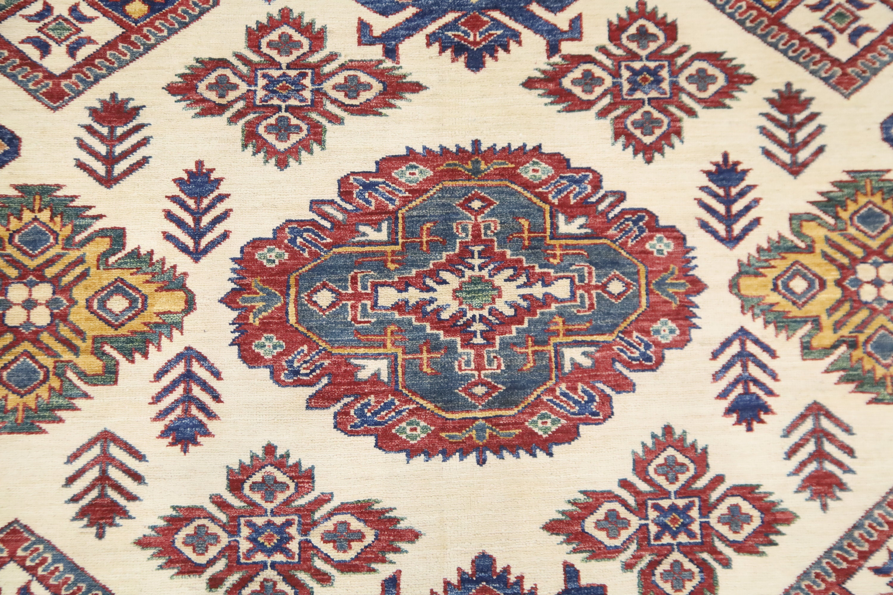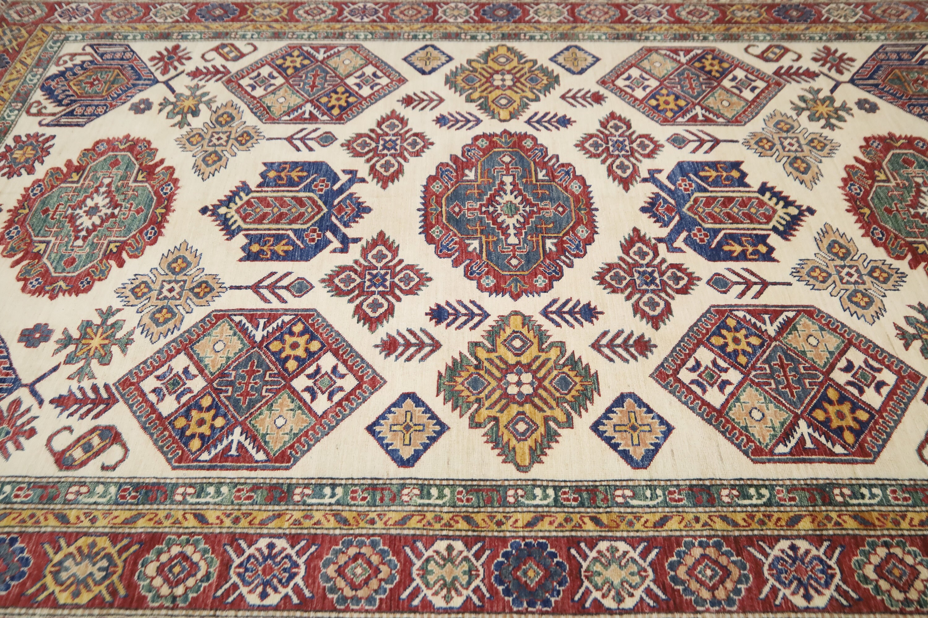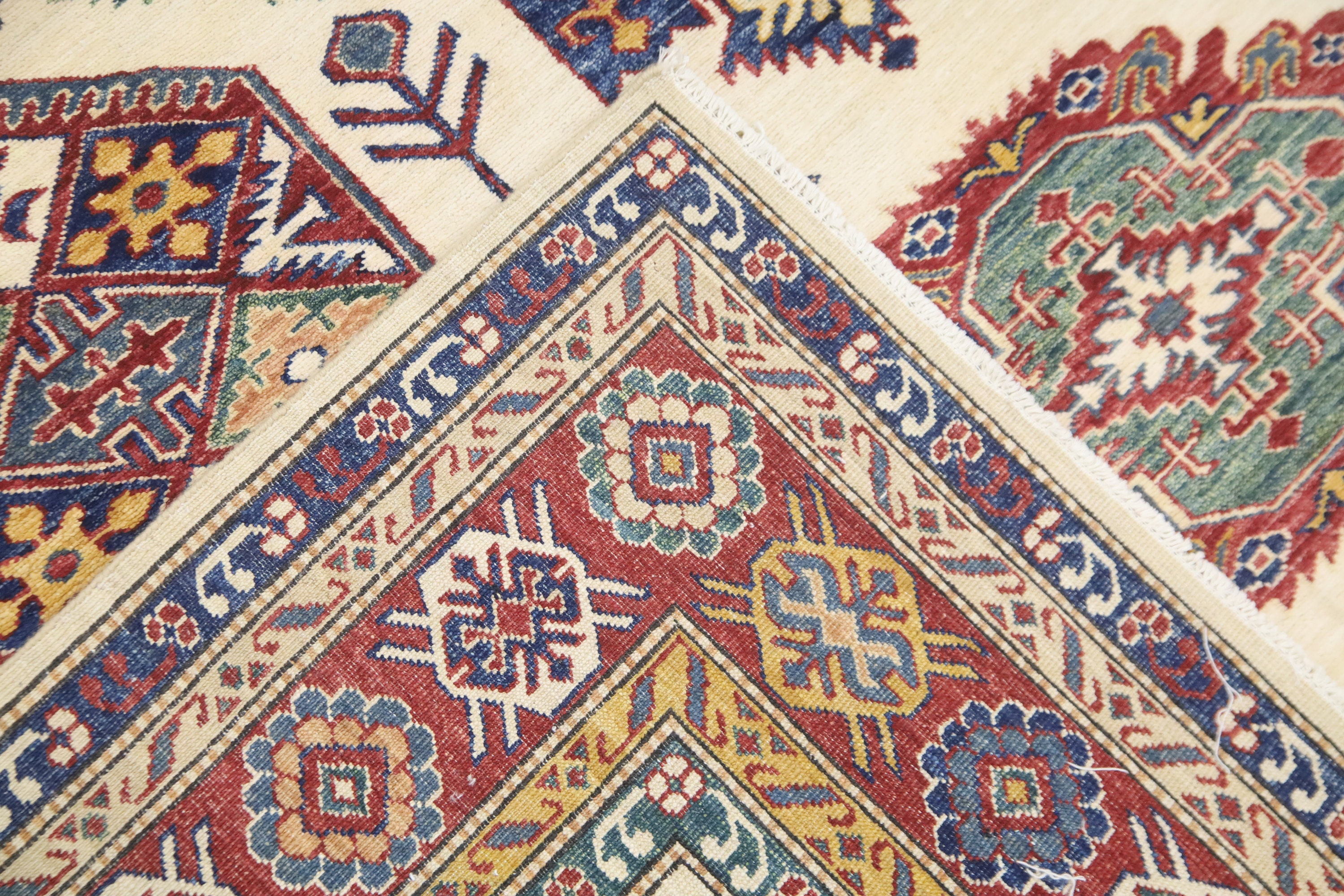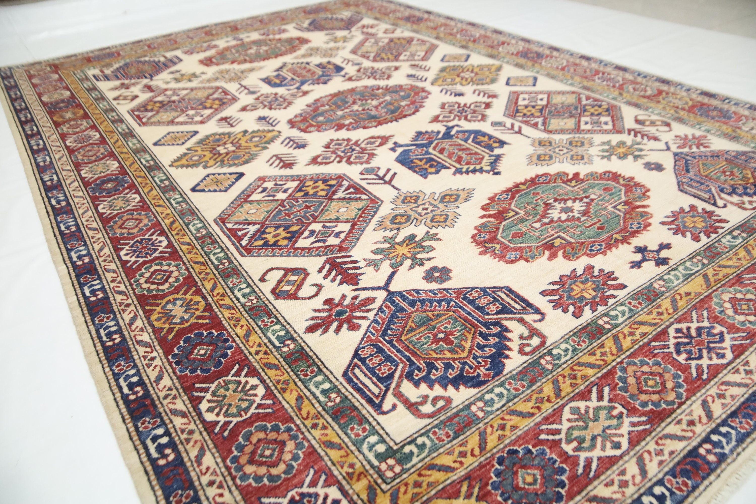 7x10 Beige Kazak Area Rug - Afghan Handmade Geometric Fine Quality Wool Rug - Caucasian Rug - Oriental Rug - Living Room Rug - Bedroom Rug