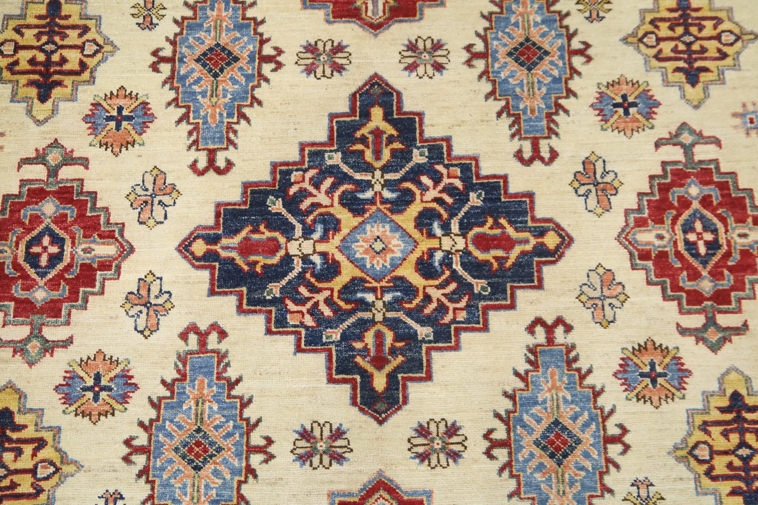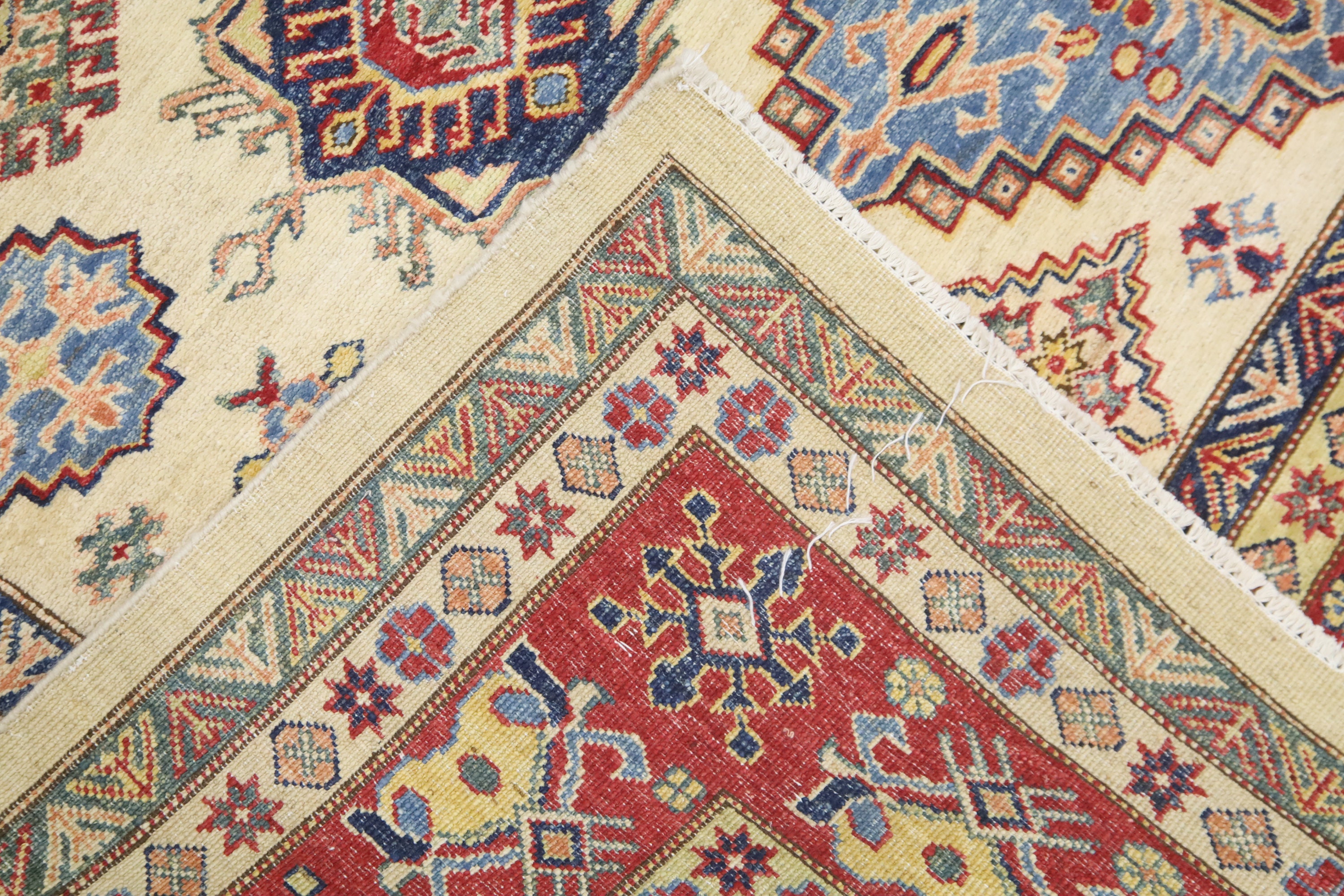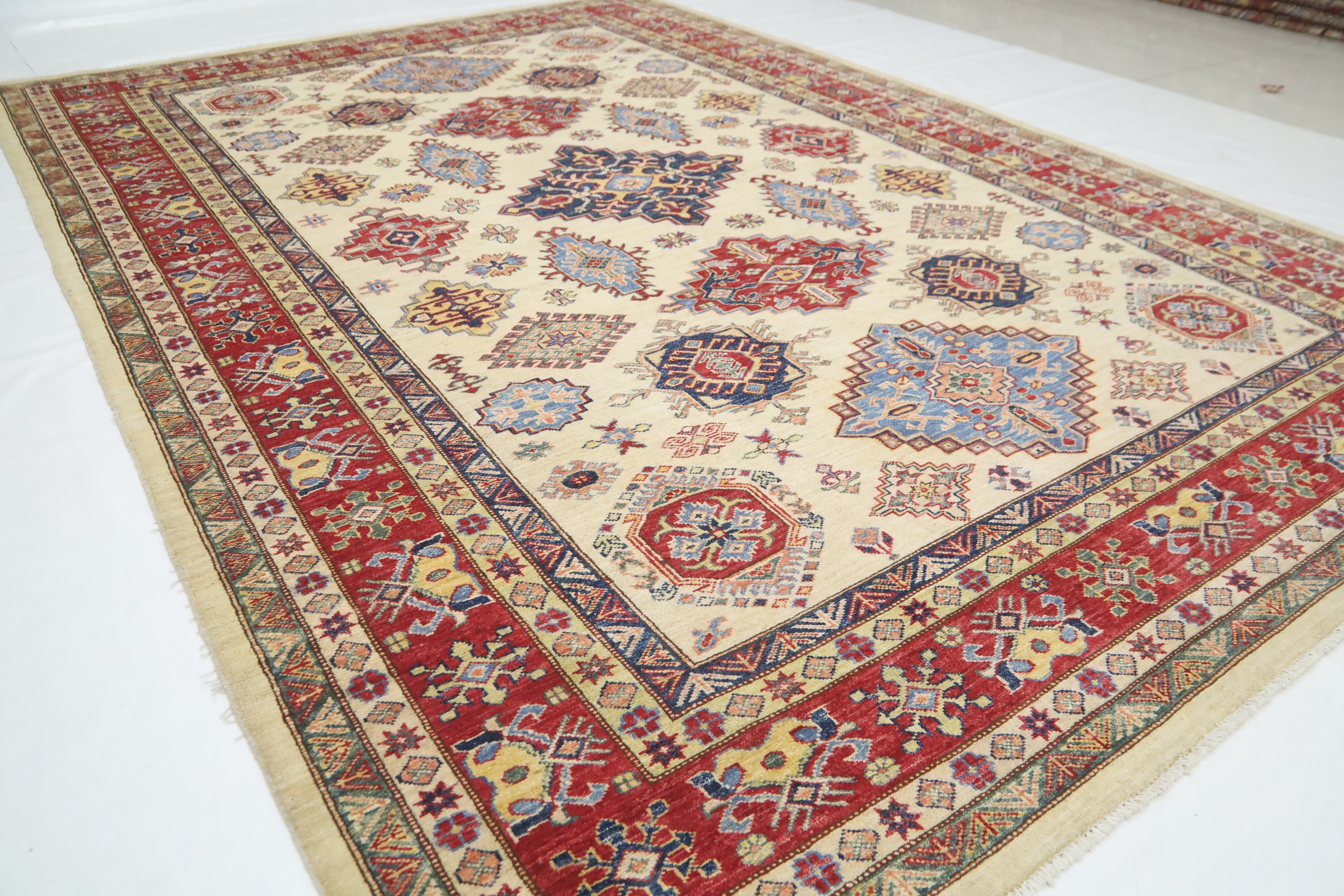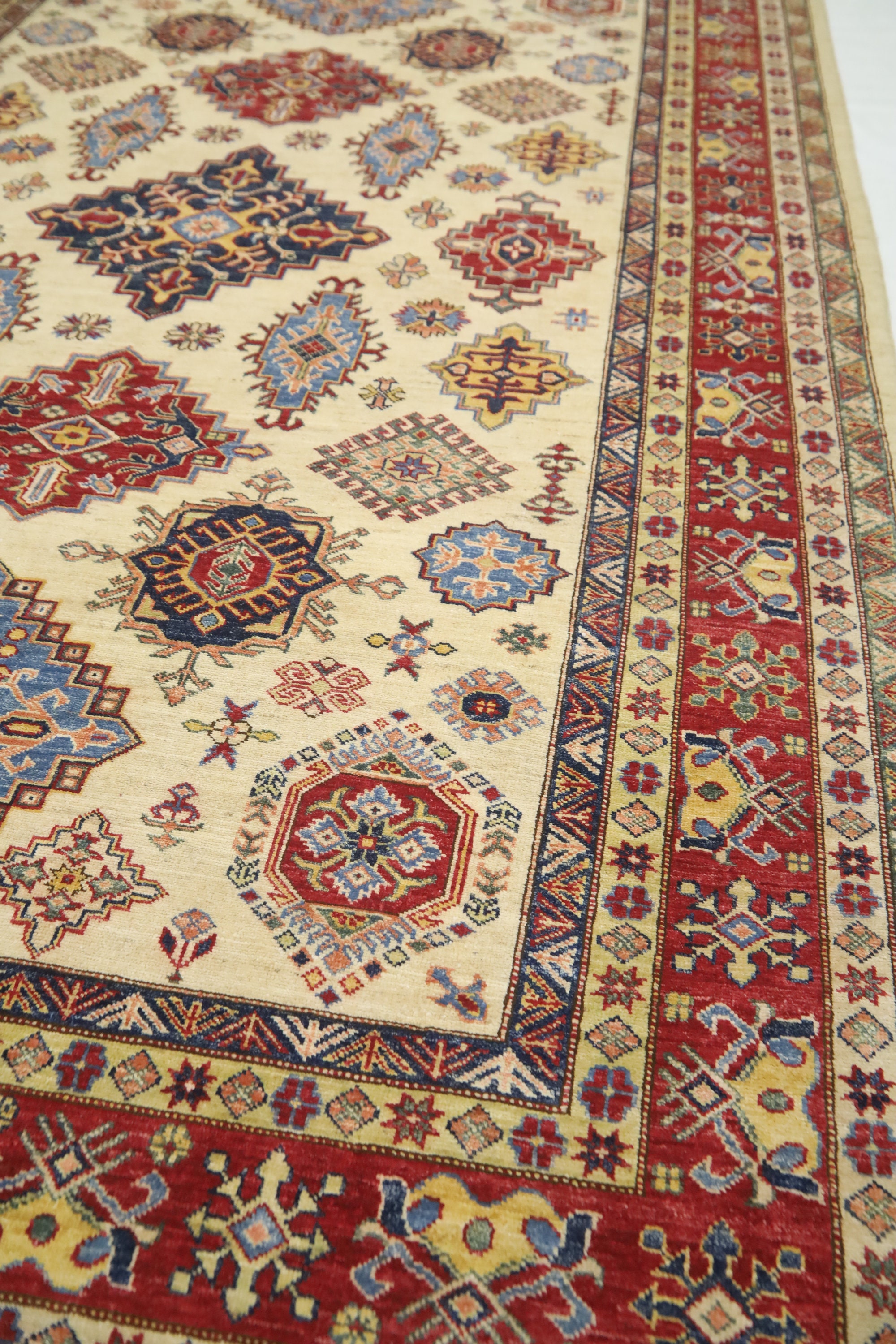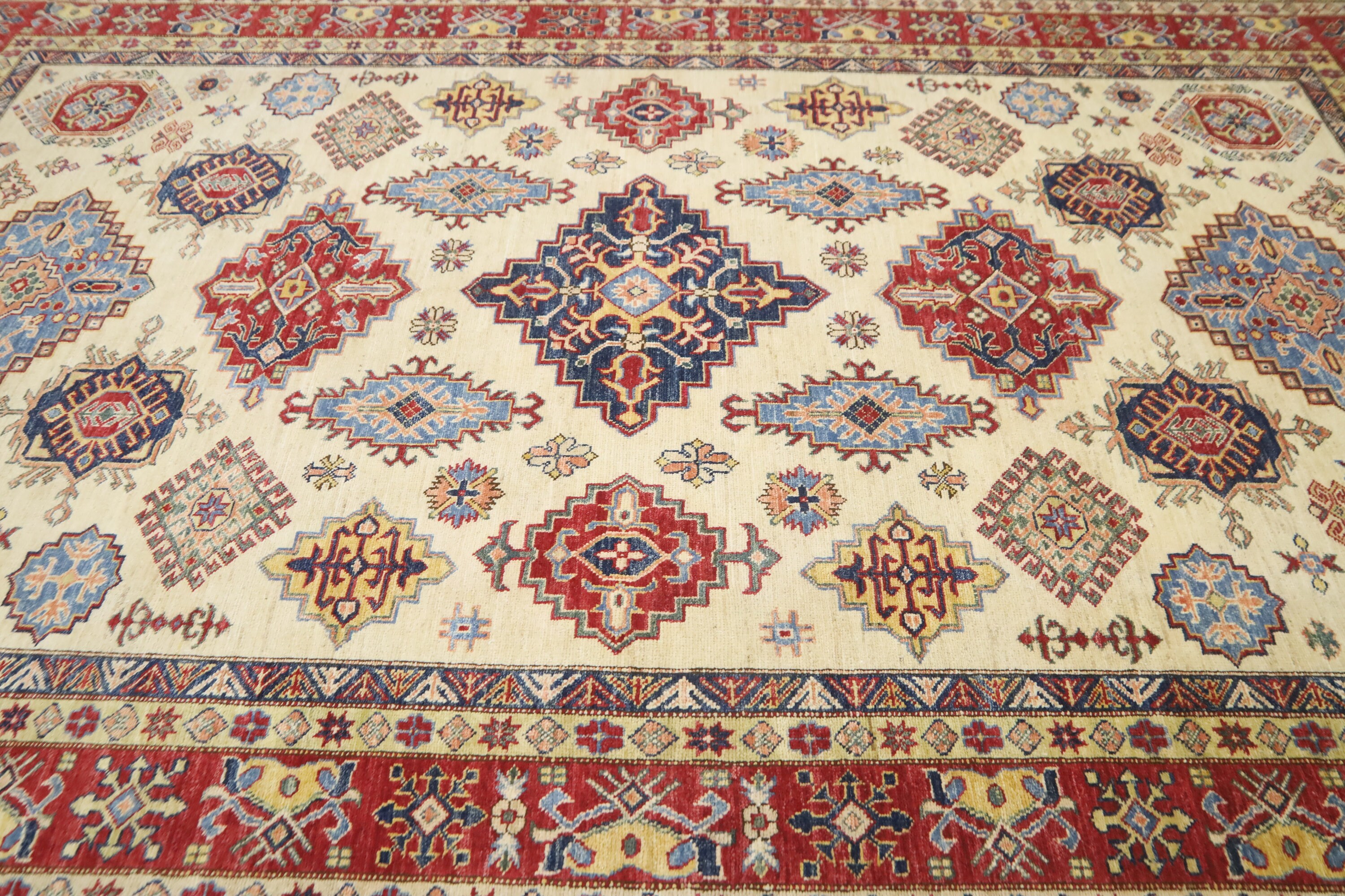 7x10 Beige Kazak Area Rug - Afghan Hand Made Geometric Fine Quality Wool Rug - Traditional Rug - Oriental Rug - Living Room Rug - Tribal Rug