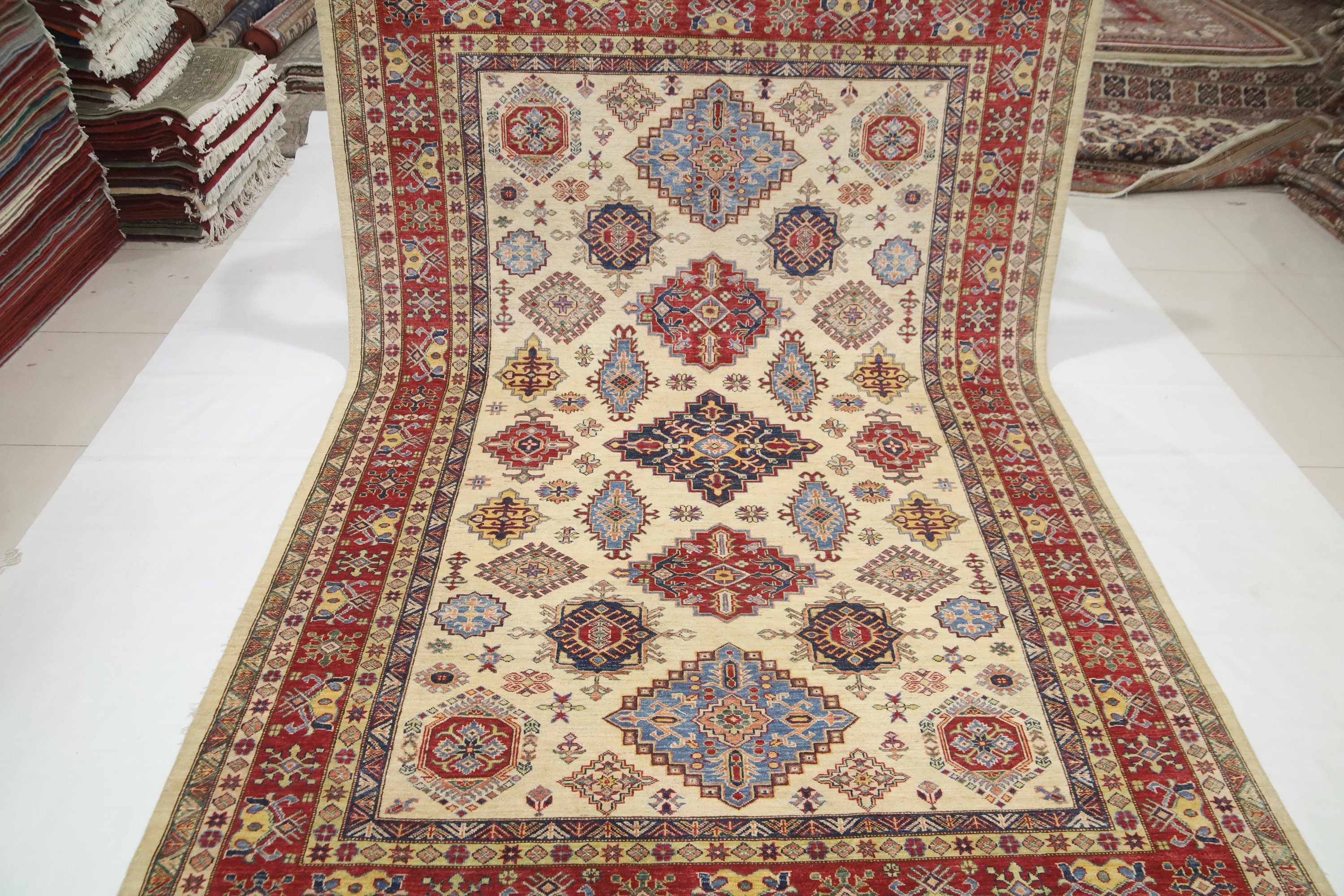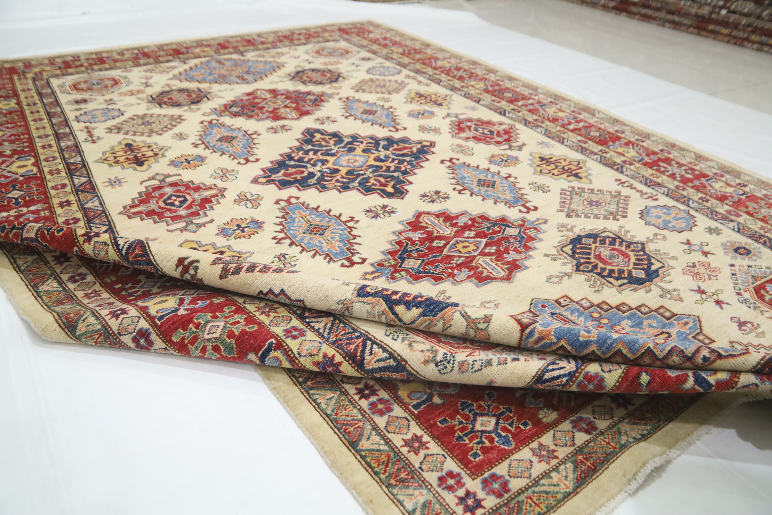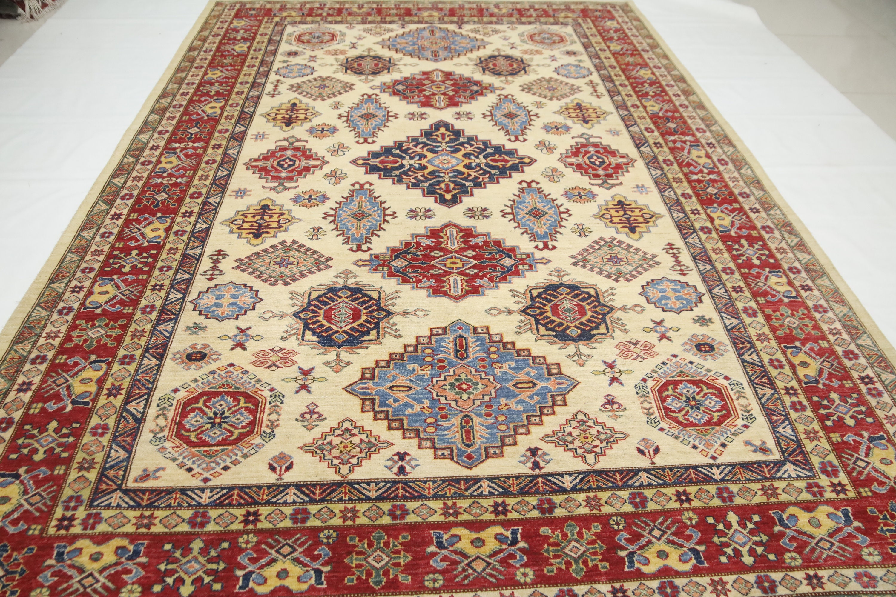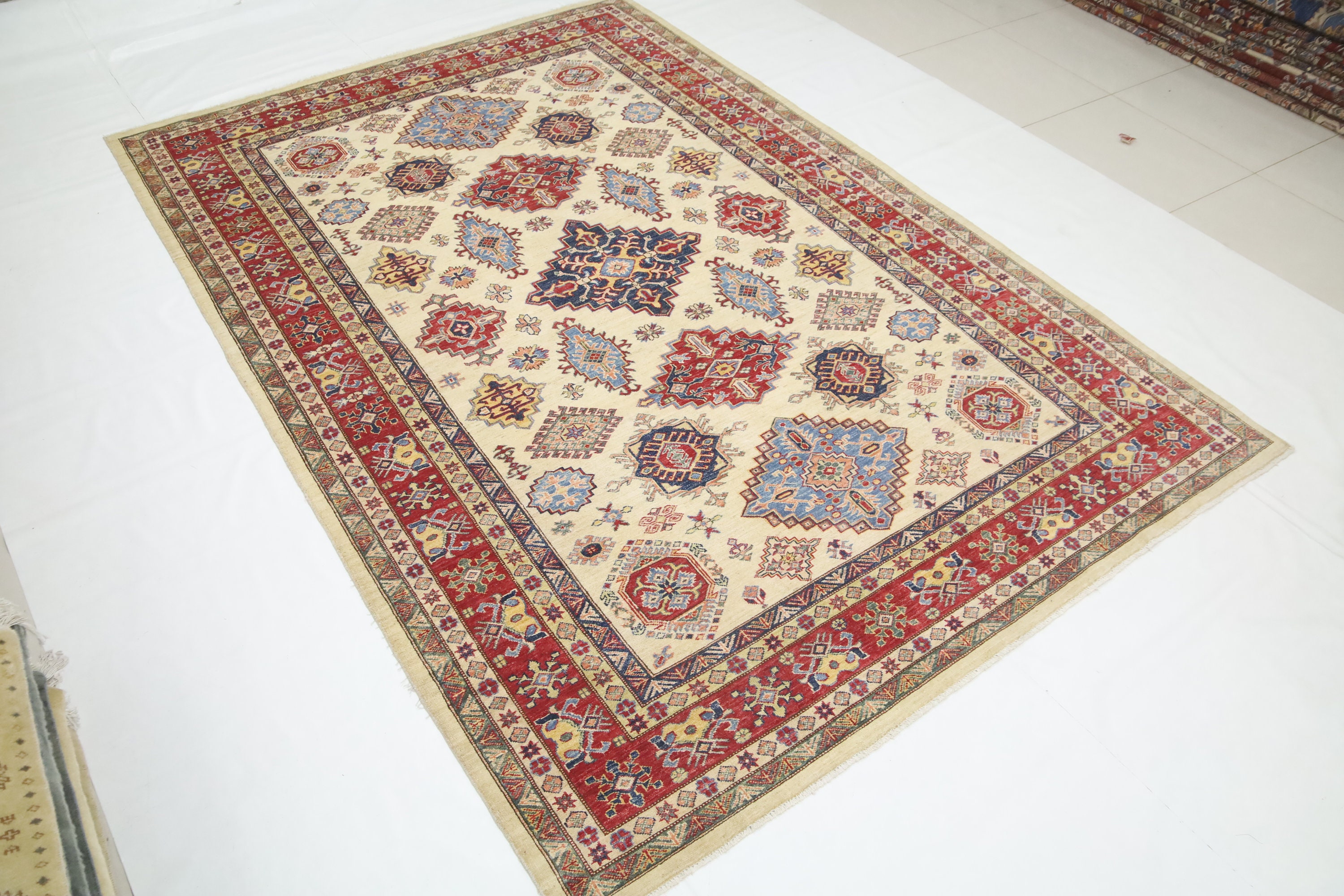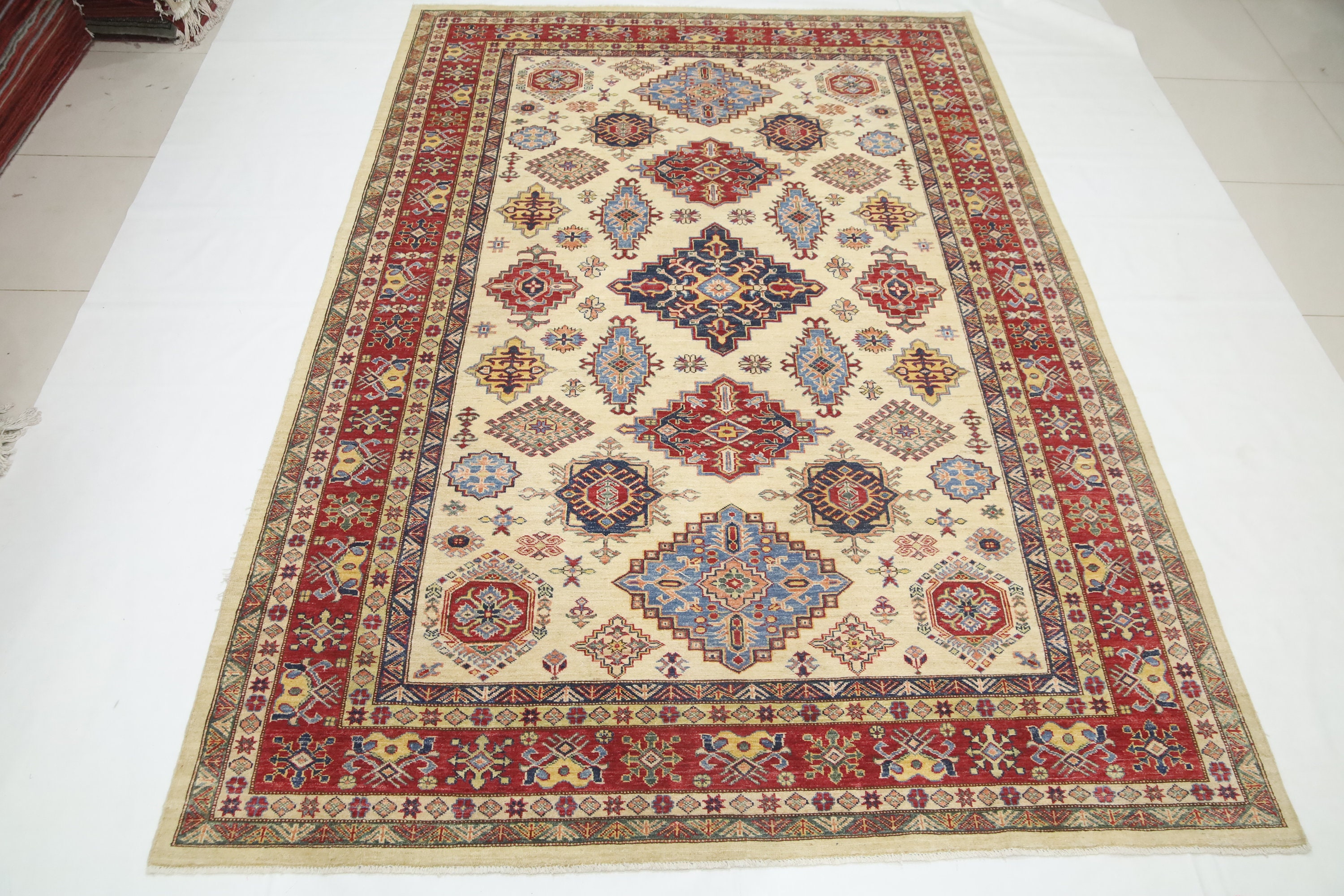 7x10 Beige Kazak Area Rug - Afghan Hand Made Geometric Fine Quality Wool Rug - Traditional Rug - Oriental Rug - Living Room Rug - Tribal Rug