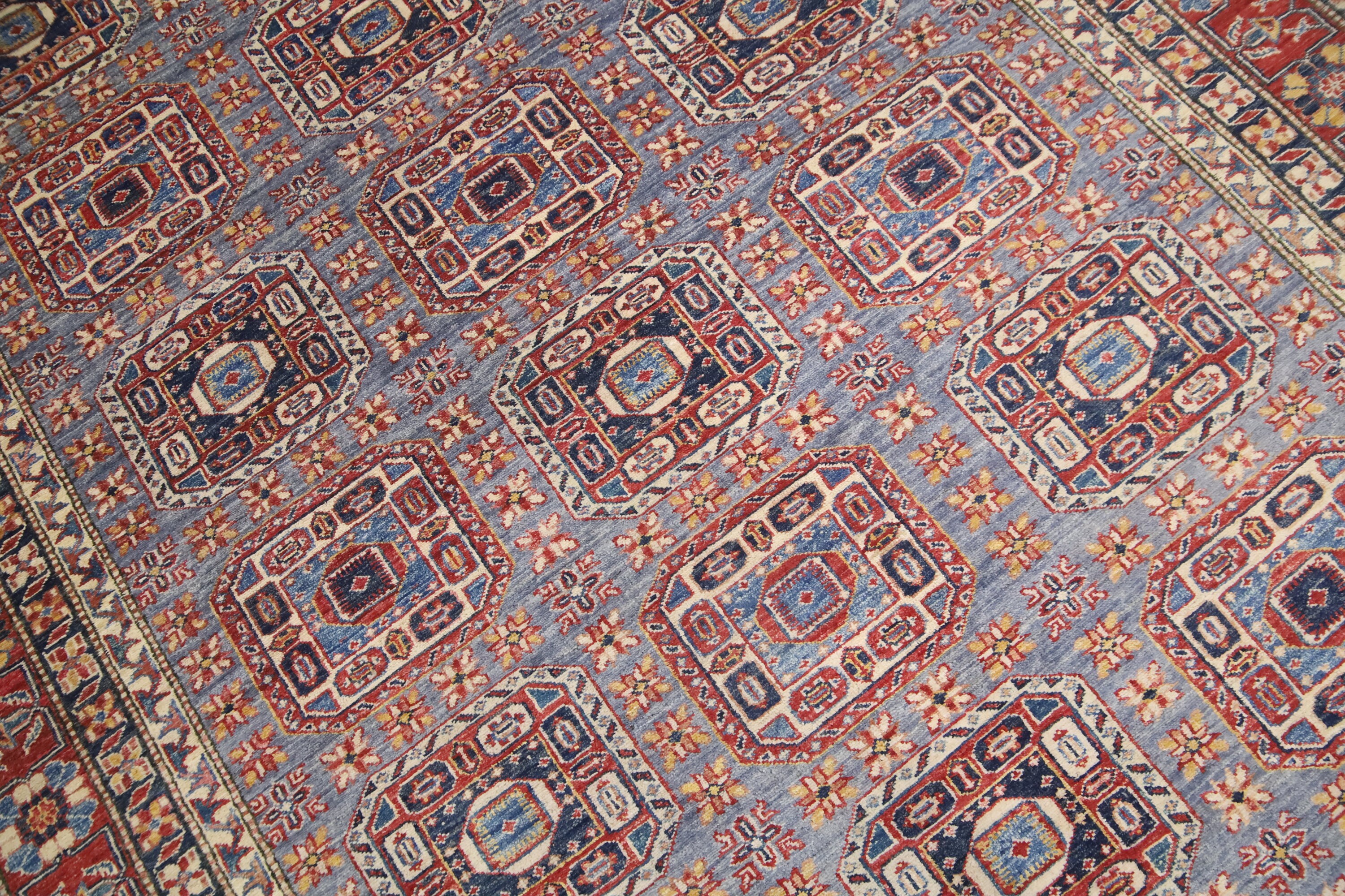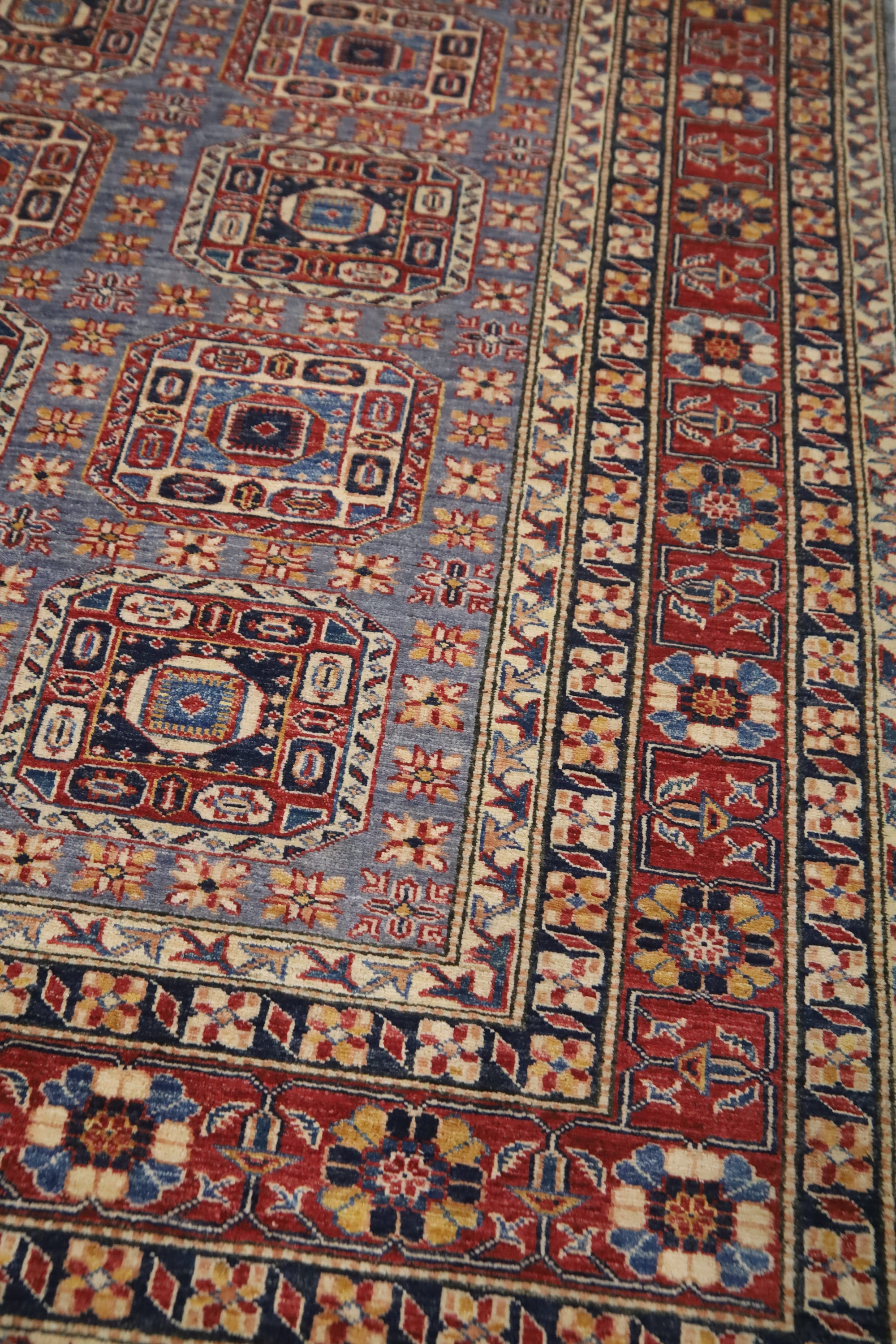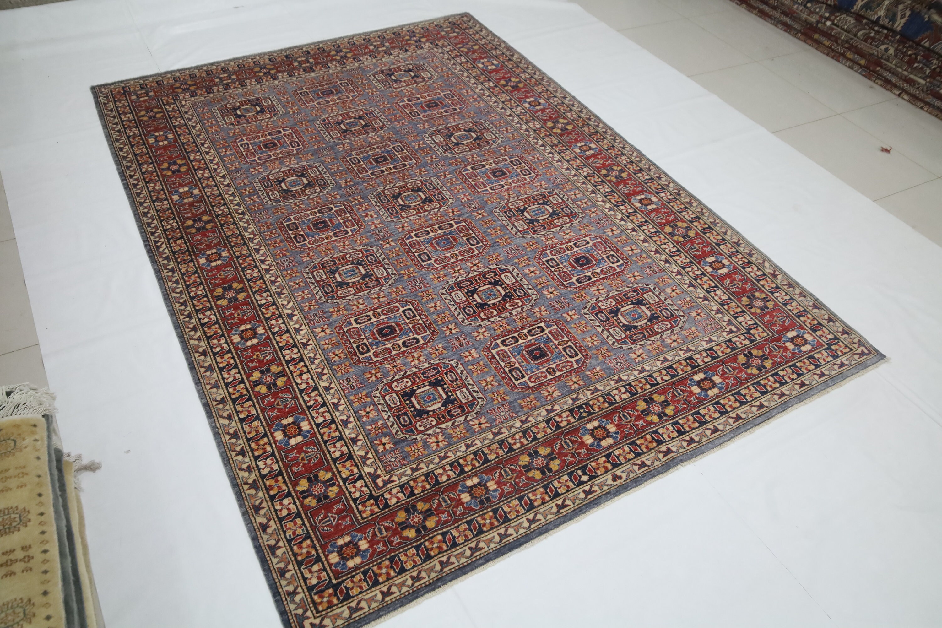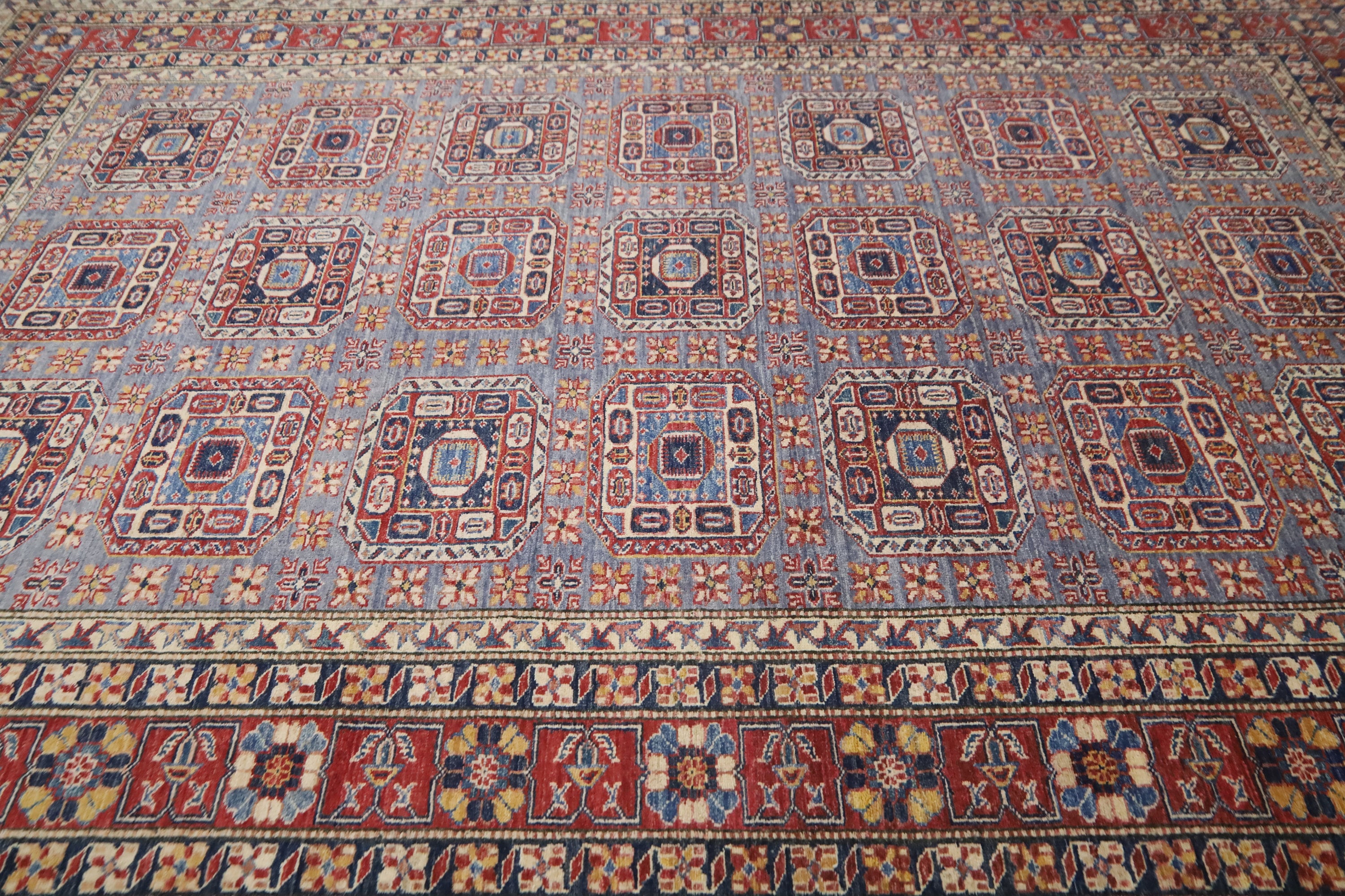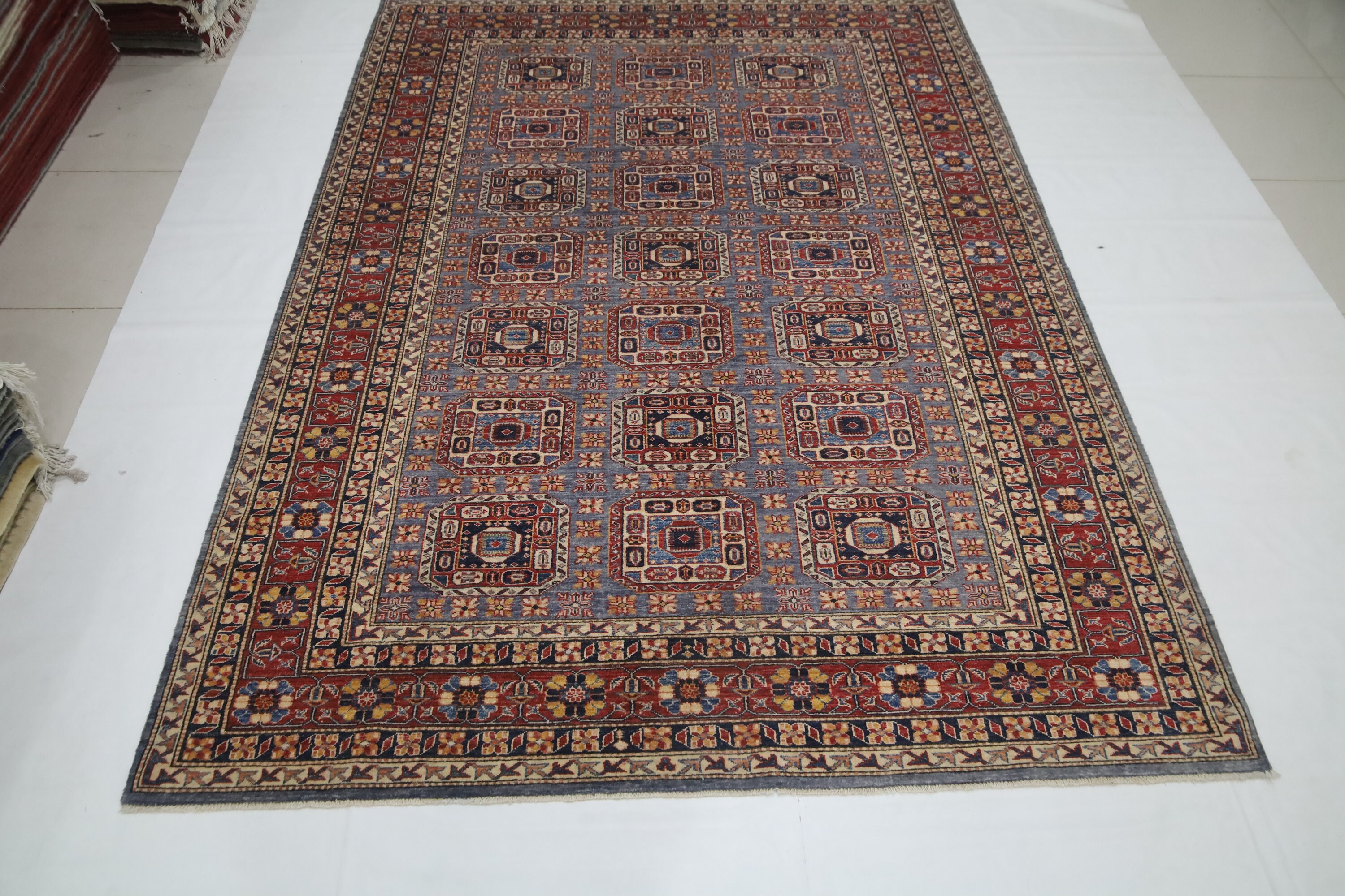 7x10 Ft Kazak Area Rug - Gray Afghan Hand Knotted Geometric Natural Dye Wool Rug - Gray Bedroom Rug - Dining Room Rug - Living Room Rug