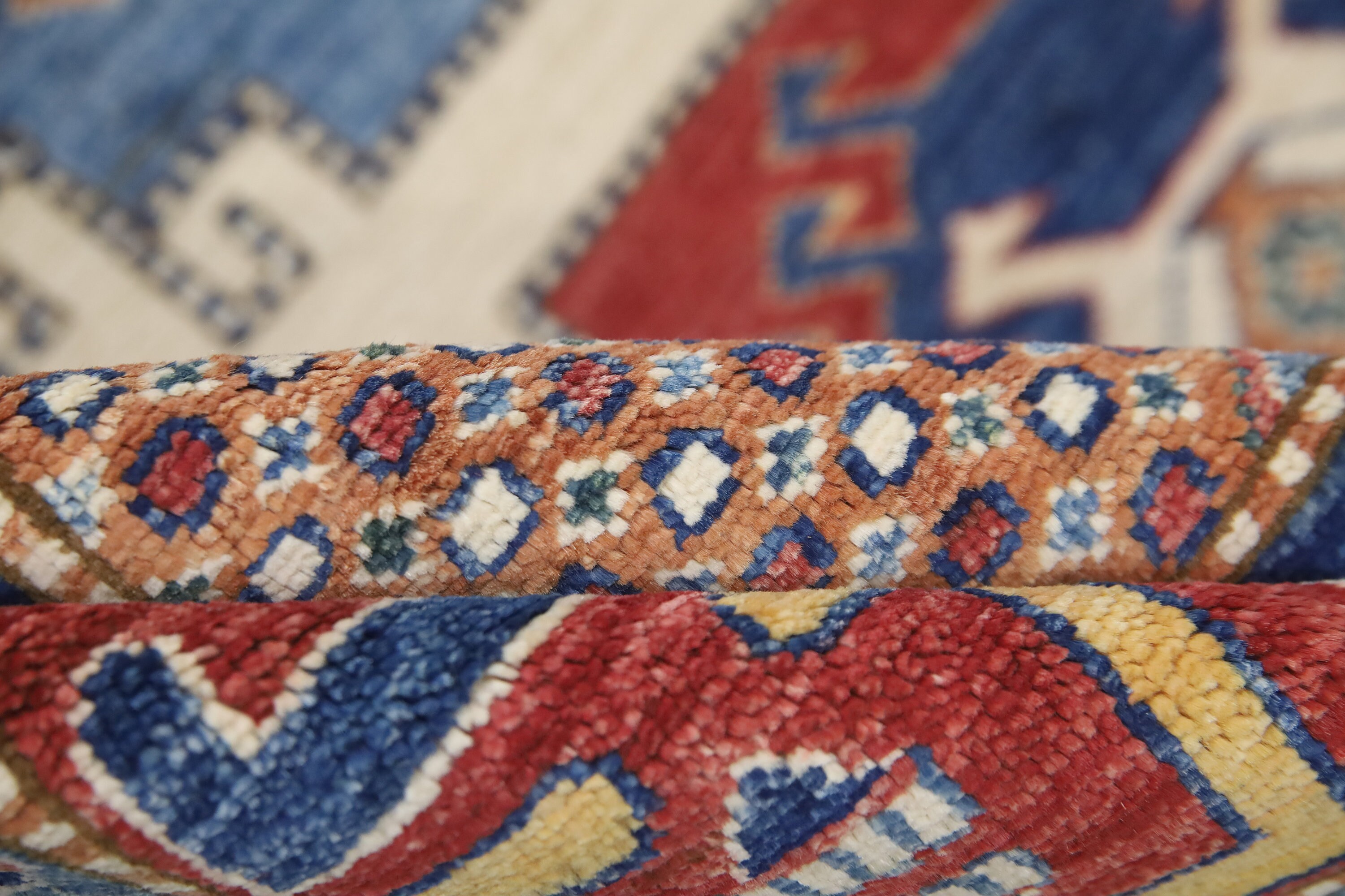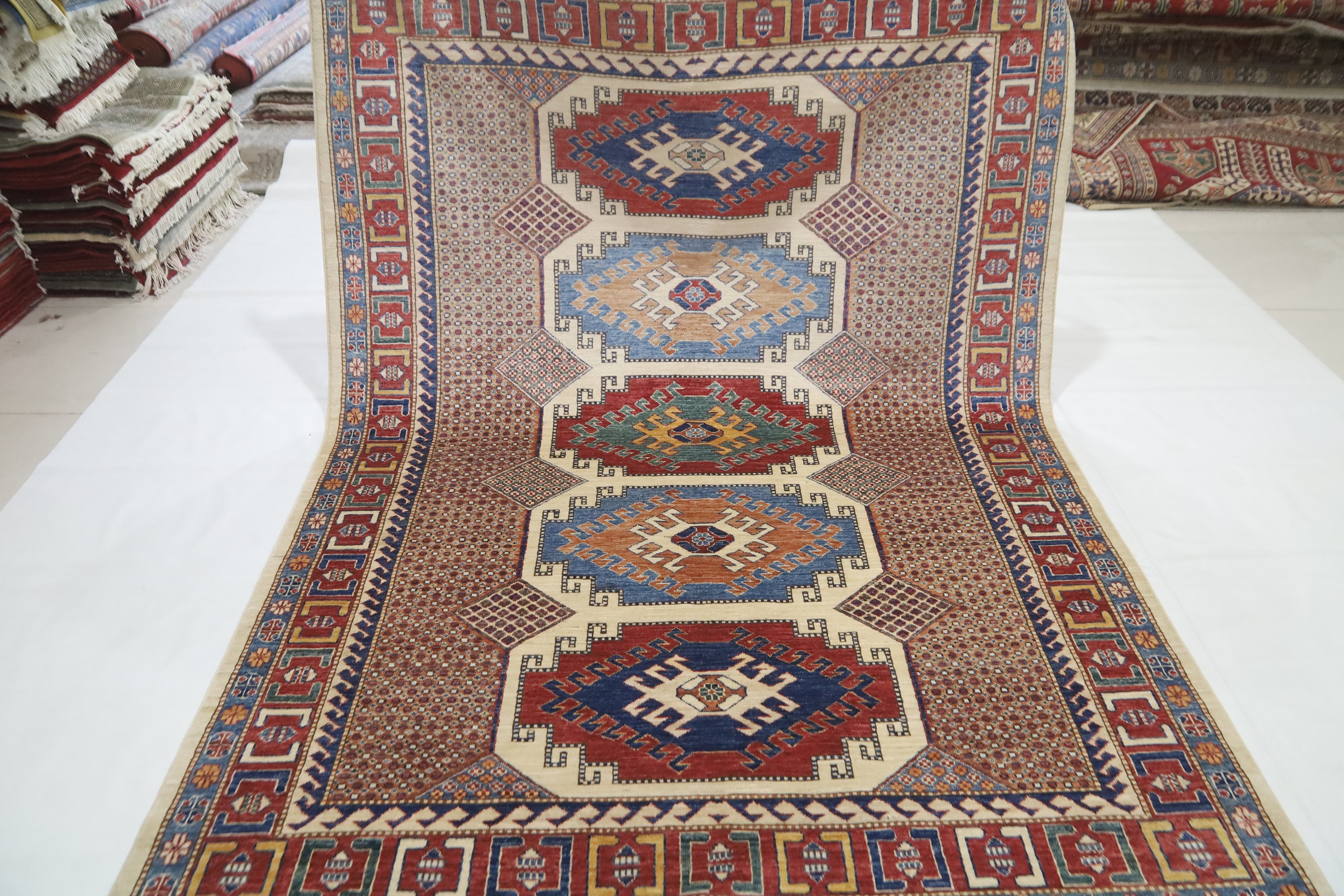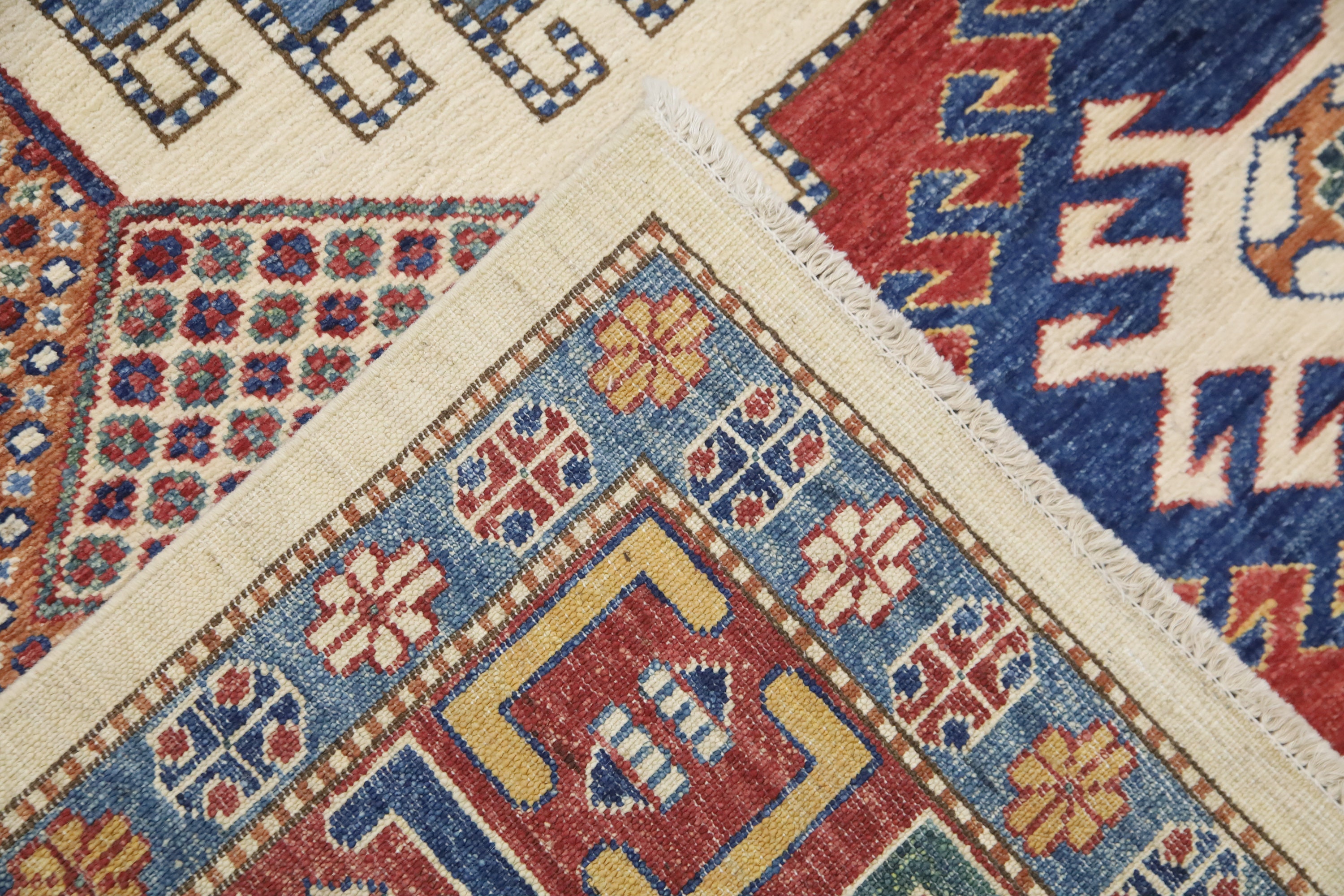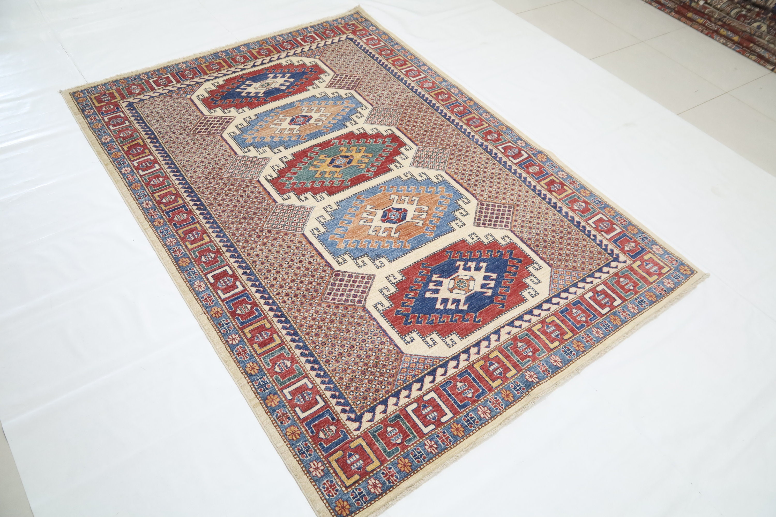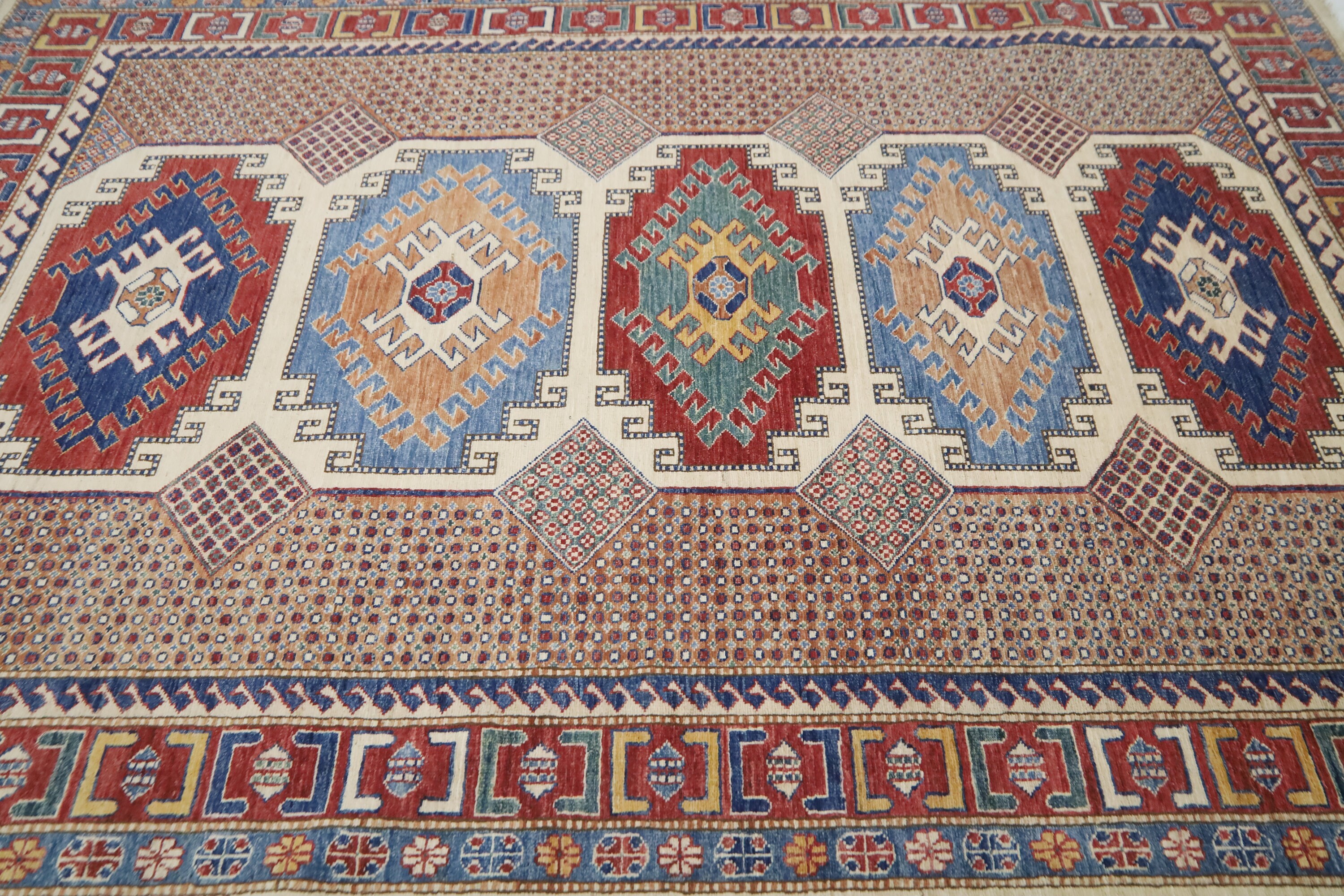 6x8 Kazak Area Rug - Multicolor Afghan Hand Made Geometric Fine Quality Wool Rug - Traditional Rug - Bedroom Rug - Living Room Rug