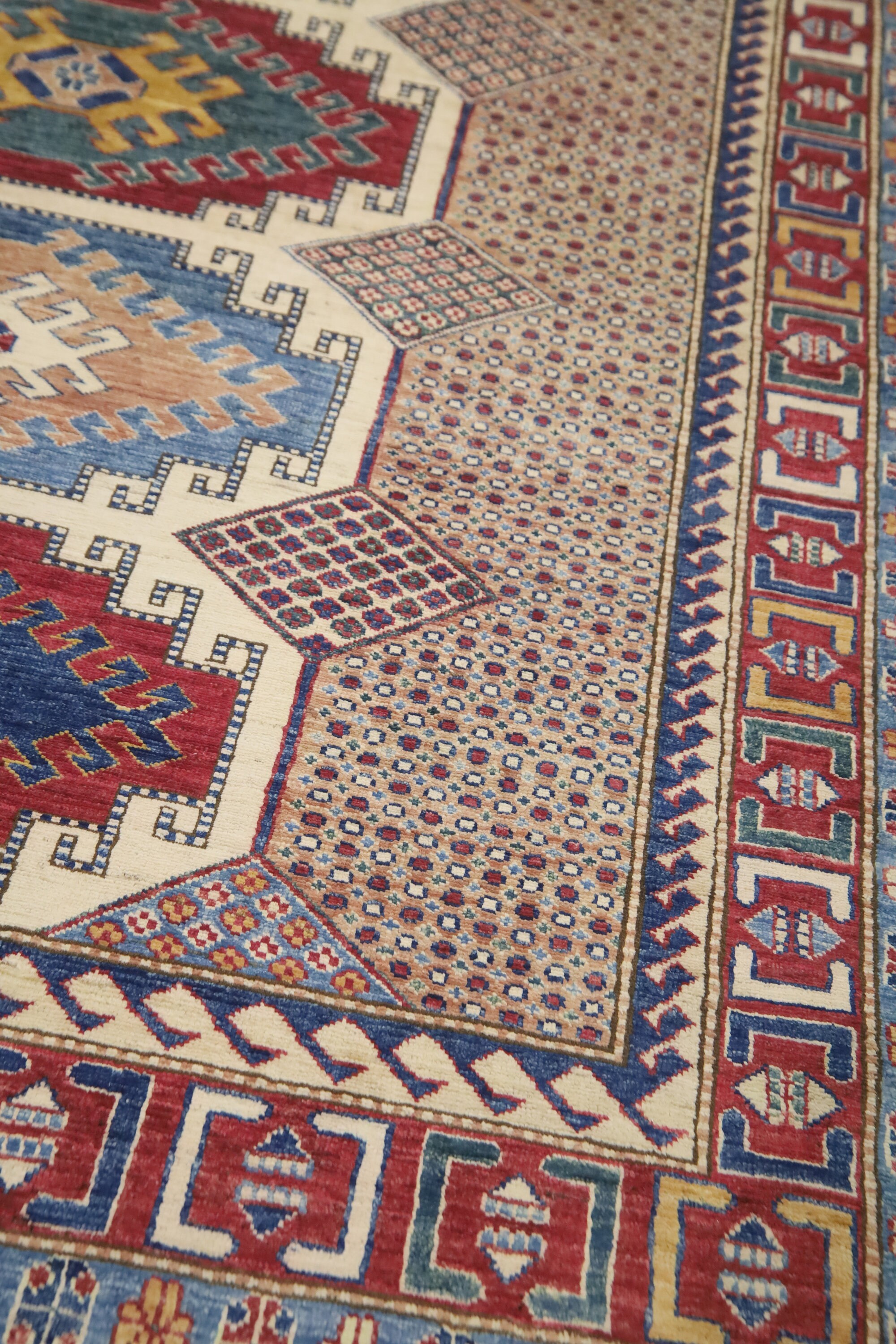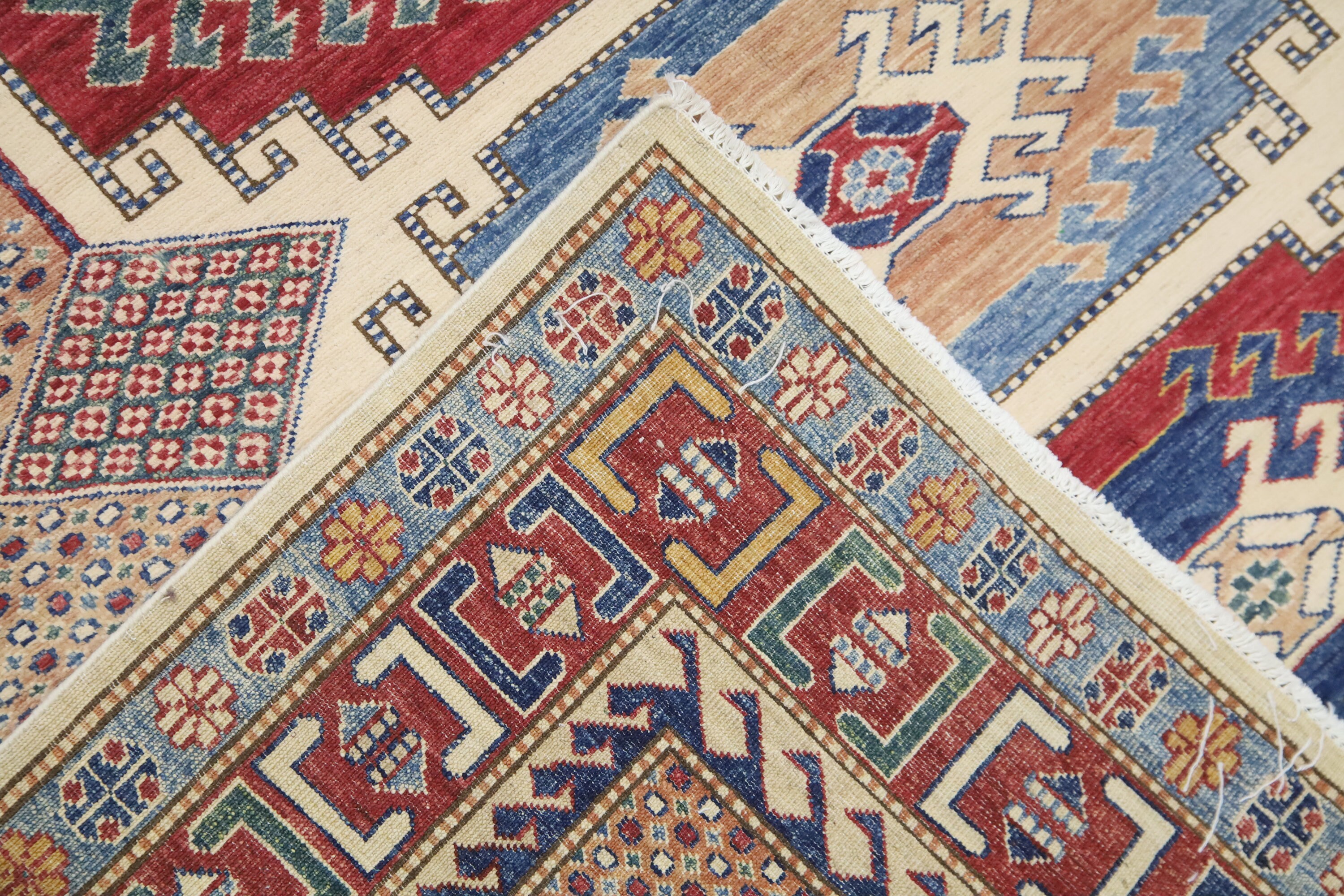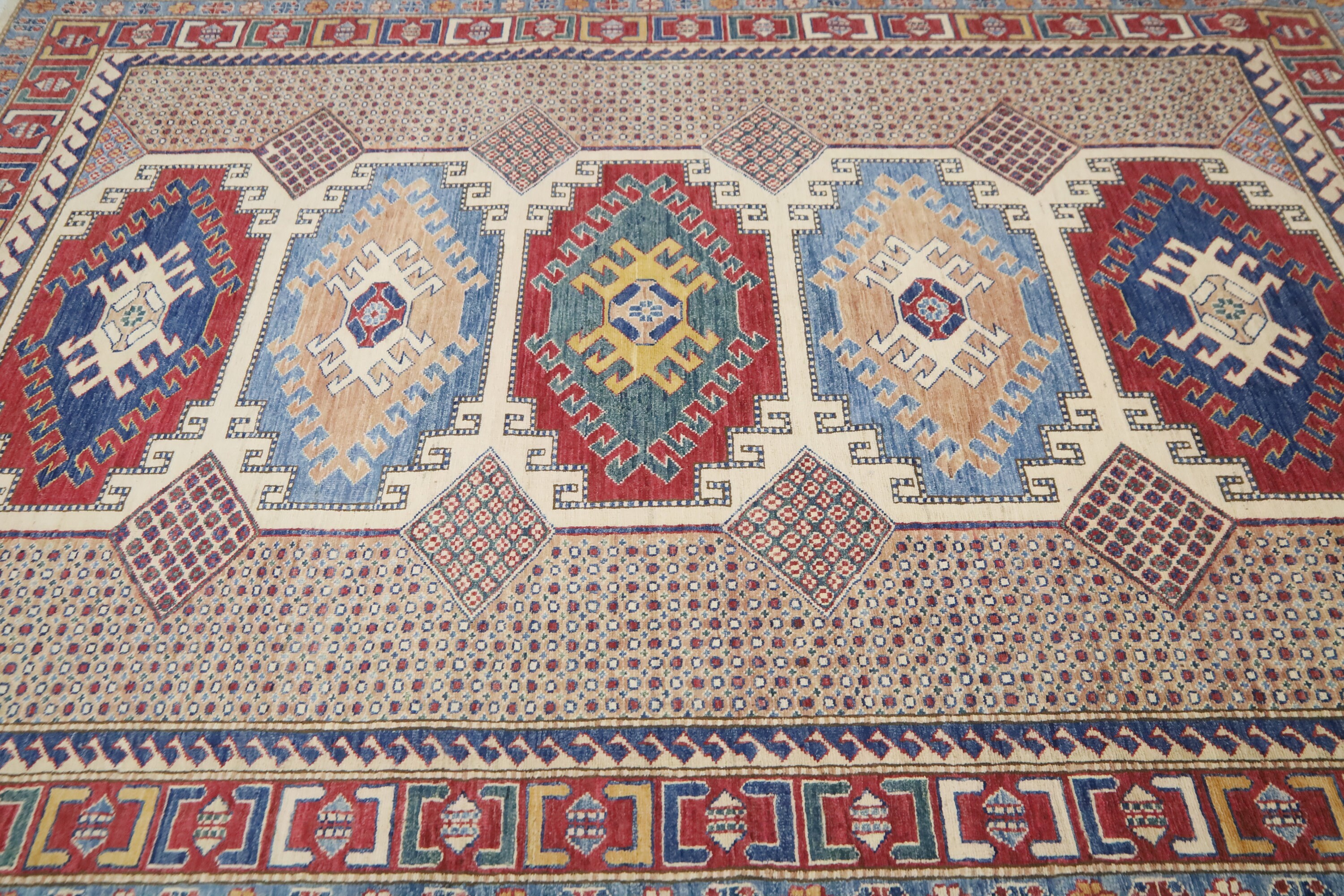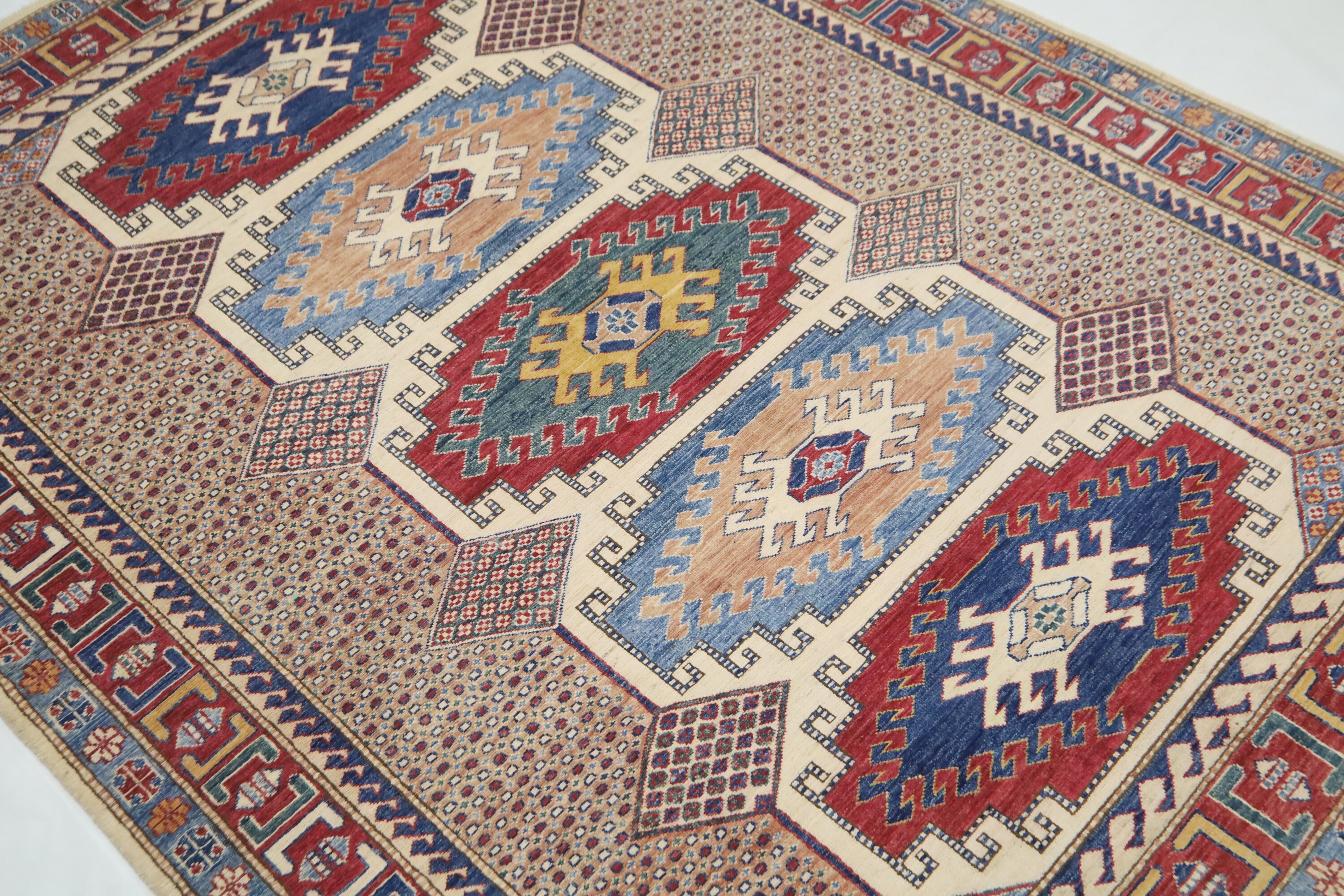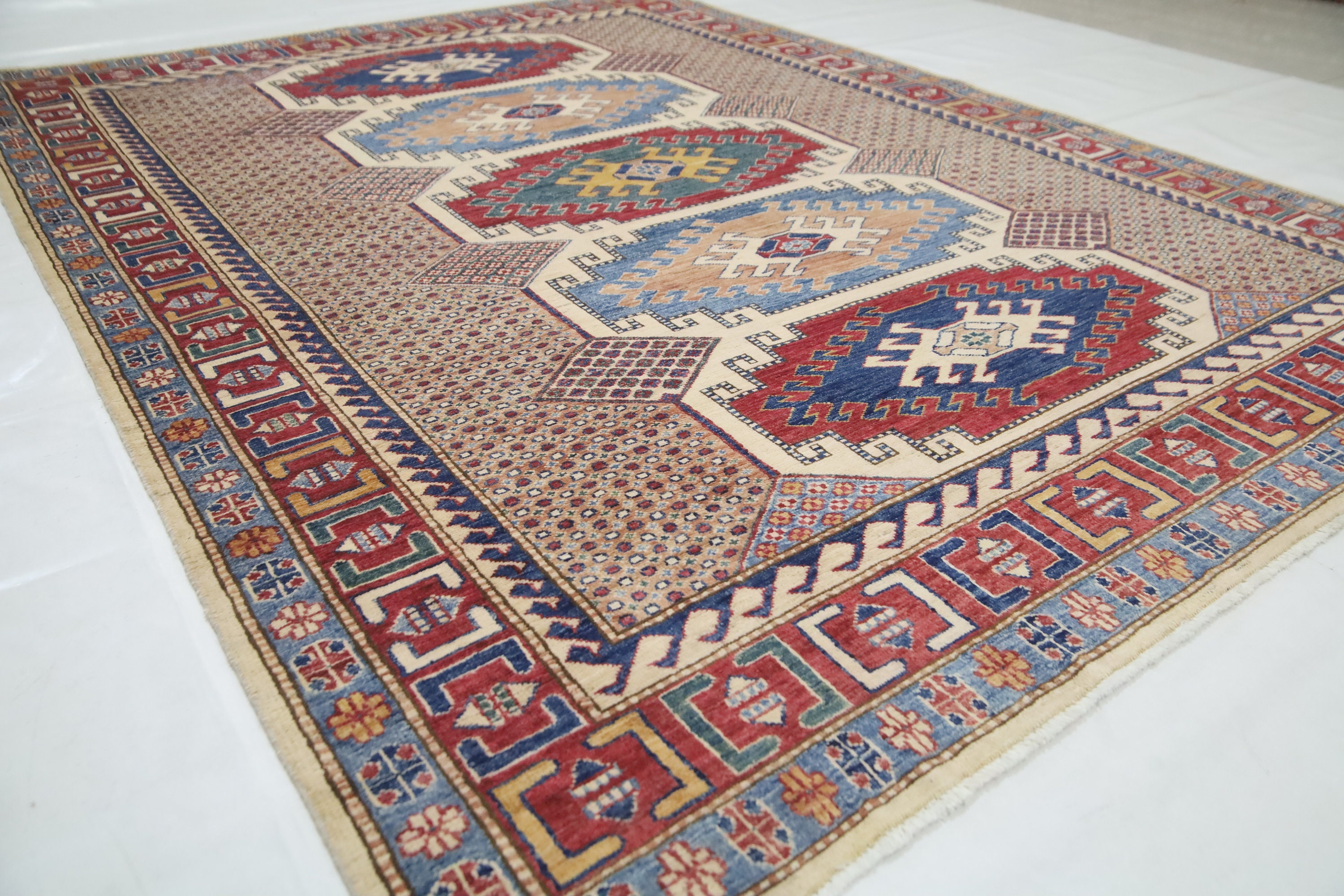 6x8 Kazak Area Rug - Light Brown Afghan Handmade Geometric Veg Dye Wool Rug - Traditional Rugs - Bedroom Rug - Living Room Rug - Office Rug