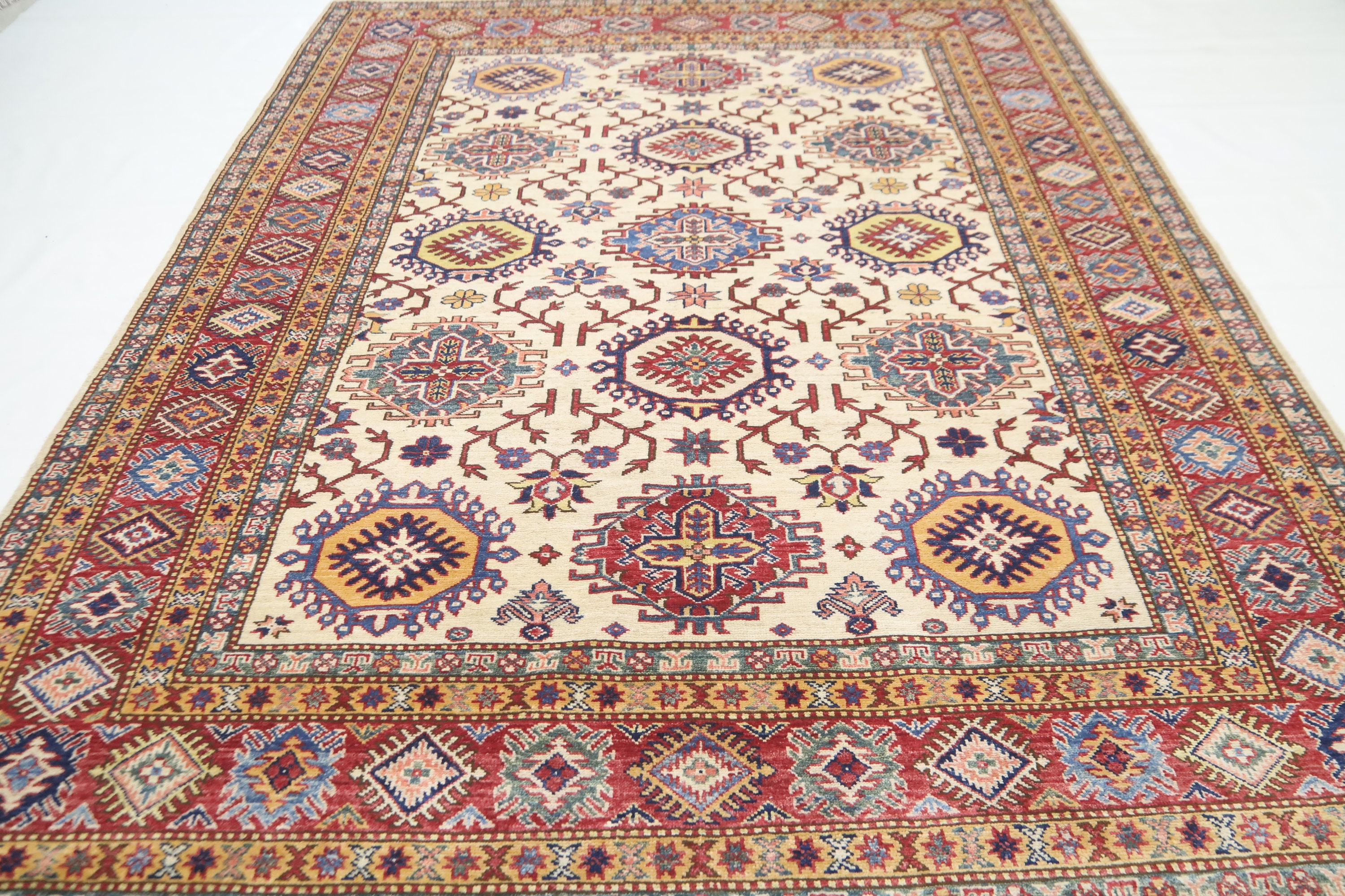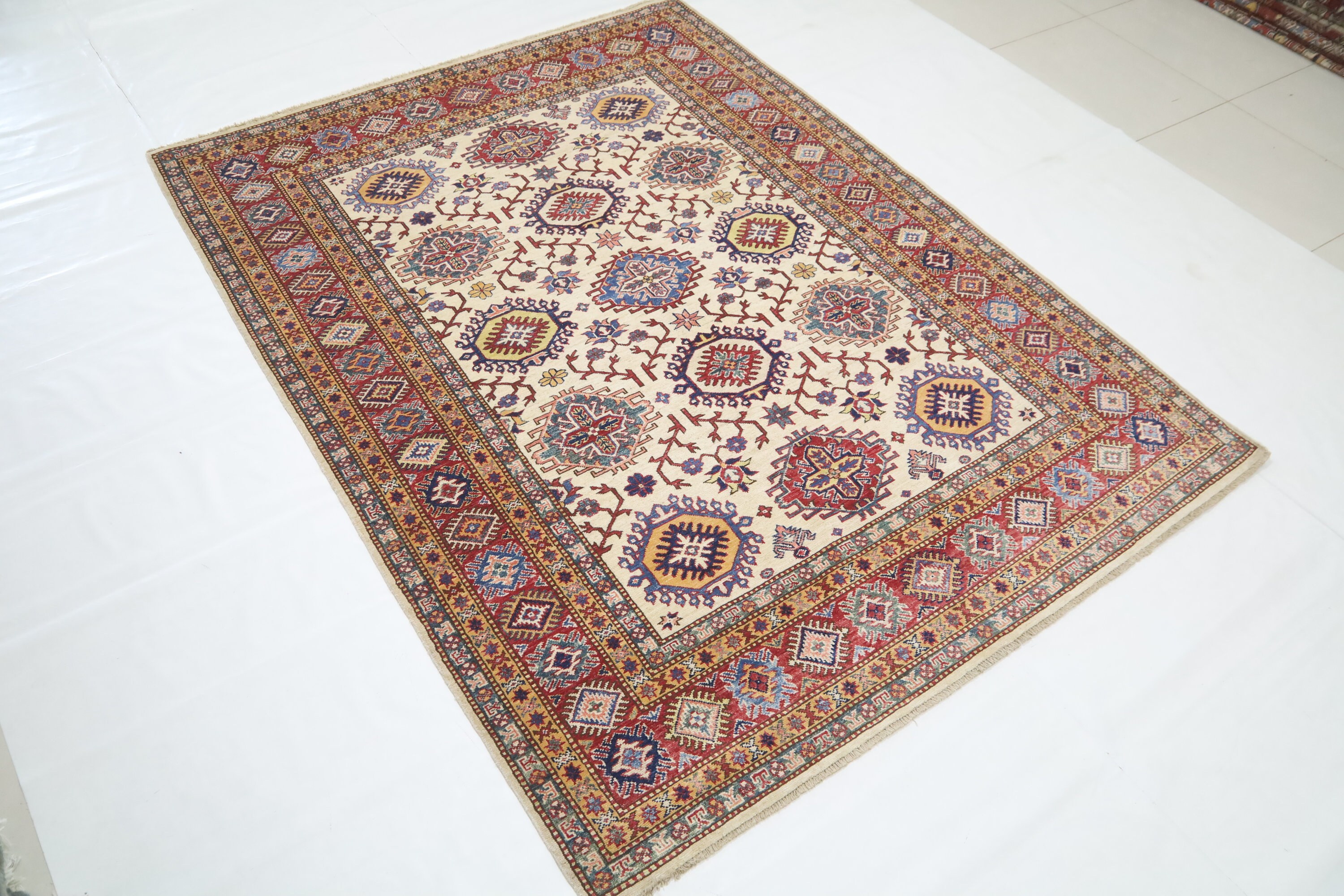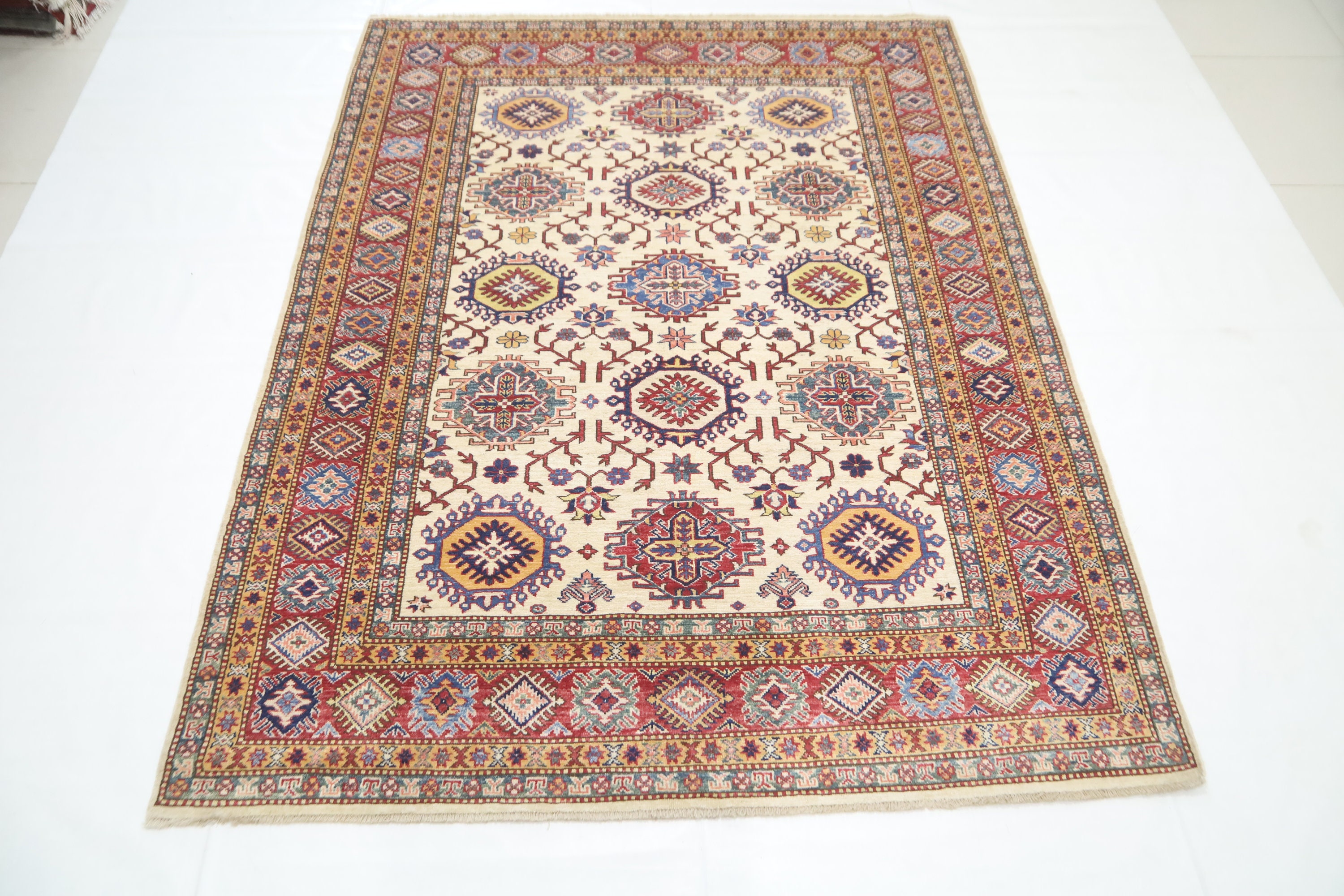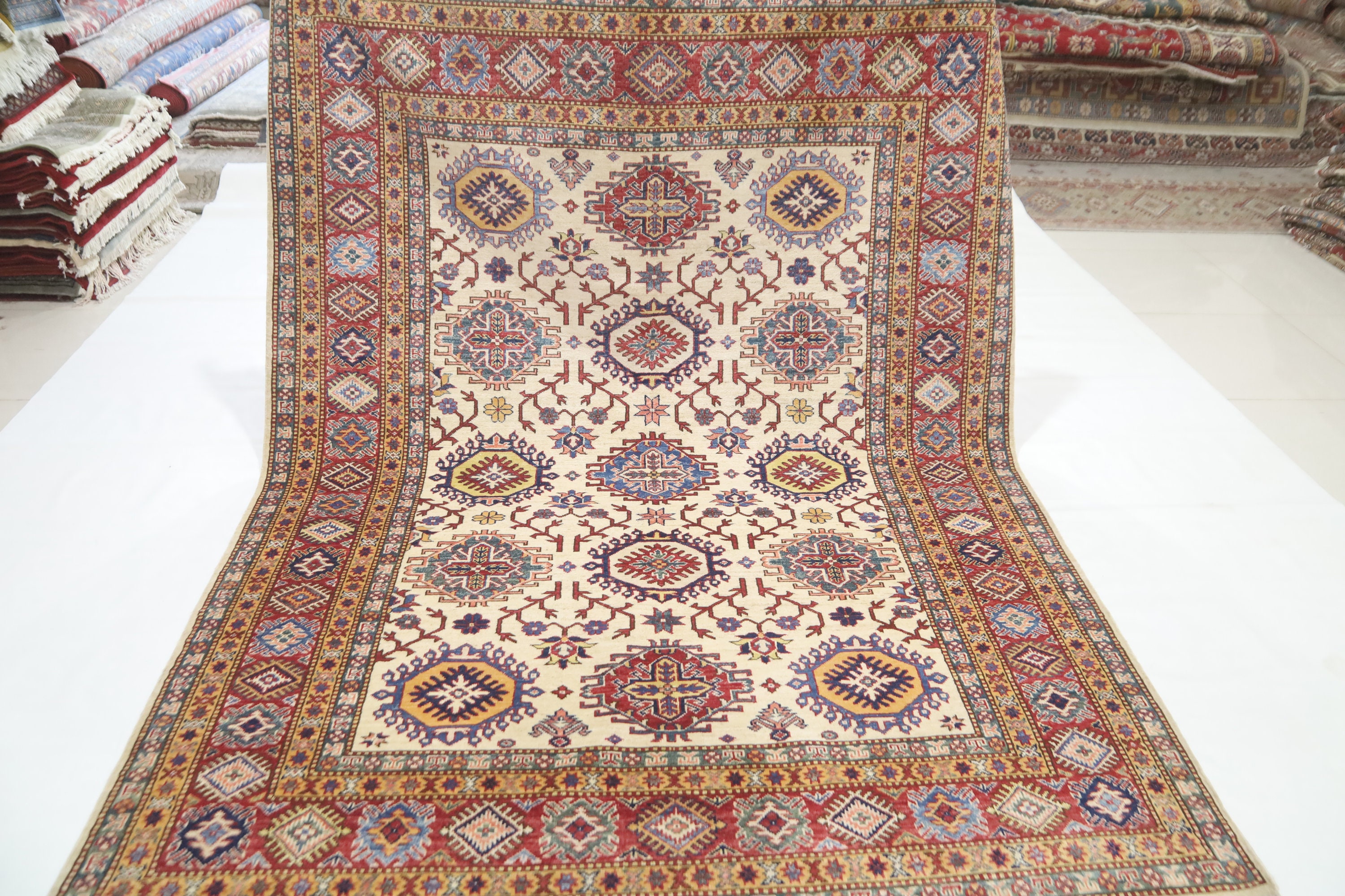 Beige 6x8 Kazak Area Rug - Afghan Hand Made Geometric Organic Dye Wool Rug - Bedroom Rug - Living Room Rug - Dining Room Rug - Oriental Rug