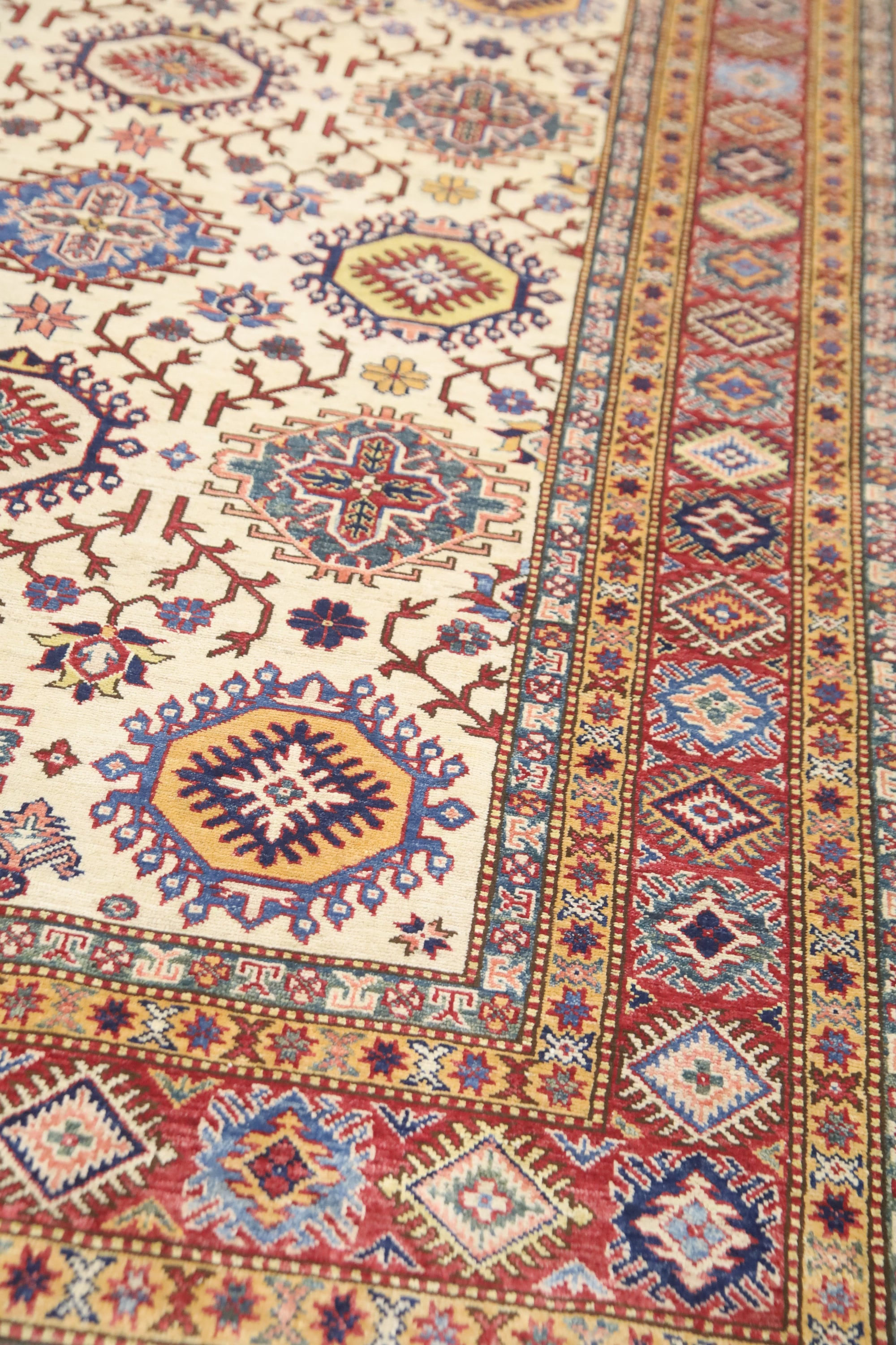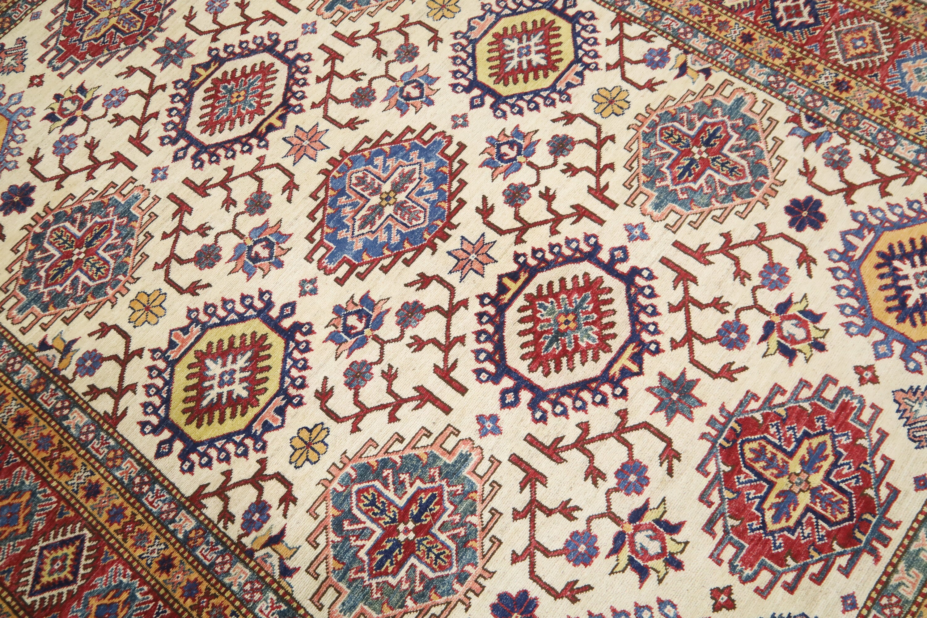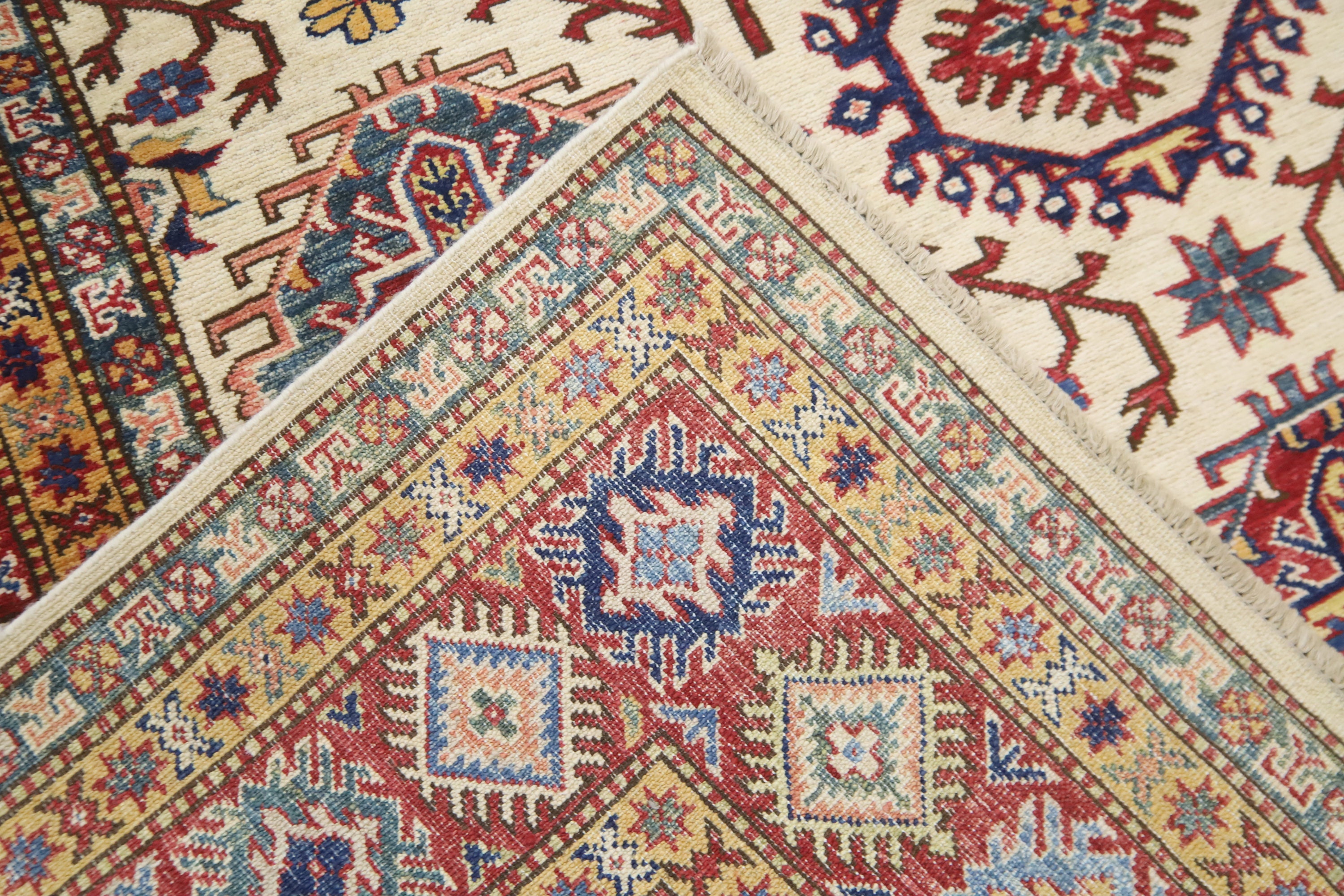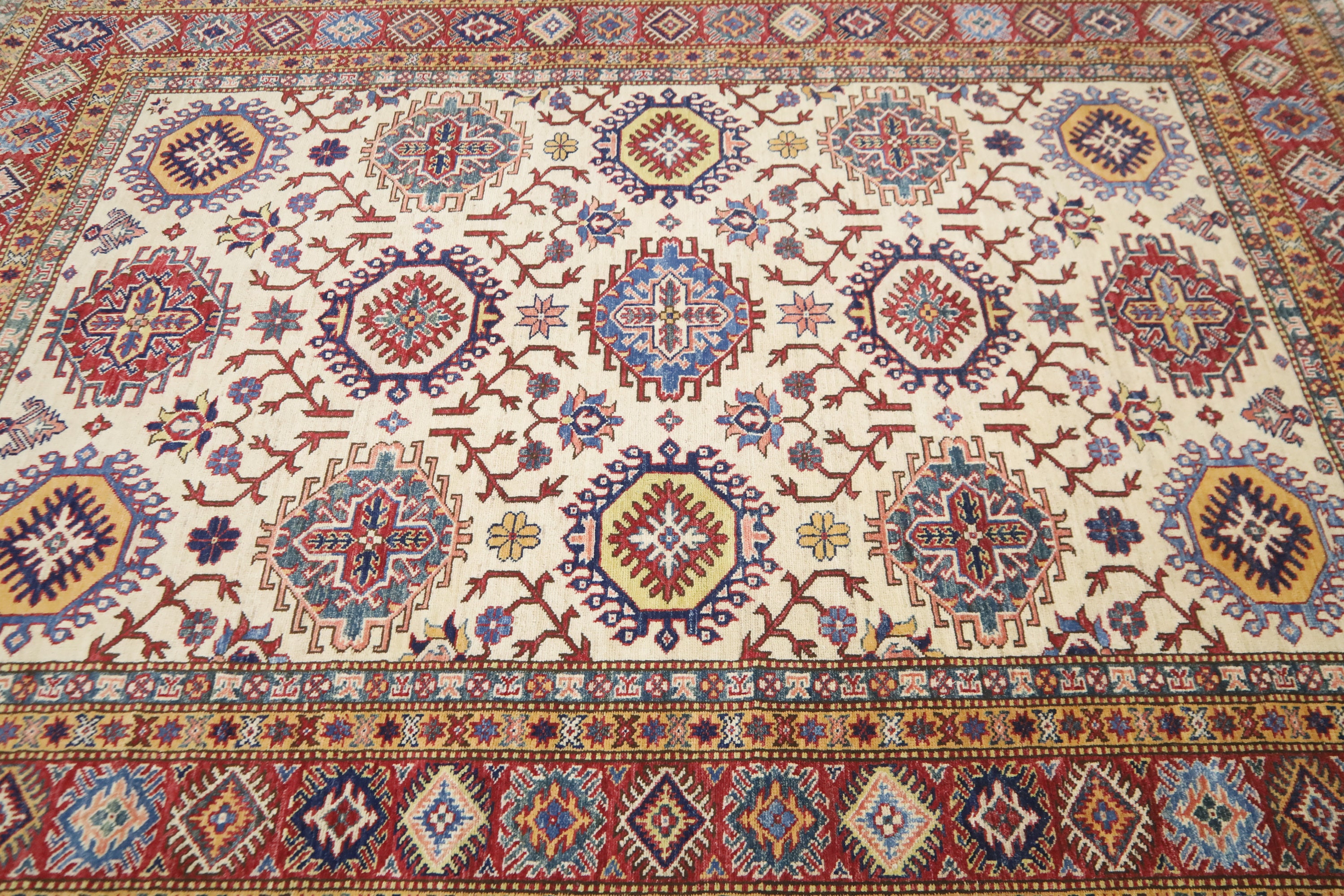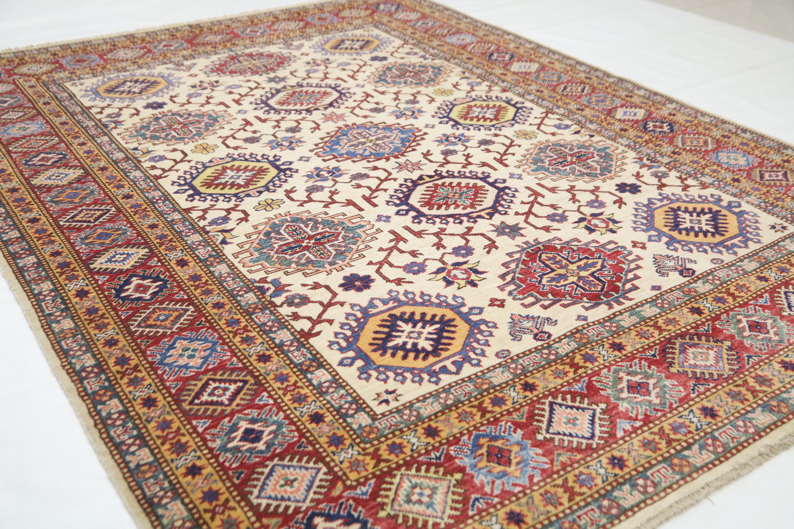 Beige 6x8 Kazak Area Rug - Afghan Hand Made Geometric Organic Dye Wool Rug - Bedroom Rug - Living Room Rug - Dining Room Rug - Oriental Rug