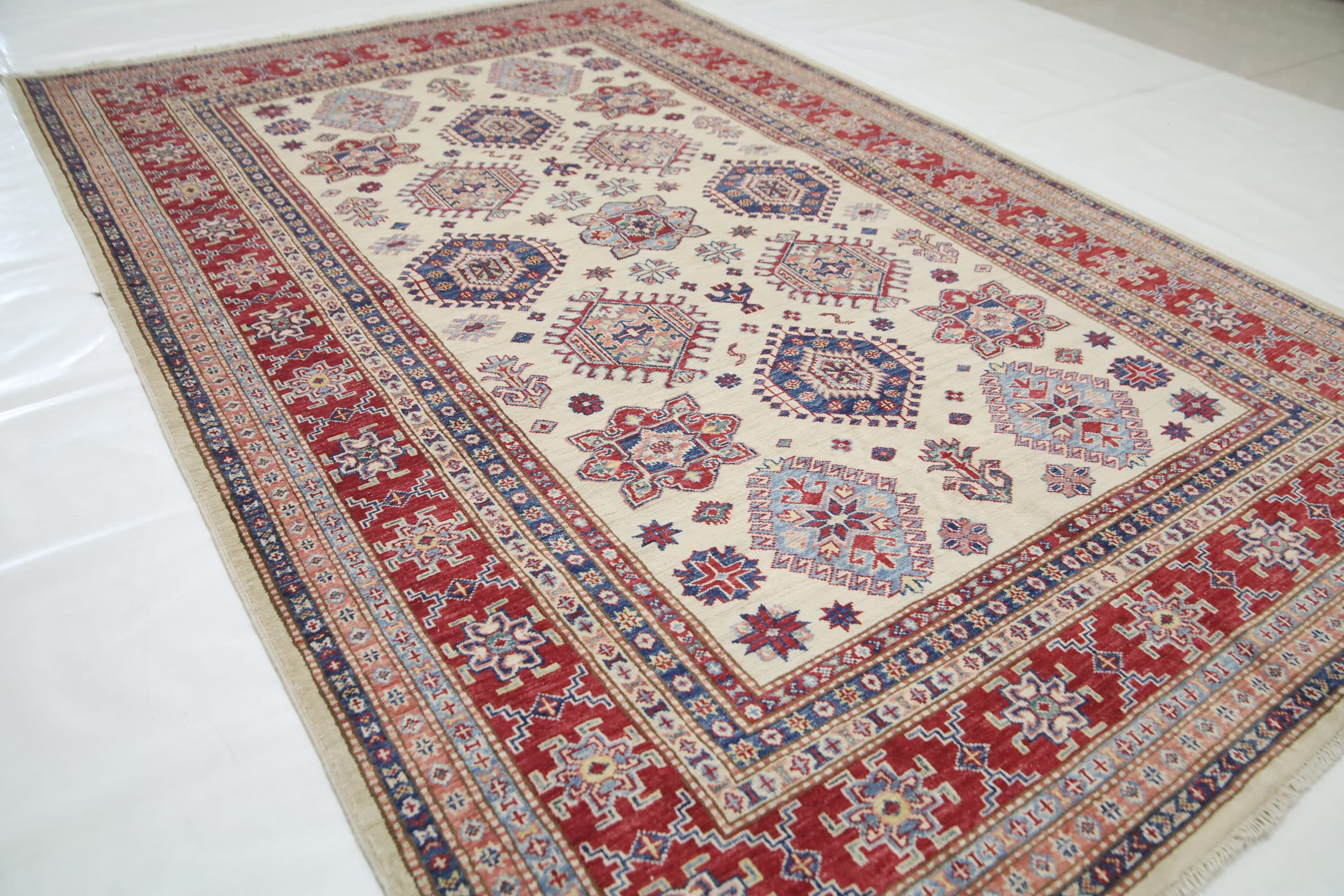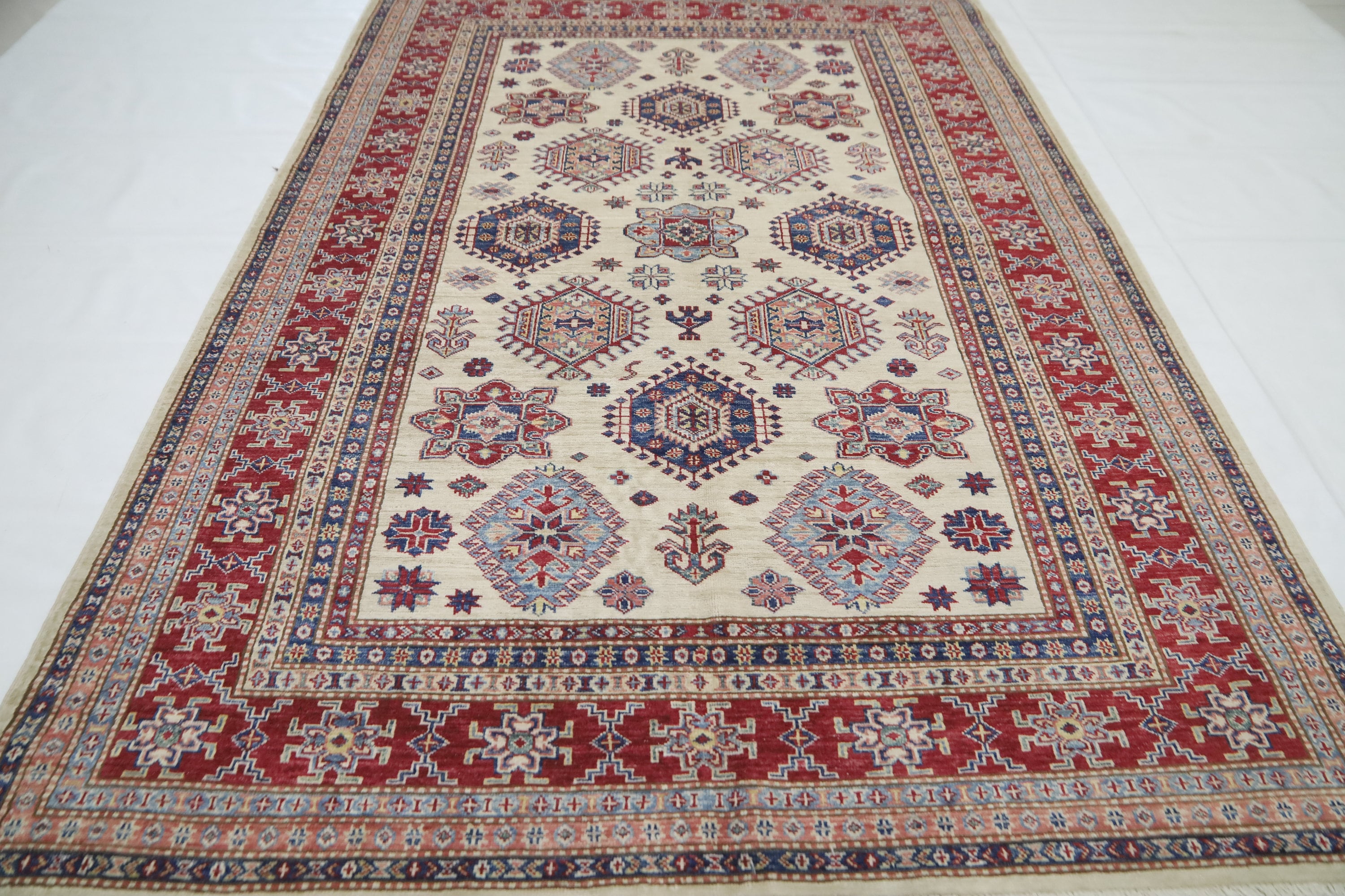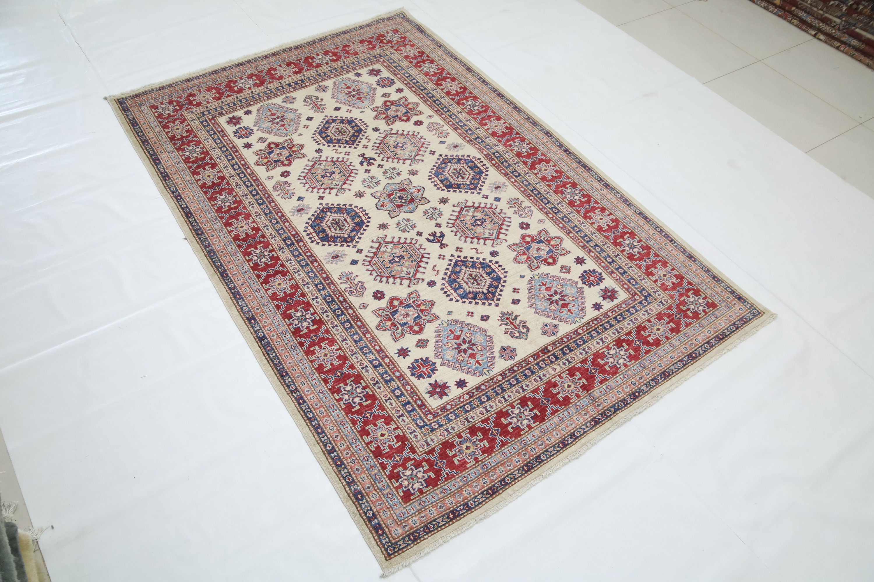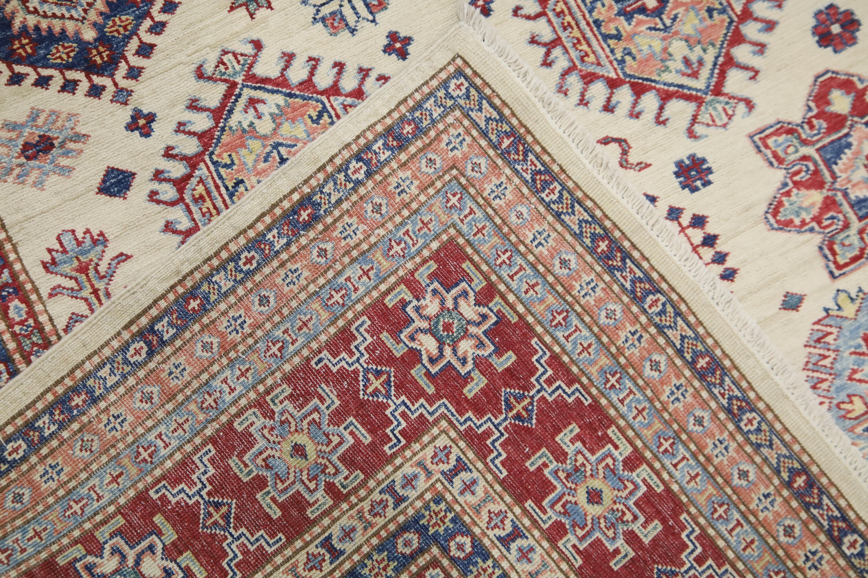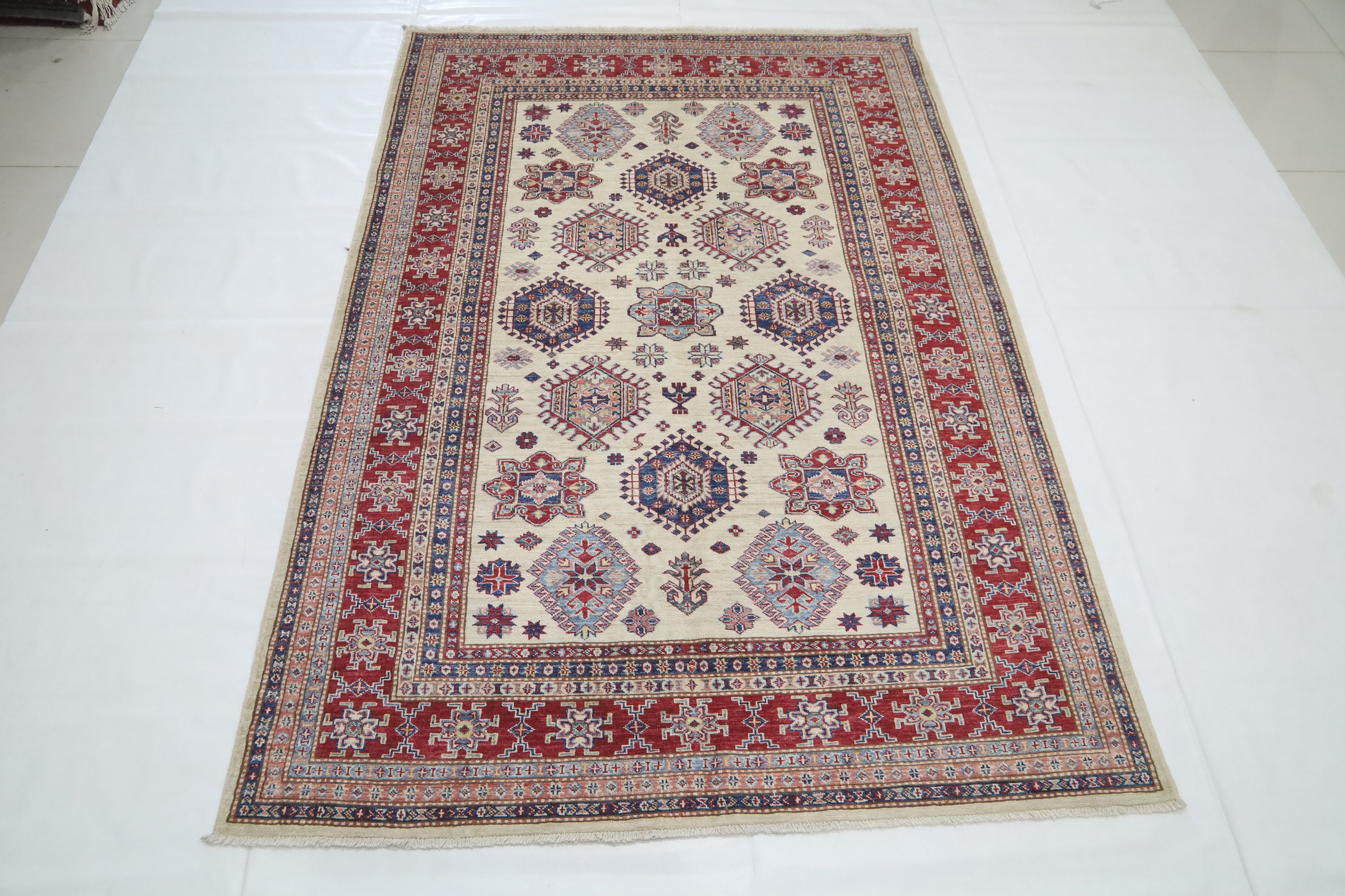 5x8 Beige Red Kazak Area Rug - Afghan Hand Made Geometric Fine Quality Wool Rug - Bedroom Rug - Office Rug - Entryway Rug - Living Room Rug