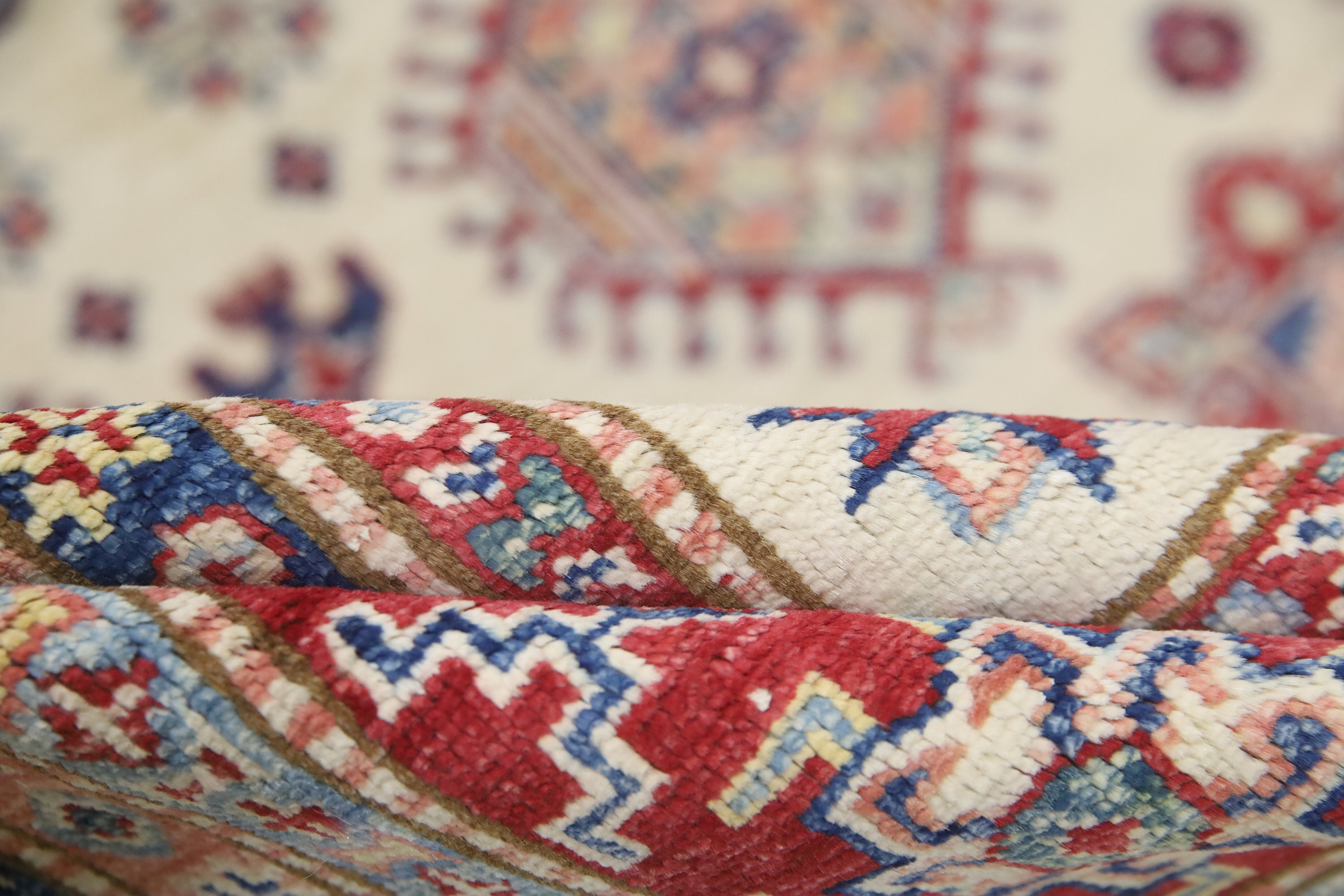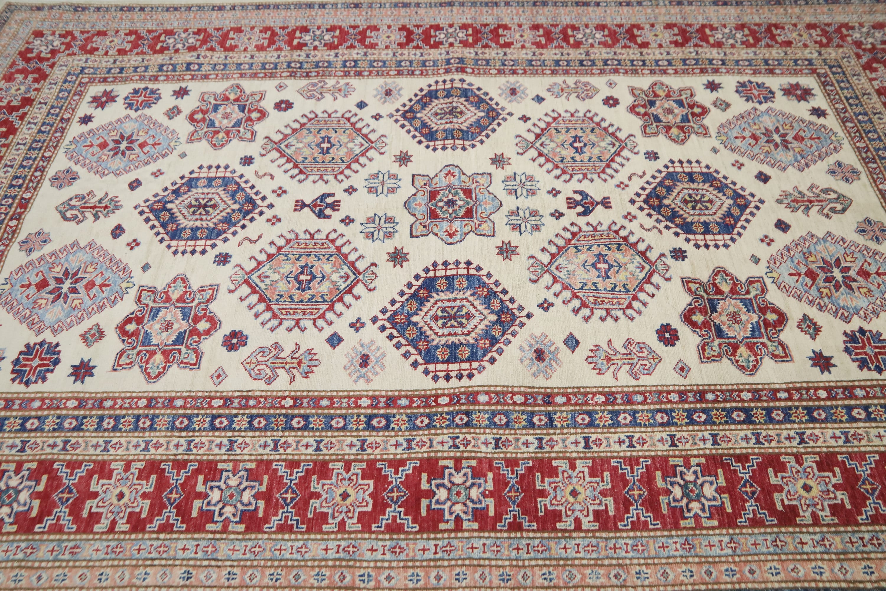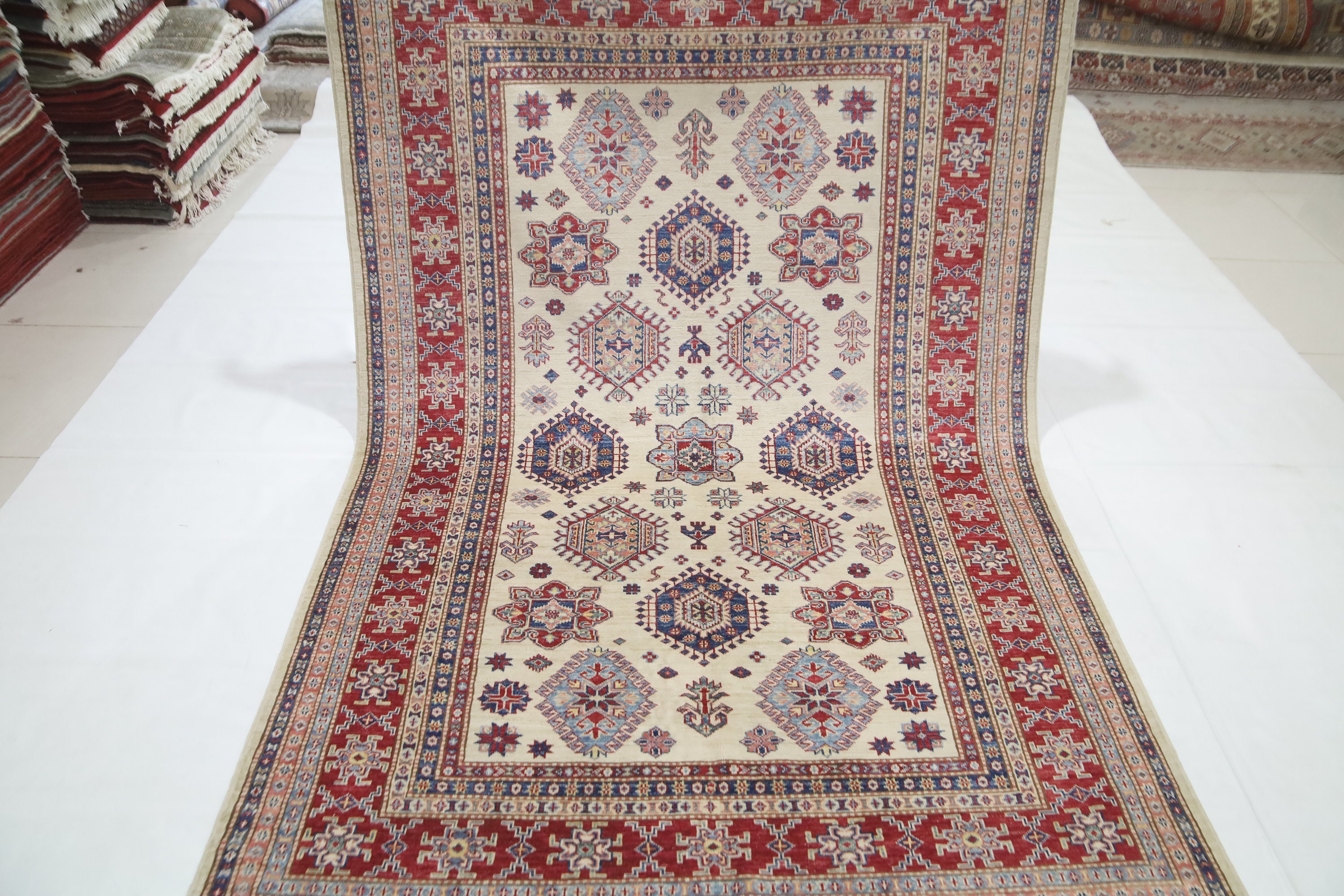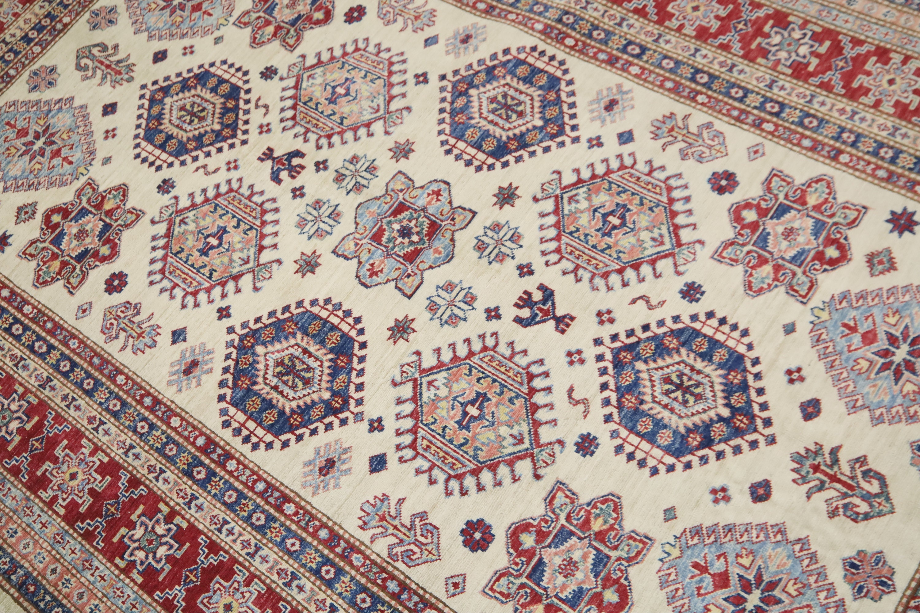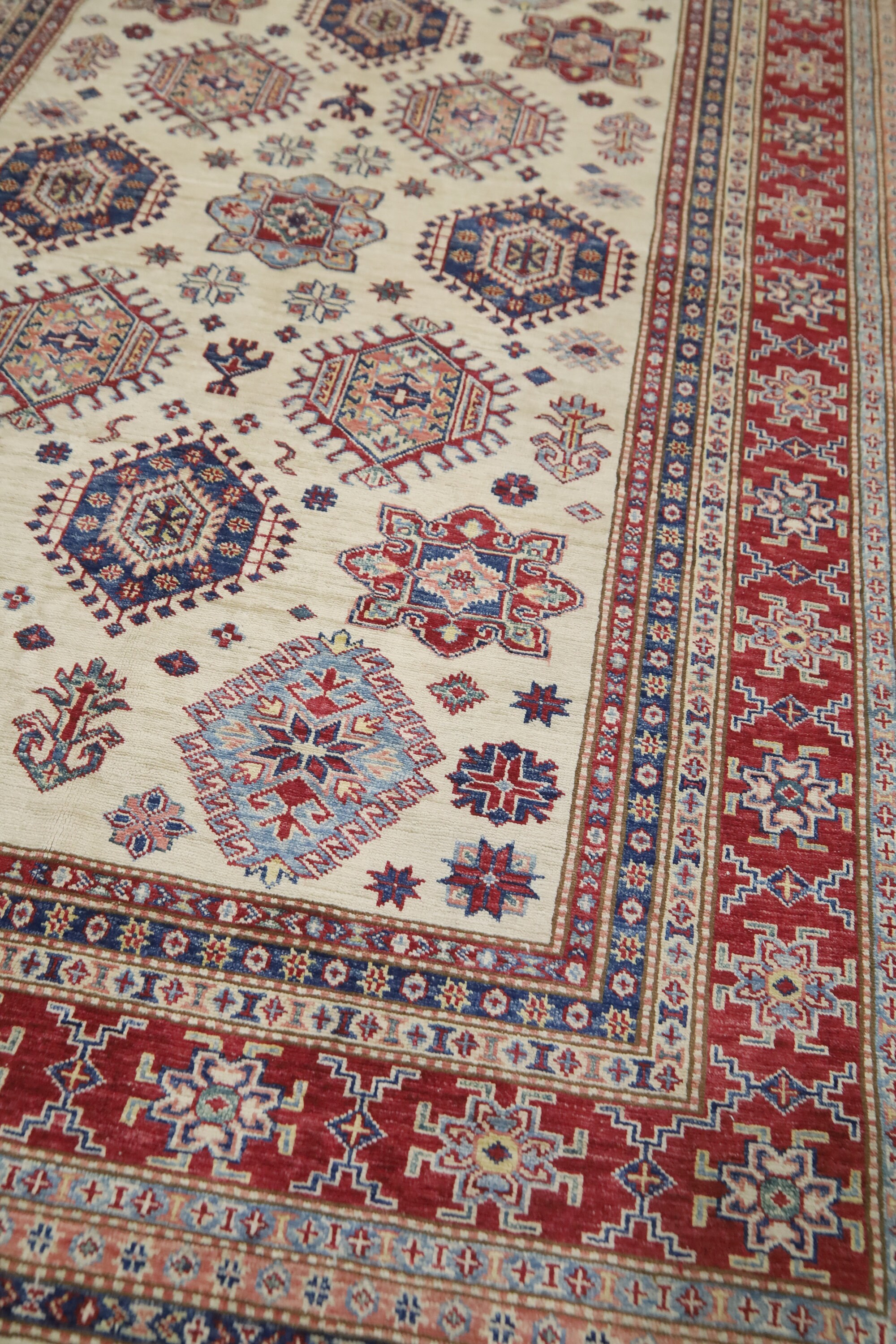 5x8 Beige Red Kazak Area Rug - Afghan Hand Made Geometric Fine Quality Wool Rug - Bedroom Rug - Office Rug - Entryway Rug - Living Room Rug