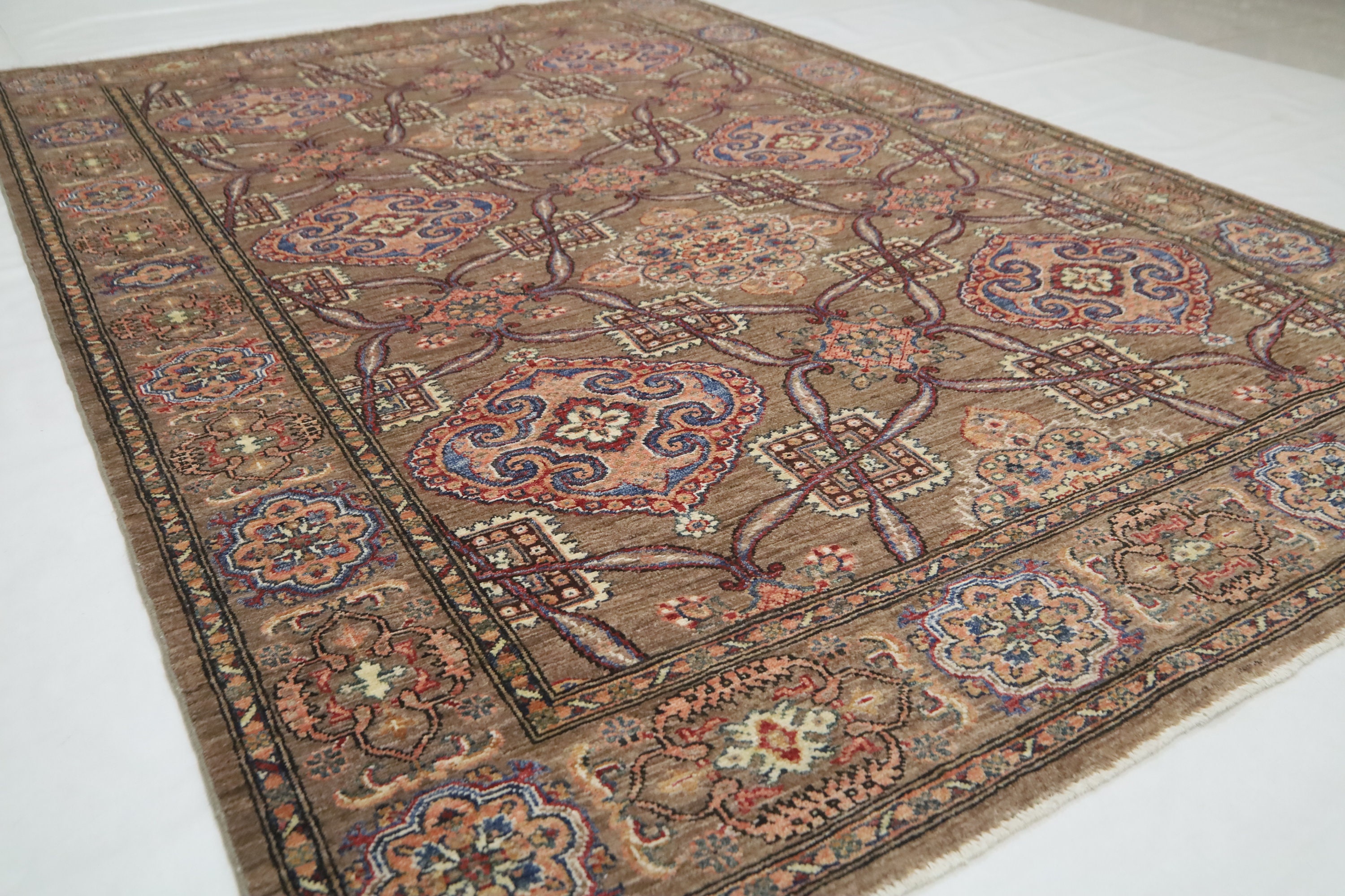 Brown 6x9 Kazak Fine Quality Area Rug - Afghan Hand Knotted Rug - Geometric Rug - Traditional Rug - 6x9 Bedroom Rug - Kitchen Rug - Wool Rug