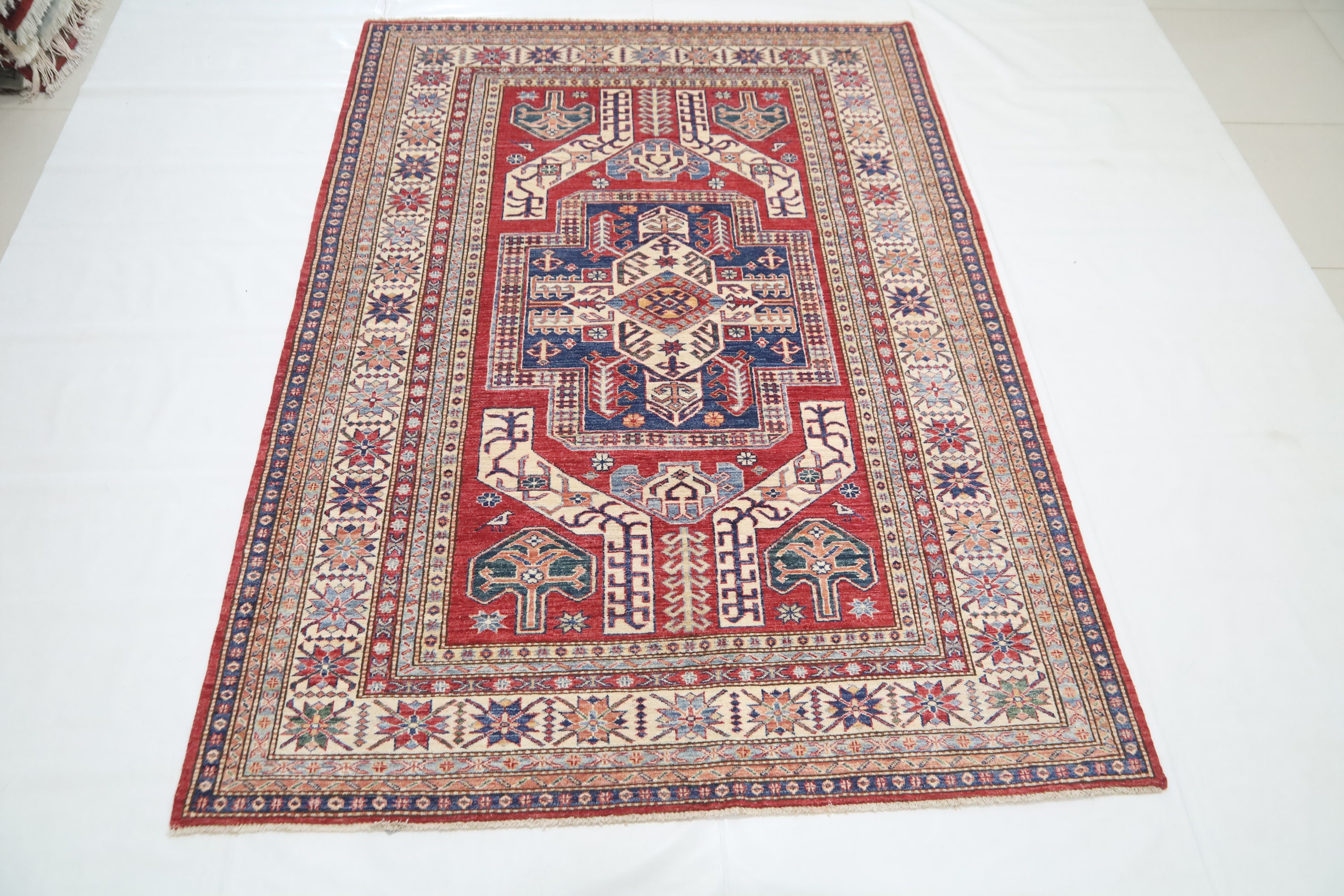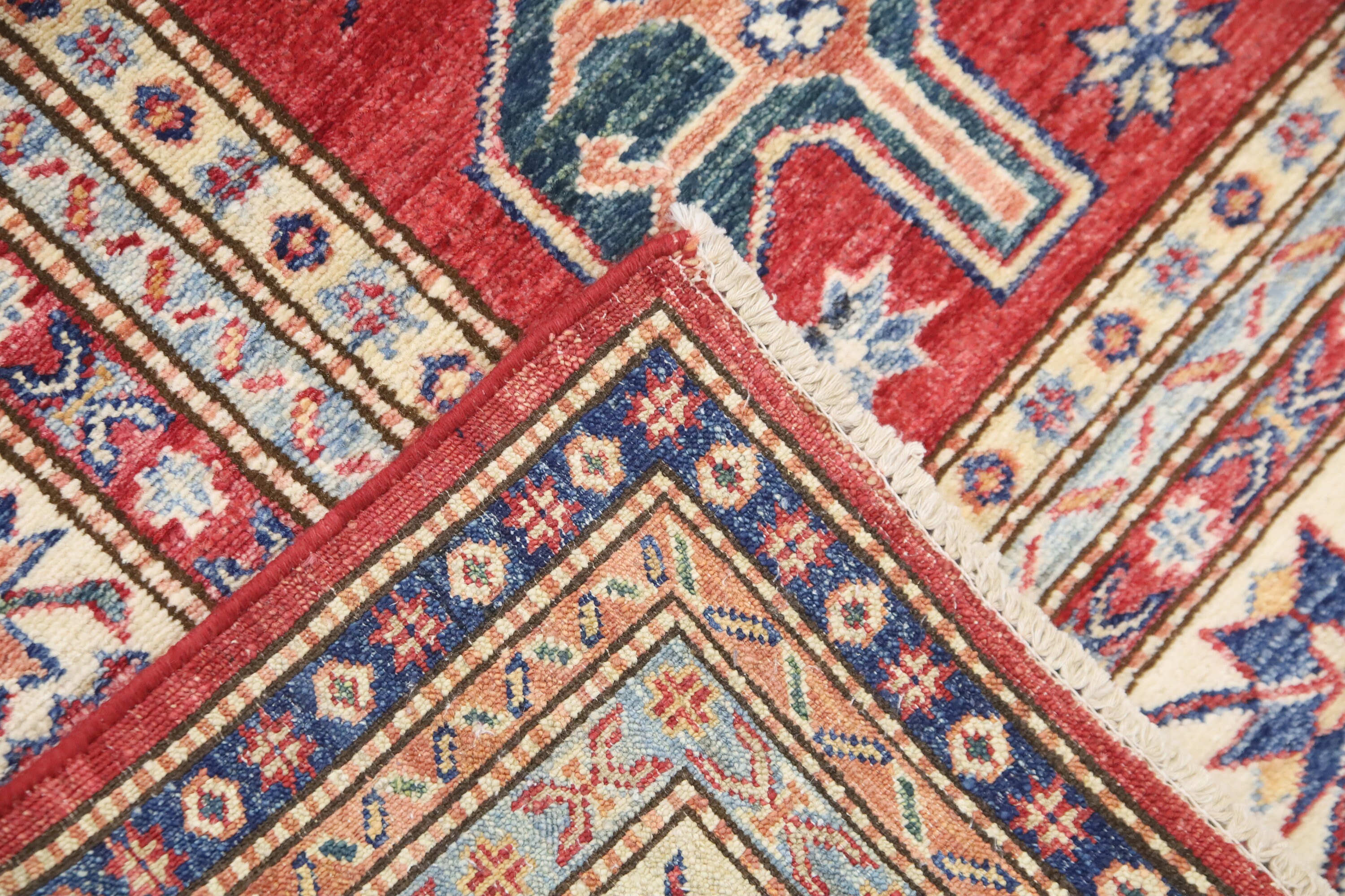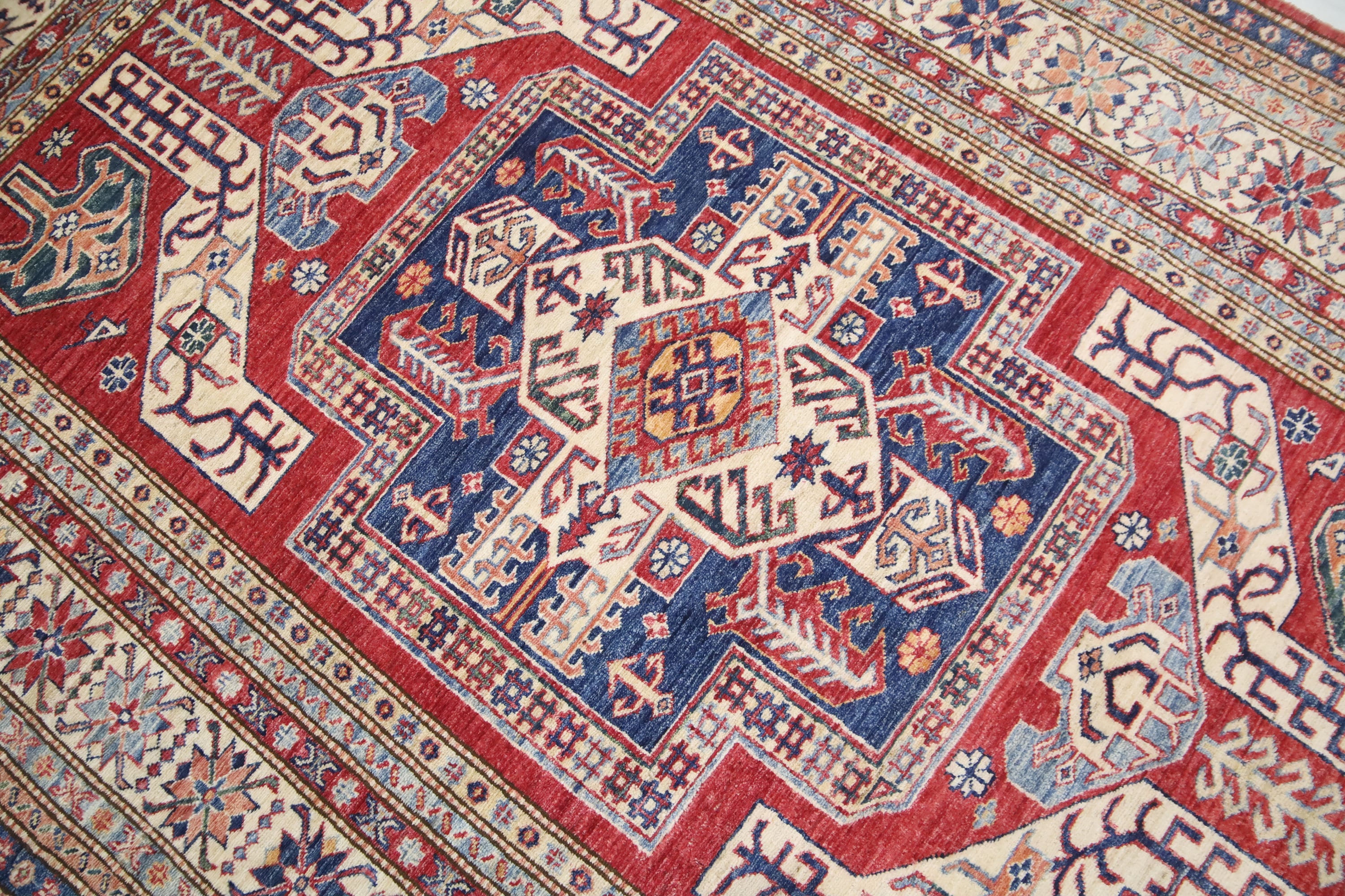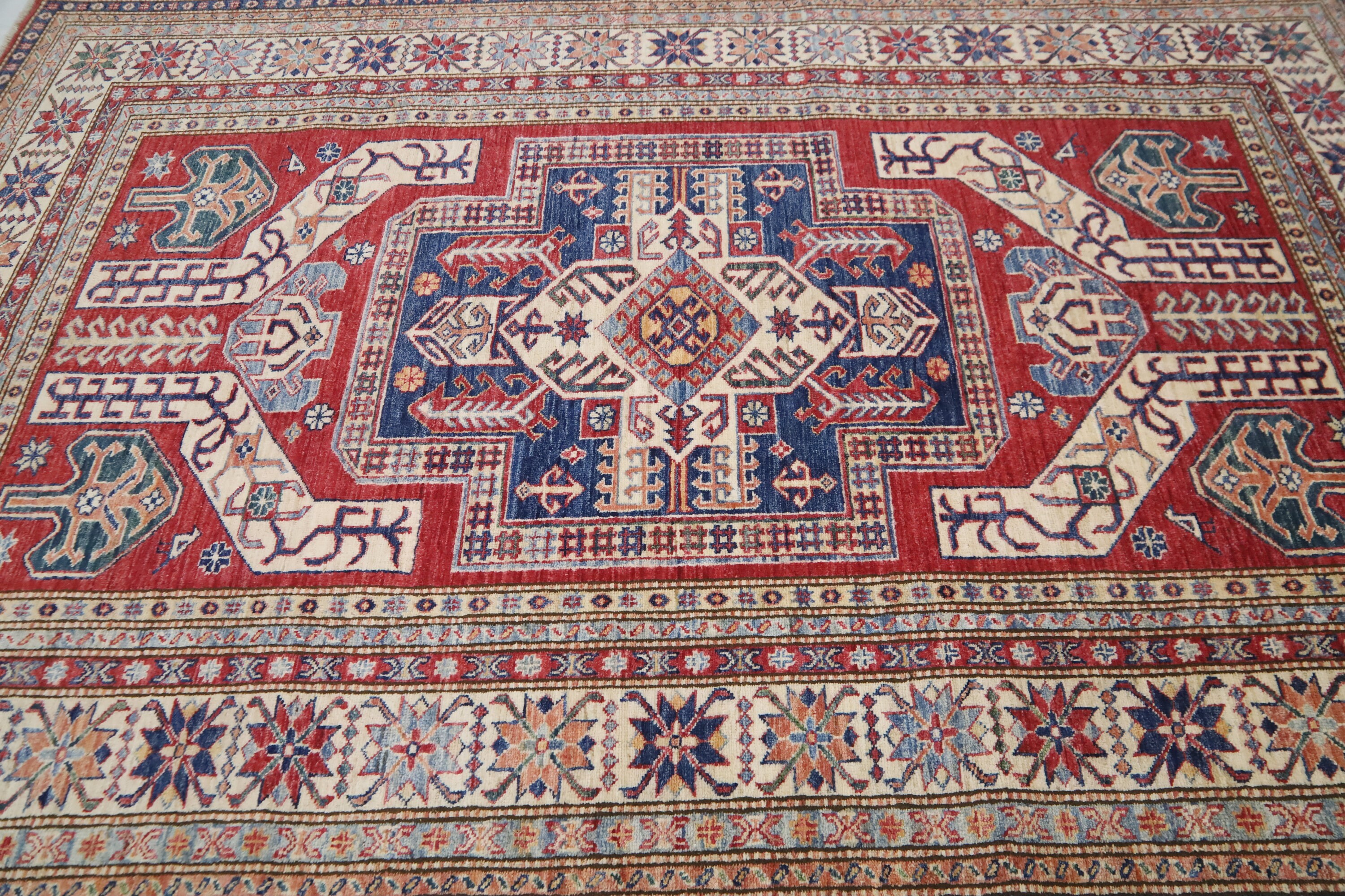 6x8 Kazak Fine Quality Area Rug - Red Afghan Hand Made Caucasian Veg Dye Wool Rug - Traditional Rug - Entryway Rug - Bedroom Rug - Foyer Rug