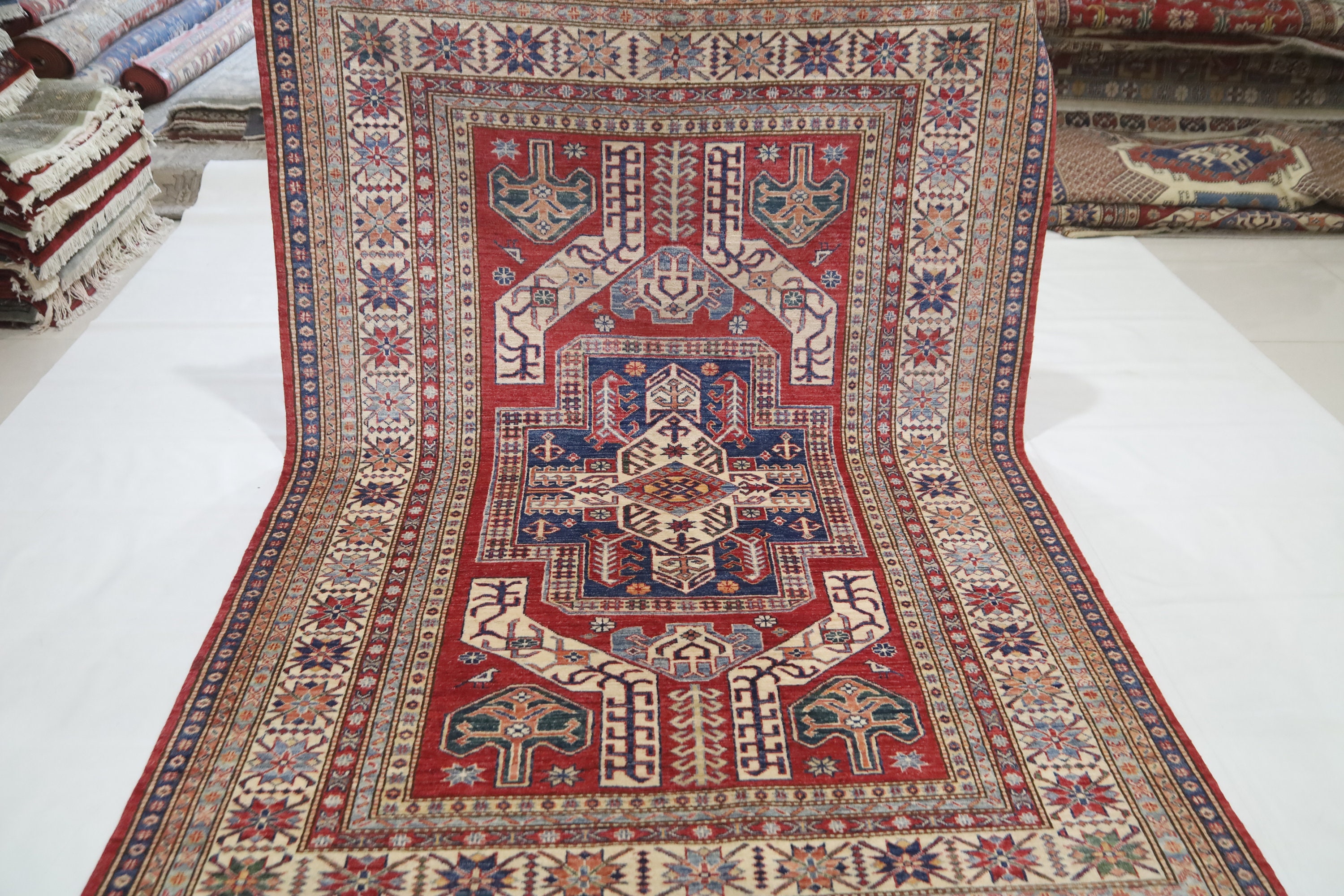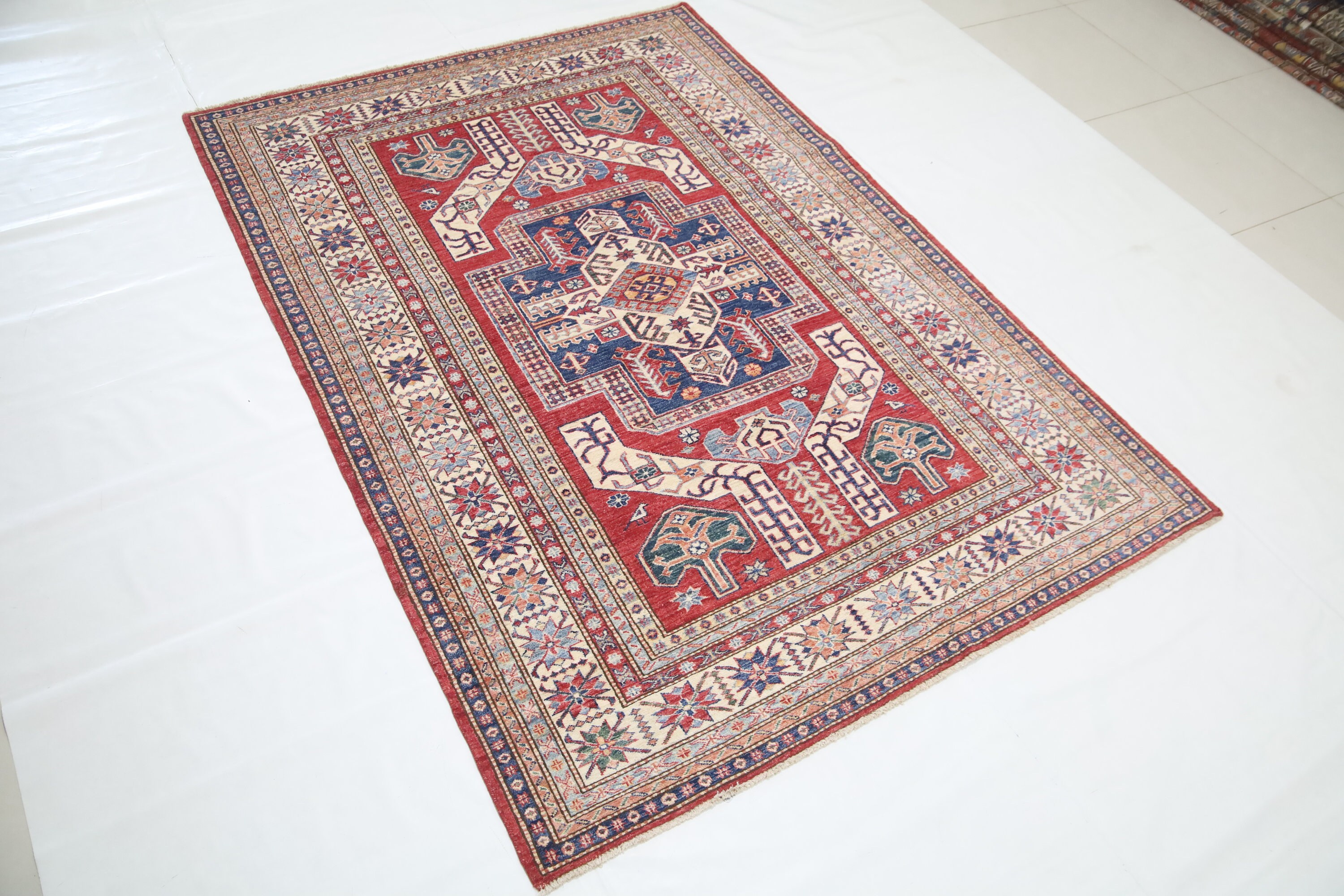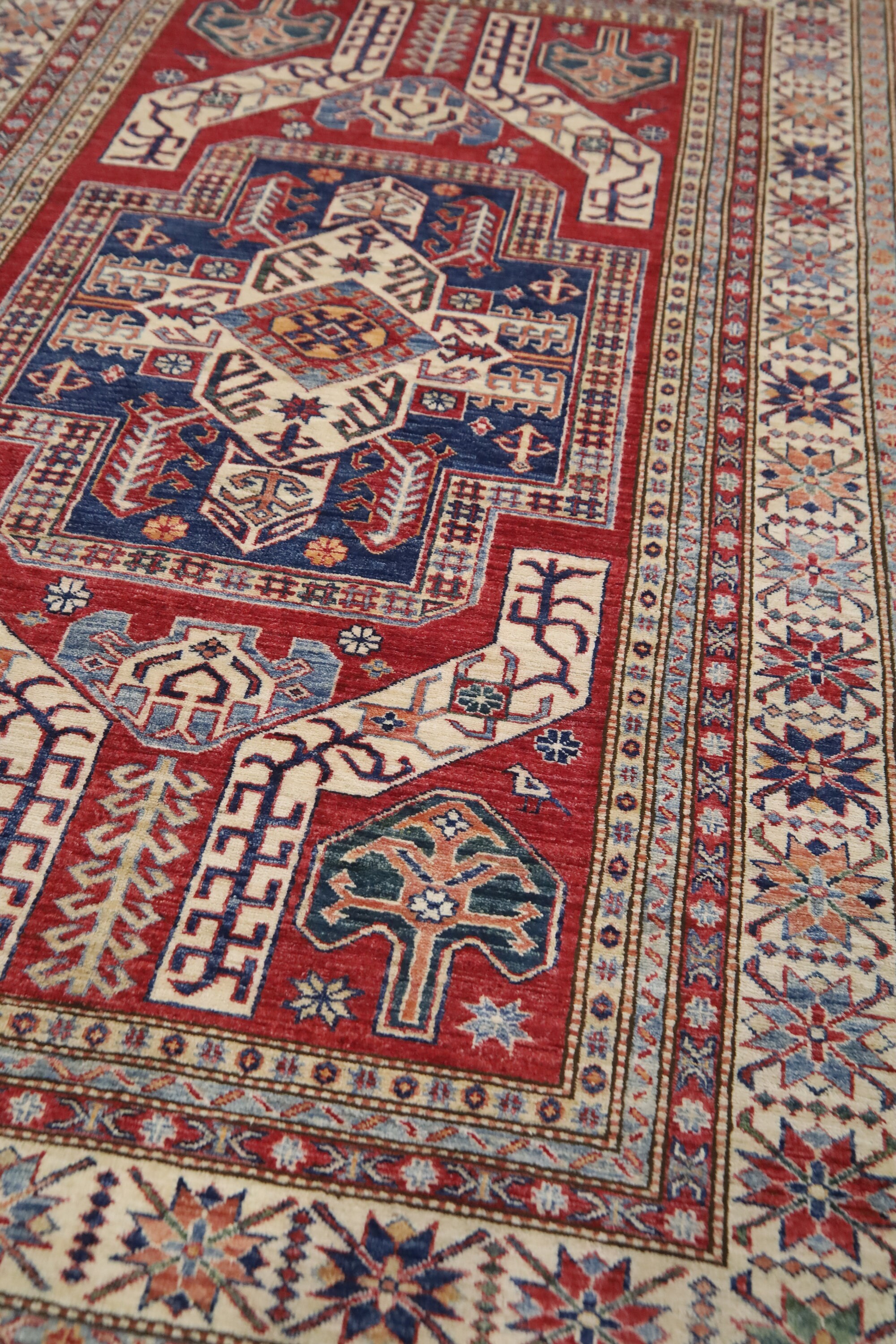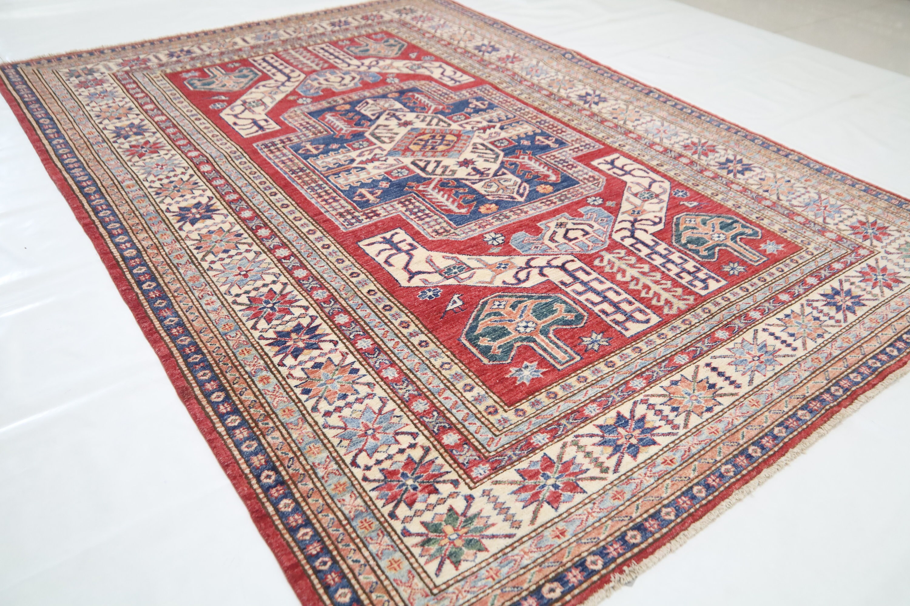 6x8 Kazak Fine Quality Area Rug - Red Afghan Hand Made Caucasian Veg Dye Wool Rug - Traditional Rug - Entryway Rug - Bedroom Rug - Foyer Rug