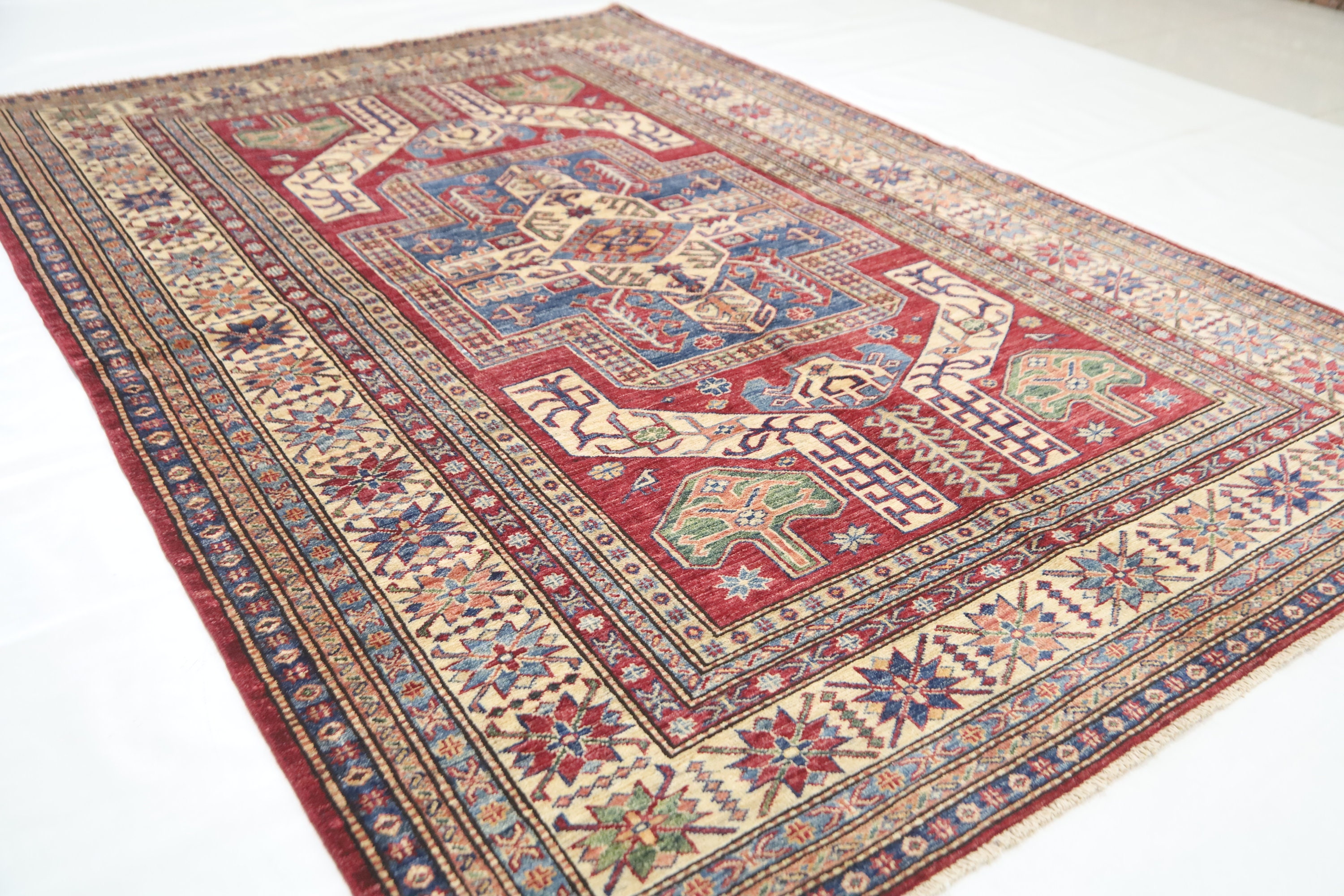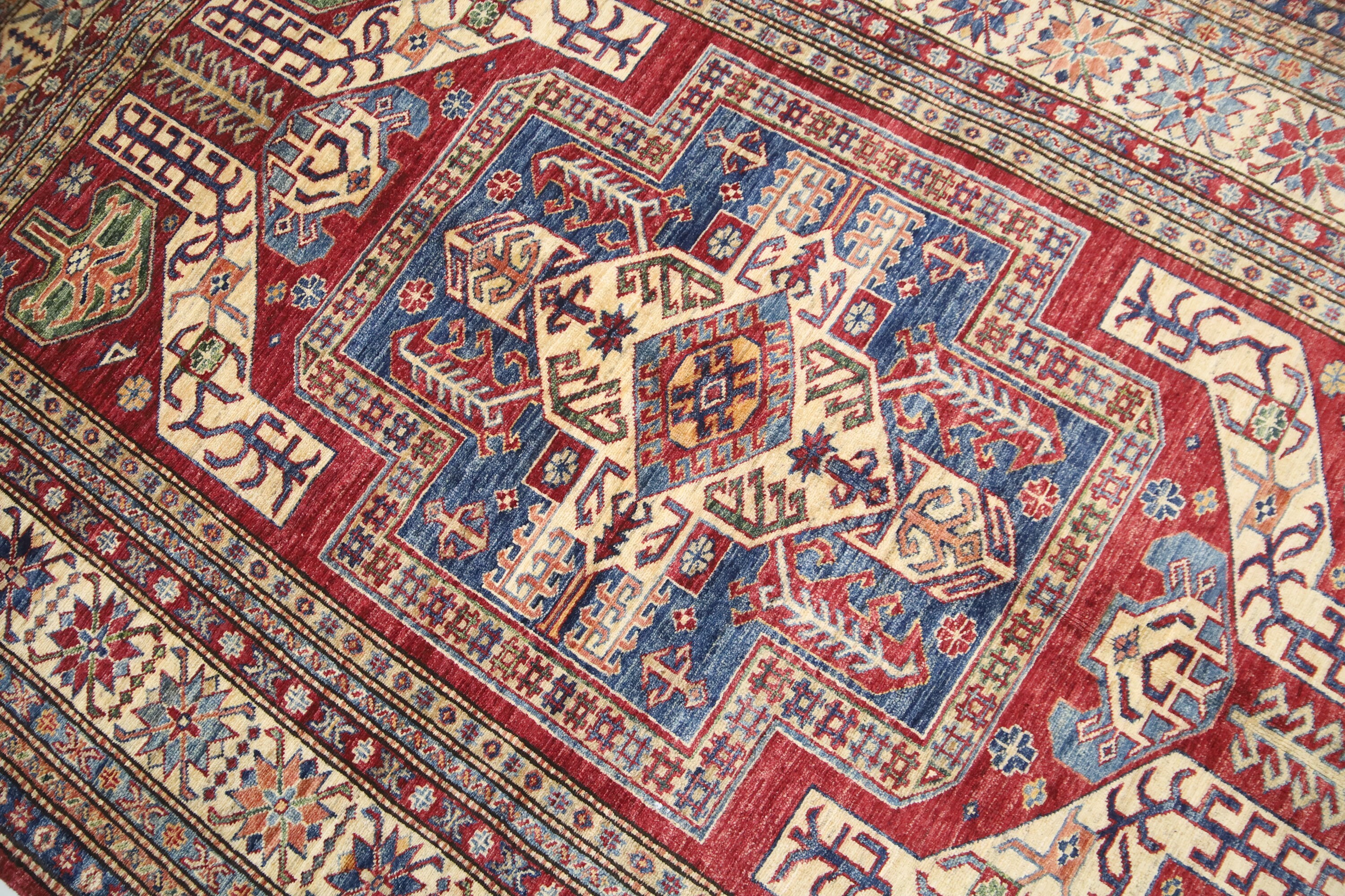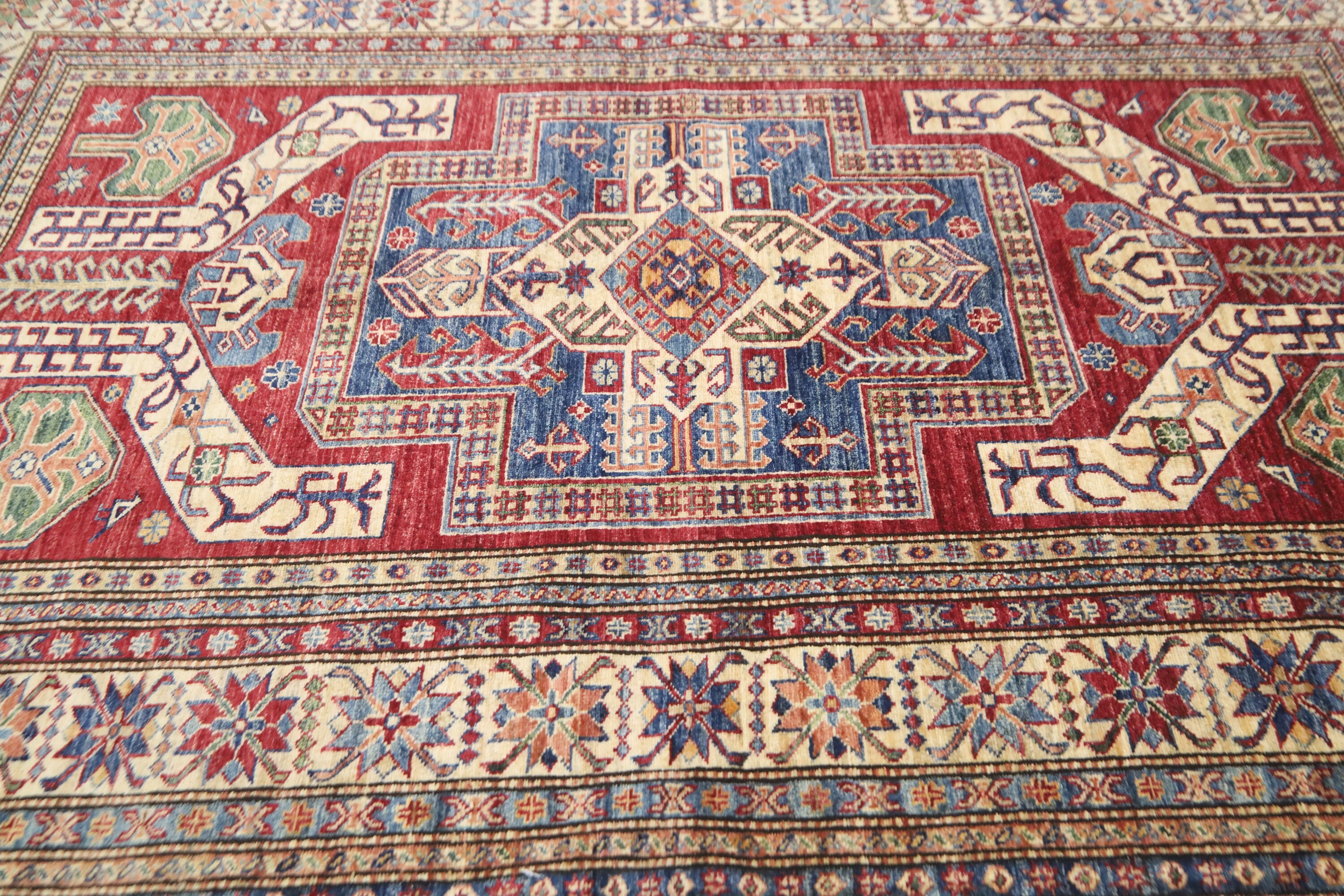 5x8 Red Kazak Area Rug - Afghan Hand Made Traditional Fine Quality Wool Rug - Entryway Rug - Bedroom Rug - Office Rug - Living Room Rug
