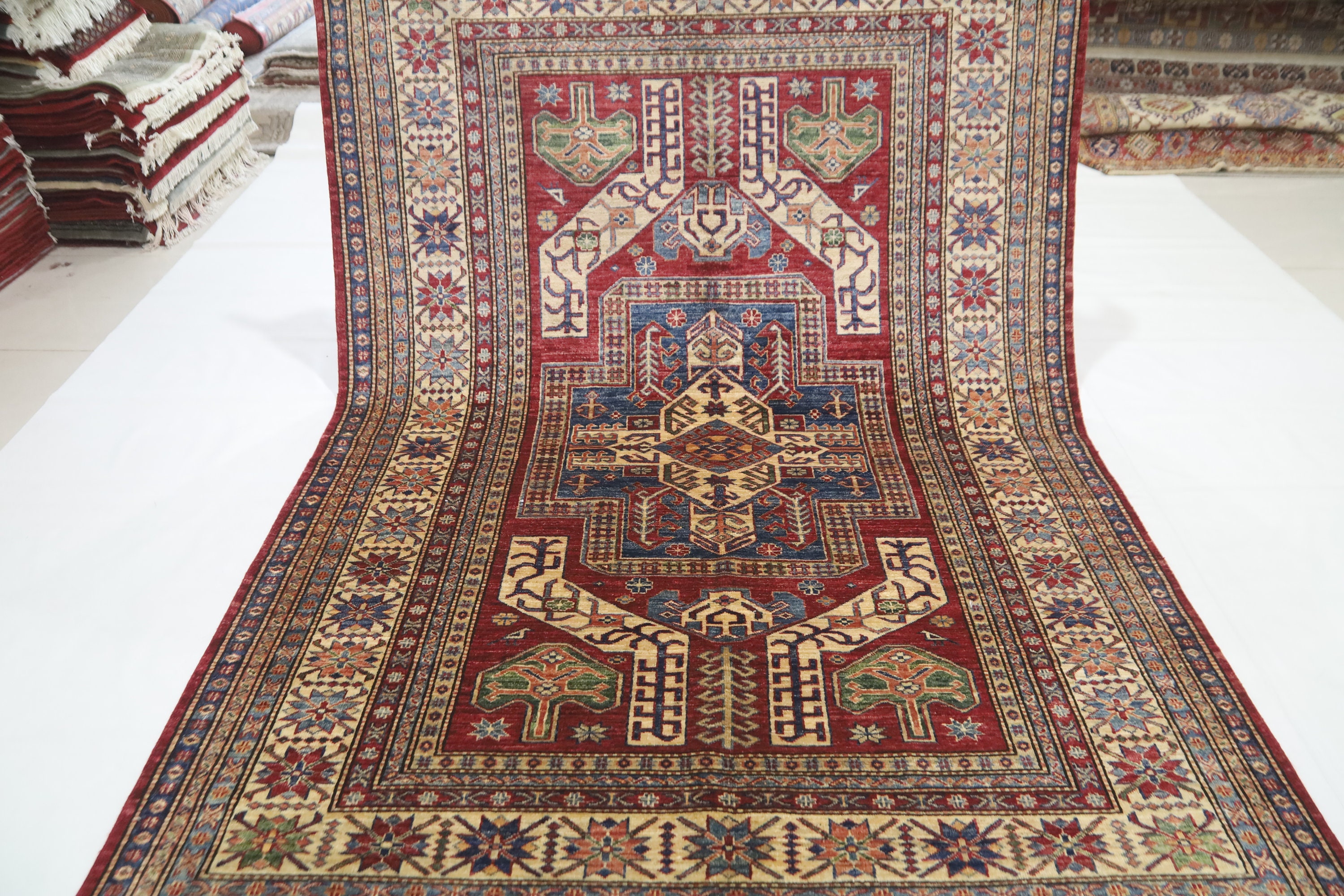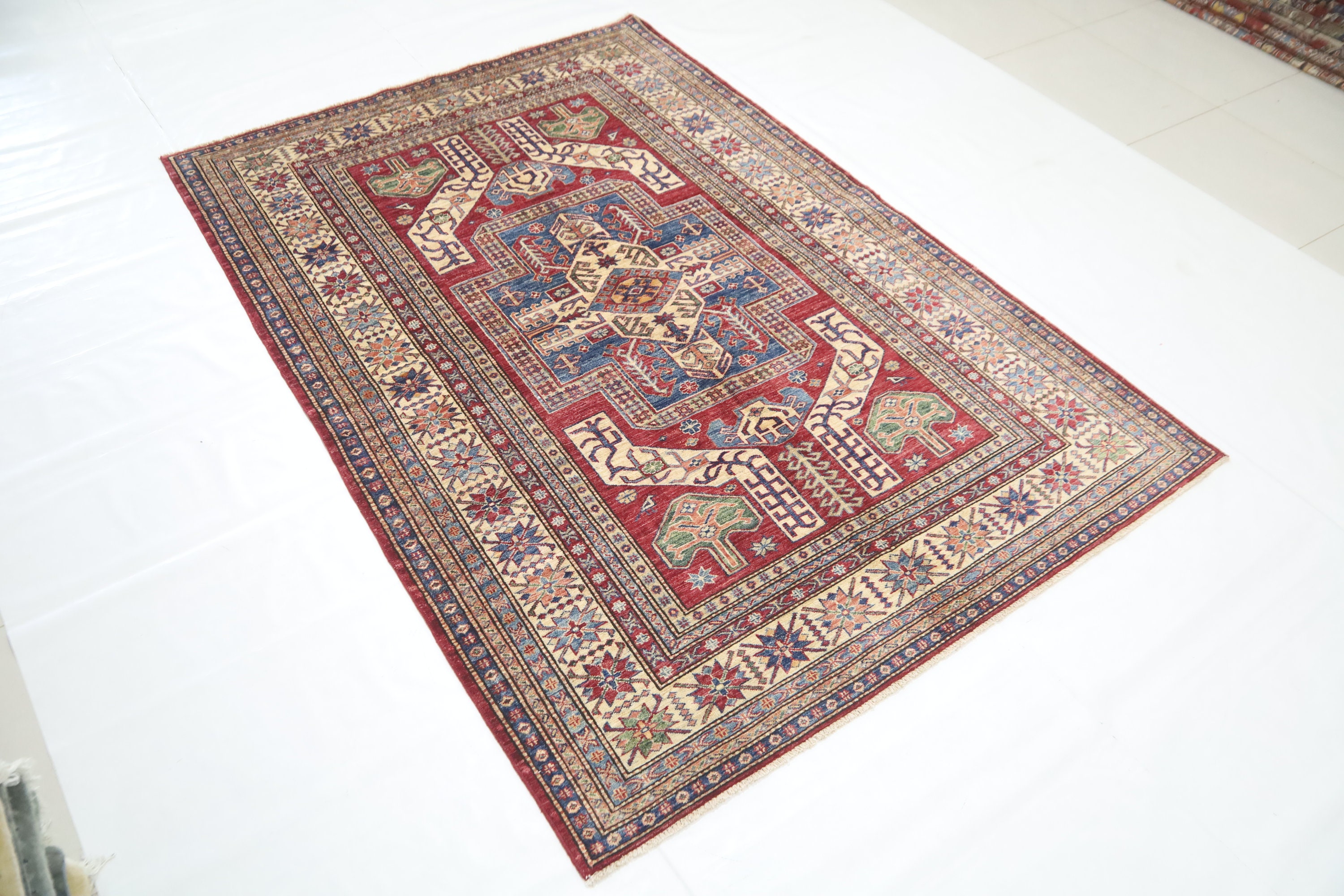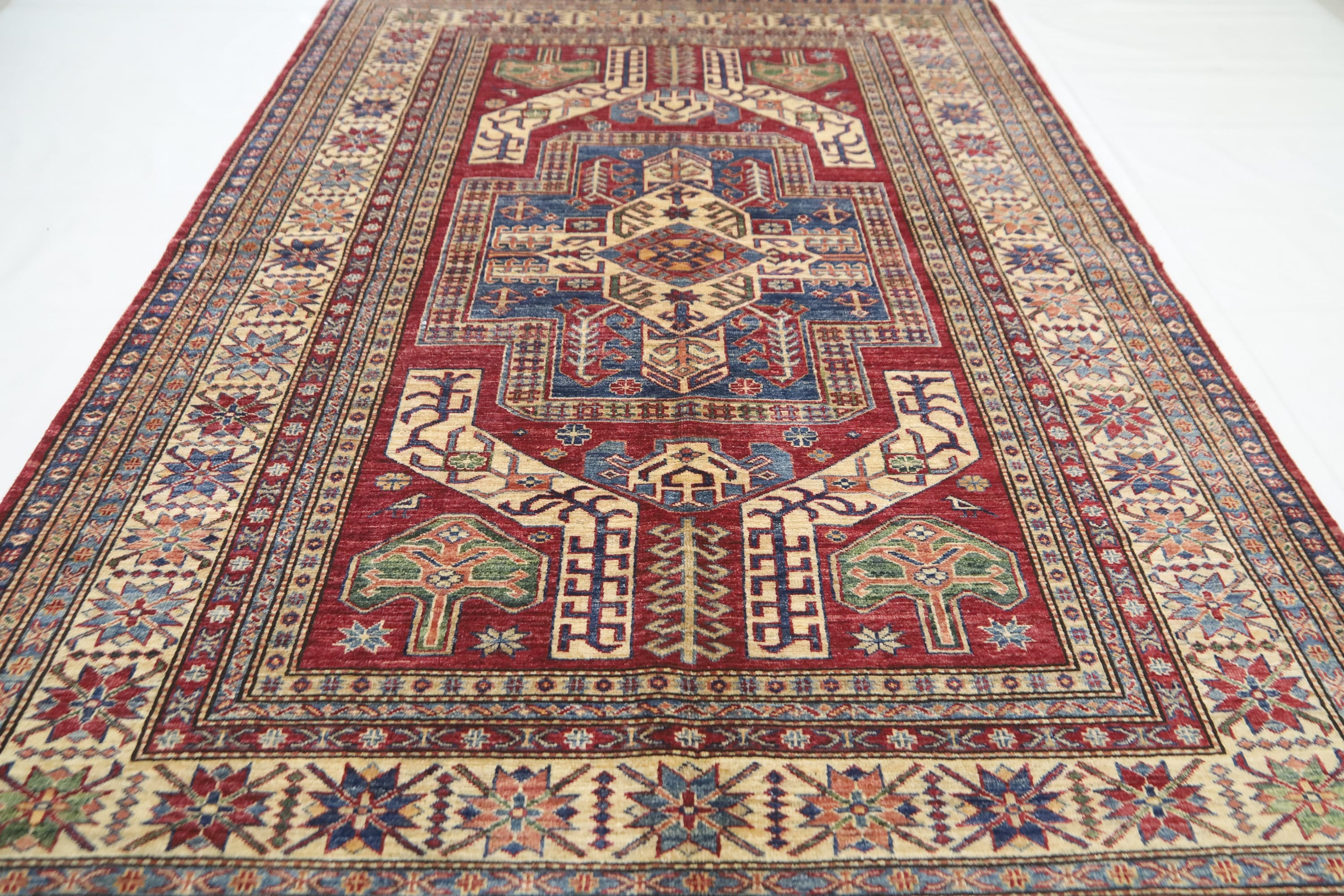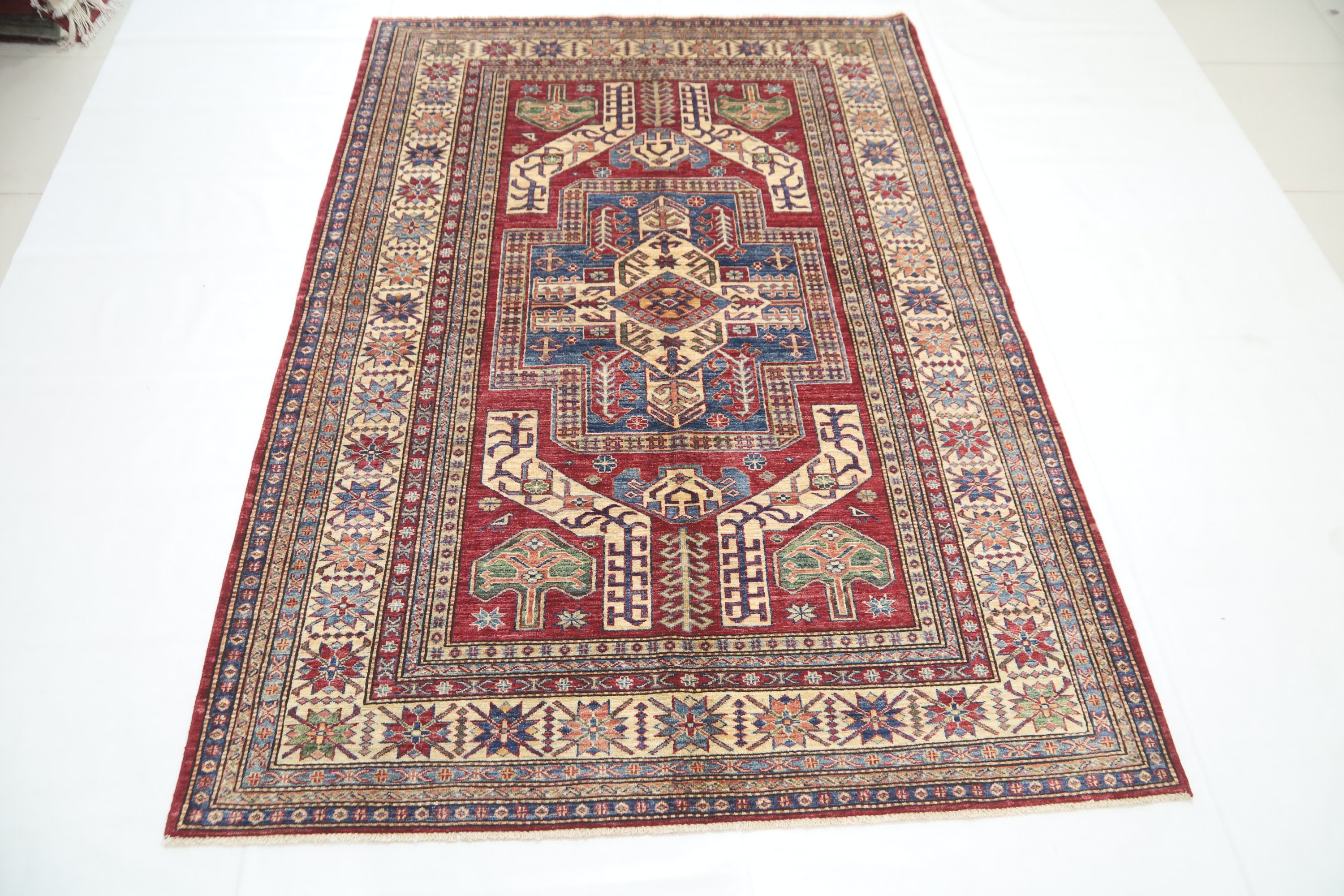 5x8 Red Kazak Area Rug - Afghan Hand Made Traditional Fine Quality Wool Rug - Entryway Rug - Bedroom Rug - Office Rug - Living Room Rug
