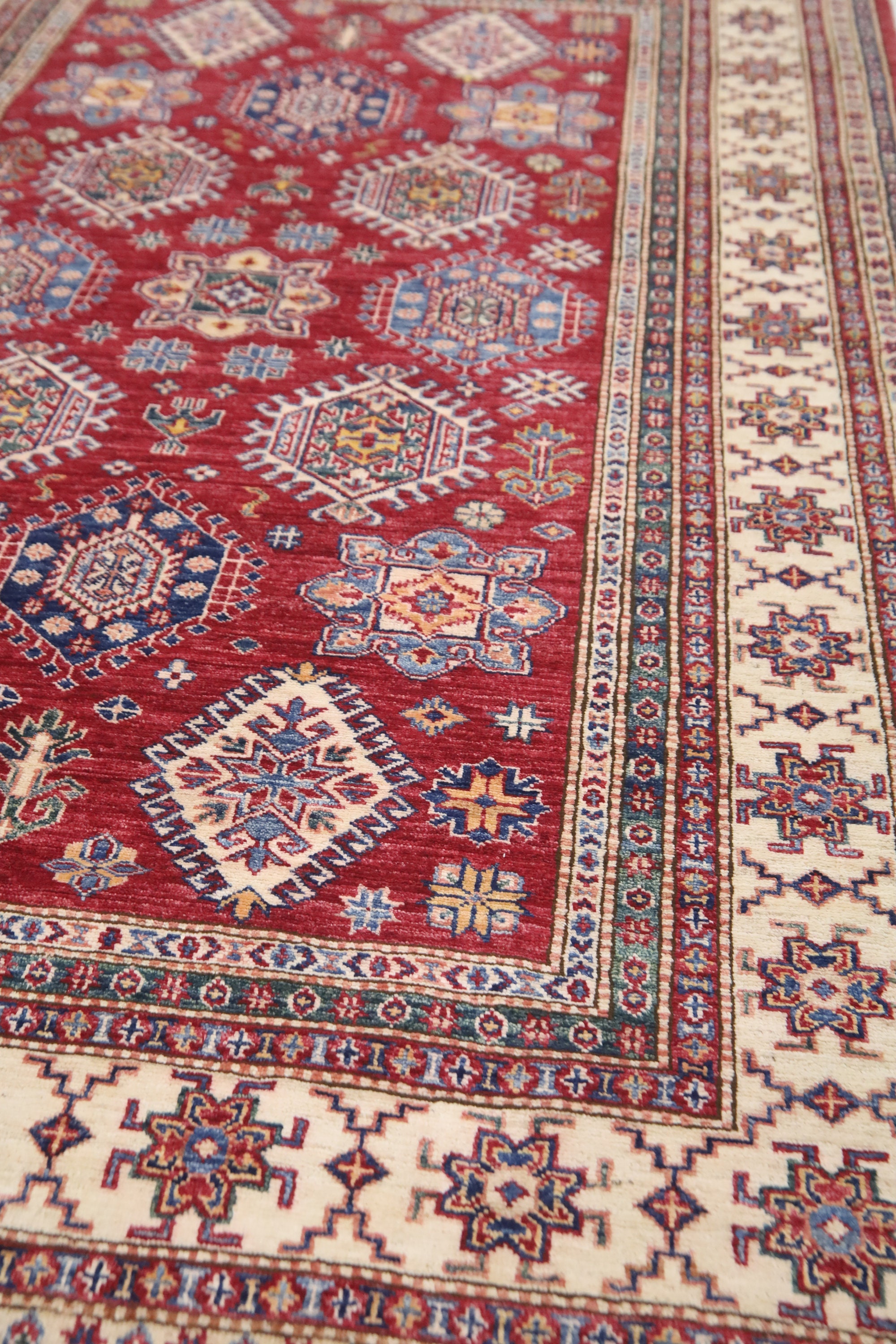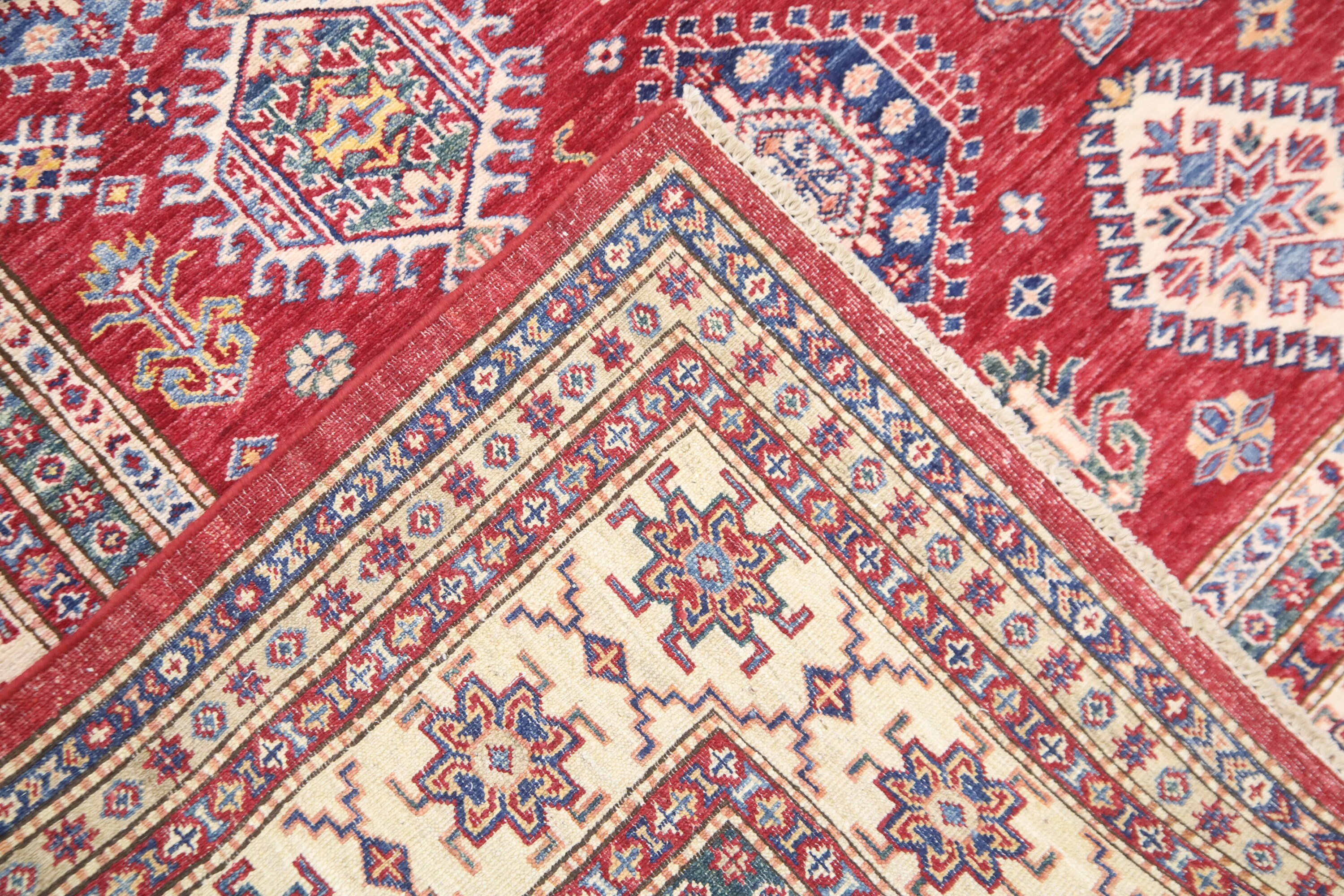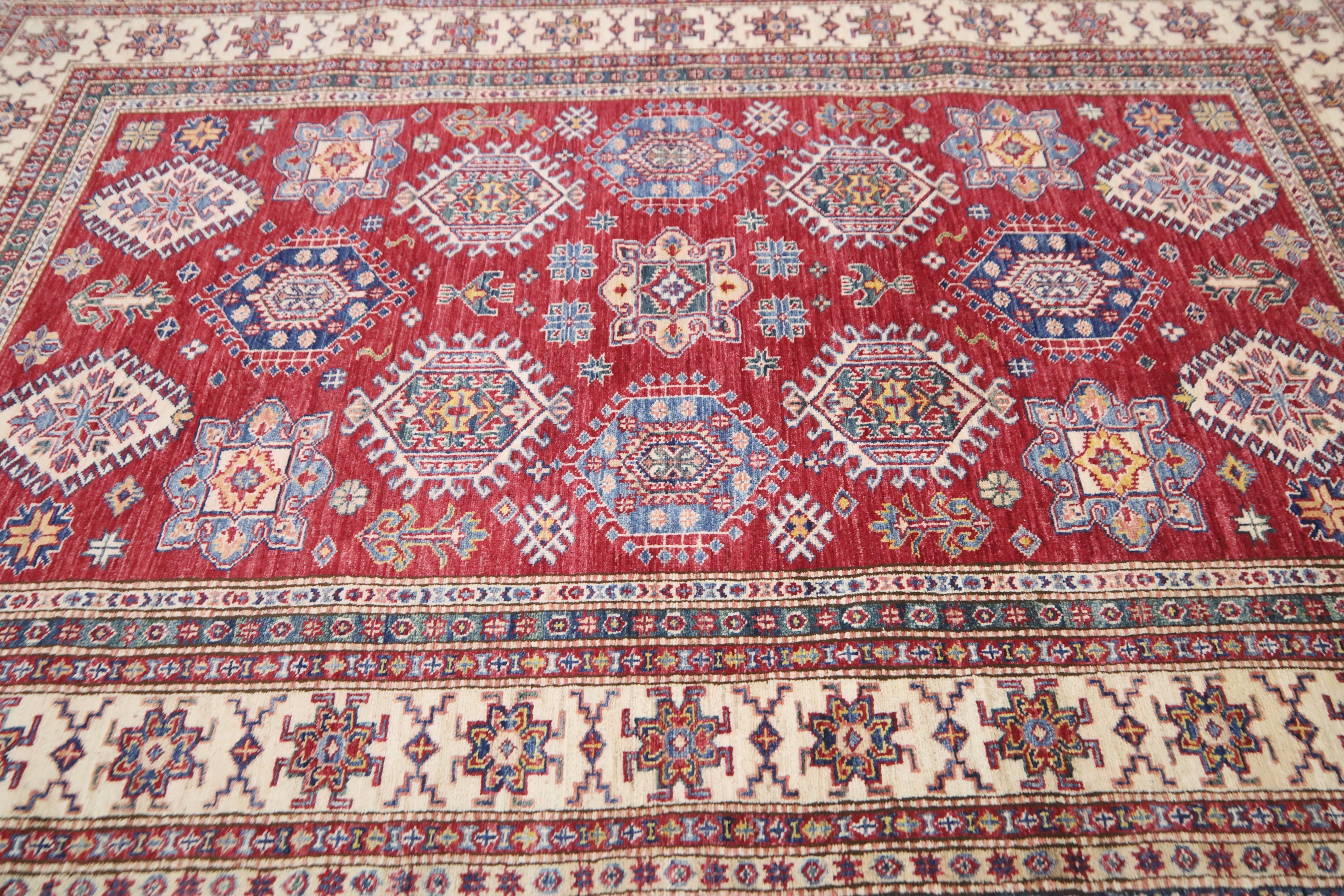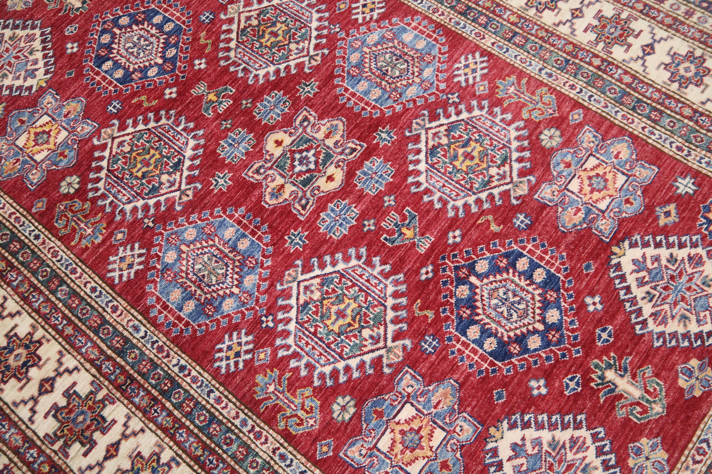 6x8 Red Kazak Area Rug - Afghan Hand Made Traditional Fine Quality Wool Rug - Caucasian Rug - Oriental Rug - Geometric Rug - 6x8 Bedroom Rug