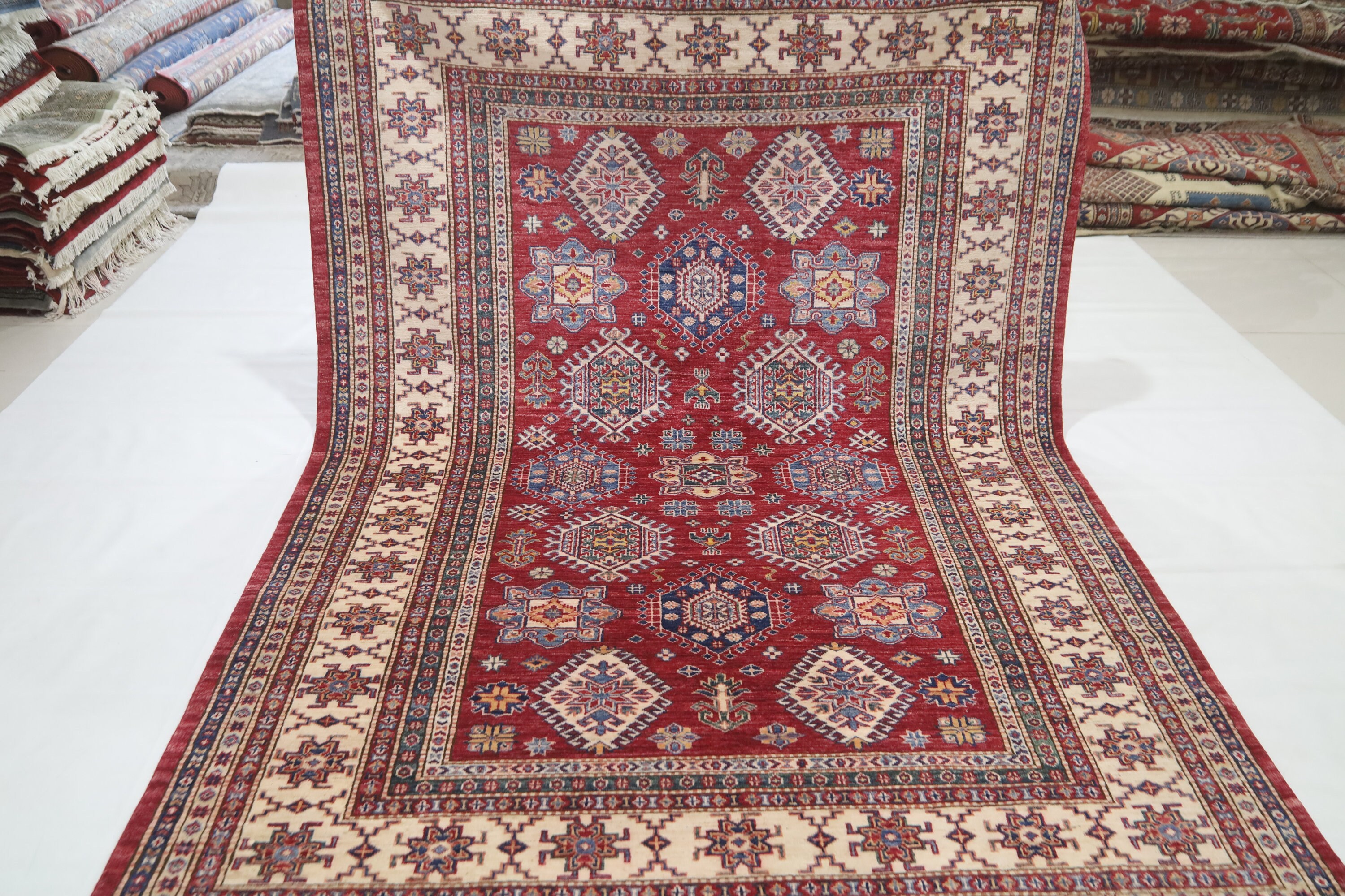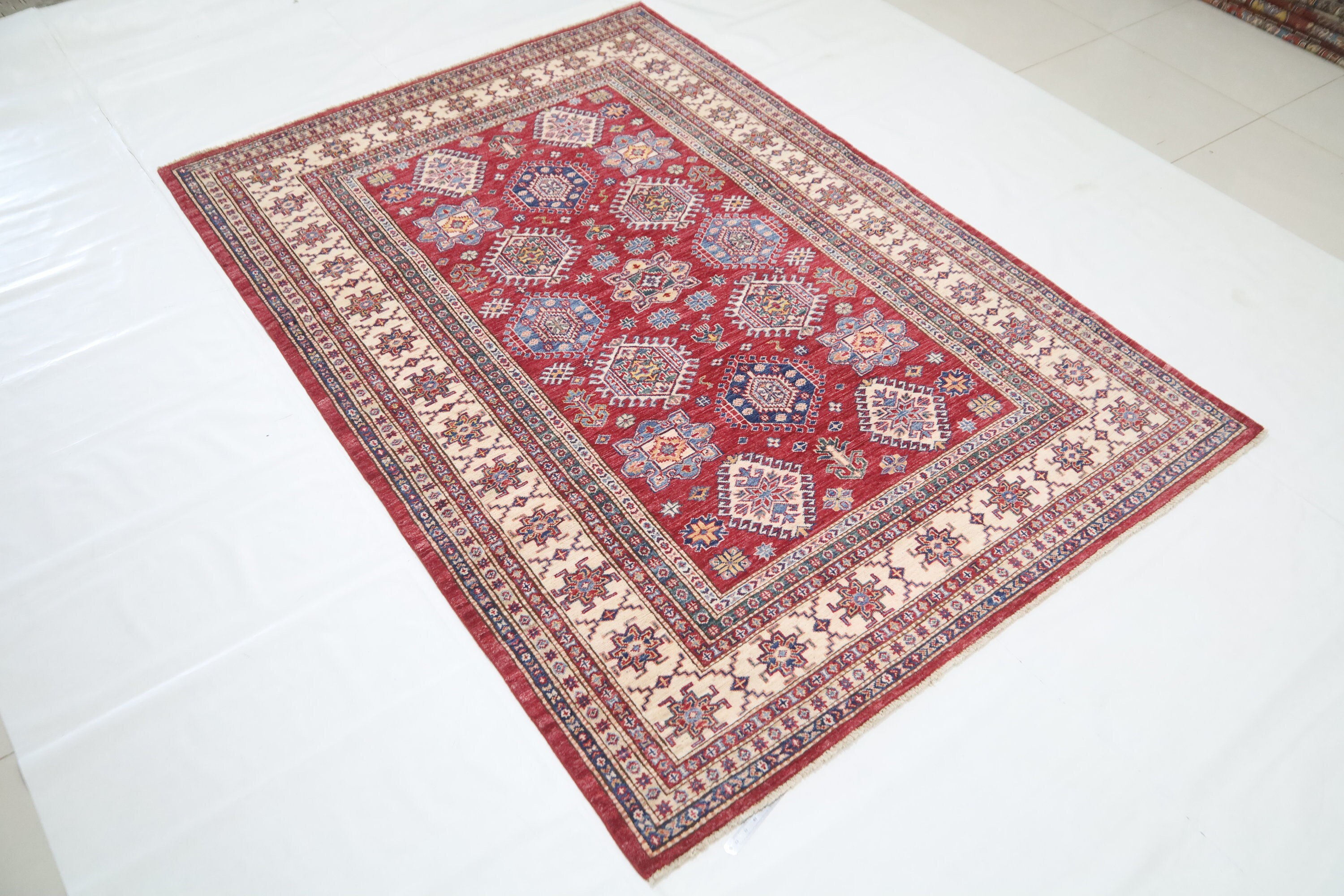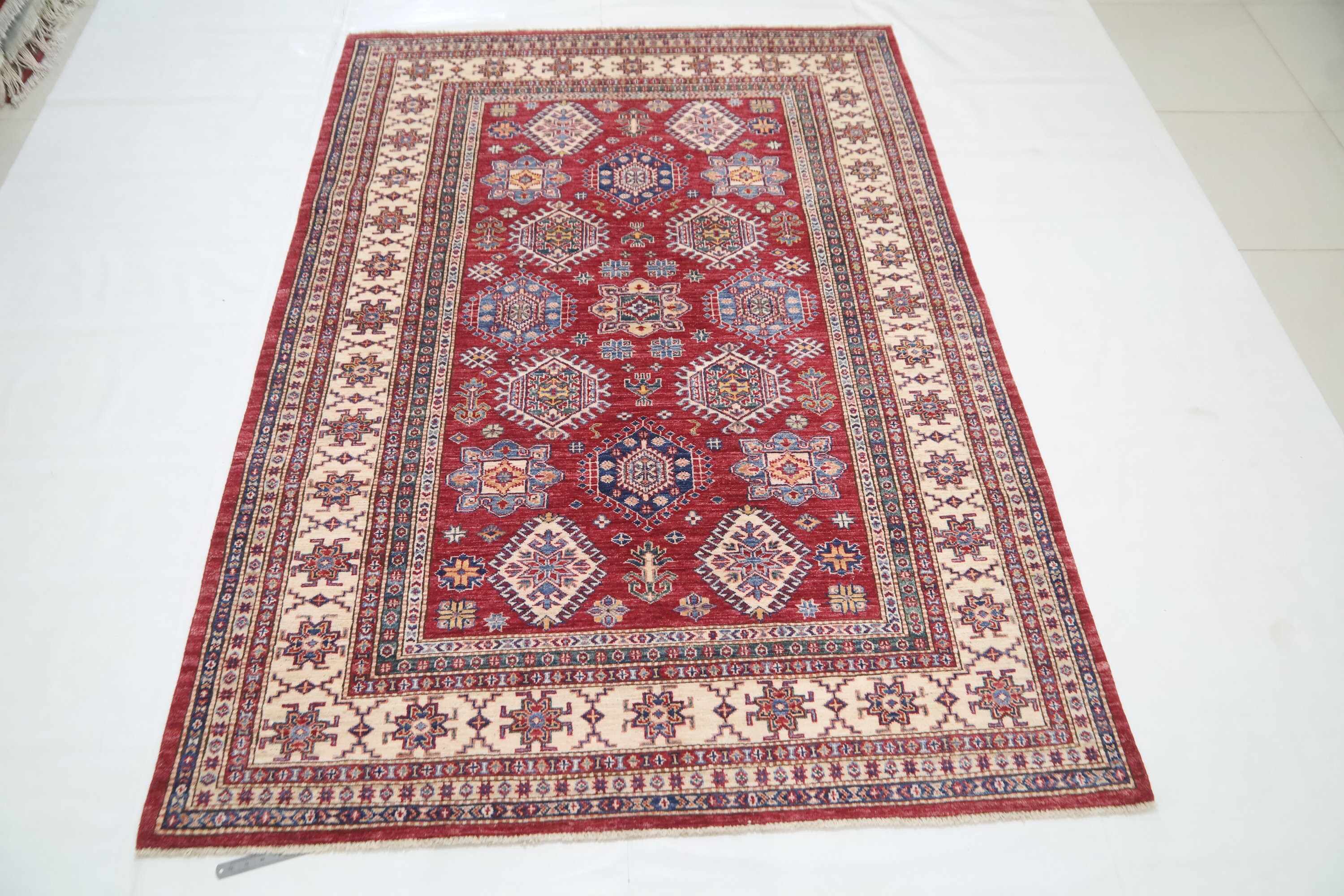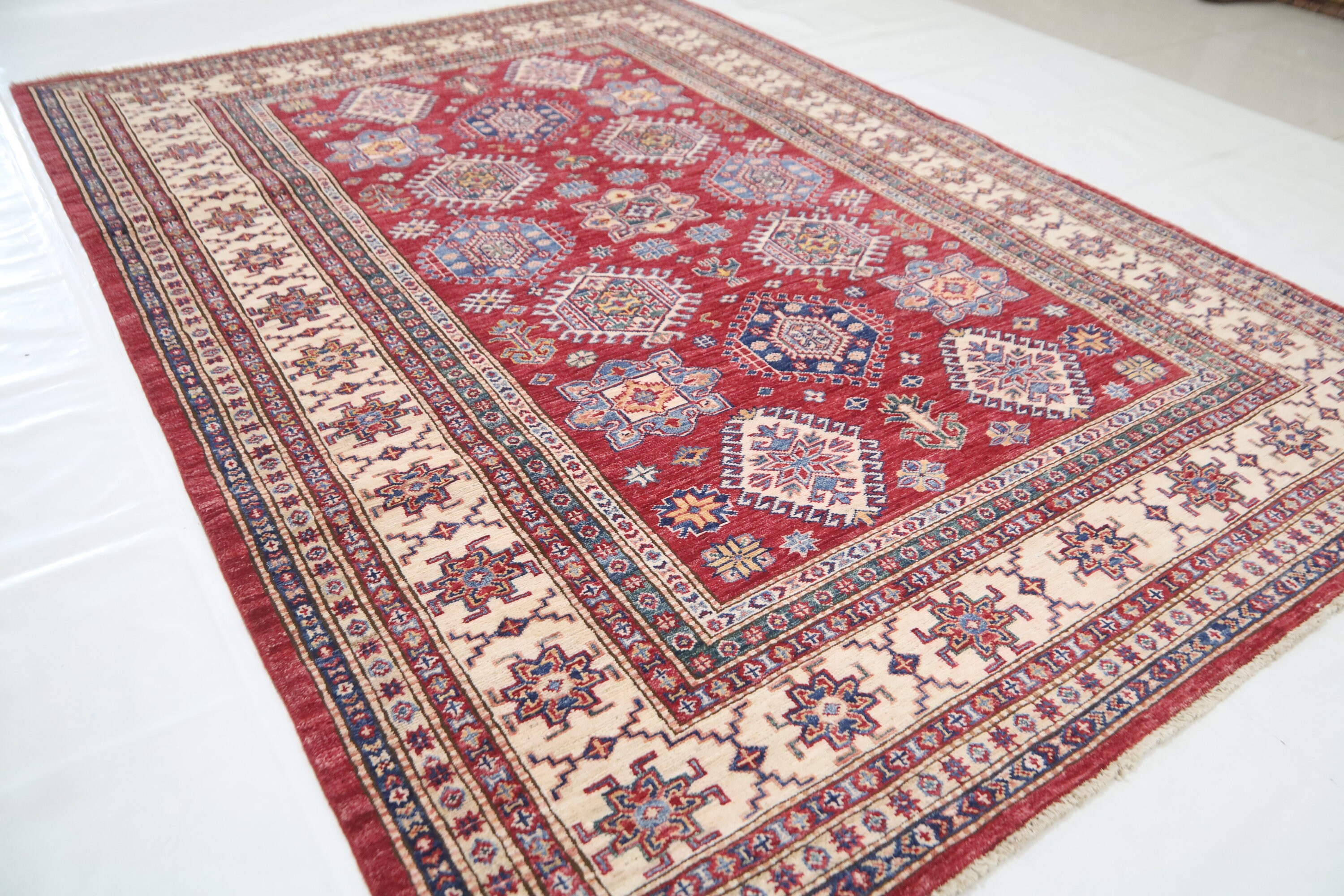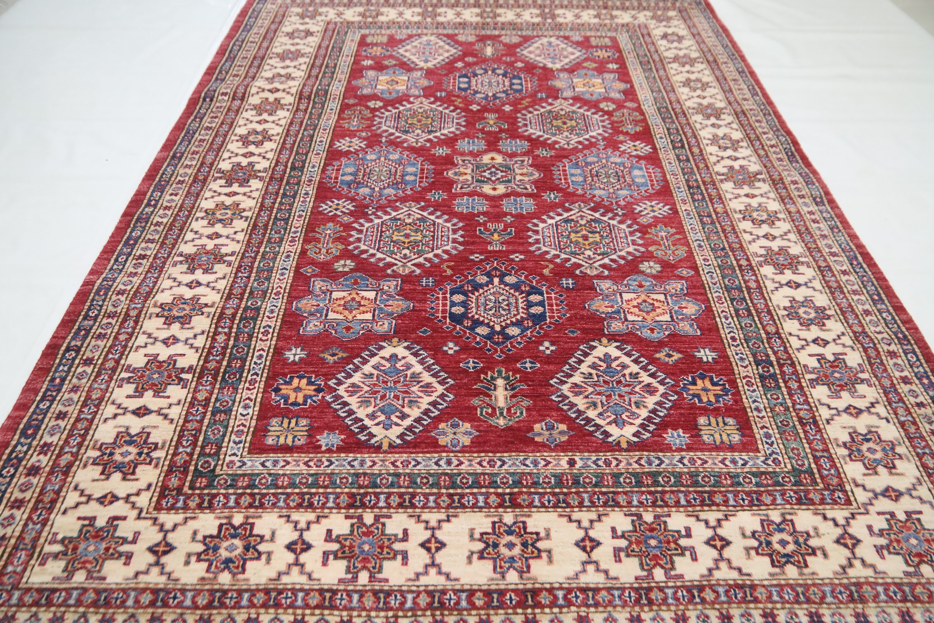 6x8 Red Kazak Area Rug - Afghan Hand Made Traditional Fine Quality Wool Rug - Caucasian Rug - Oriental Rug - Geometric Rug - 6x8 Bedroom Rug